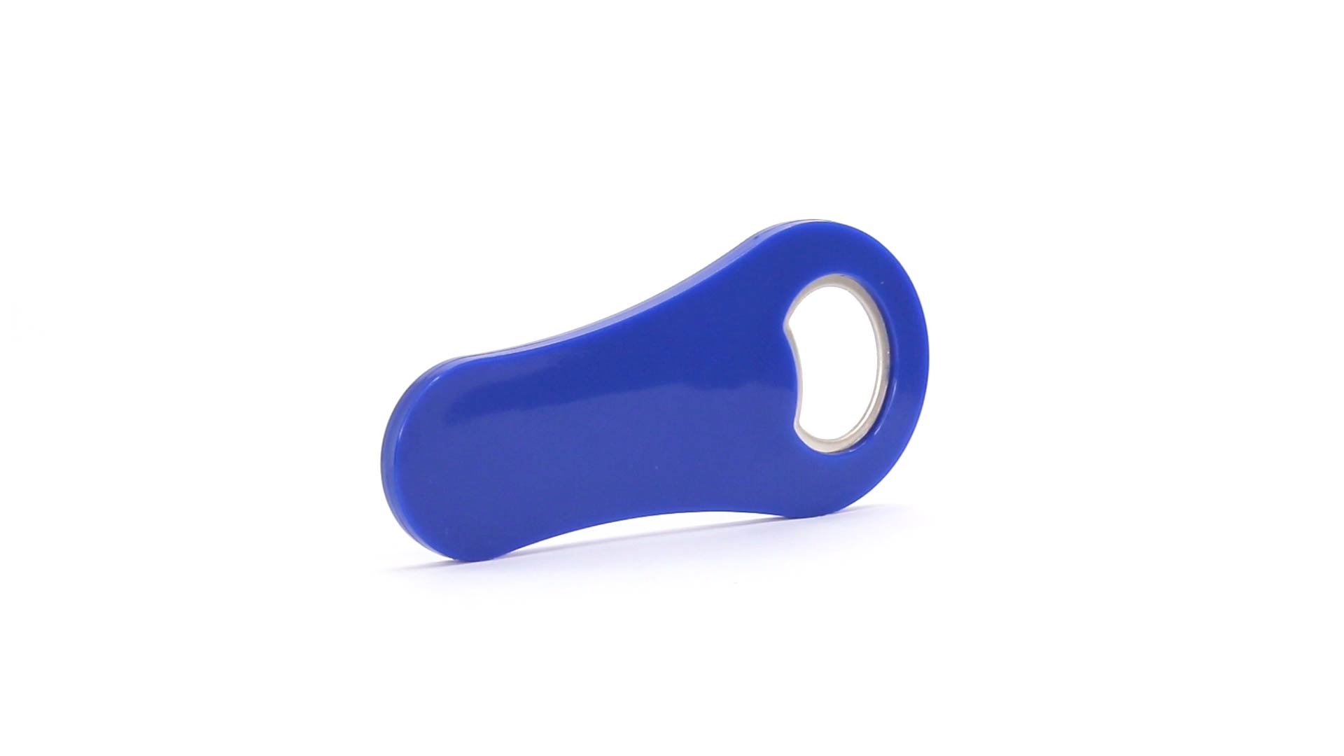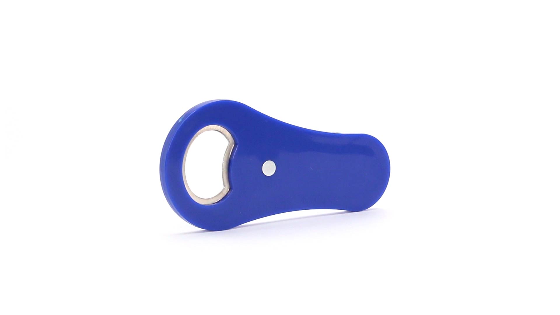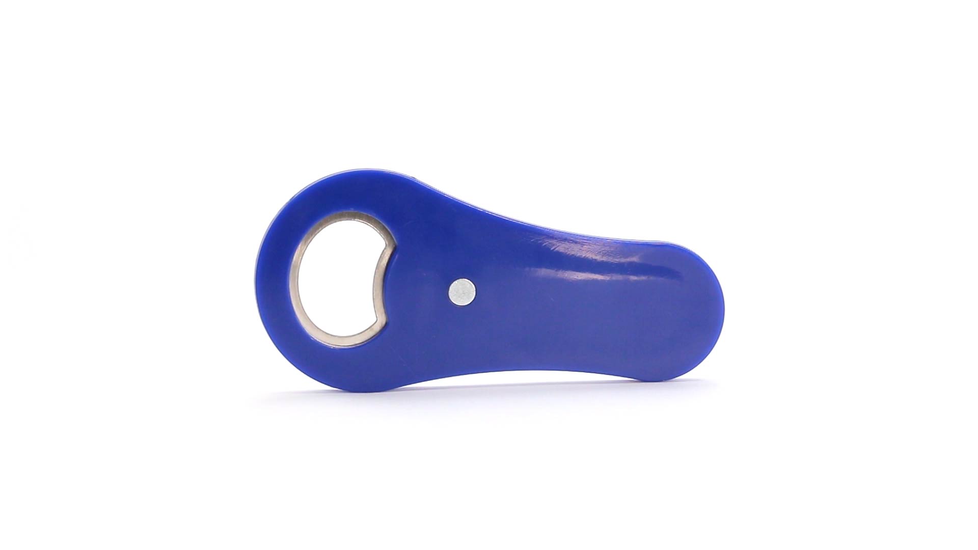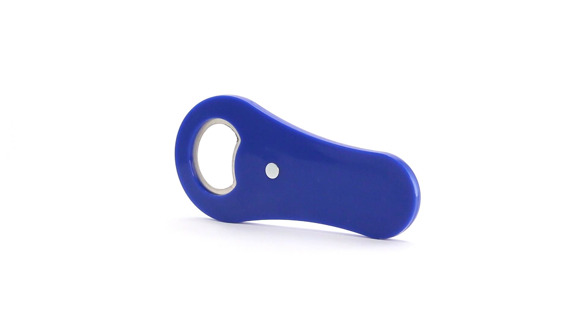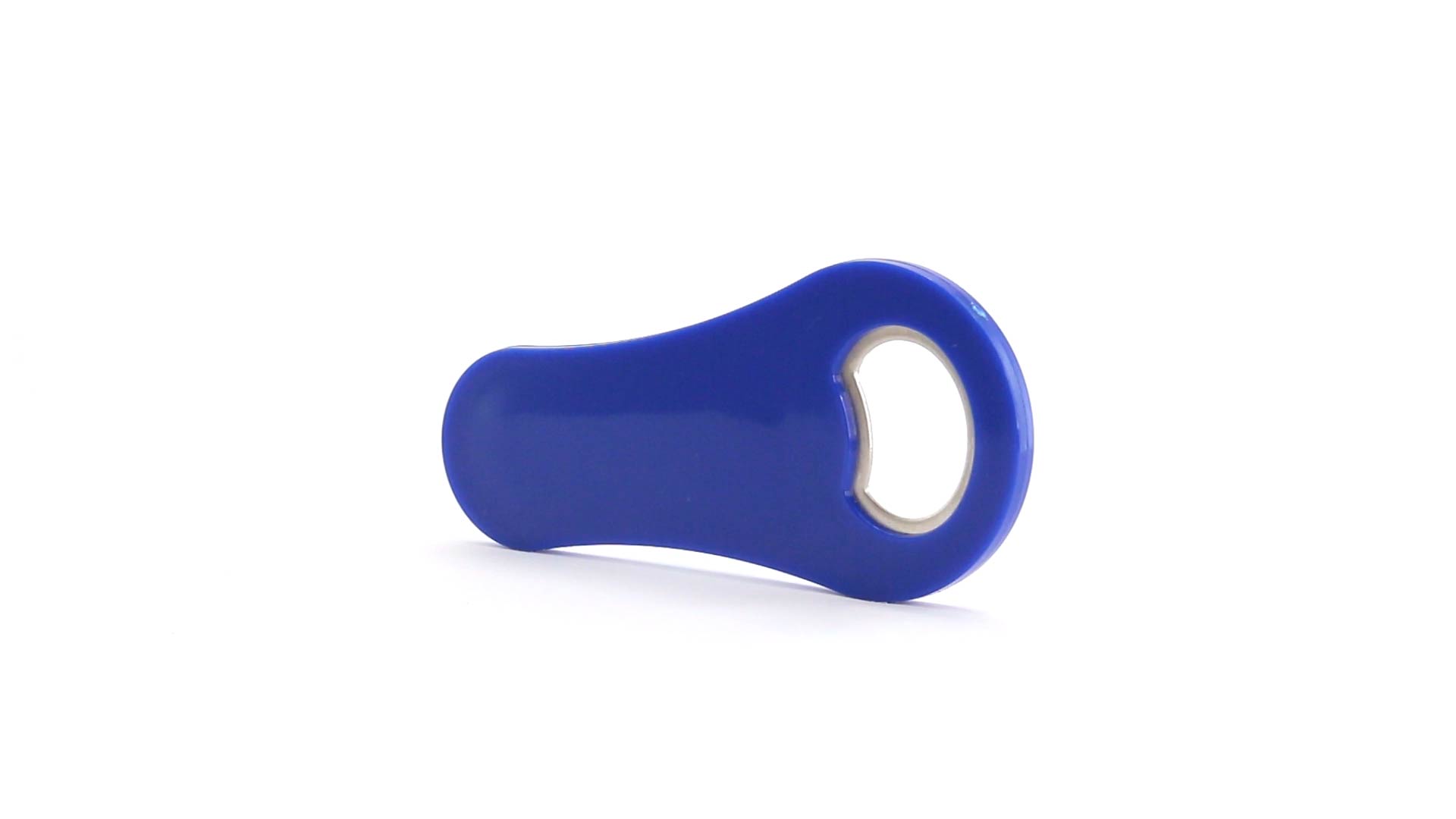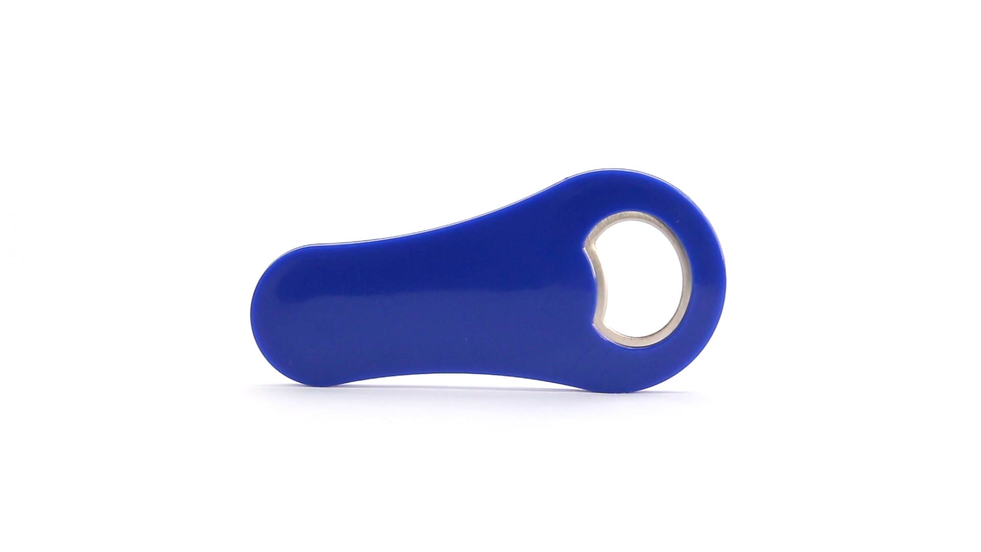 Magnetischer Flaschenöffner mit robustem Körper in verschiedenen Farben und Metallheber zum Öffnen.
