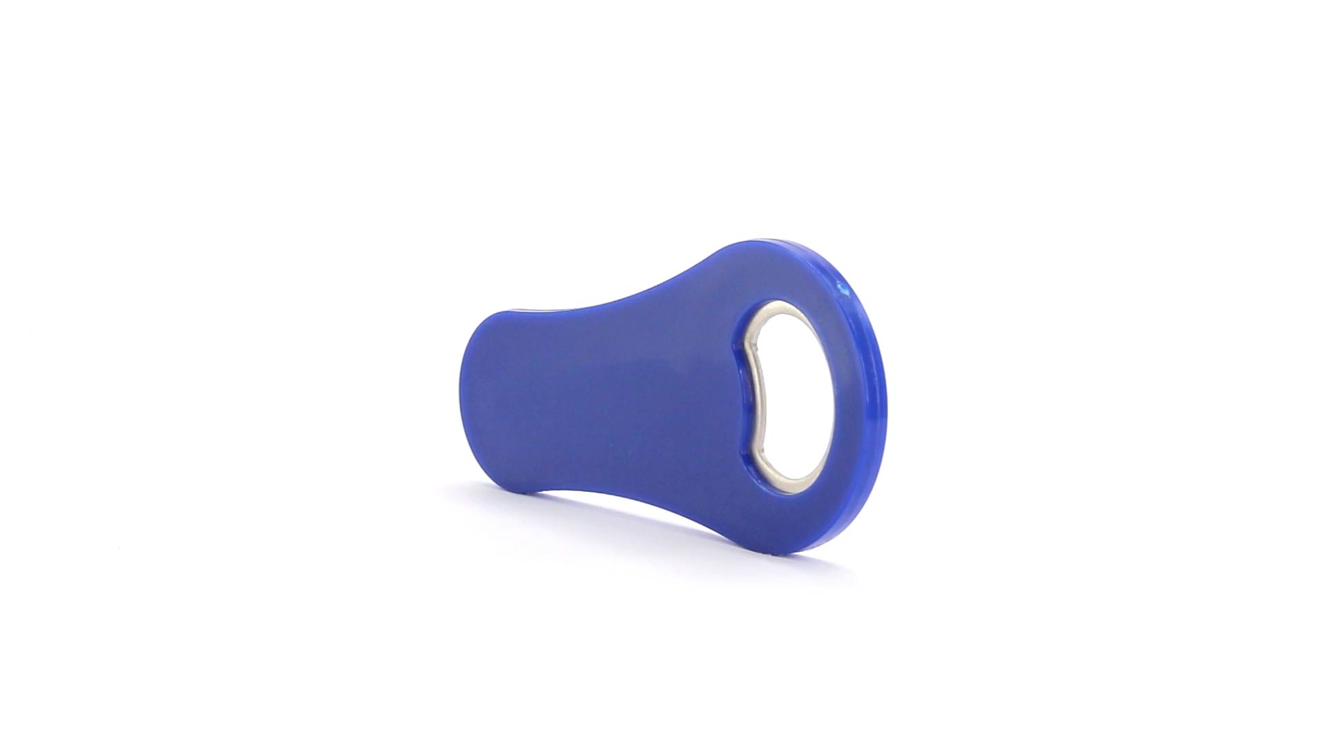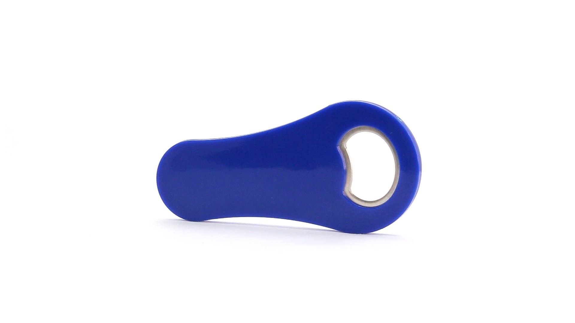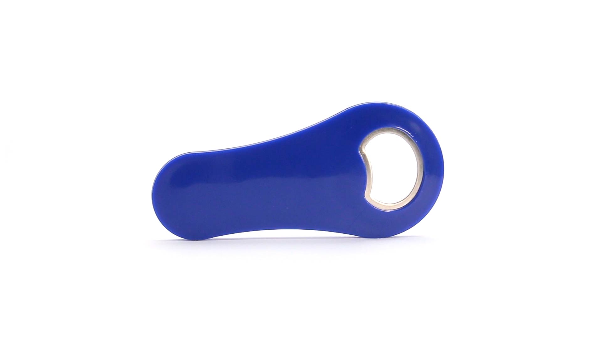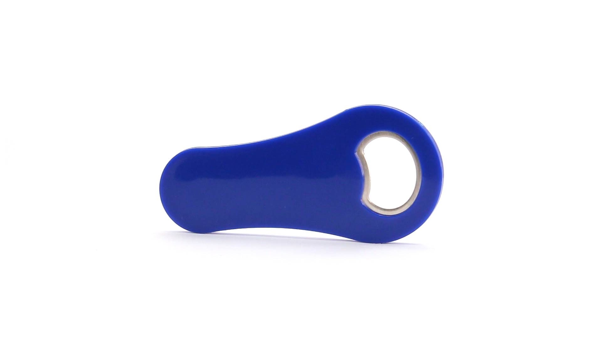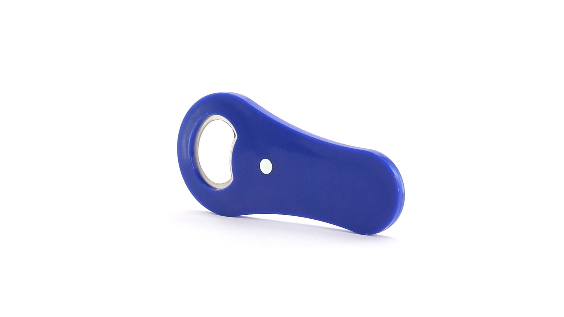 Magnetischer Flaschenöffner mit robustem Körper in verschiedenen Farben und Metallheber zum Öffnen.