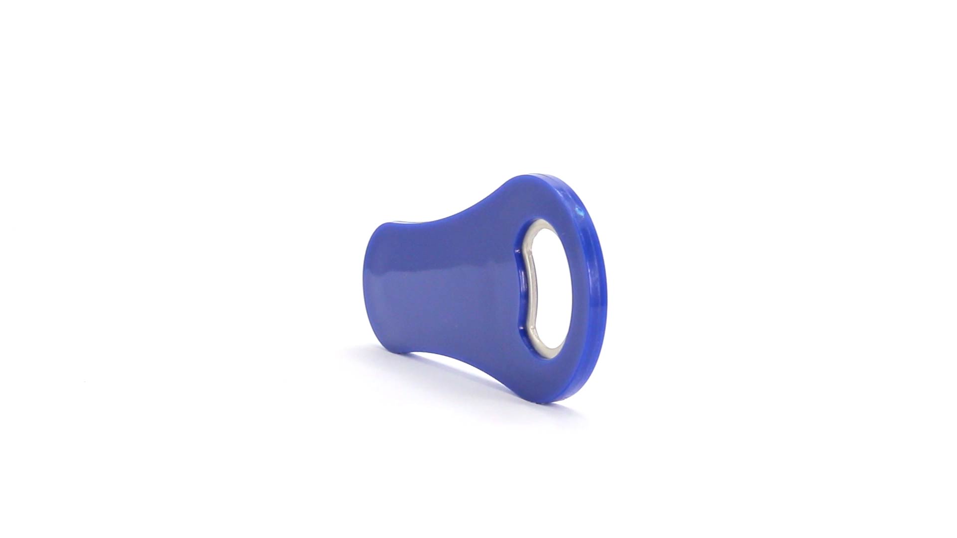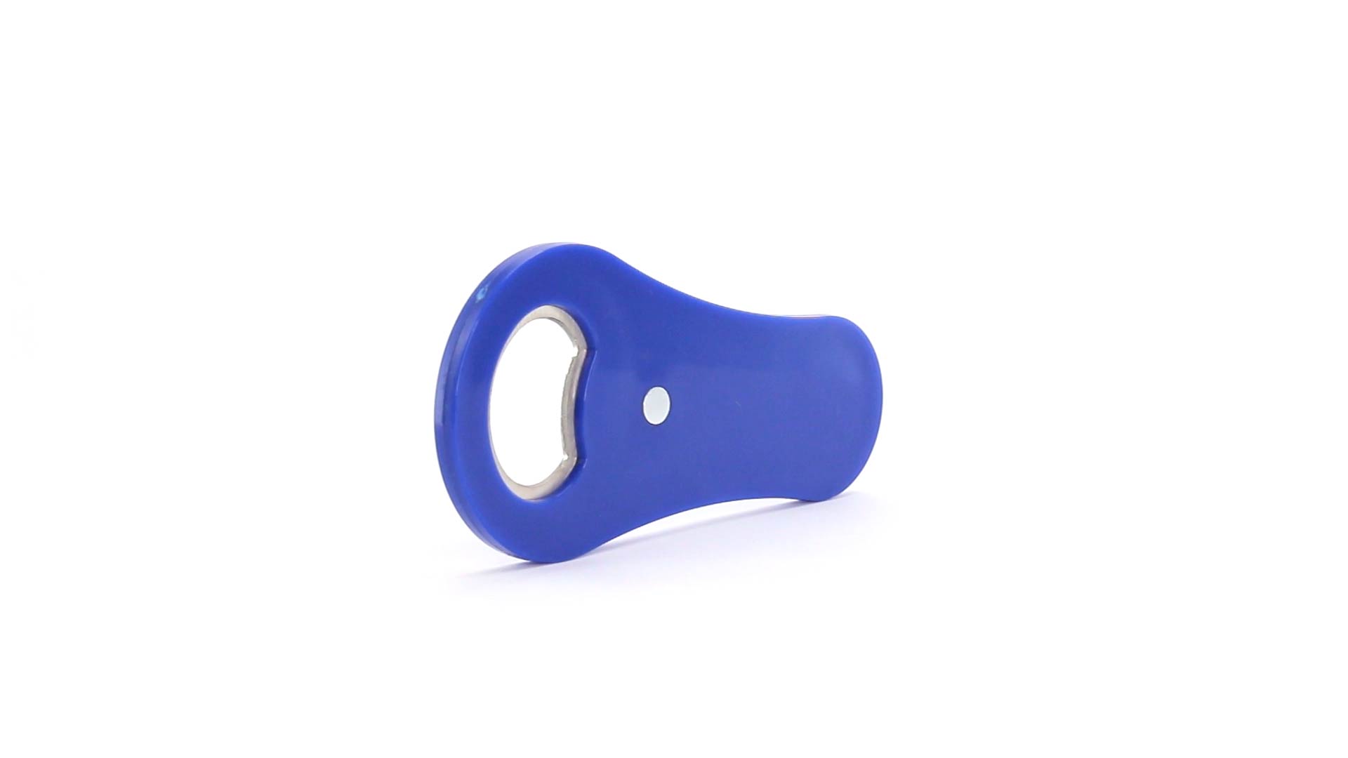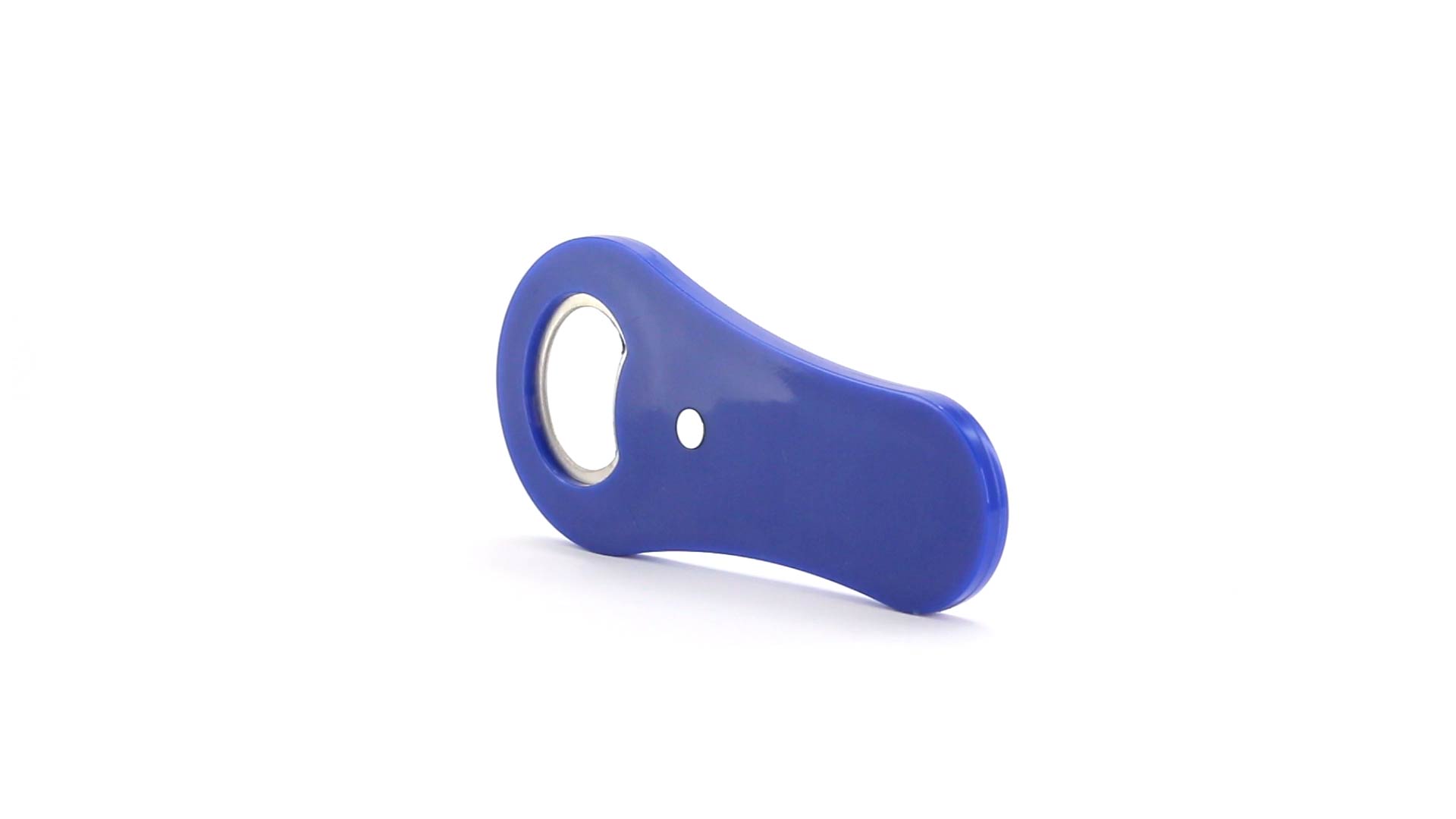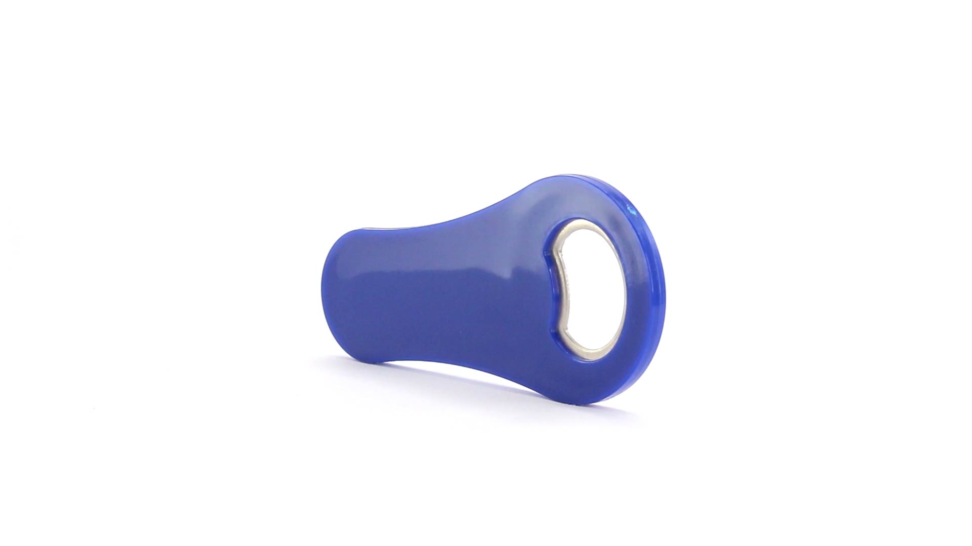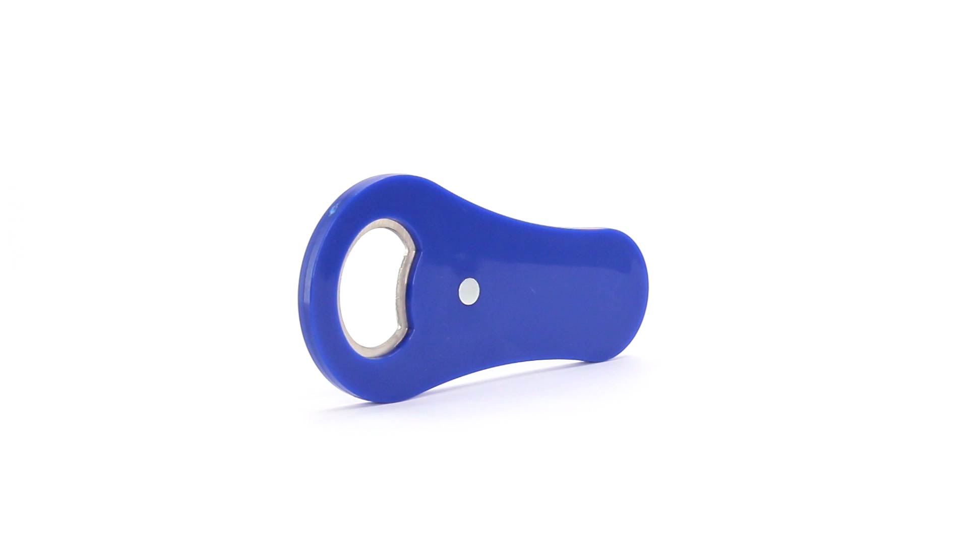 Magnetischer Flaschenöffner mit robustem Körper in verschiedenen Farben und Metallheber zum Öffnen.