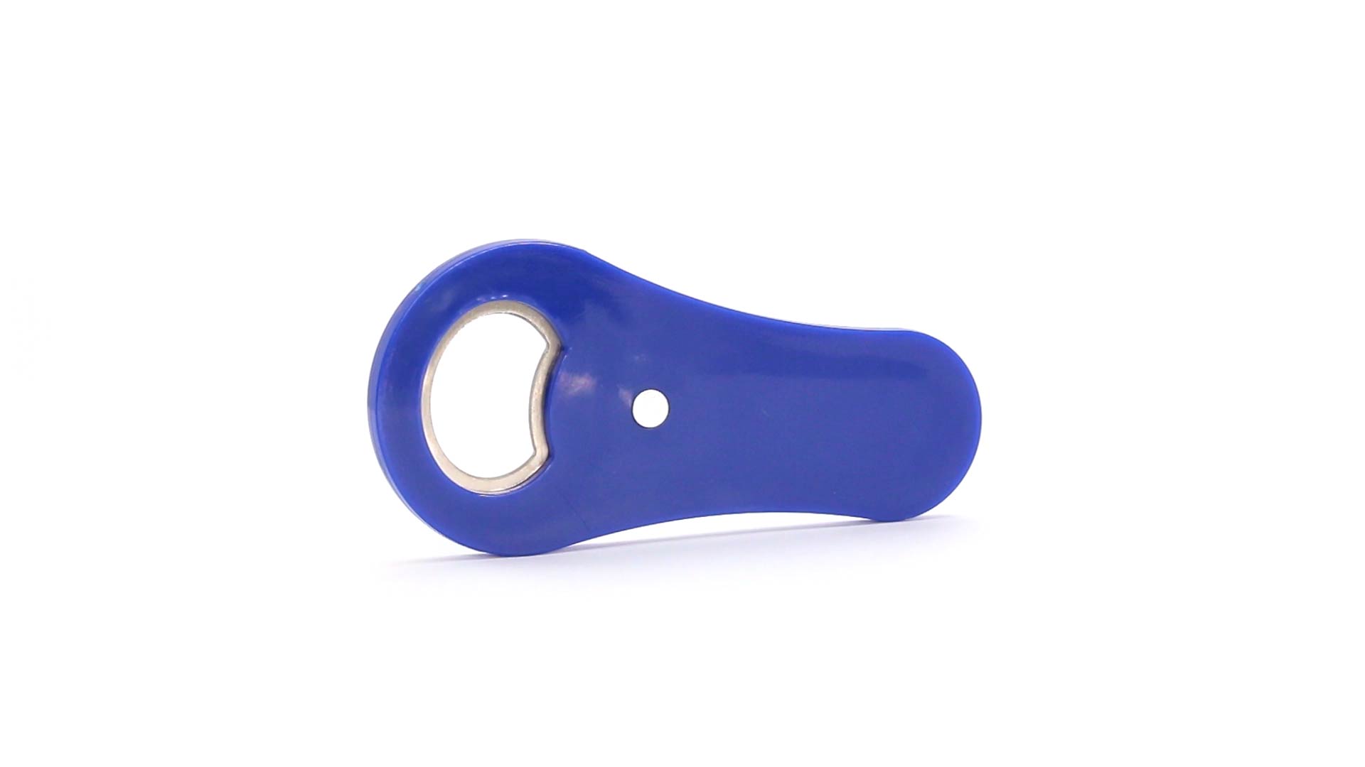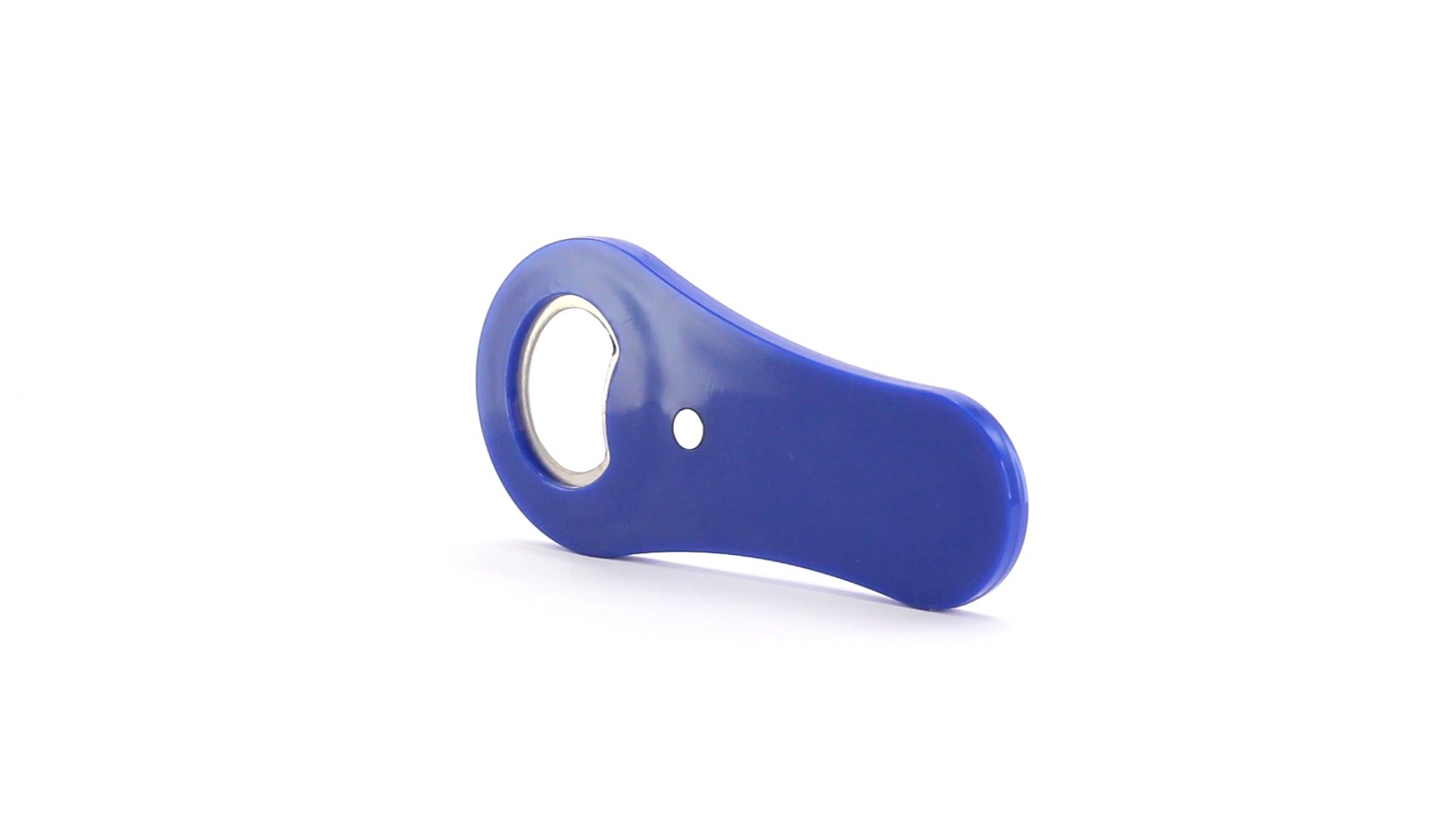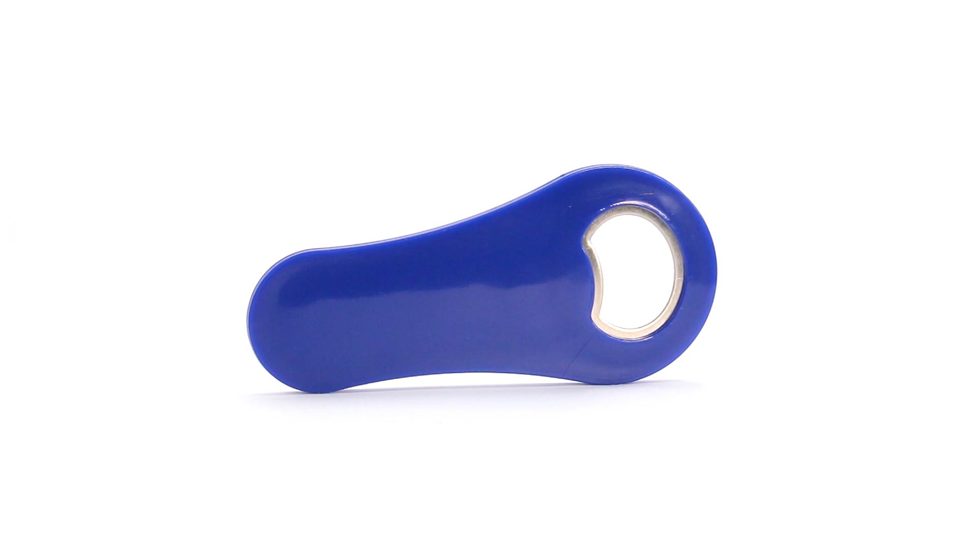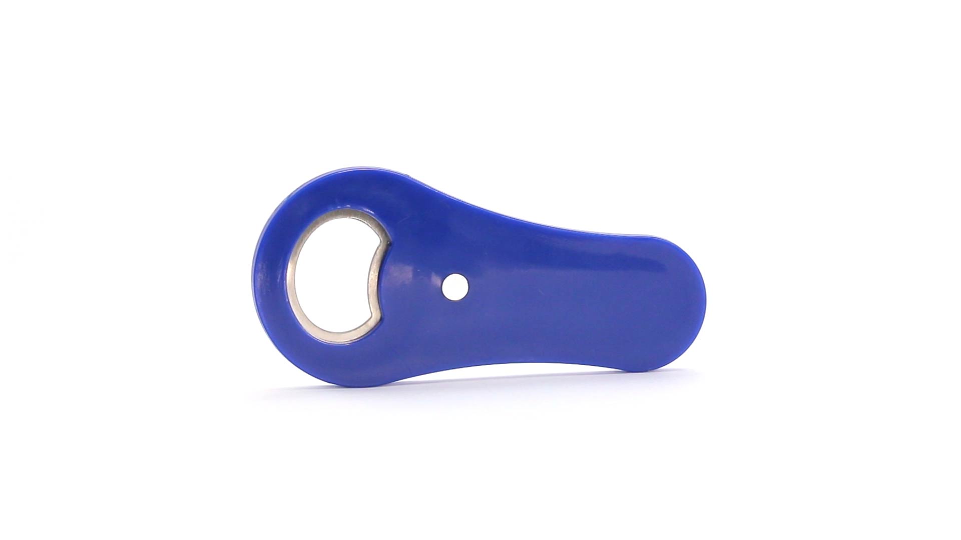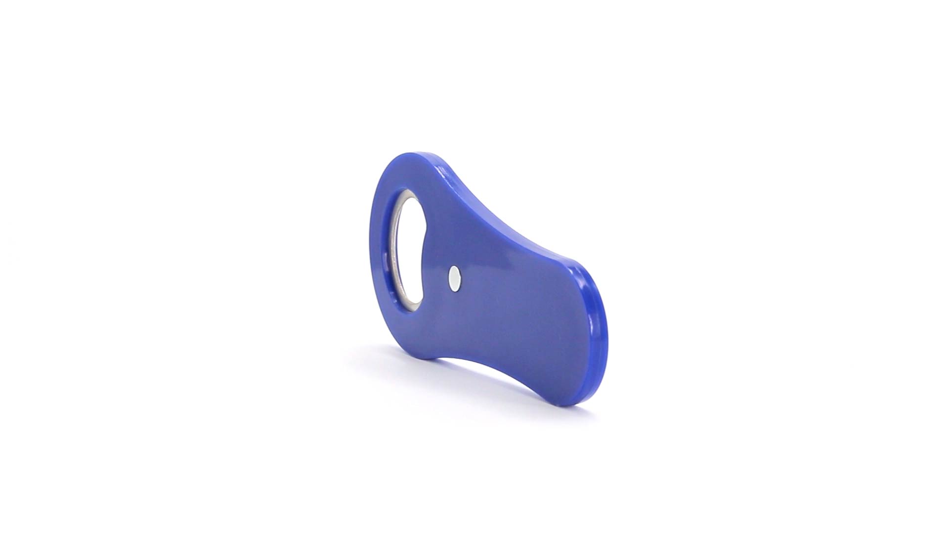Magnetischer Flaschenöffner mit robustem Körper in verschiedenen Farben und Metallheber zum Öffnen.
