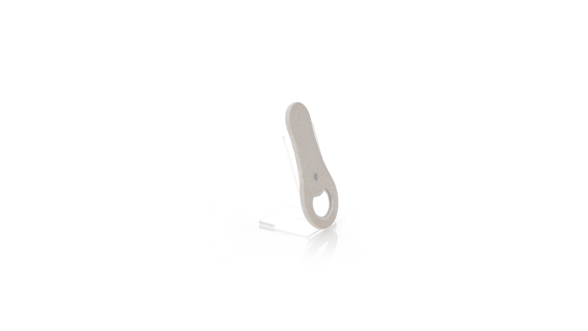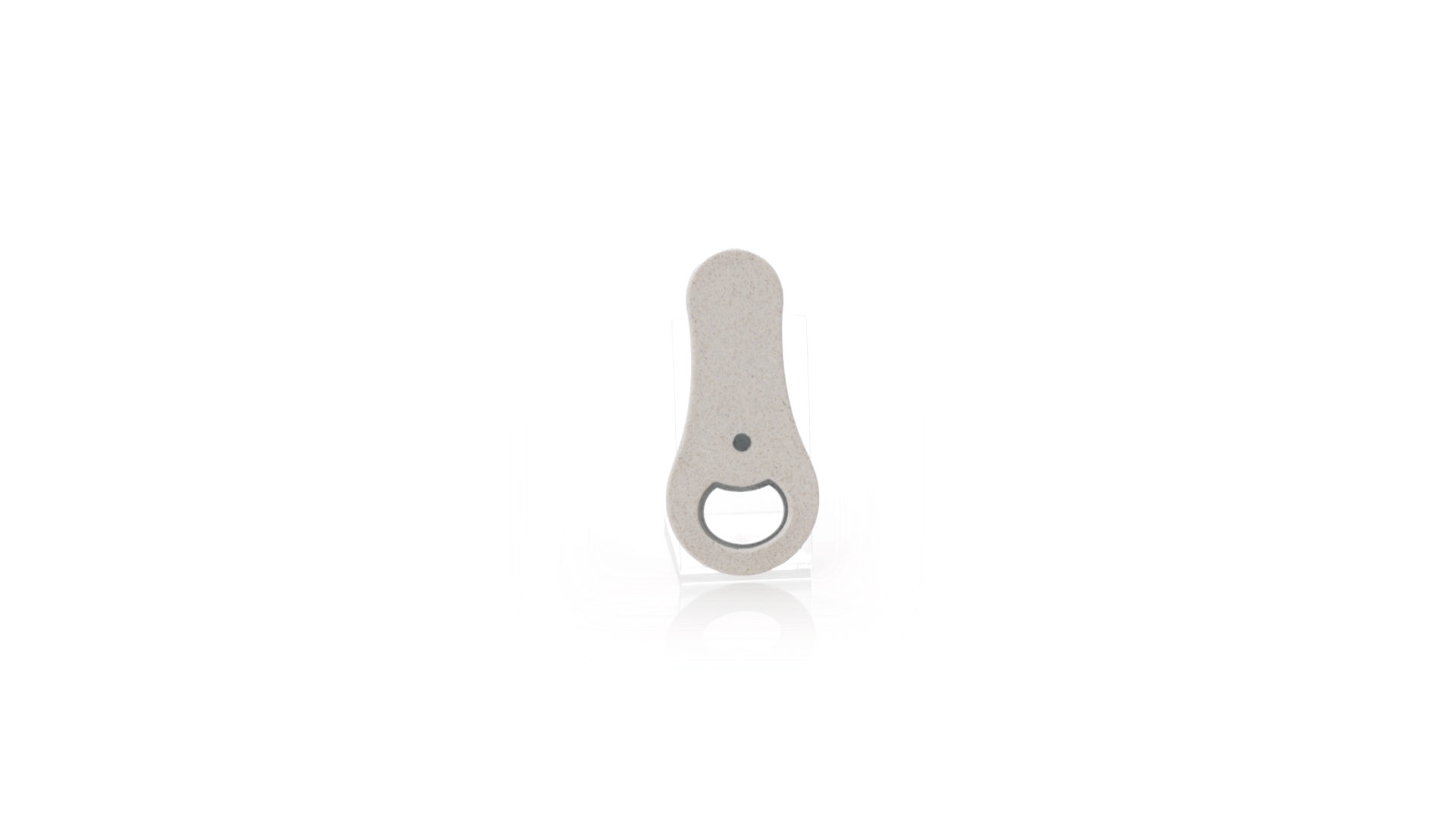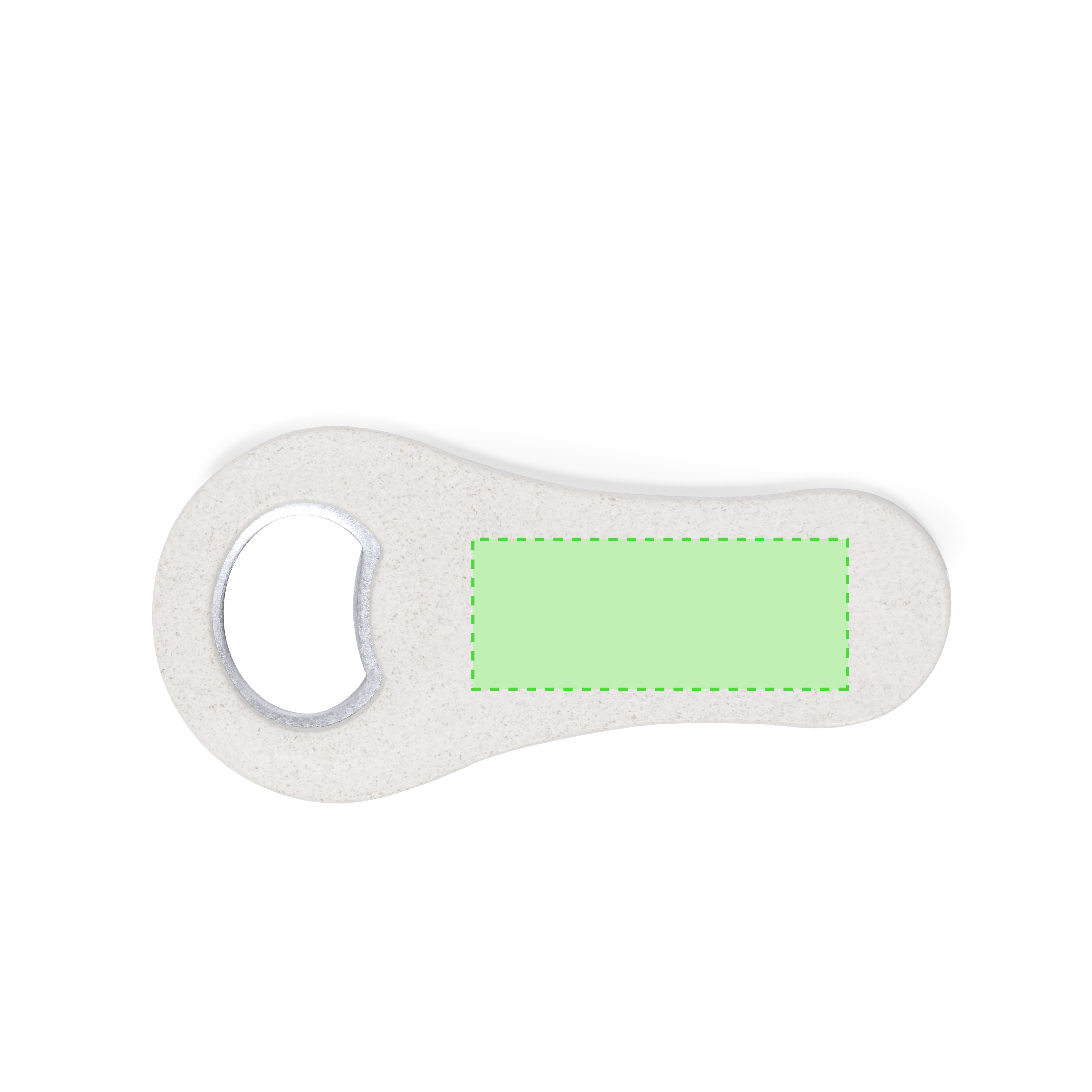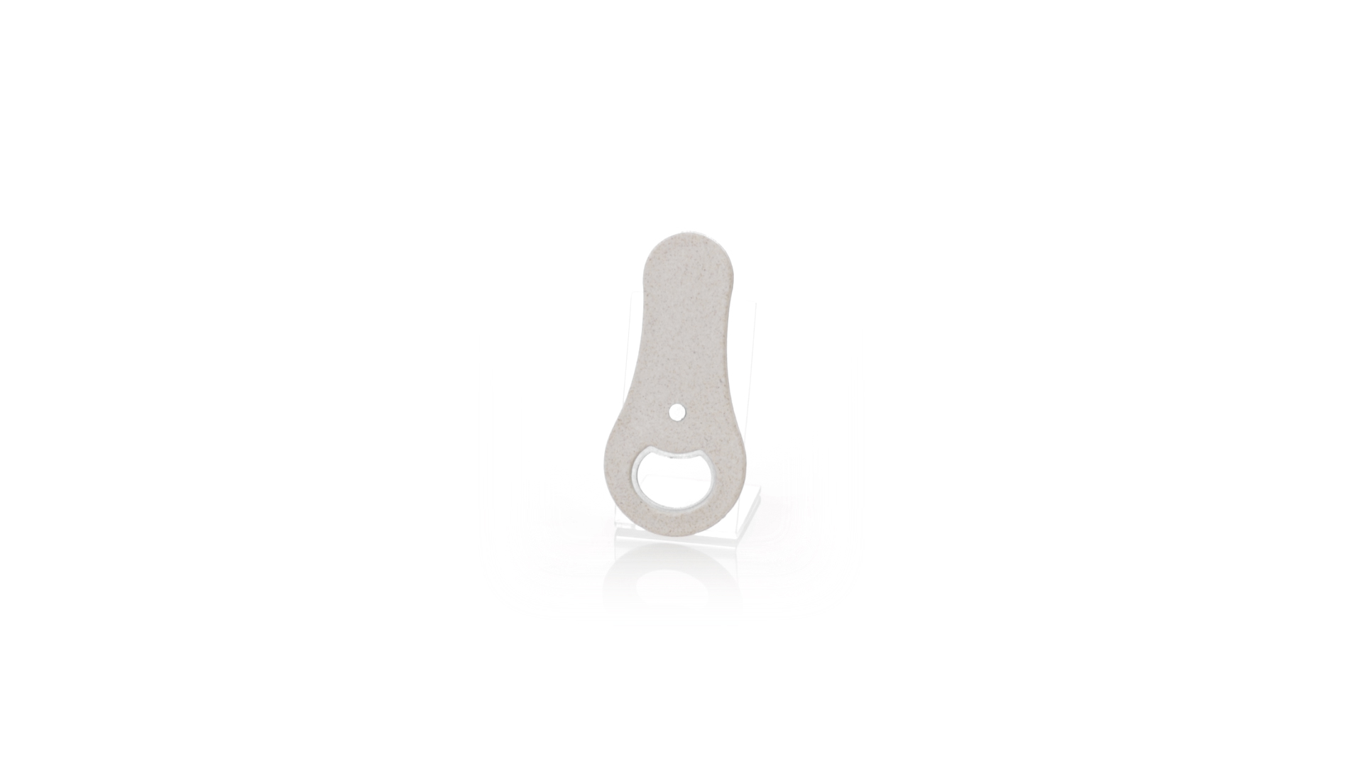 Flaschenöffner aus Weizenstroh. Es verfügt über einen Magneten zur Befestigung an jeder Metalloberfläche. Einzeln präsentiert in einer recycelten Papiertüte.