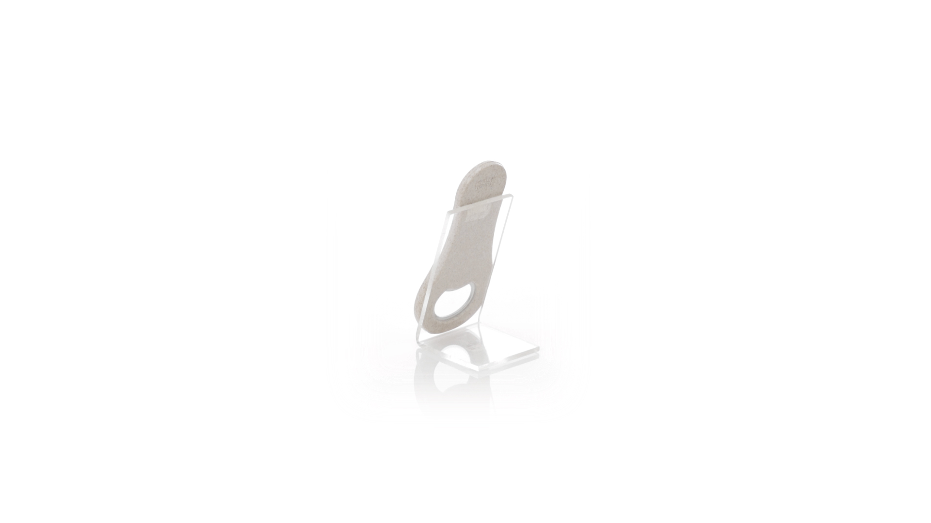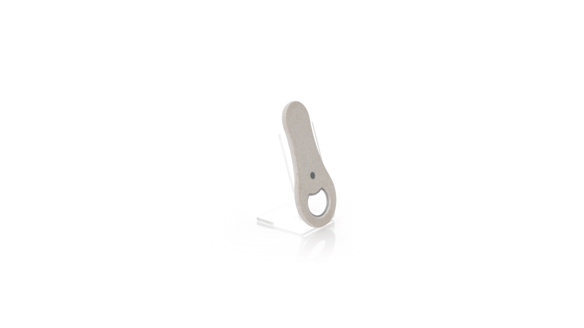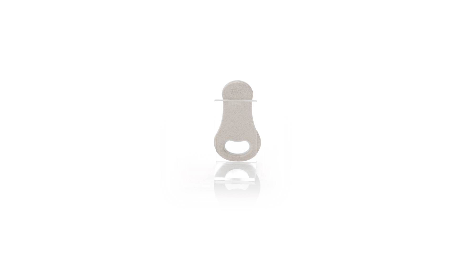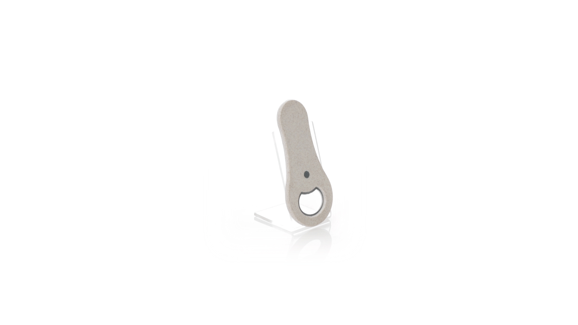 Flaschenöffner aus Weizenstroh. Es verfügt über einen Magneten zur Befestigung an jeder Metalloberfläche. Einzeln präsentiert in einer recycelten Papiertüte.