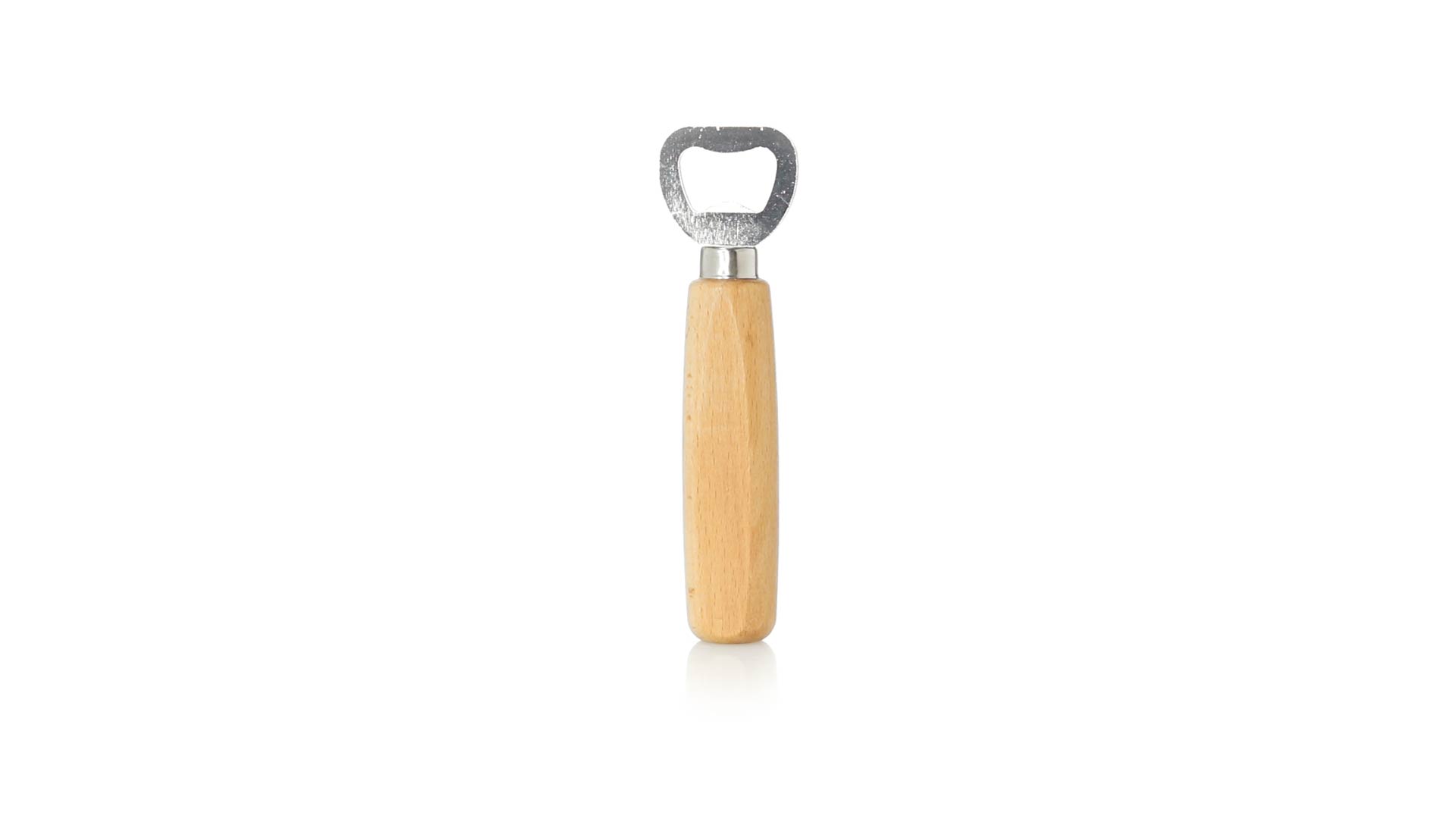 Flaschenöffner aus Buchenholz mit Edelstahlkern.