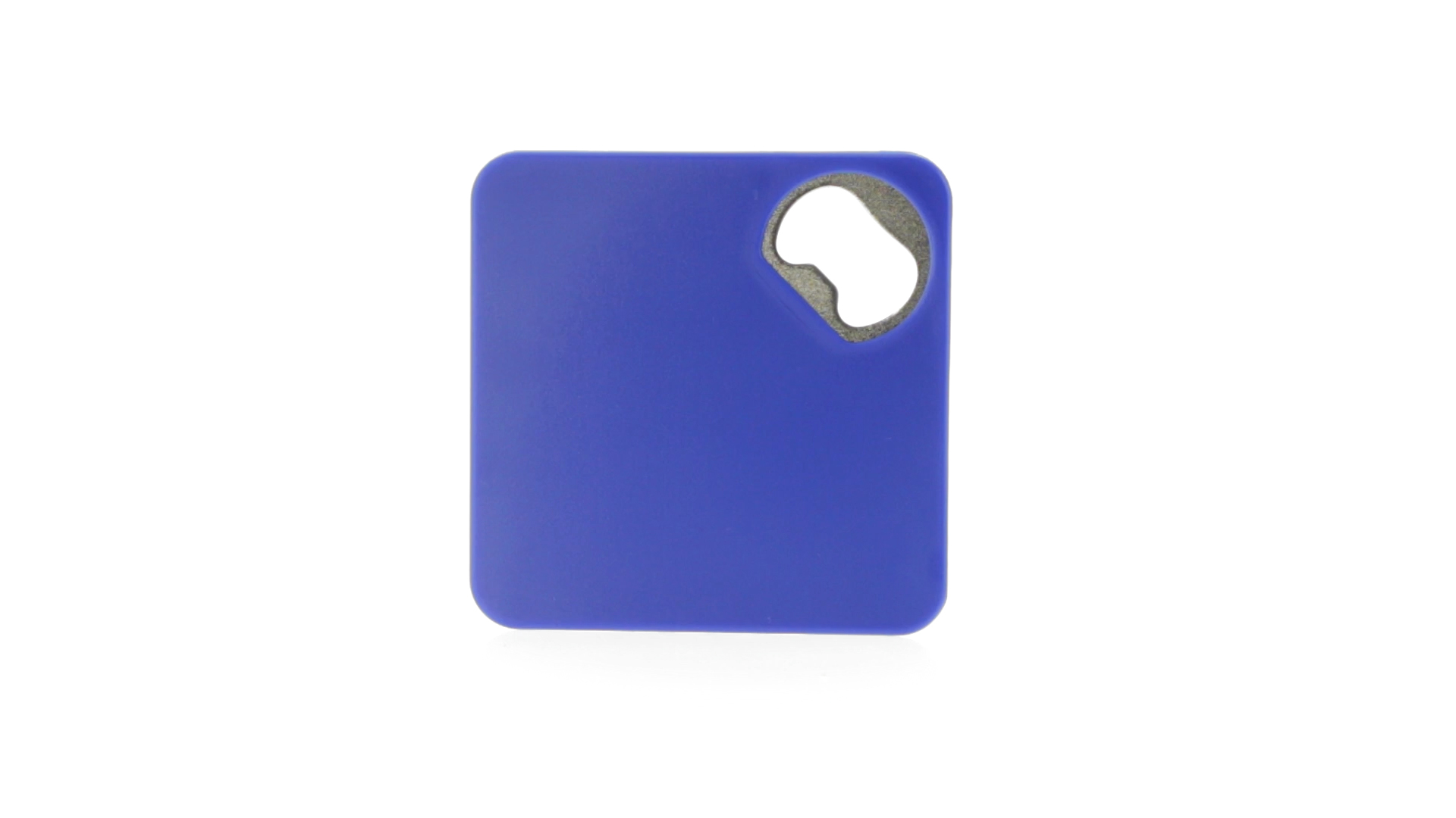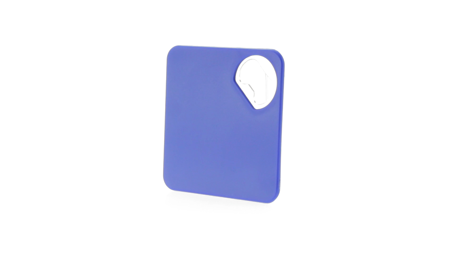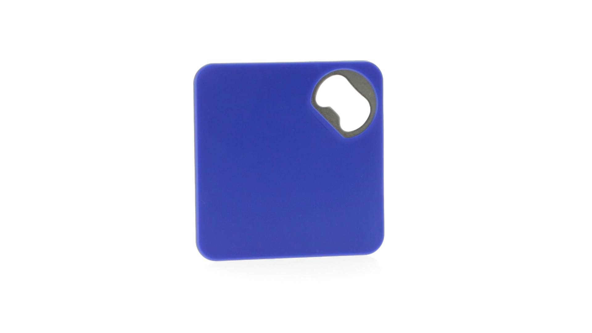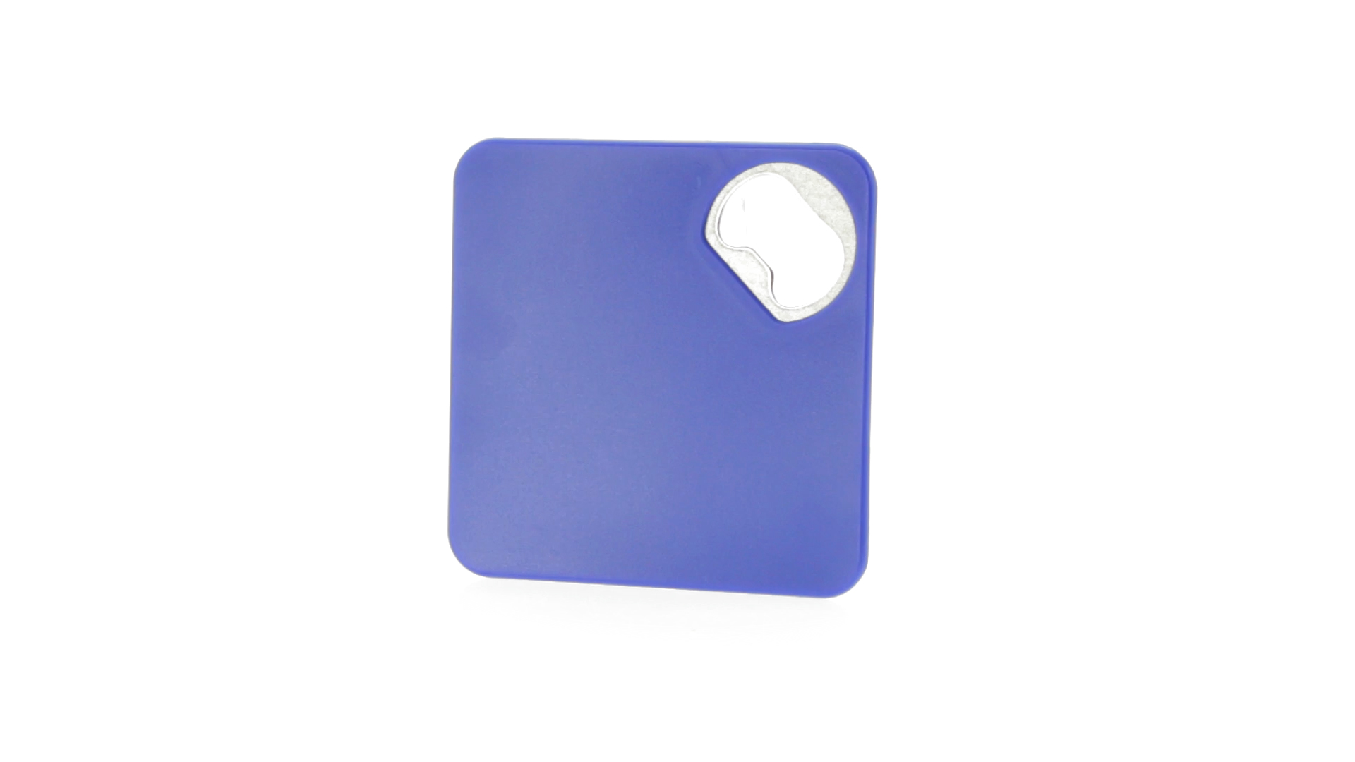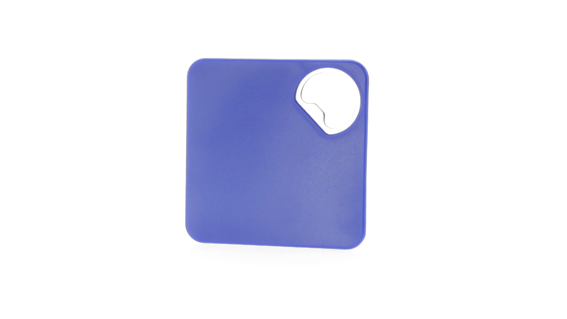 Origineller Untersetzer mit integriertem Metall-Flaschenöffner in einer Vielzahl von lebendigen Farben. Mit rutschfester Unterseite.