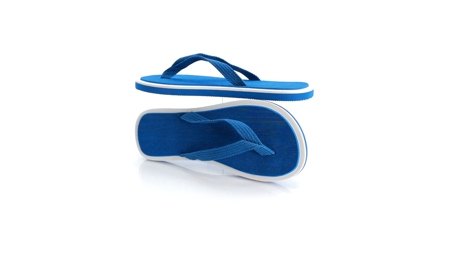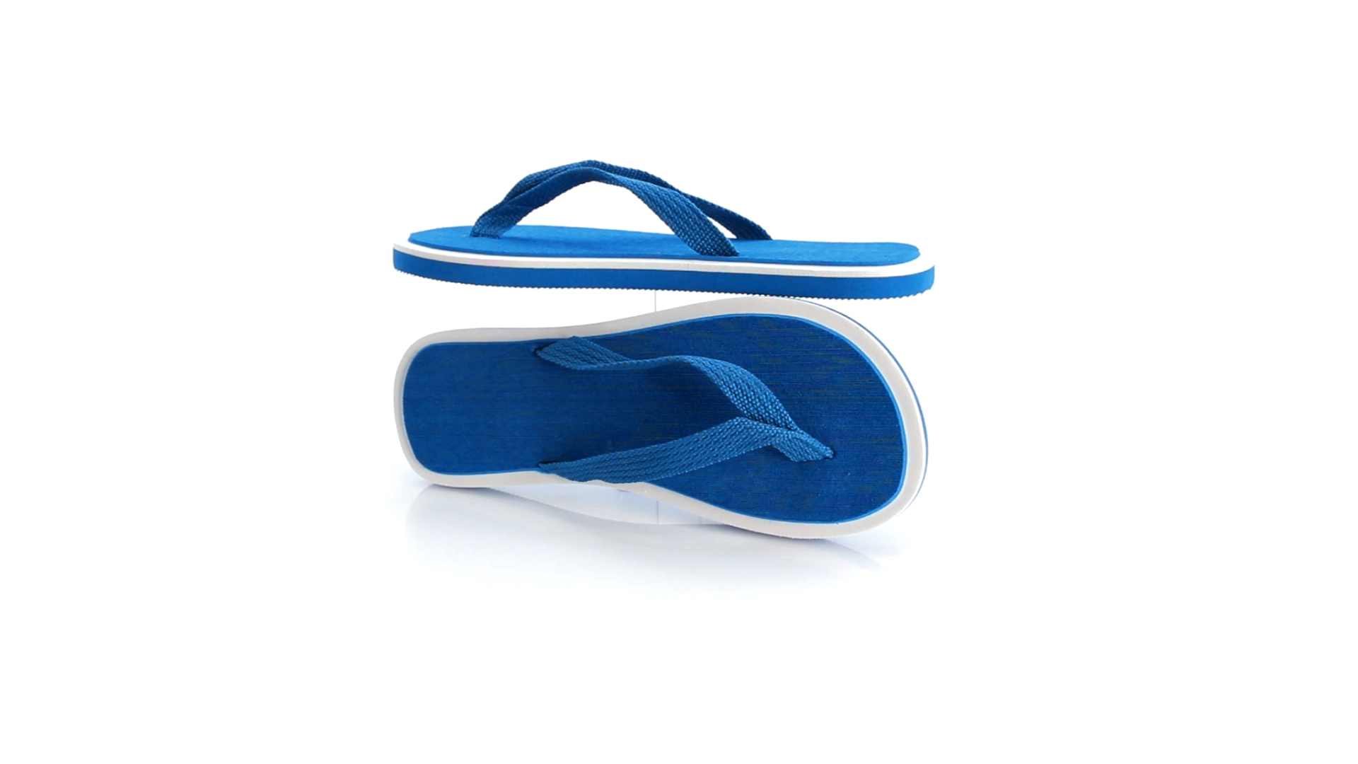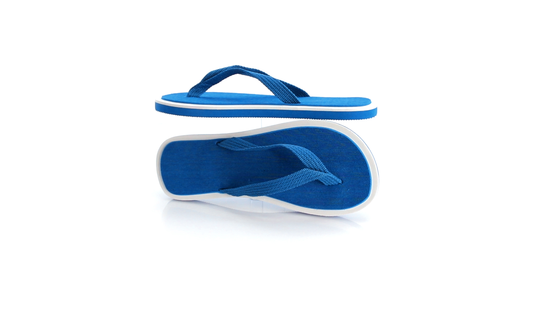 Flip Flops mit dicker Sohle aus robustem EVA in zweifarbiger Ausführung mit farblich passenden Nylonriemen in verschiedenen lebendigen Farben. Erhältlich in den Grössen 36-38 und 42-44.