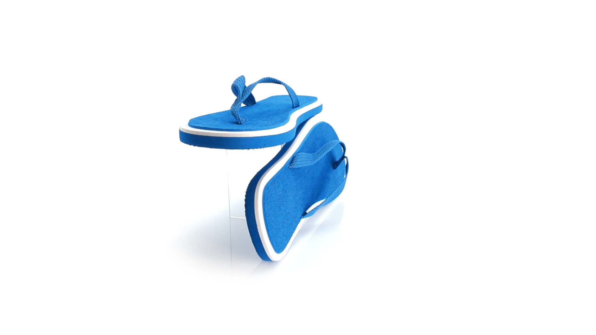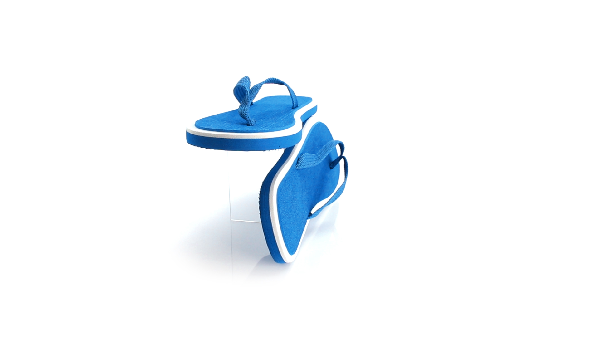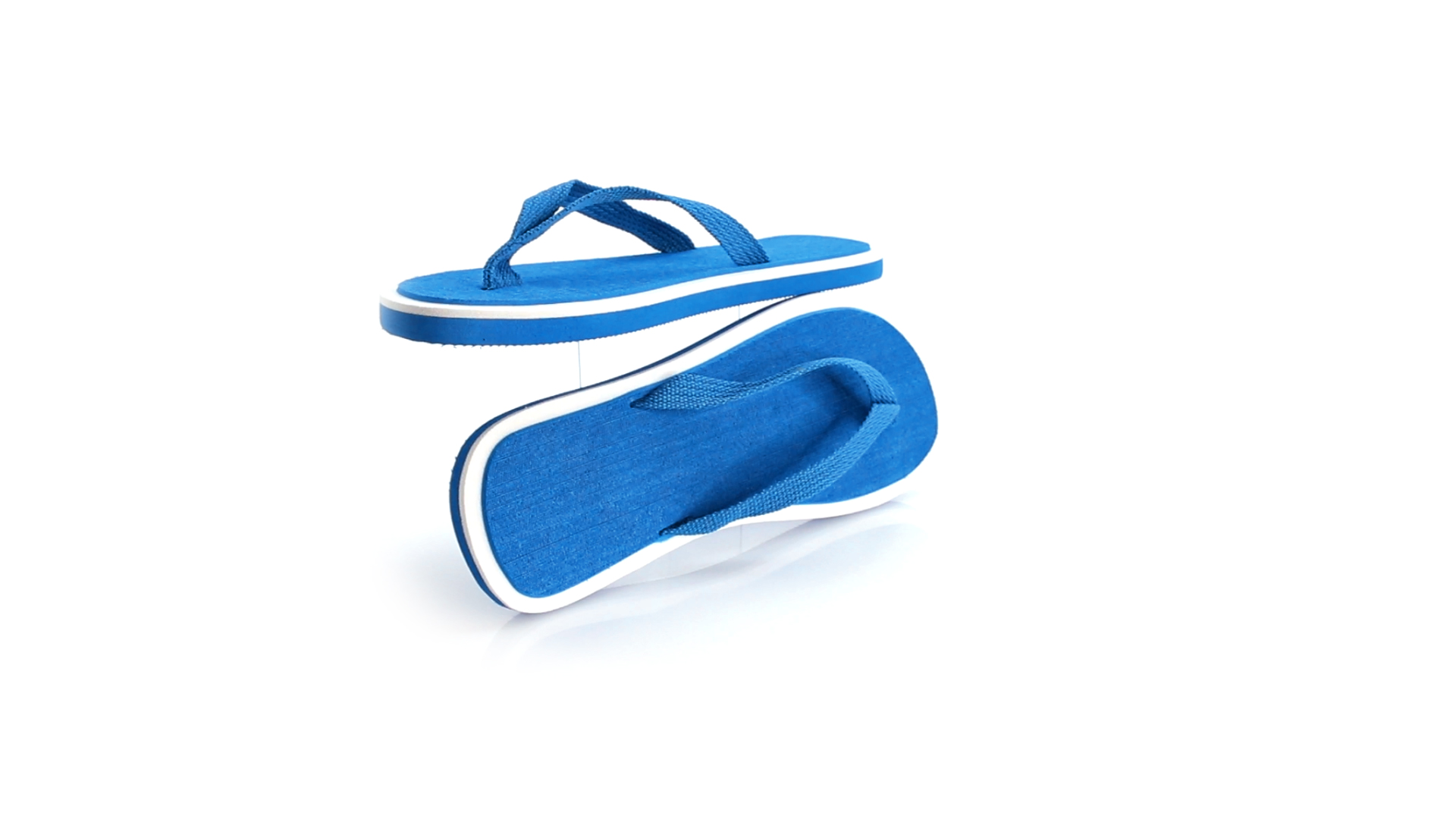 Flip Flops mit dicker Sohle aus robustem EVA in zweifarbiger Ausführung mit farblich passenden Nylonriemen in verschiedenen lebendigen Farben. Erhältlich in den Grössen 36-38 und 42-44.