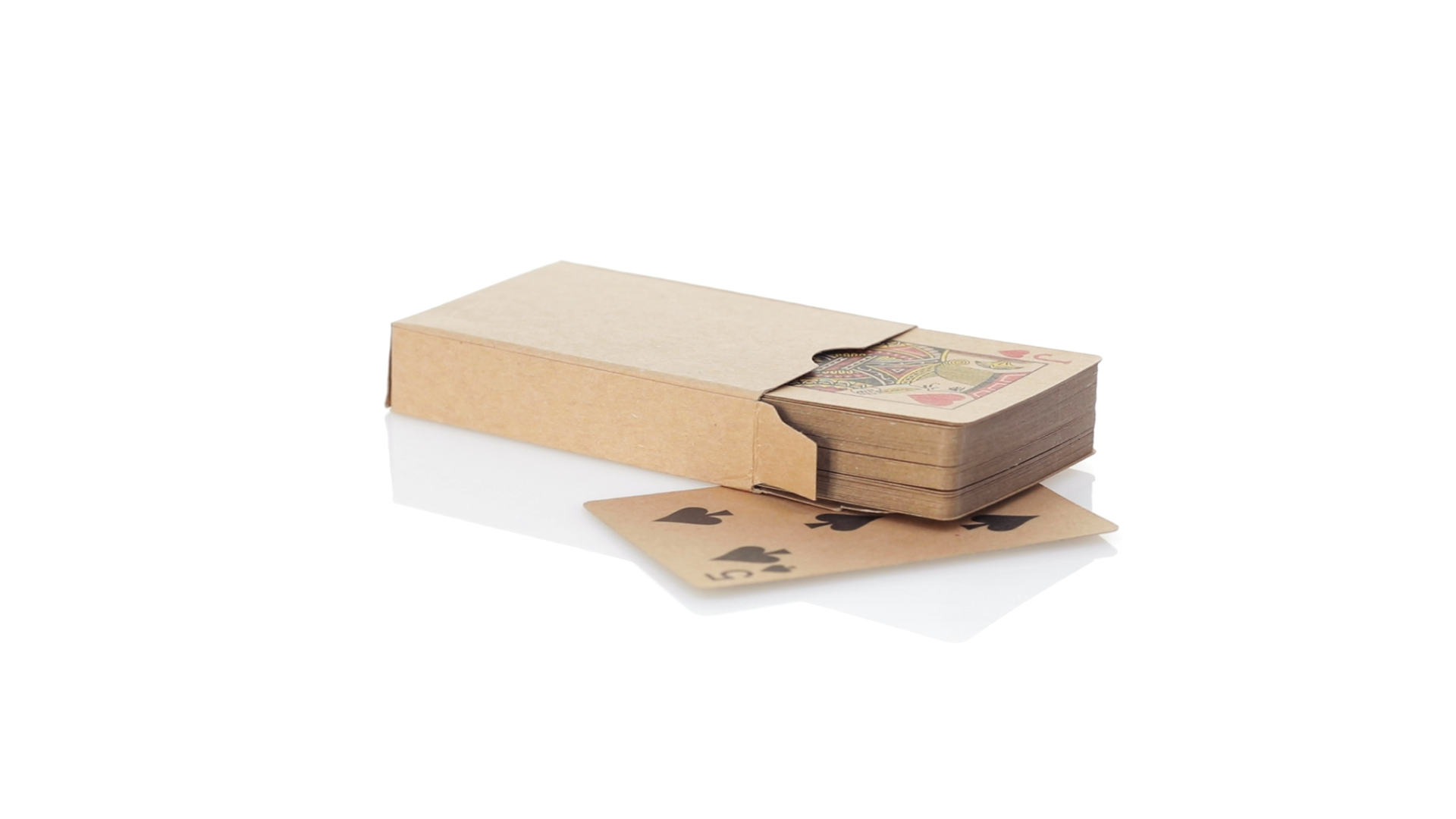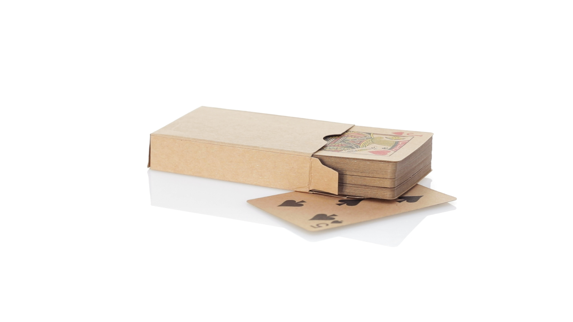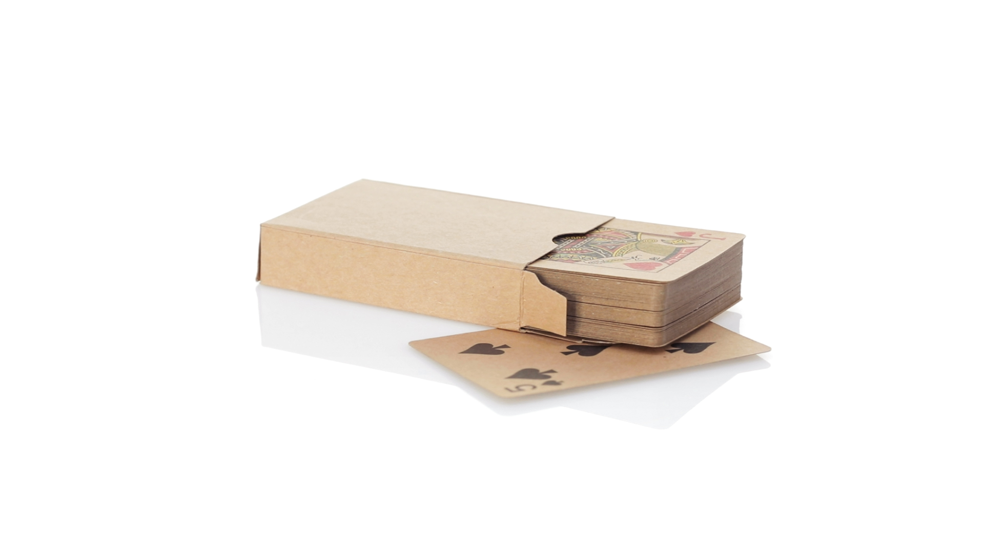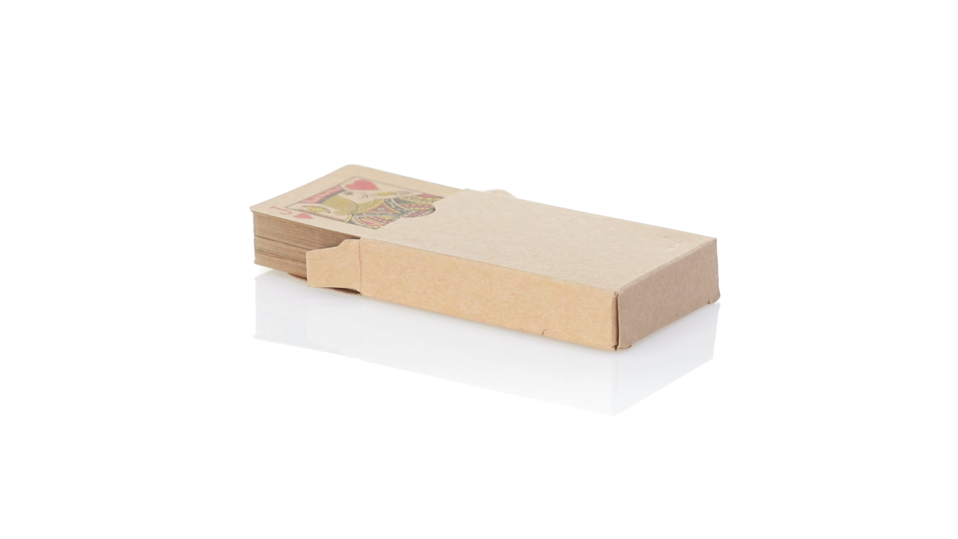 Französisches Deck der Liene "Natur" aus widerstandsfähigem Recyclingkarton. Enthält 54 Spielkarten, die in einer einzelnen Recycling-Kartonschachtel präsentiert werden.