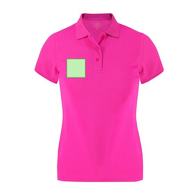 Eng anliegendes Poloshirt mit kurzen Ärmeln und femininer Passform, gefertigt aus 100 % Polyester-Technikstoff von 180 g/m². Weich, leicht und bequem integriert sie die Cool Dry-Technologie, die die Atmungsaktivität fördert und während der Nutzung ein frisches, trockenes Gefühl bewahrt. Mit einer passenden Drei-Knöpfe-Leiste und Seitenschlitzen.