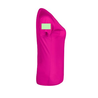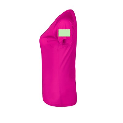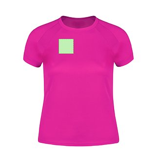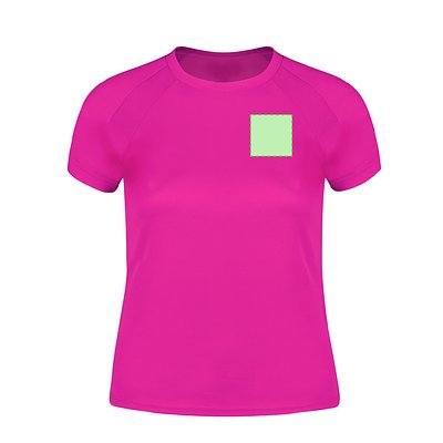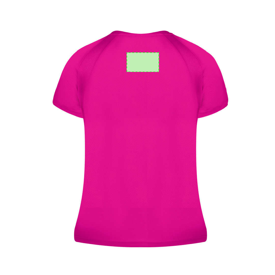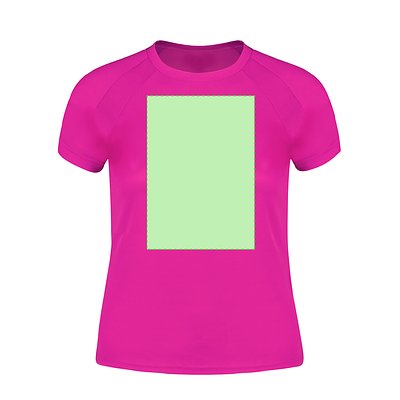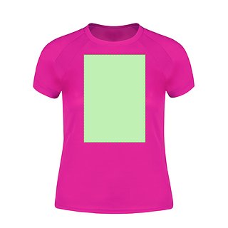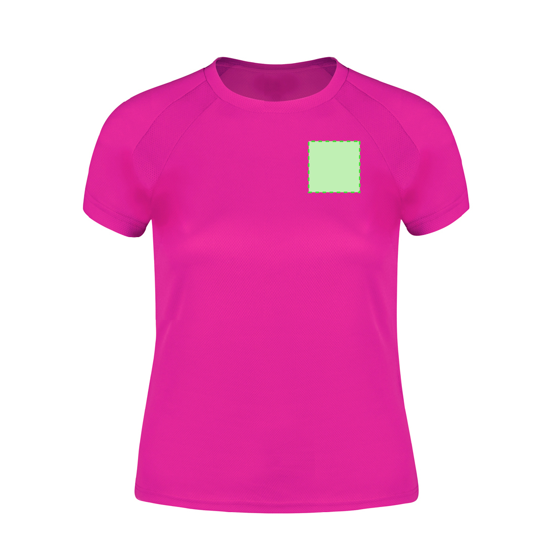 Damen-T-Shirt aus 100% atmungsaktivem Polyester mit 135g/m2. Mit Ranglan-Ärmeln, Rundhalsausschnitt und Front- und Seitenstreifen aus atmungsaktivem, mikroperforiertem Gewebe. Erhältlich in den Grössen S, M, L, XL.