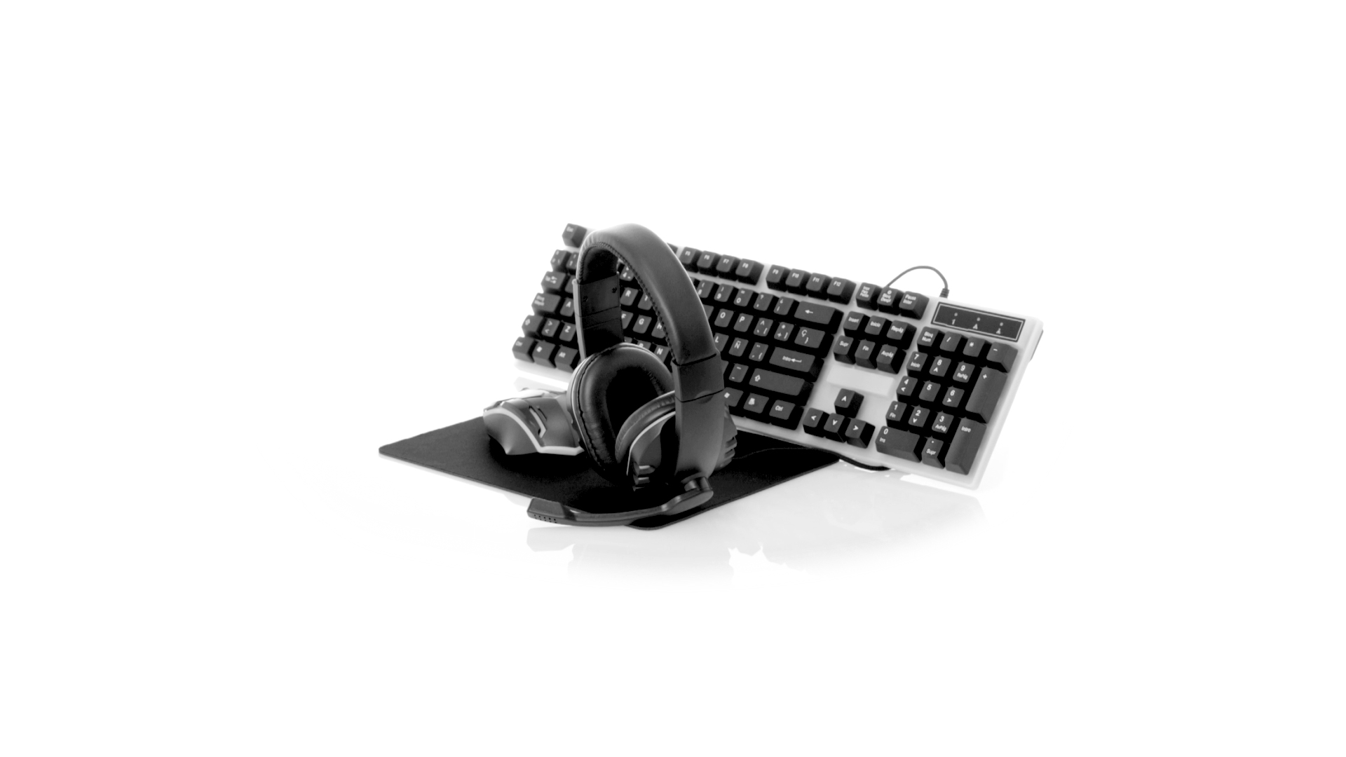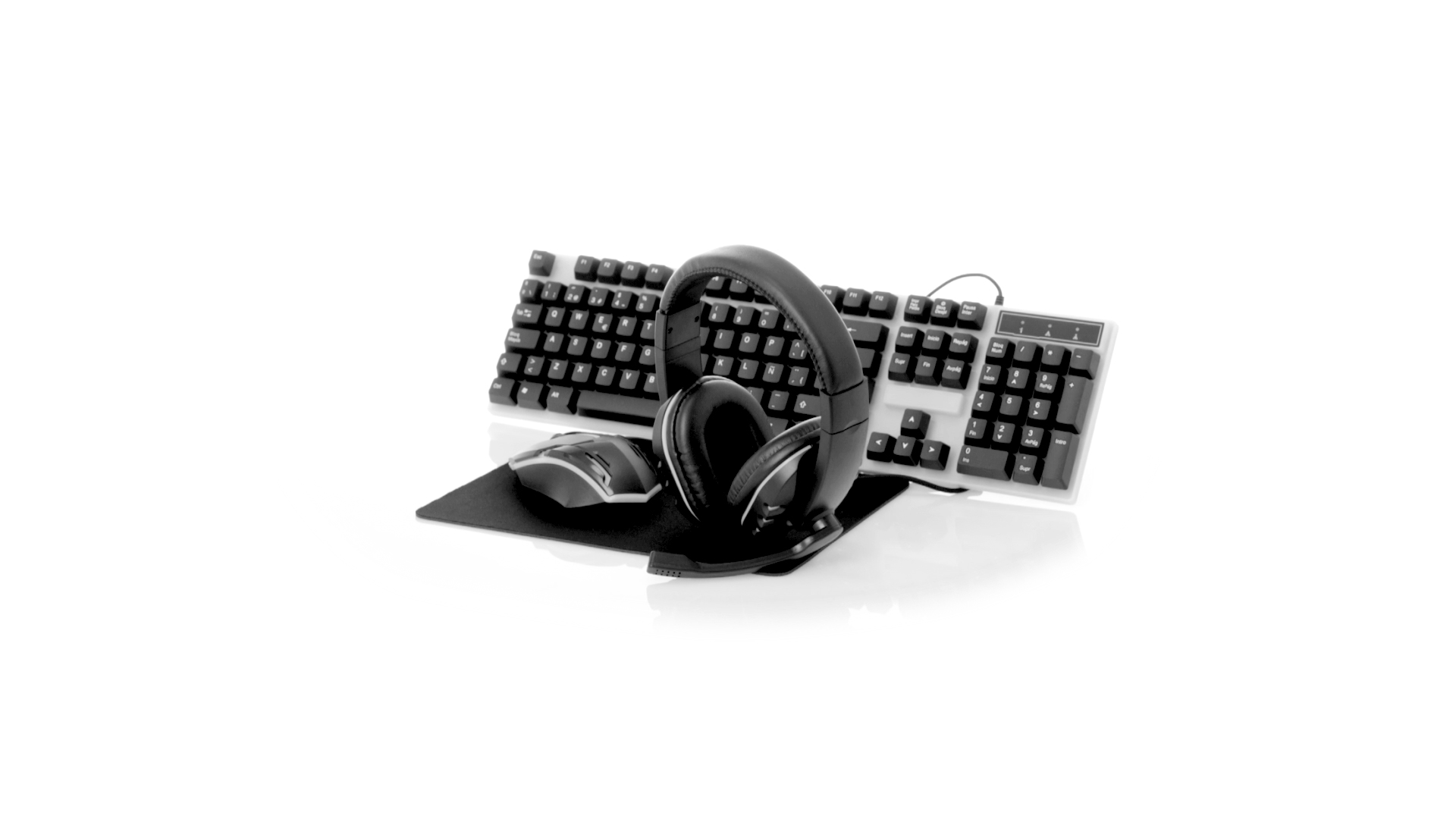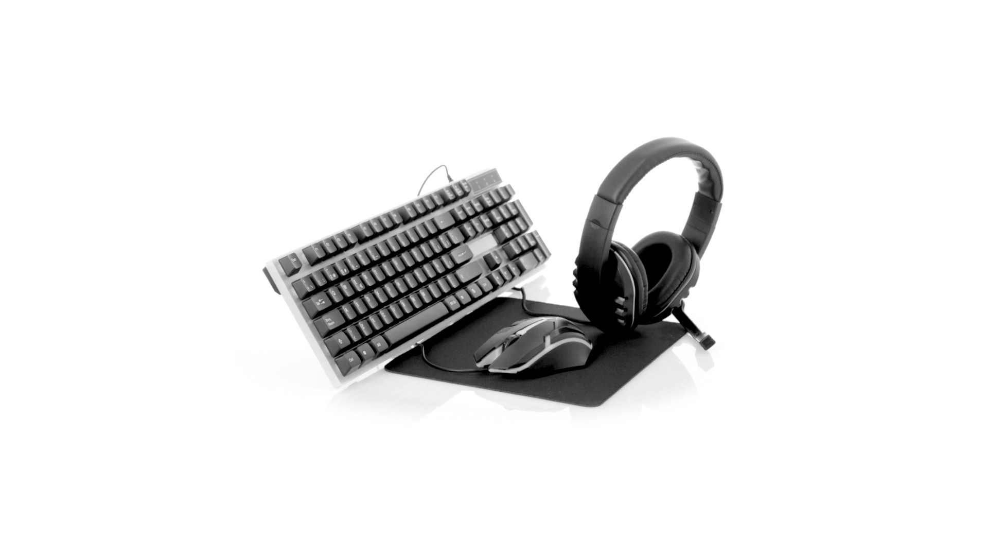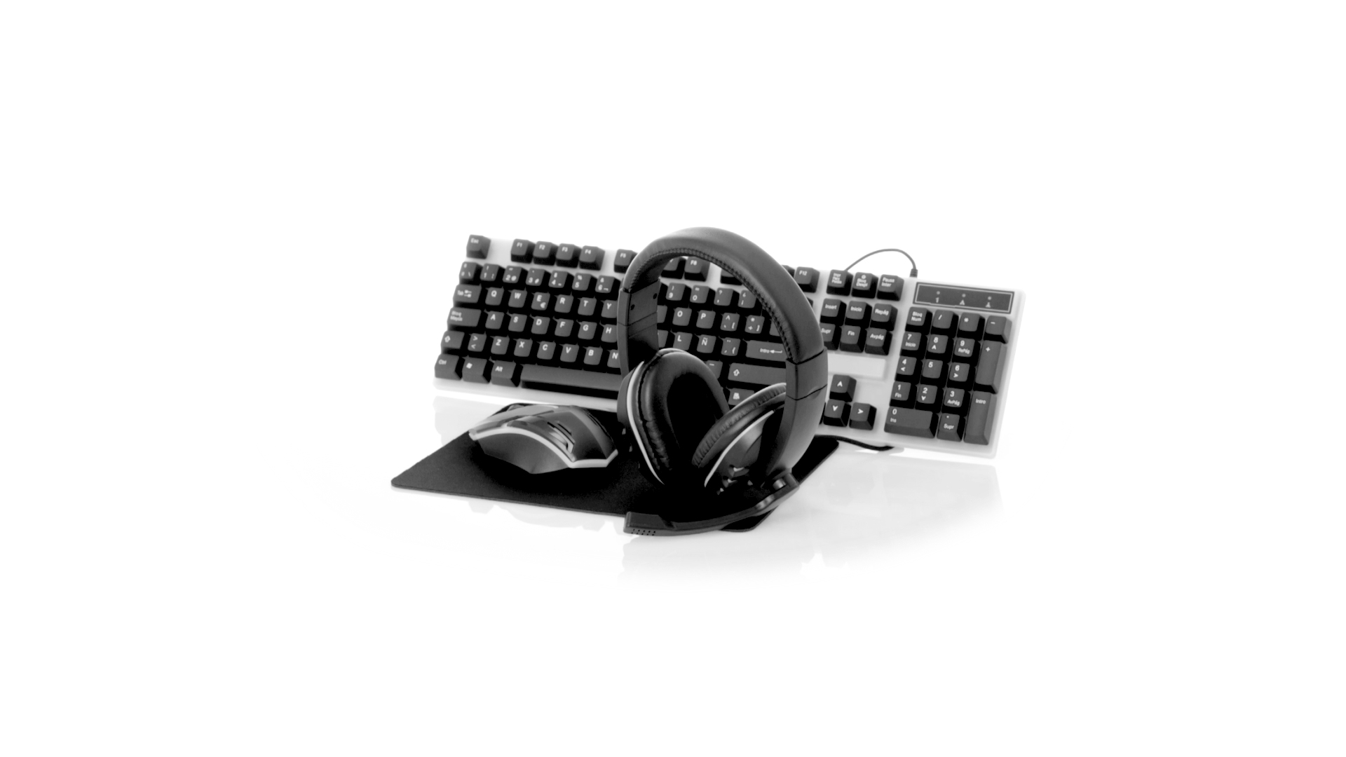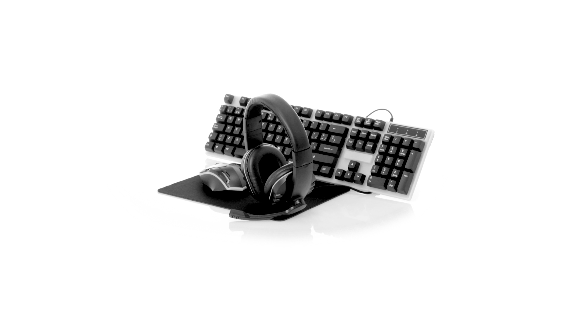 Gamer-Set für ein intensives Spielerlebnis. Enthält eine optische Maus und eine QWERTY-Tastatur auf Spanisch, beide mit mehrfarbiger LED-Hintergrundbeleuchtung und USB-Kabelanschluss. Dazu kommt ein weiches Mauspad aus Polyester mit rutschfester Silikonunterlage, perfekt für eine präzise Maussteuerung. Vervollständigt wird das Set mit Surround-Sound-Ohrhörern mit mehrfarbiger LED-Hintergrundbeleuchtung, integriertem Mikrofon und 3,5-mm-Klinkenanschluss. Das Set ist in elegantem Schwarz gehalten und wird in einer individuellen Kraftbox geliefert.