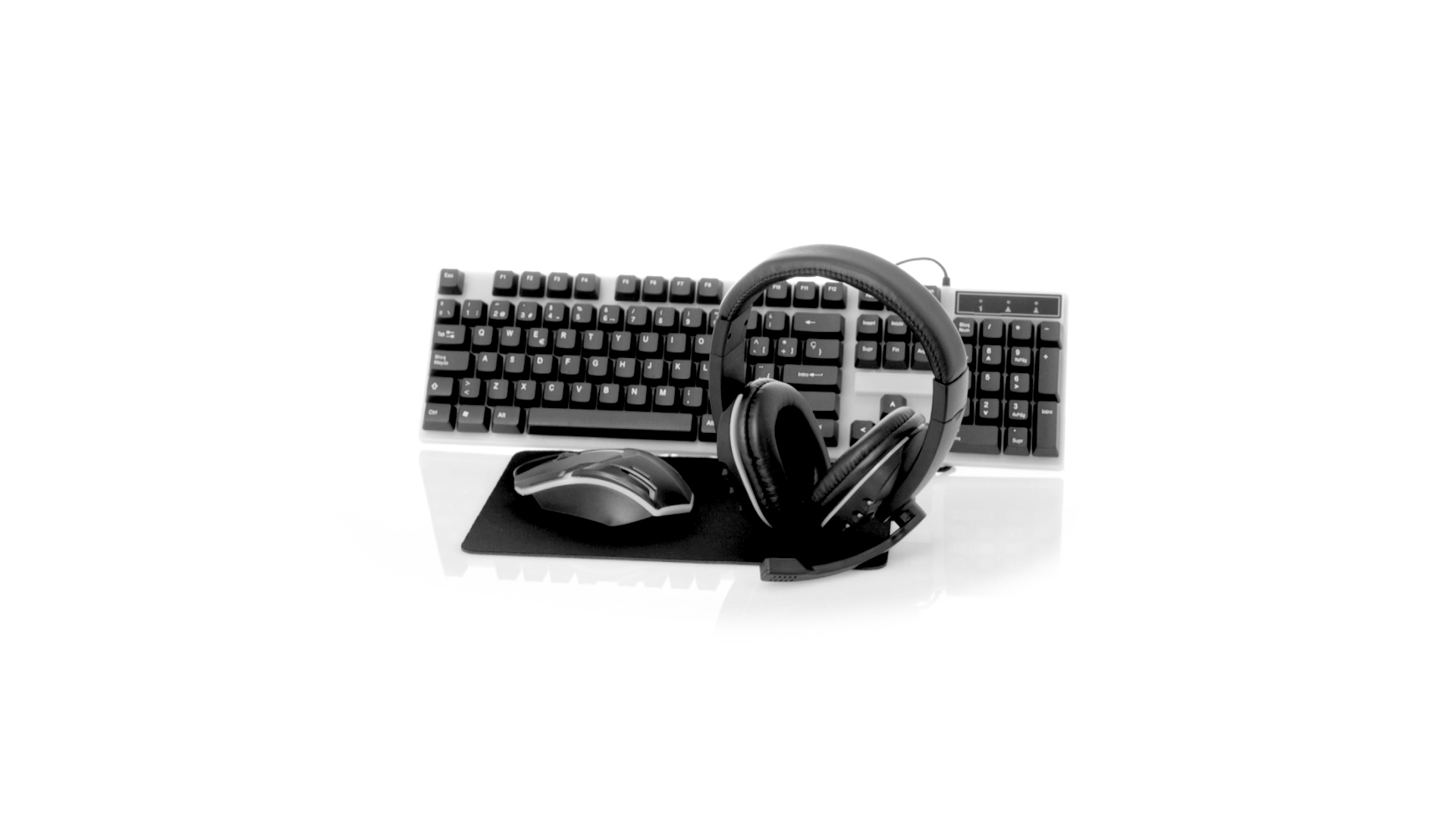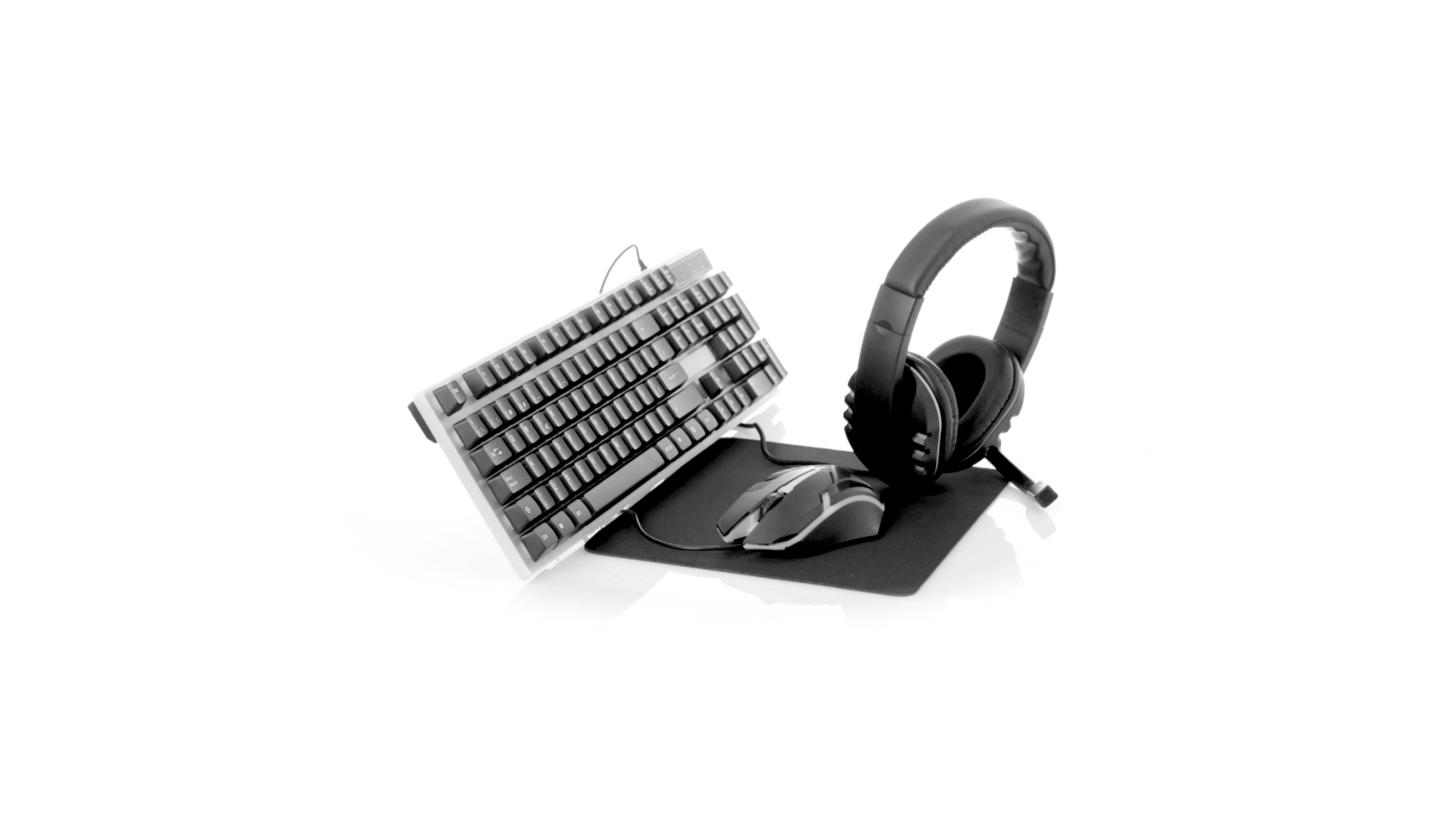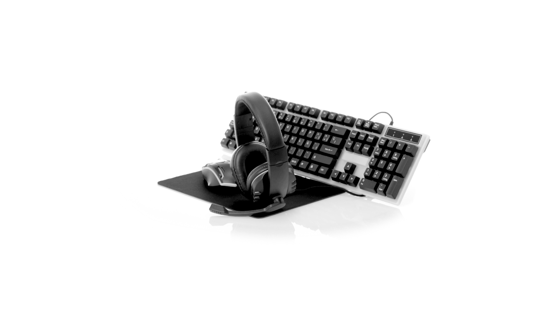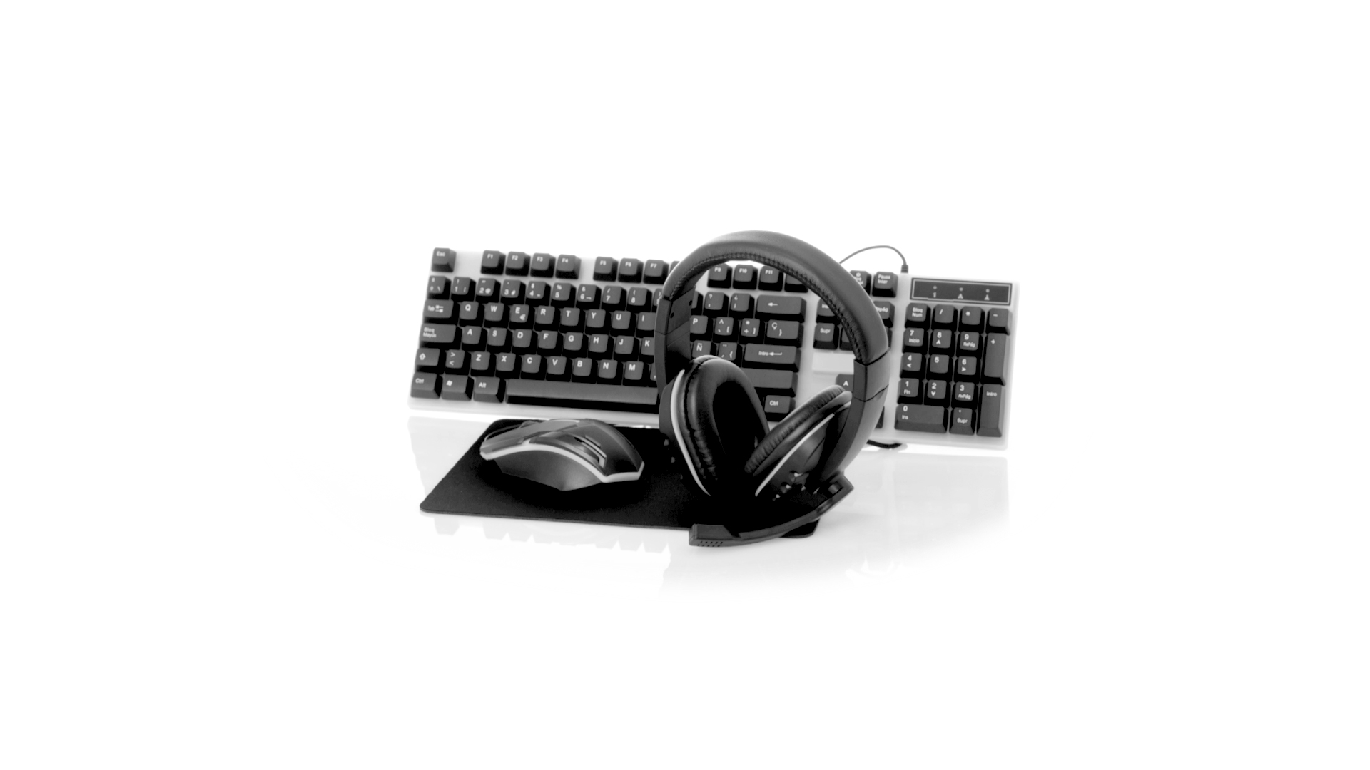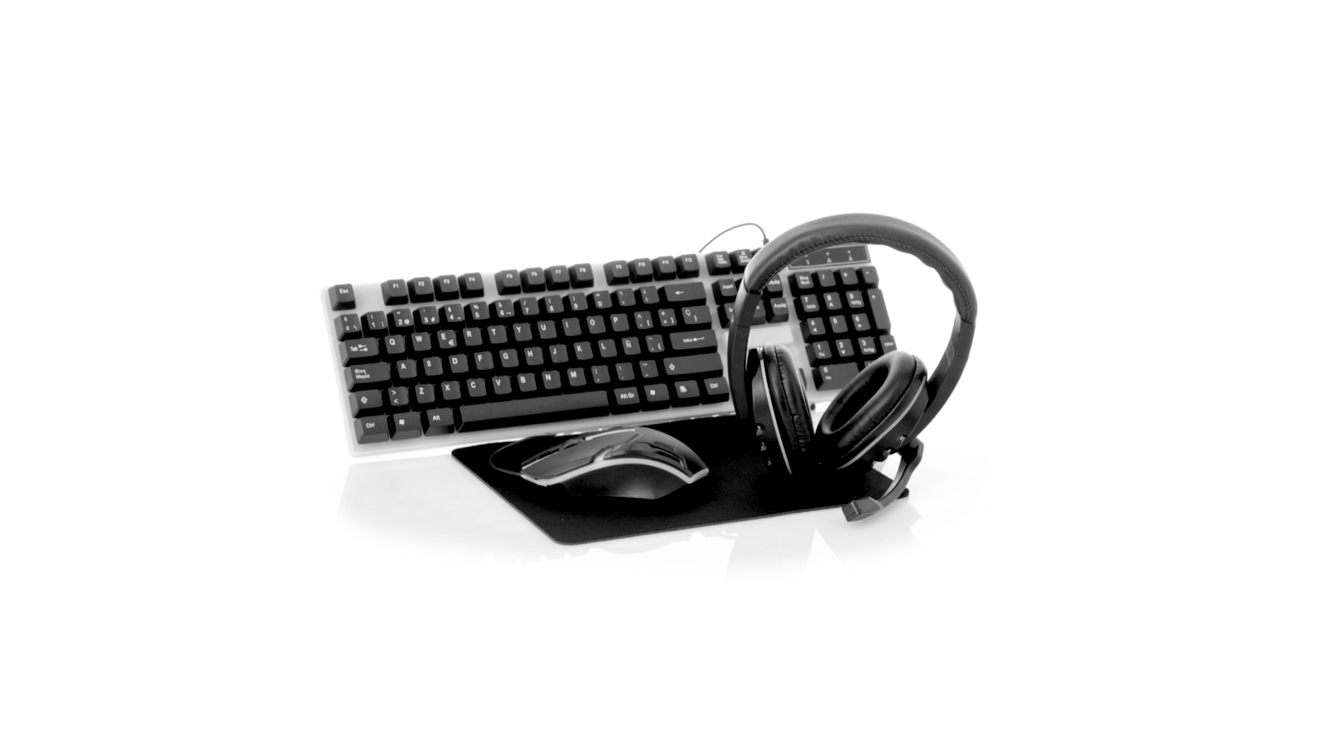 Gamer-Set für ein intensives Spielerlebnis. Enthält eine optische Maus und eine QWERTY-Tastatur auf Spanisch, beide mit mehrfarbiger LED-Hintergrundbeleuchtung und USB-Kabelanschluss. Dazu kommt ein weiches Mauspad aus Polyester mit rutschfester Silikonunterlage, perfekt für eine präzise Maussteuerung. Vervollständigt wird das Set mit Surround-Sound-Ohrhörern mit mehrfarbiger LED-Hintergrundbeleuchtung, integriertem Mikrofon und 3,5-mm-Klinkenanschluss. Das Set ist in elegantem Schwarz gehalten und wird in einer individuellen Kraftbox geliefert.