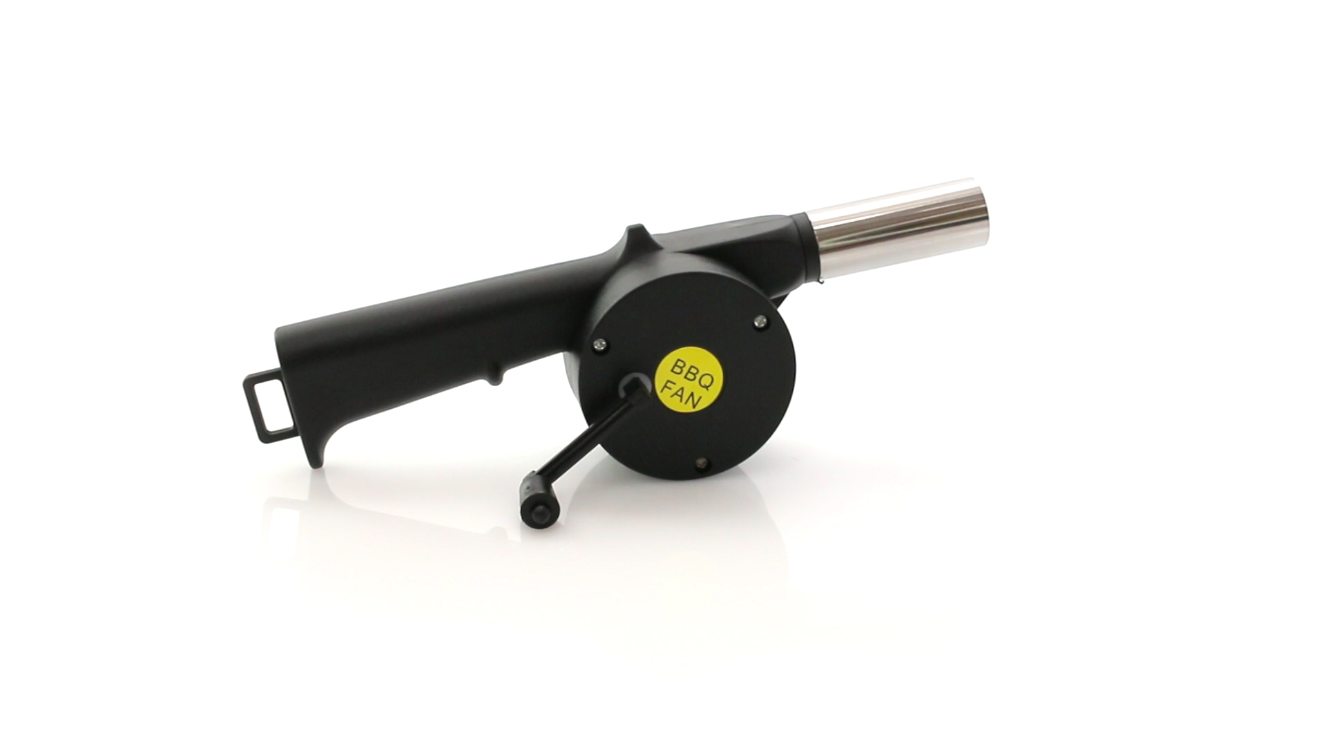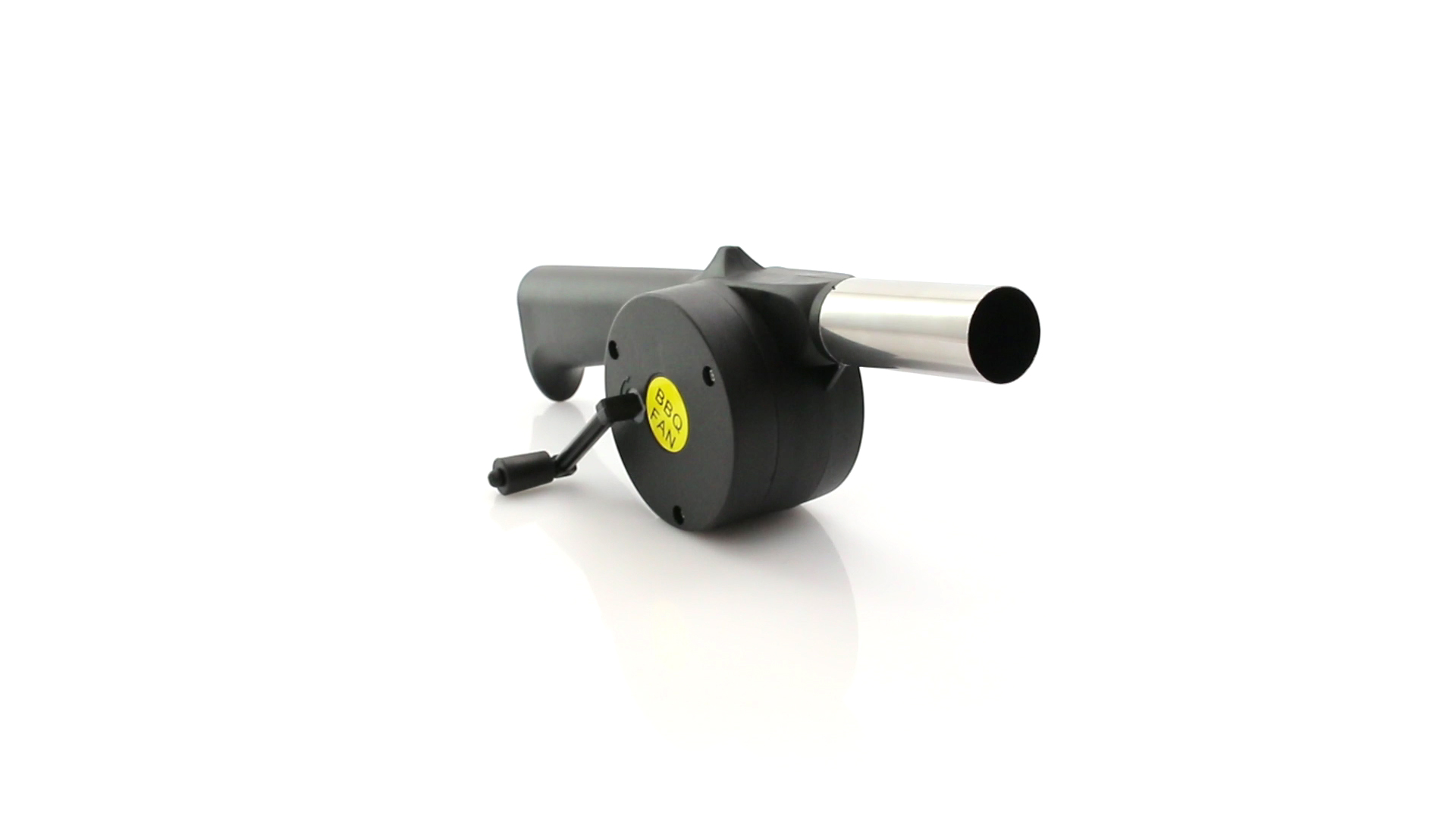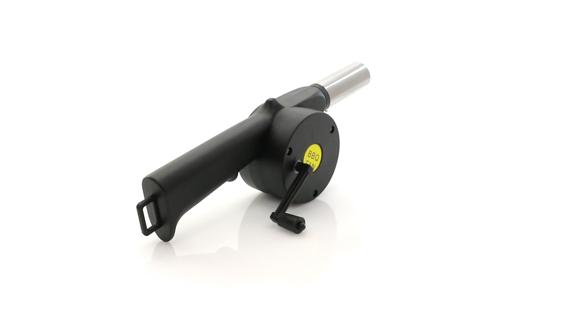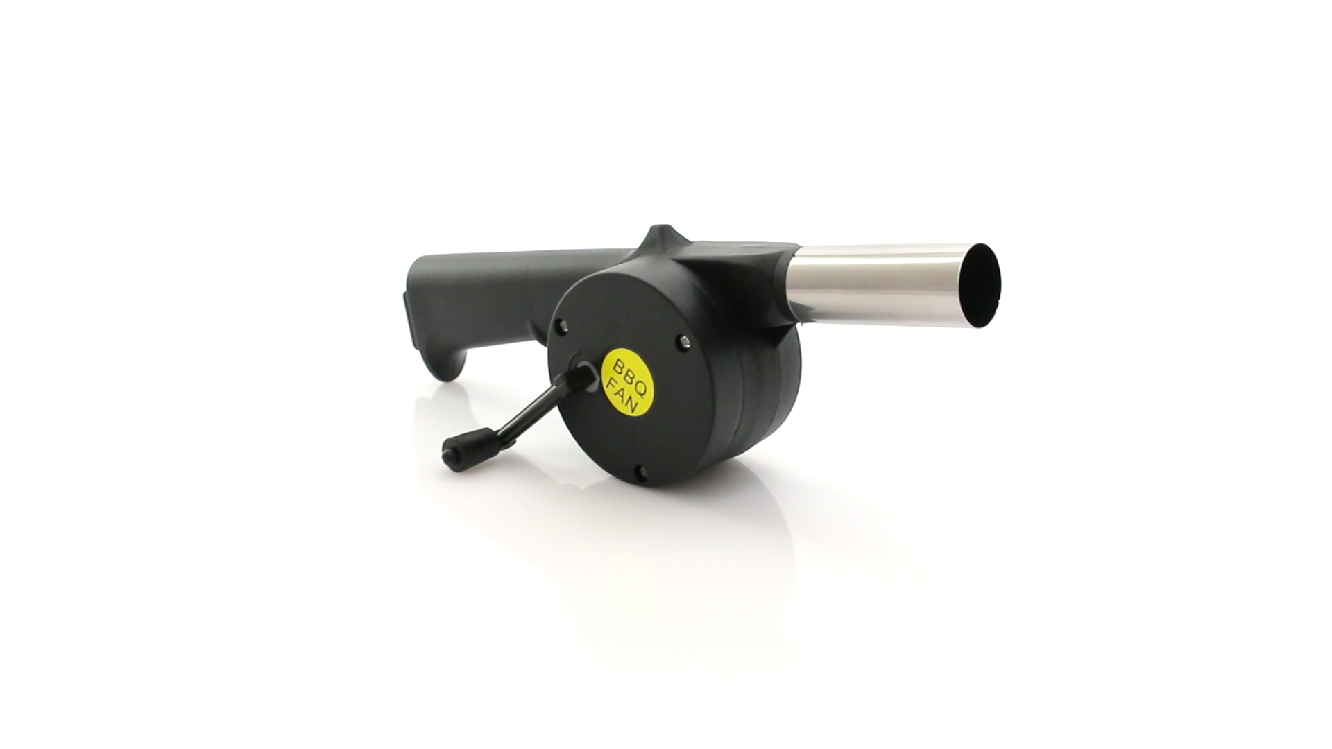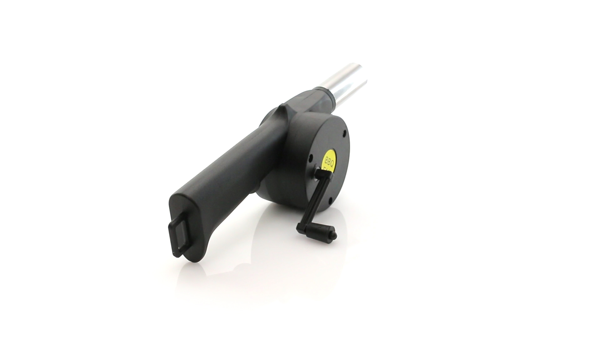Praktisches Grillgebläse mit genialem Handkurbel-Mechanismus zum Anfachen der Glut.