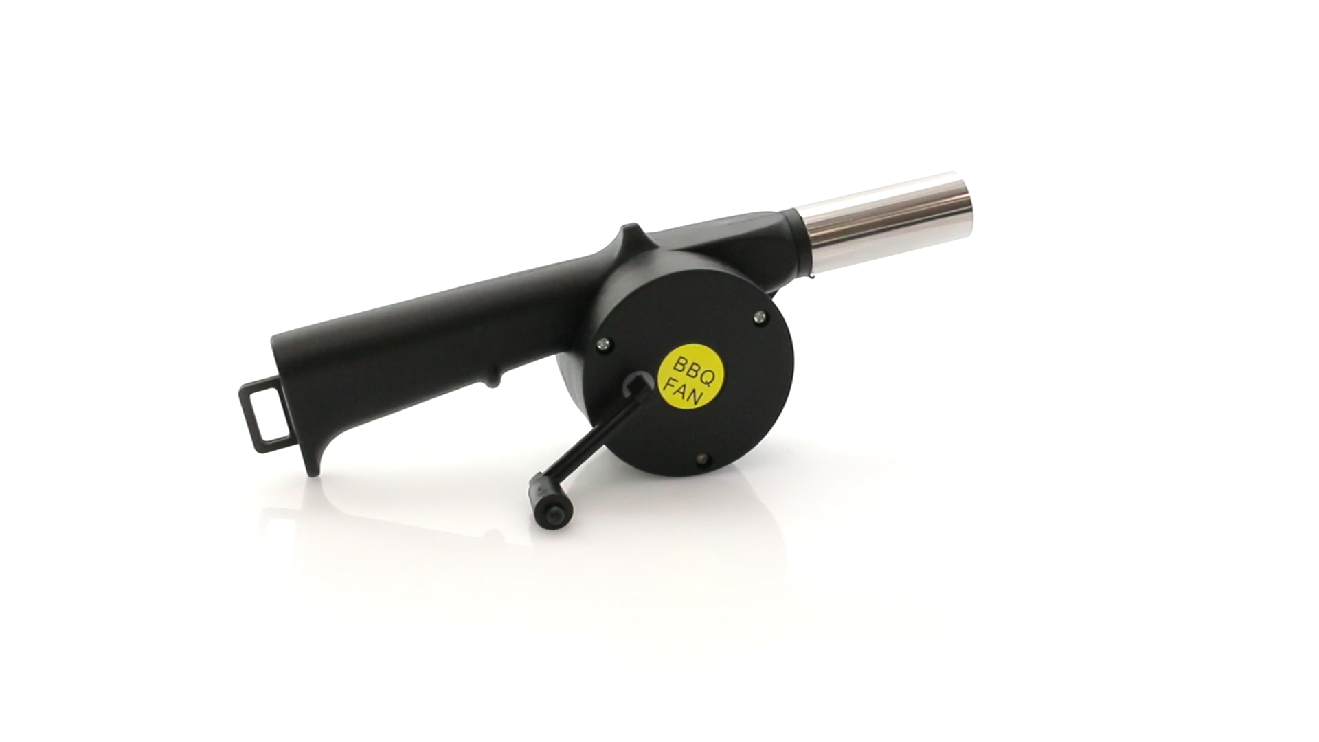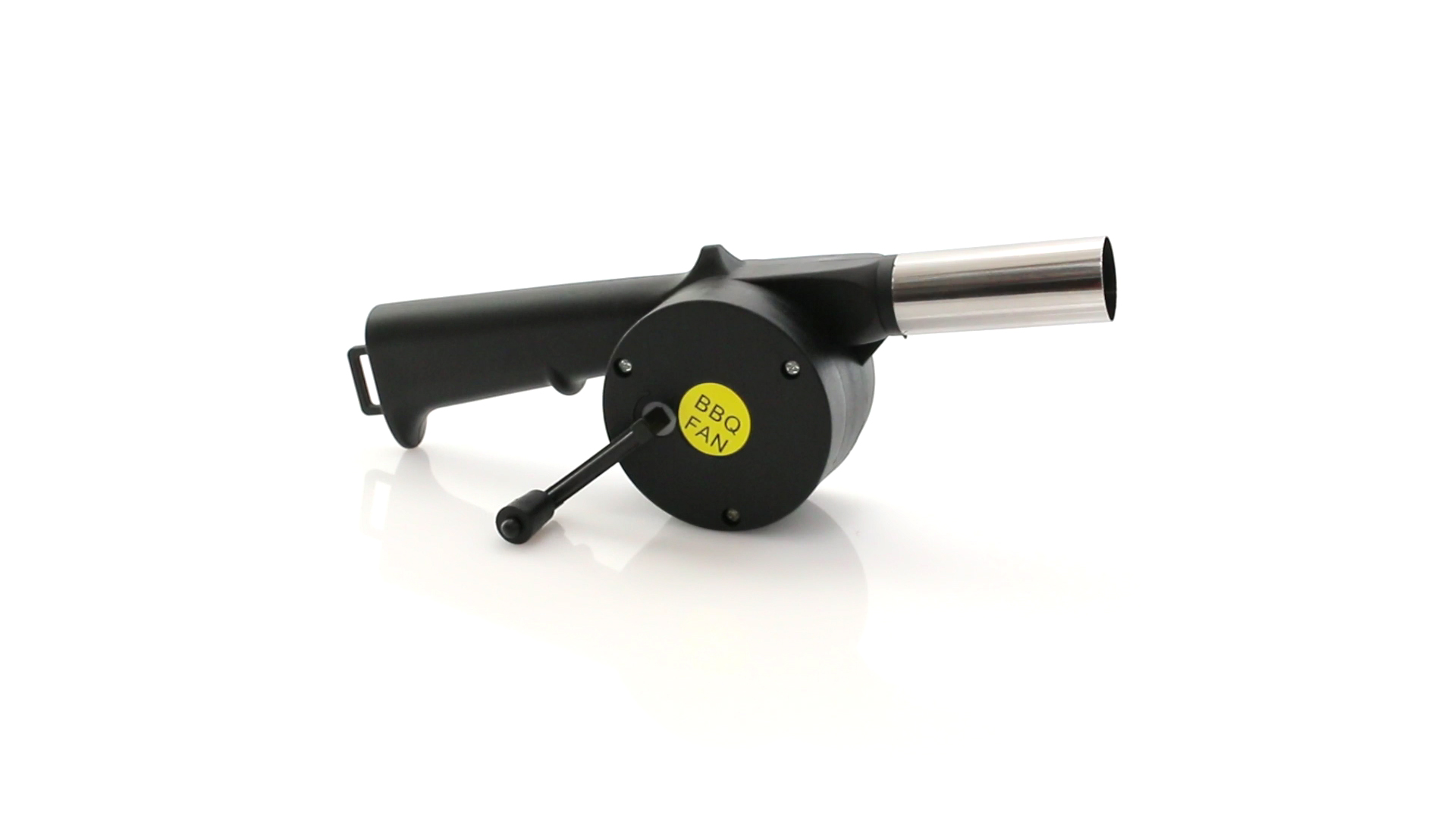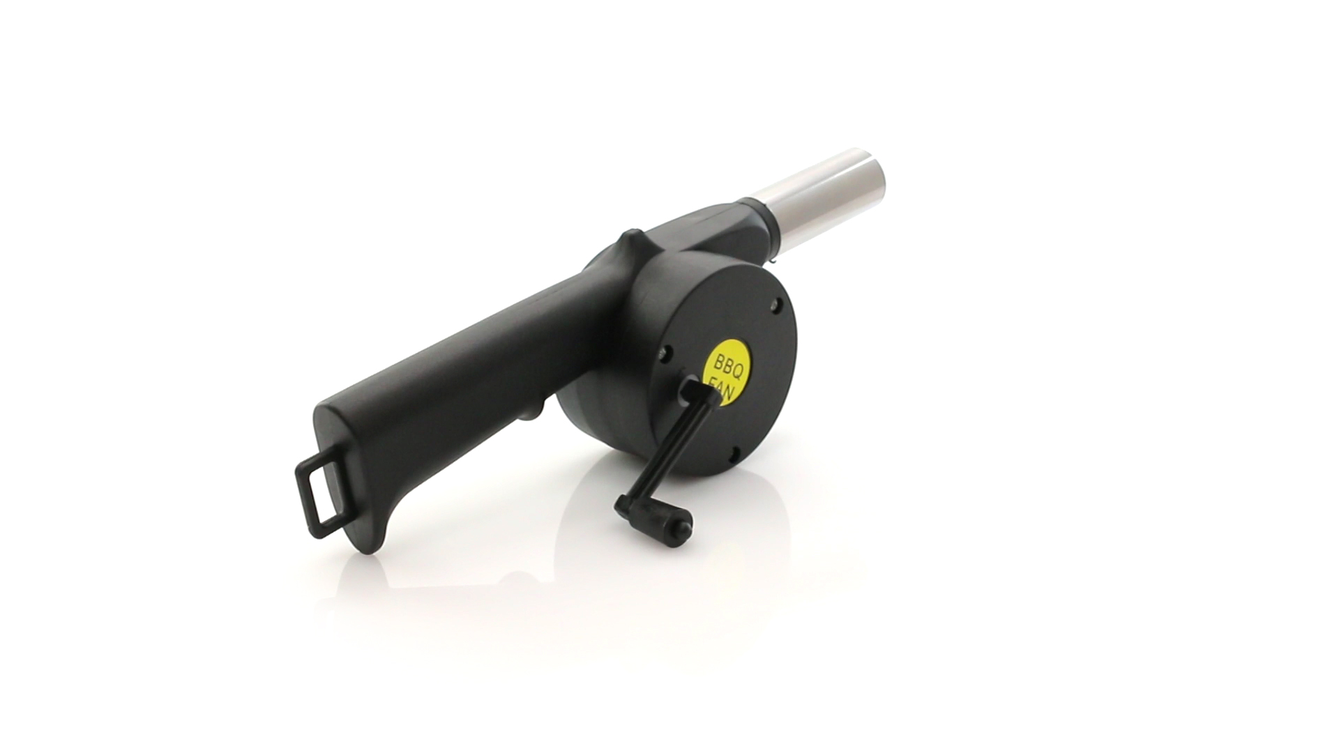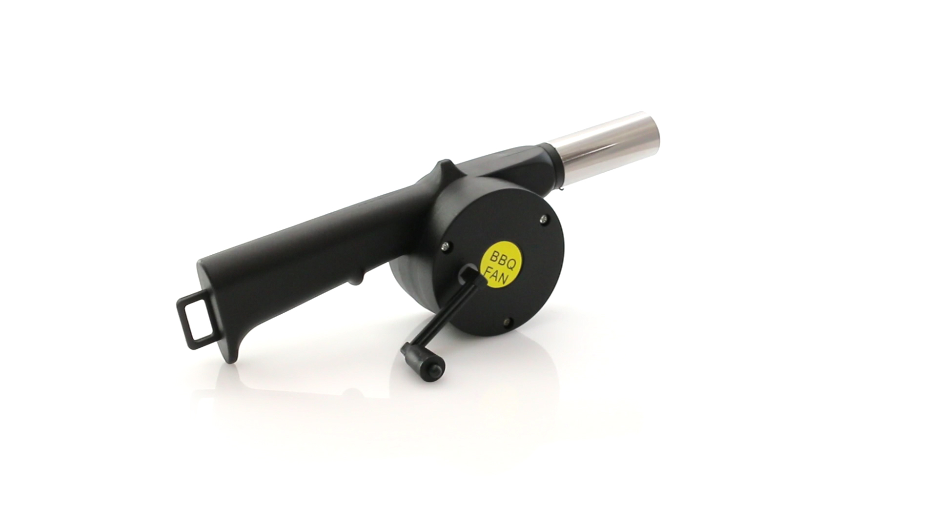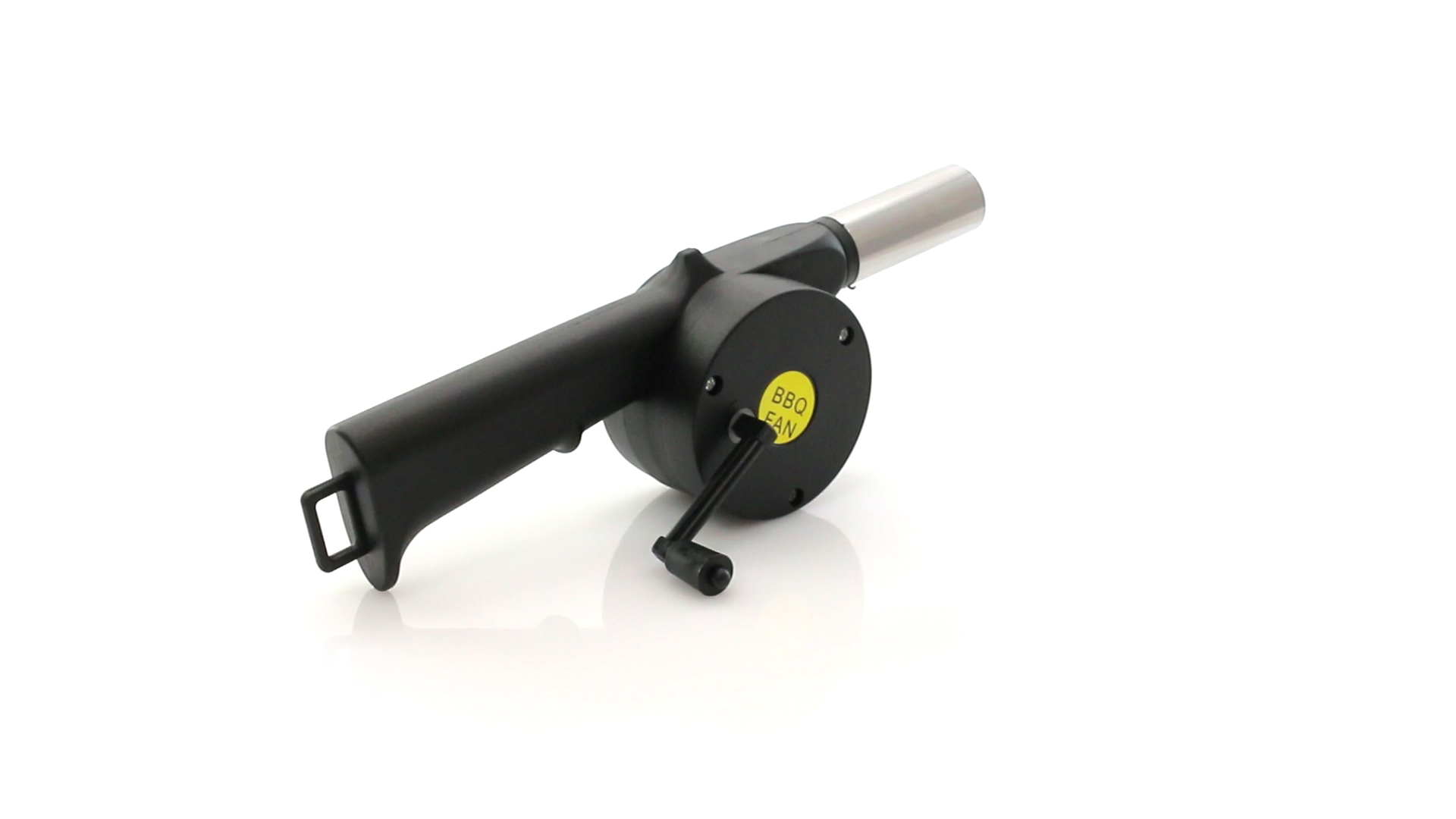 Praktisches Grillgebläse mit genialem Handkurbel-Mechanismus zum Anfachen der Glut.