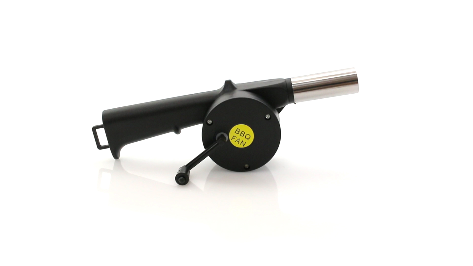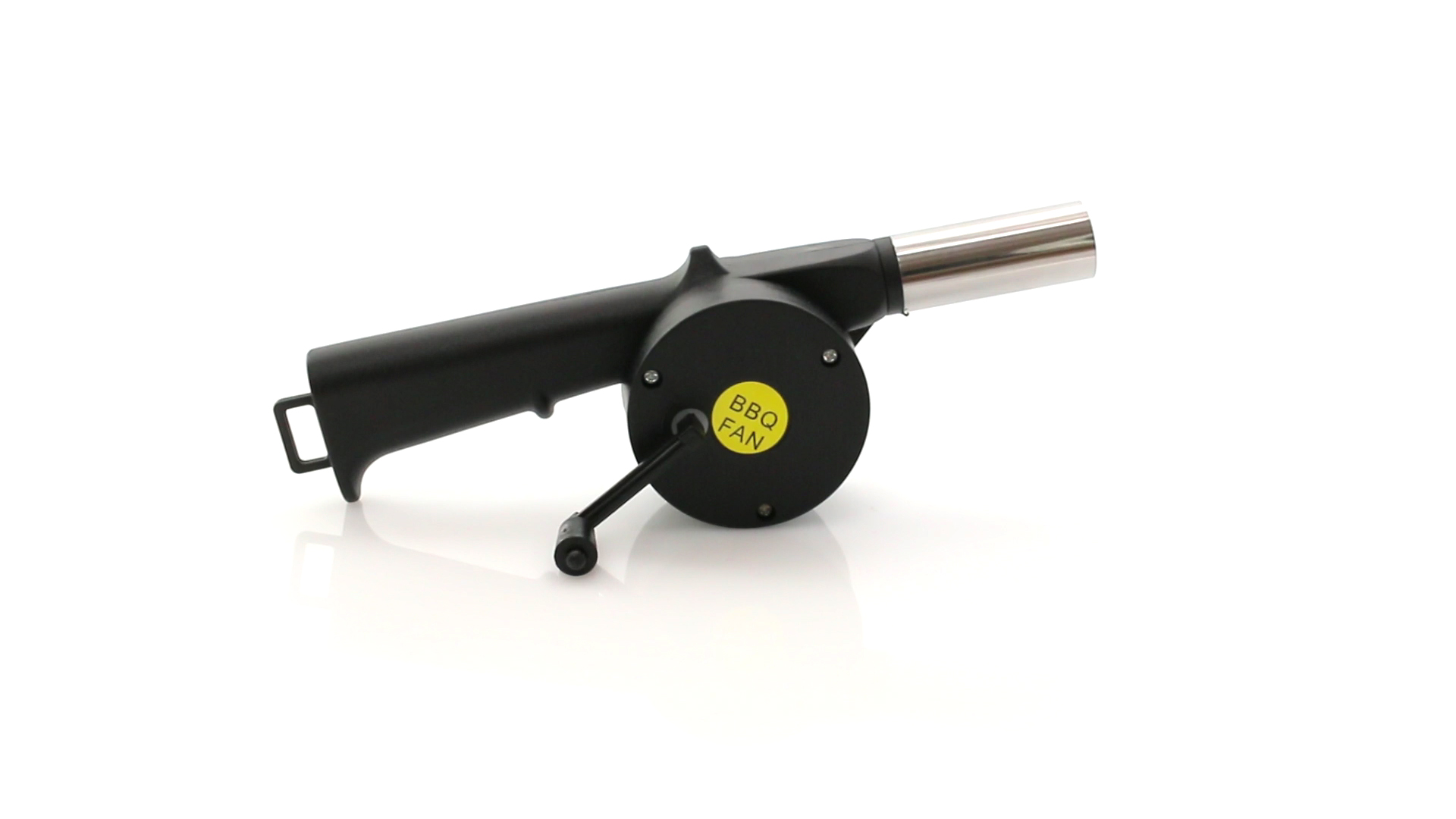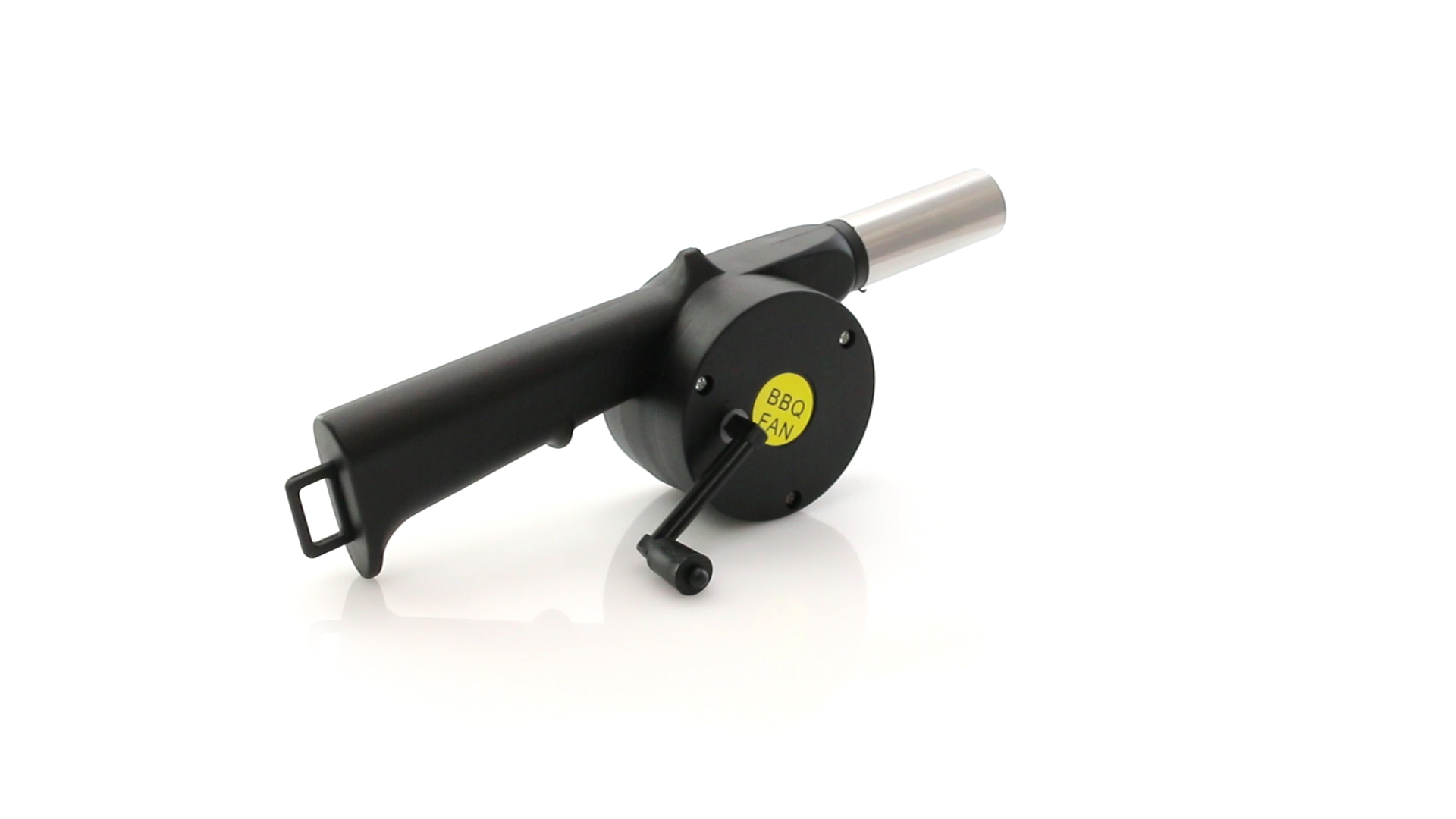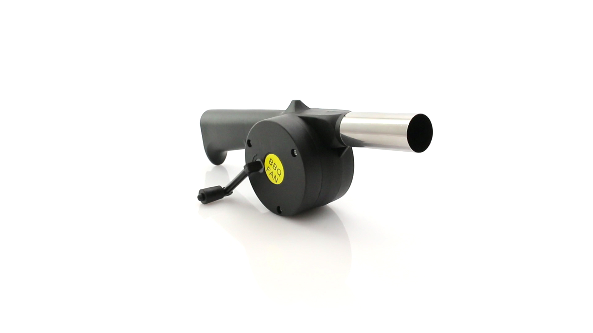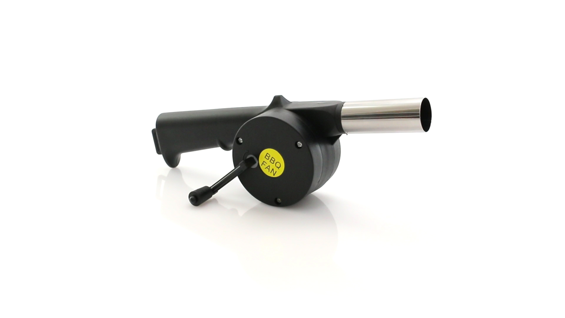 Praktisches Grillgebläse mit genialem Handkurbel-Mechanismus zum Anfachen der Glut.