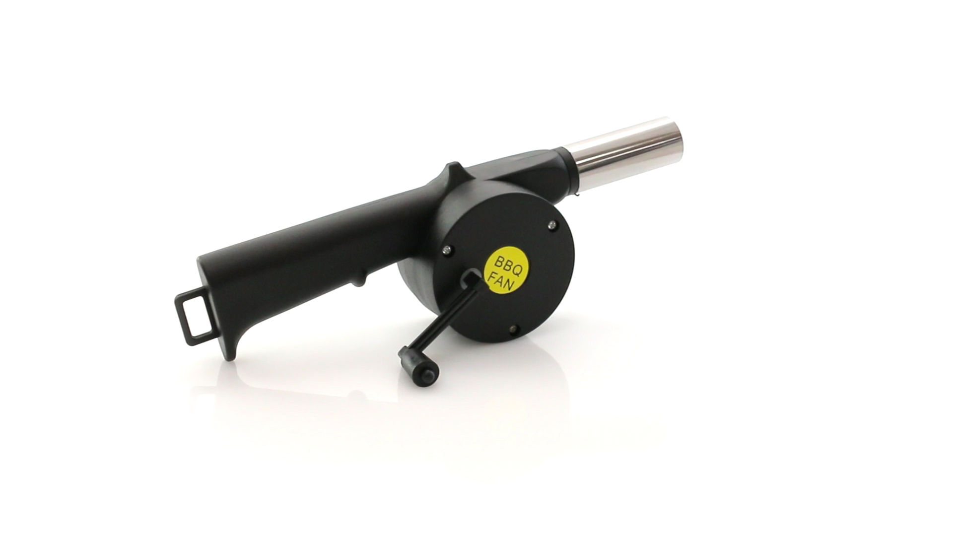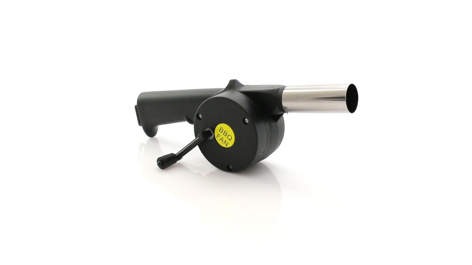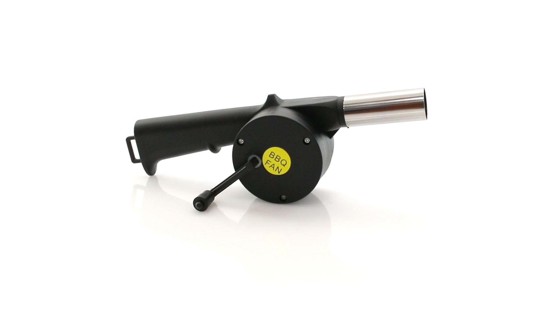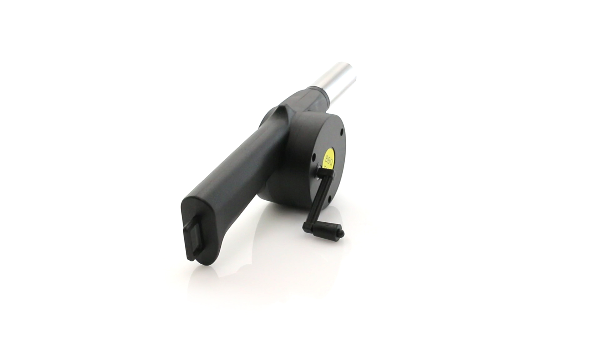 Praktisches Grillgebläse mit genialem Handkurbel-Mechanismus zum Anfachen der Glut.