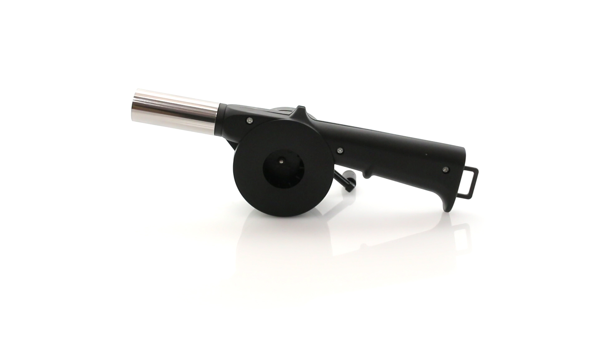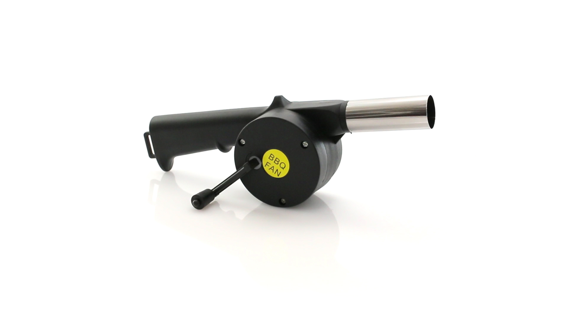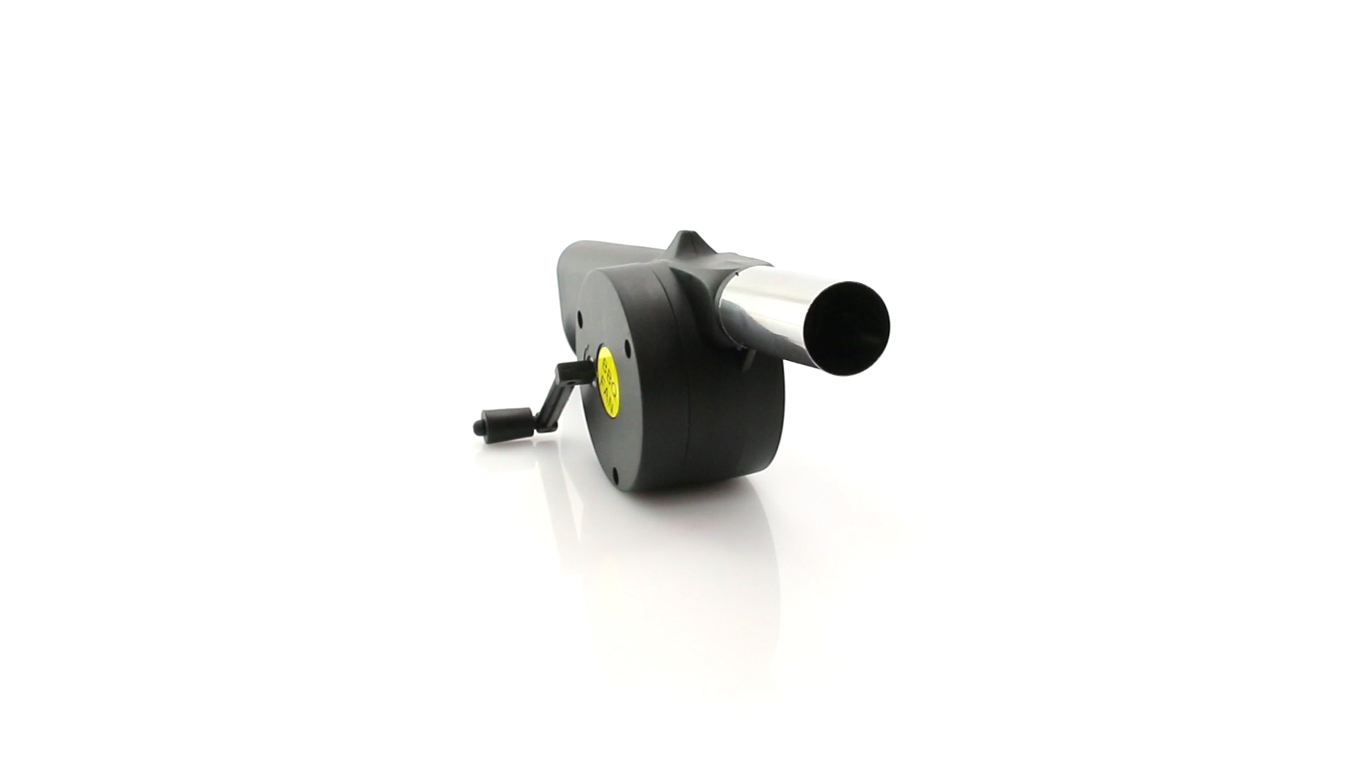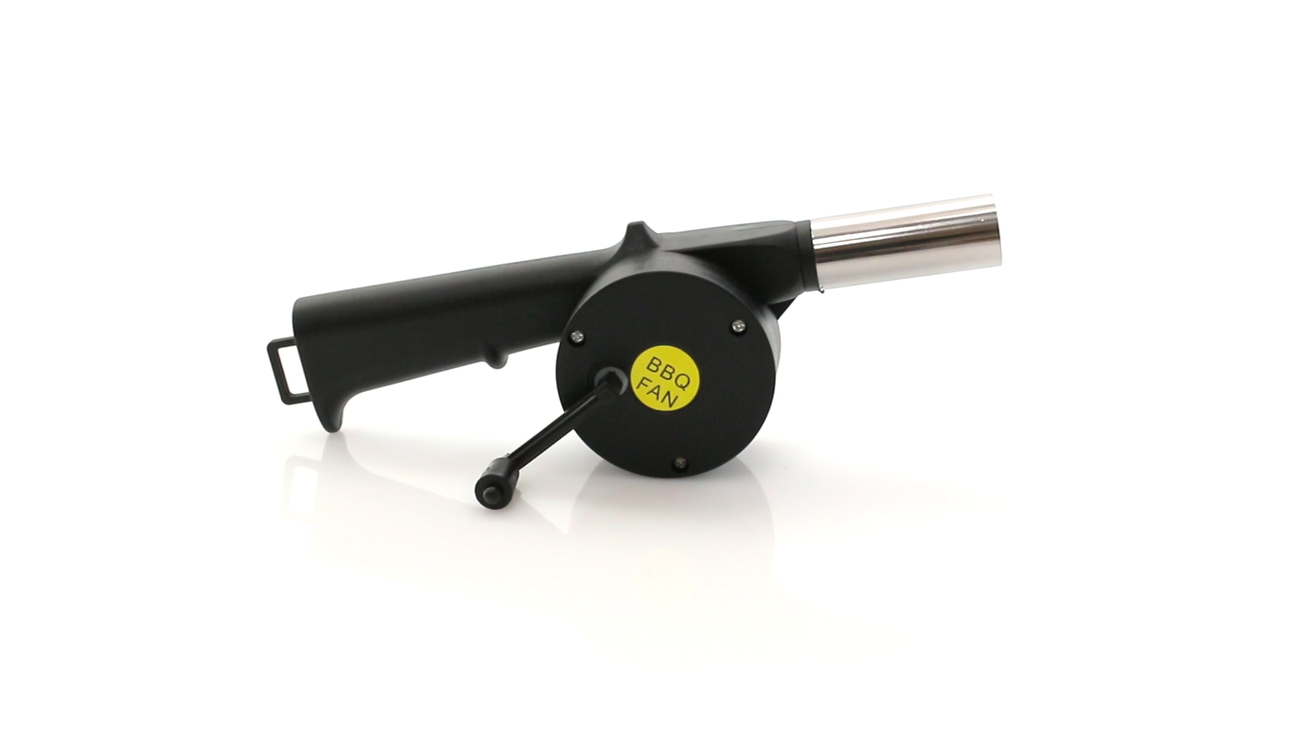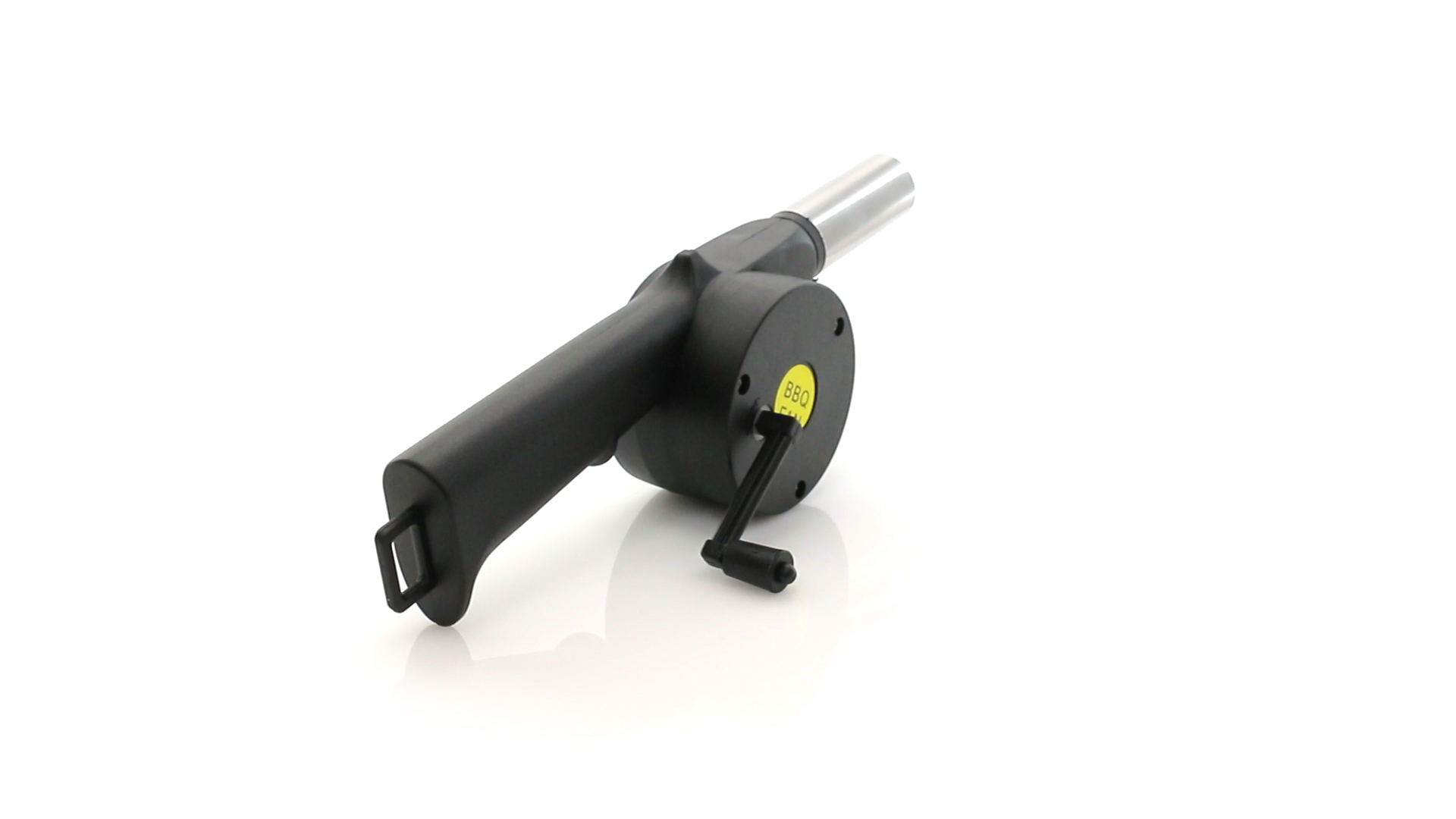 Praktisches Grillgebläse mit genialem Handkurbel-Mechanismus zum Anfachen der Glut.
