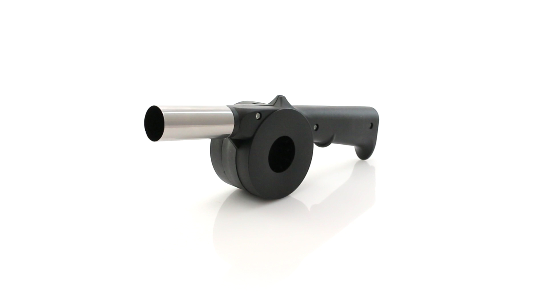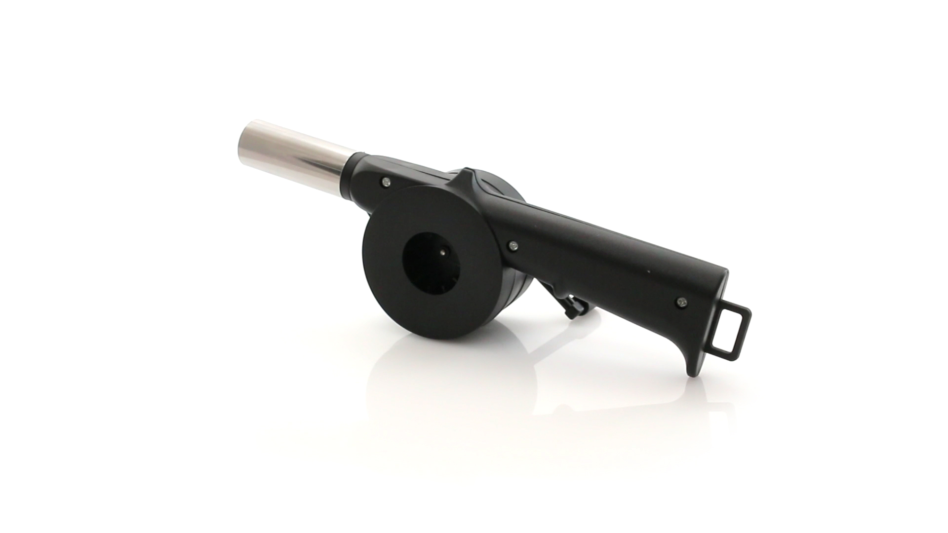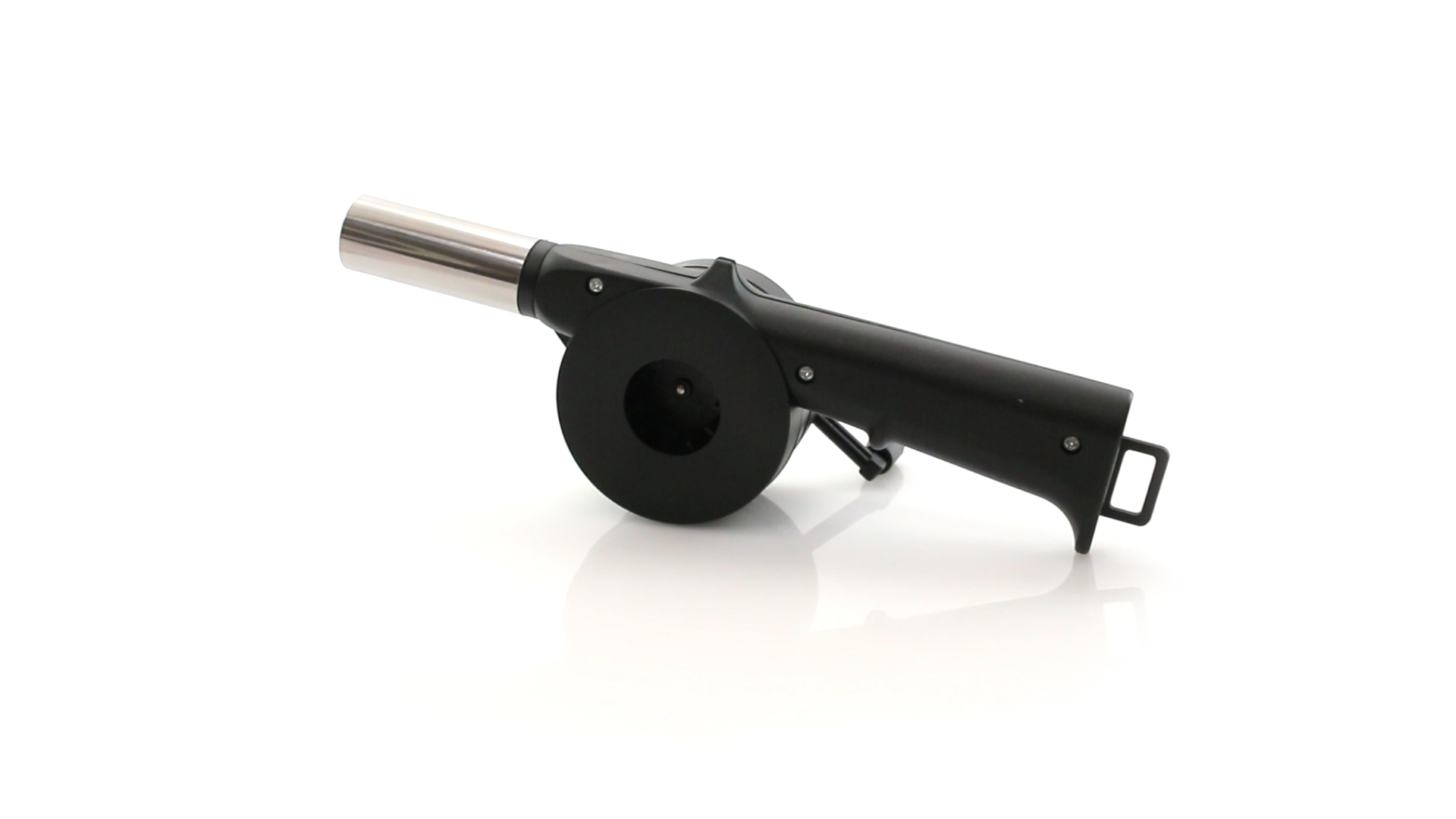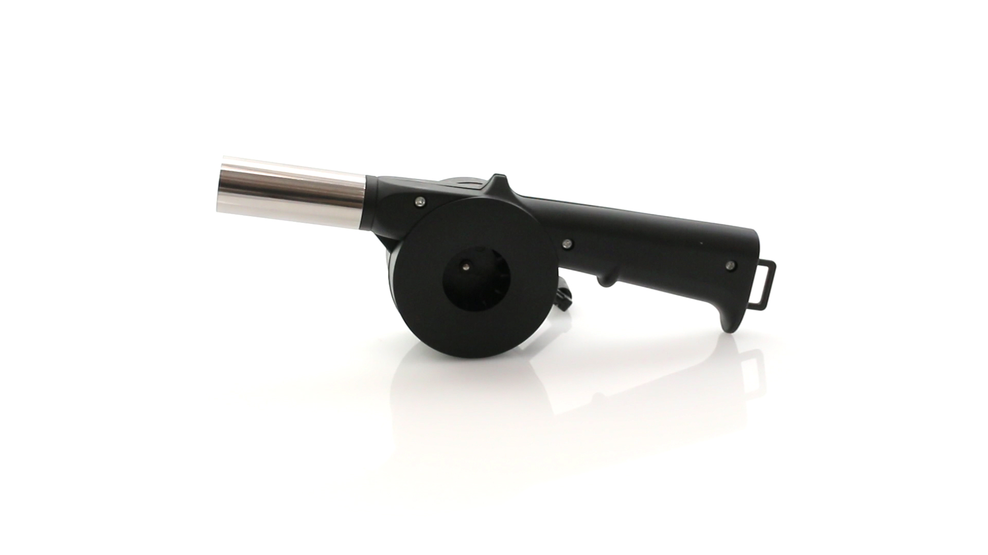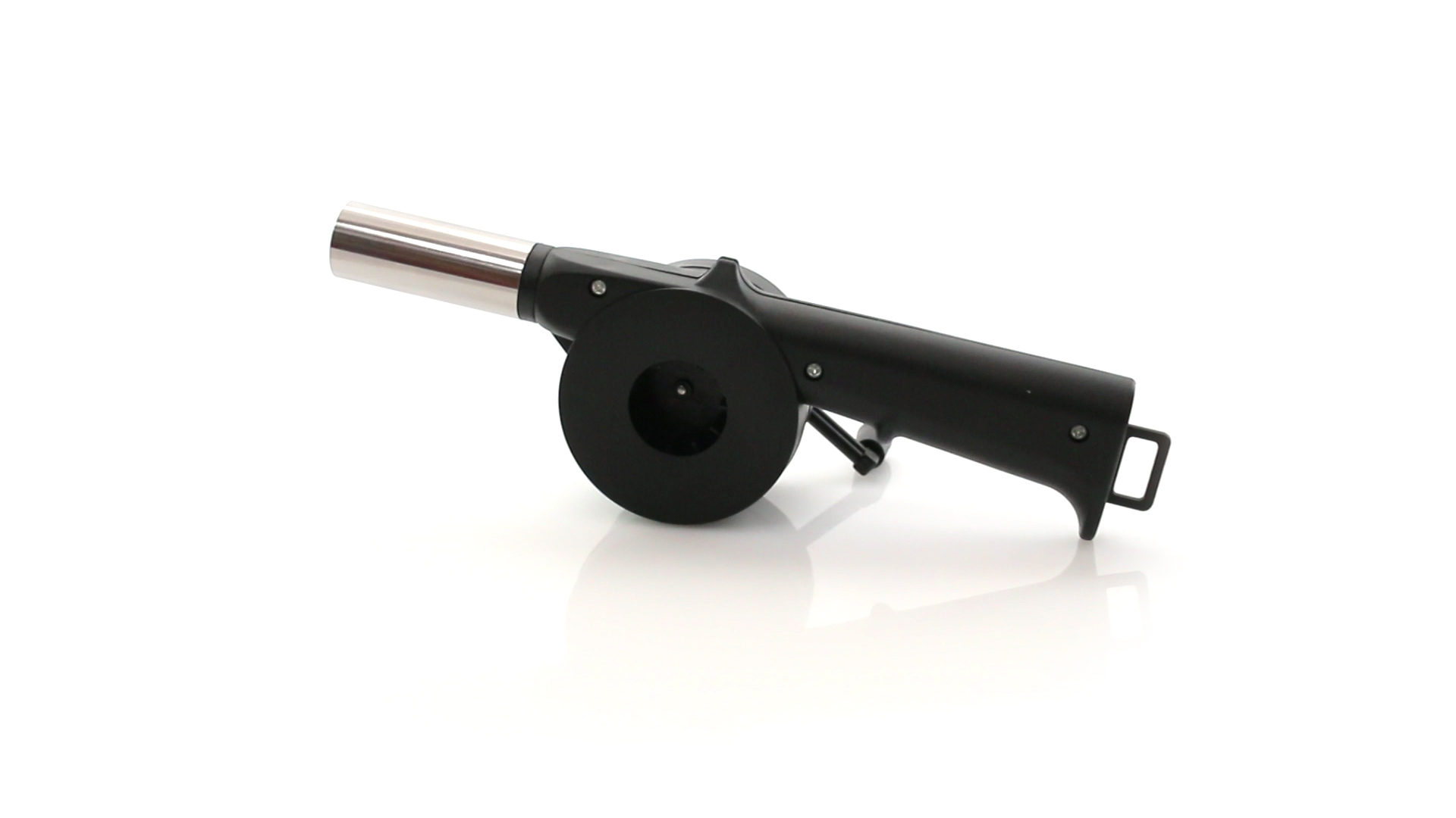 Praktisches Grillgebläse mit genialem Handkurbel-Mechanismus zum Anfachen der Glut.