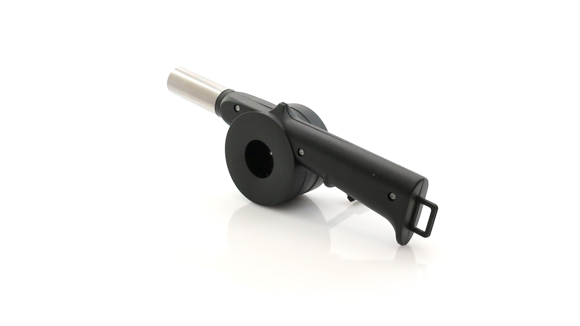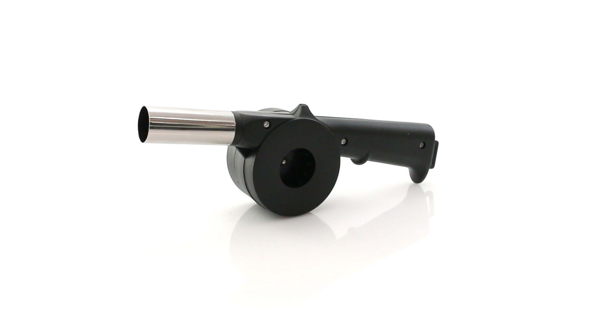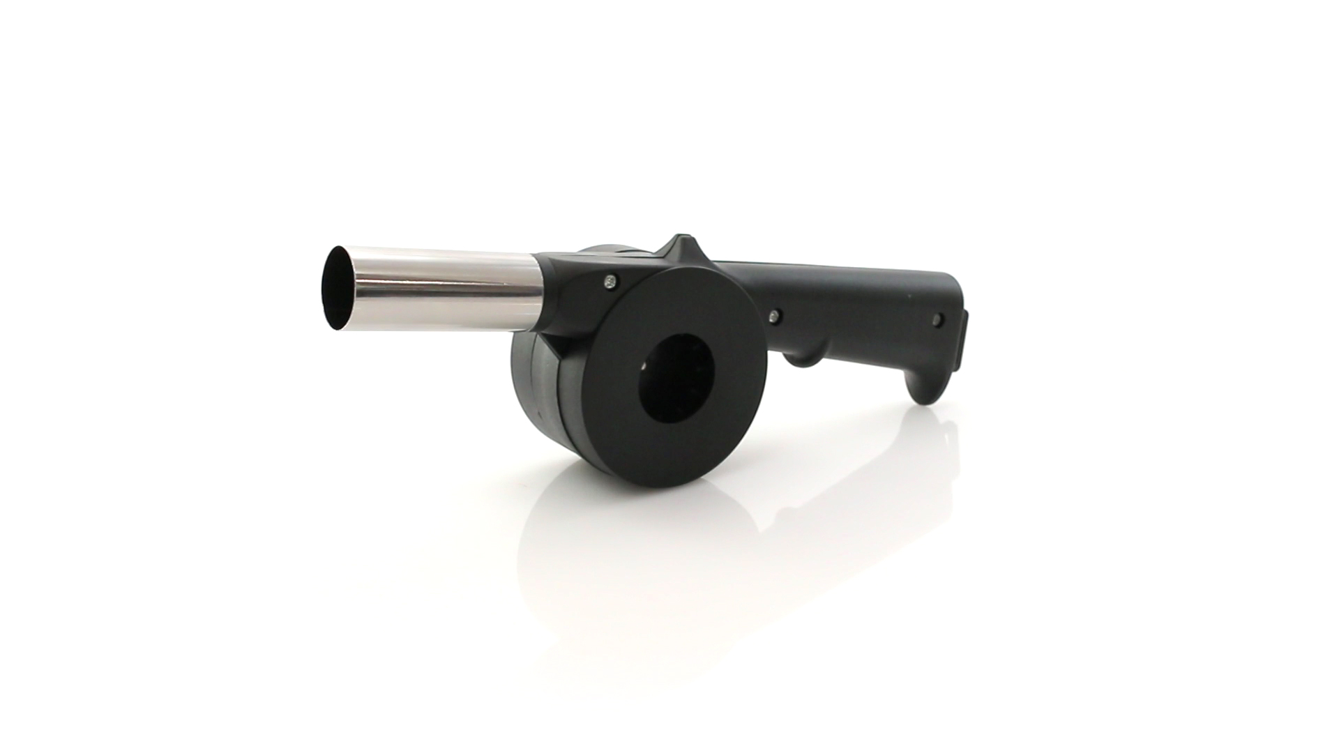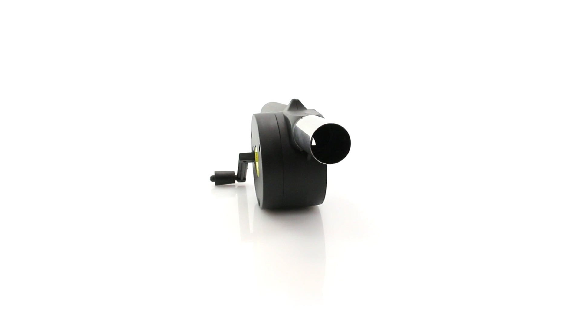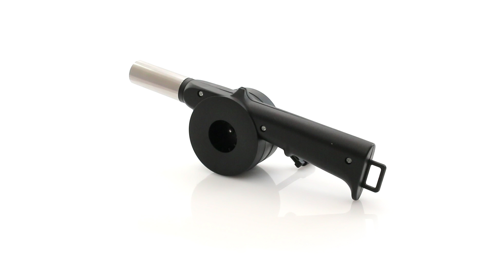 Praktisches Grillgebläse mit genialem Handkurbel-Mechanismus zum Anfachen der Glut.