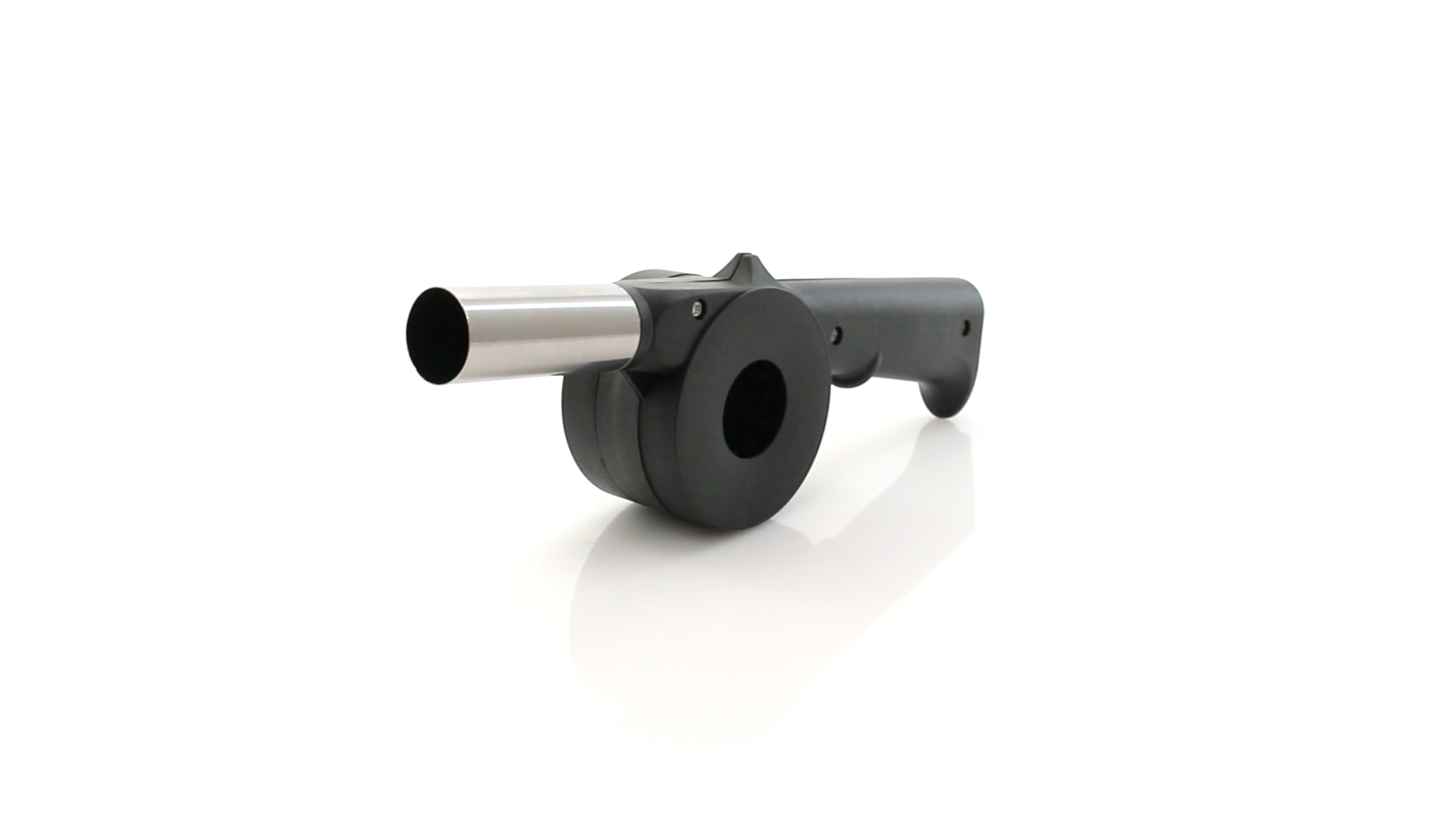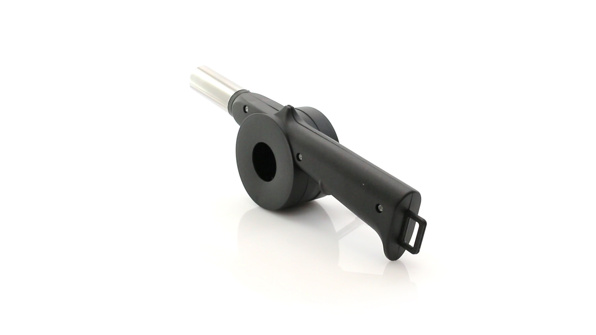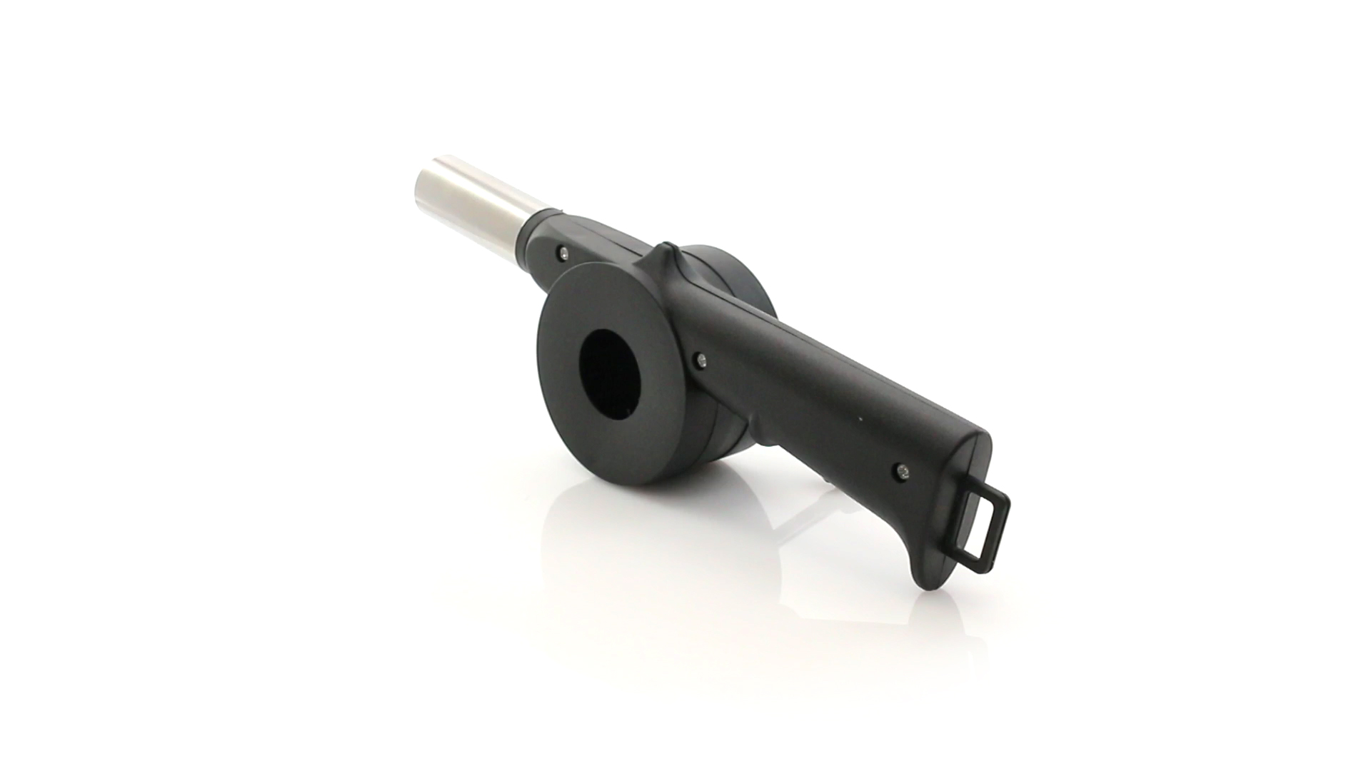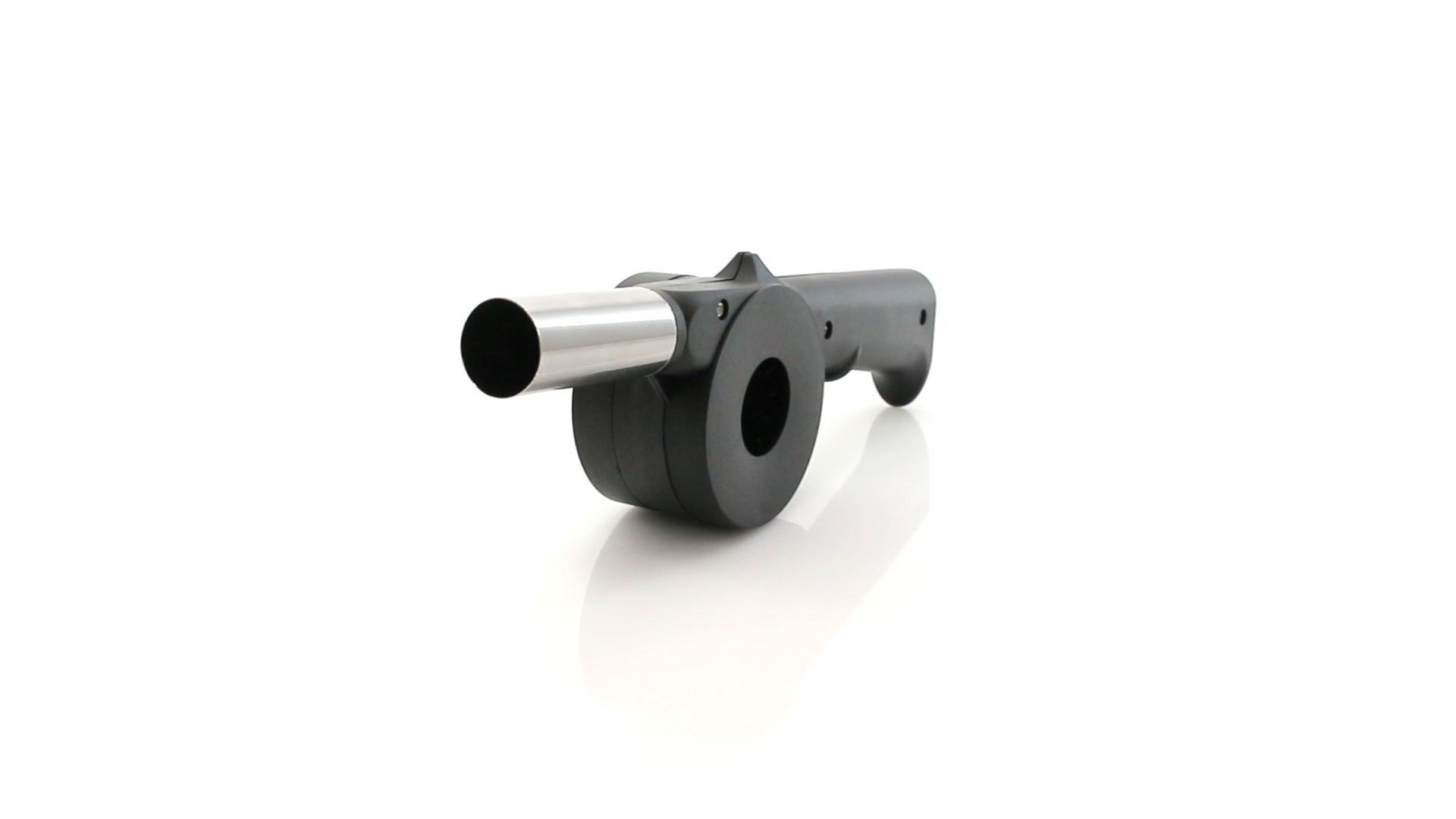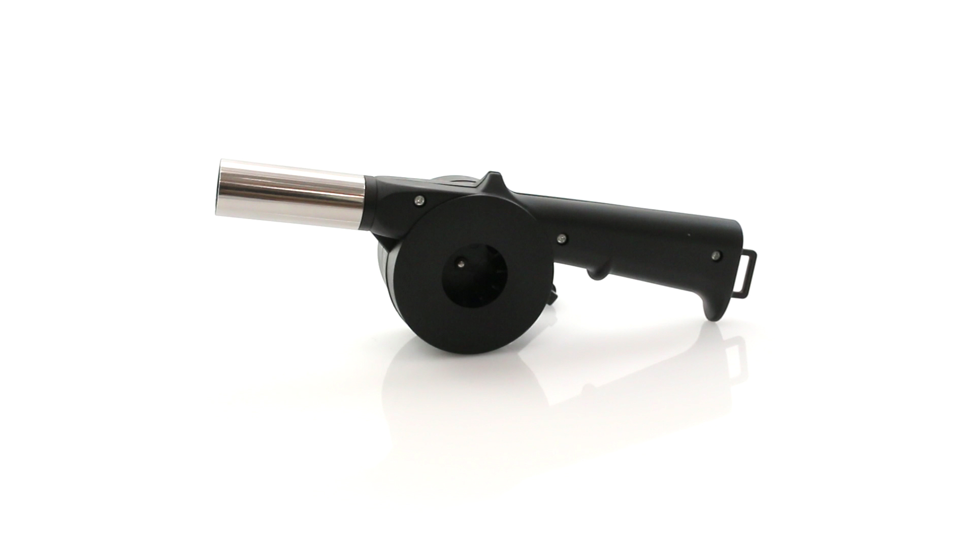 Praktisches Grillgebläse mit genialem Handkurbel-Mechanismus zum Anfachen der Glut.