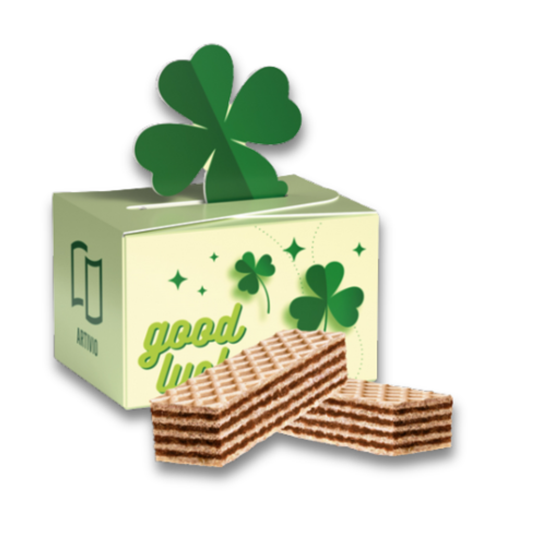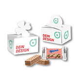 Die Geschenkbox Mini überzeugt durch ihre kreative Form, zum Beispiel als Kleeblatt, und lässt sich individuell gestalten. So wird aus einem einfachen Werbeartikel ein persönliches Highlight, das Deine Wertschätzung auf besondere Weise zeigt. Gefüllt ist die Box mit den berühmten knusprigen Waffeln von Manner, gefüllt mit feiner Haselnusscreme – ein Klassiker, der immer begeistert.