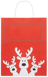 Mittelgrosse Geschenkpapiertüte mit weihnachtlichem Motiv (50% recyceltes Papier). 90 g/m². Hergestellt in der EU.