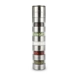 Clevere Gewürzmühle mit Keramikmahlwerk bietet Platz für 5 verschiedene Gewürze - die Erstausstattung ist gleich mit im Set: 10 g Toskana Mischung, 8 g italienische Kräuter, 15 g geschrotete Chili Schoten, 40 g Salz, 20 g Pfefferkörner. Alles ist verpackt im schwarzen Geschenkkarton, inkl. Einleger mit Beschreibung der Mühle. Viel Spass beim Würzen!