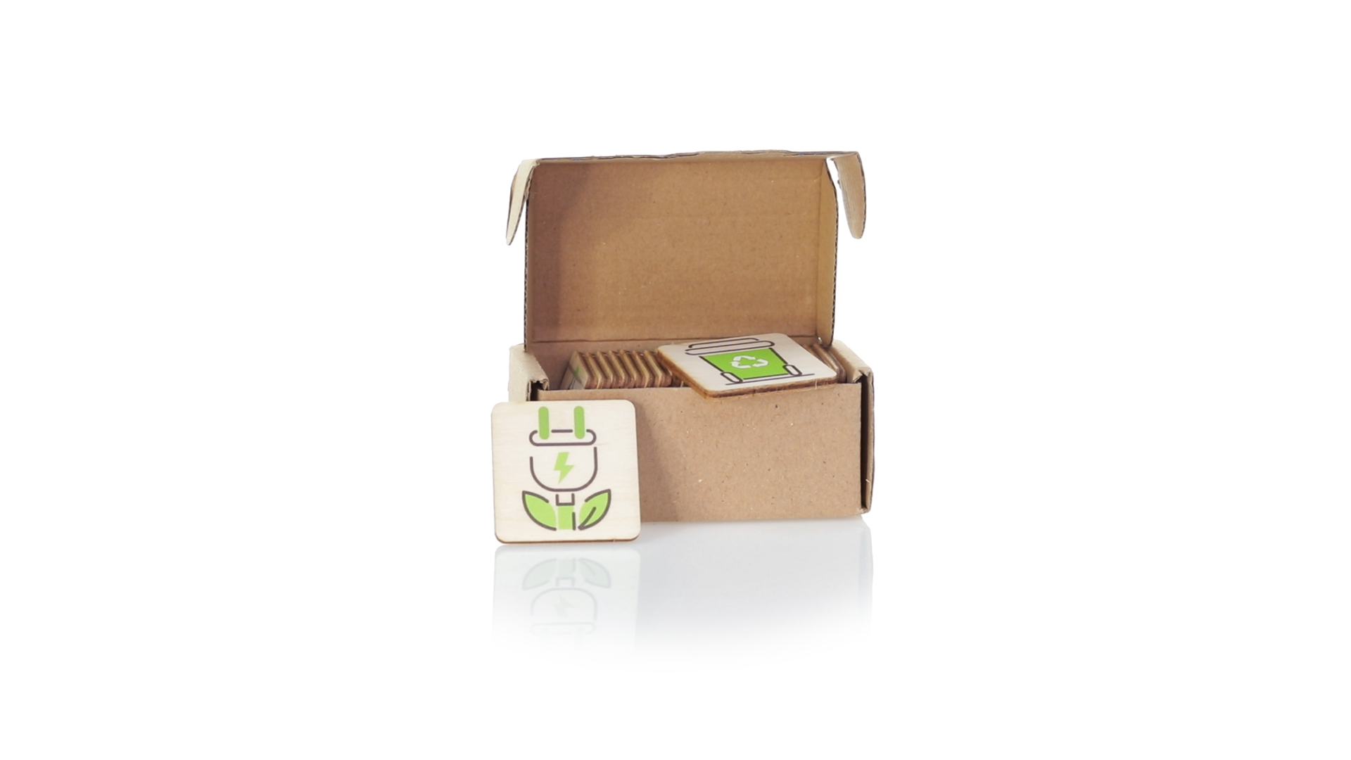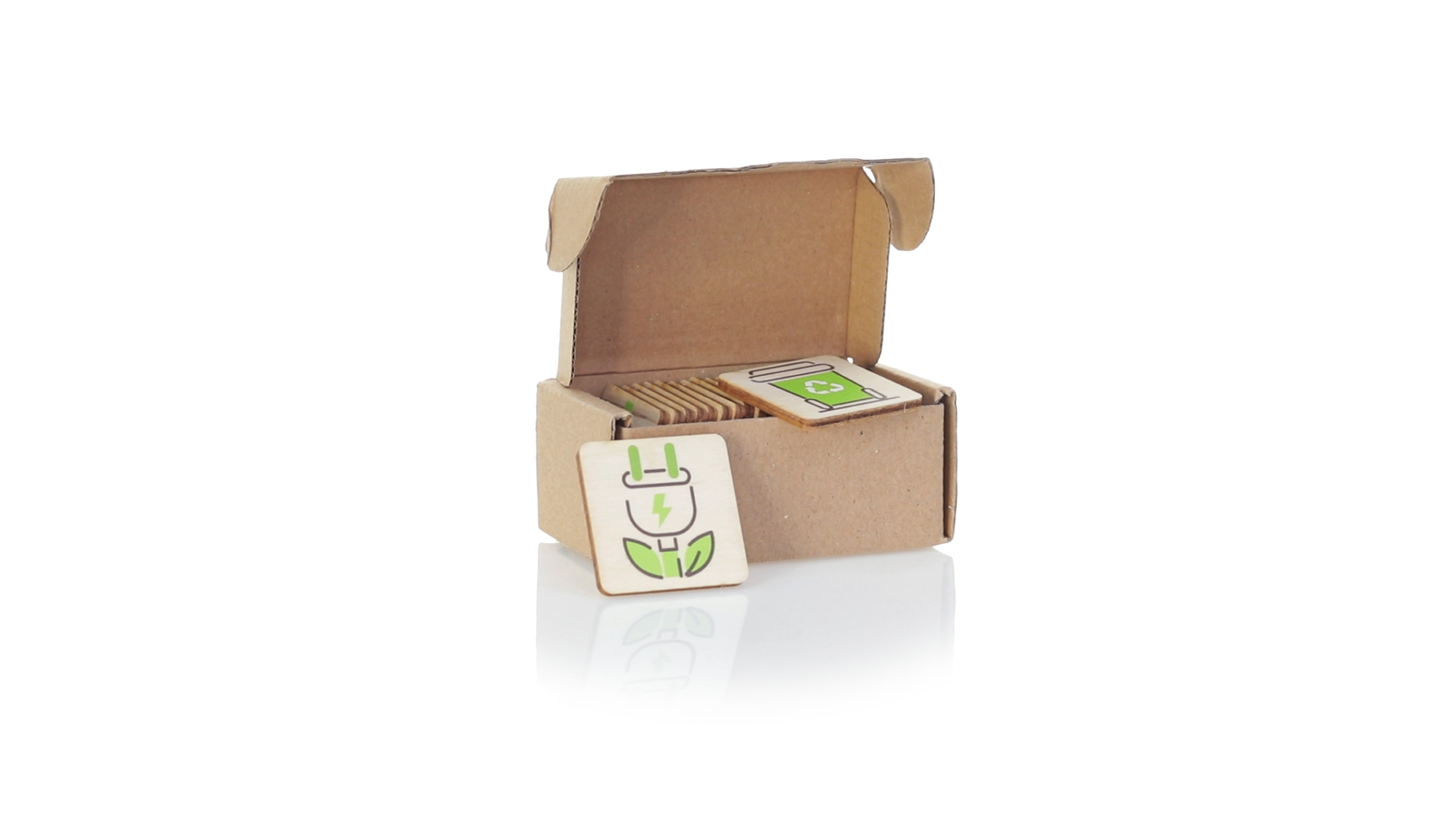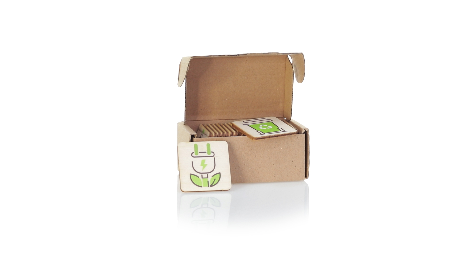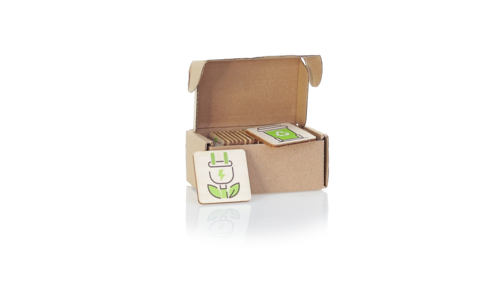 Linie "Natur" Memory-Spiel. Hergestellt in Europa und entwickelt, um die Bedeutung des Umweltschutzes zu fördern. Mit 24 Holzspielsteinen in einer individuellen Schachtel aus recyceltem Karton.