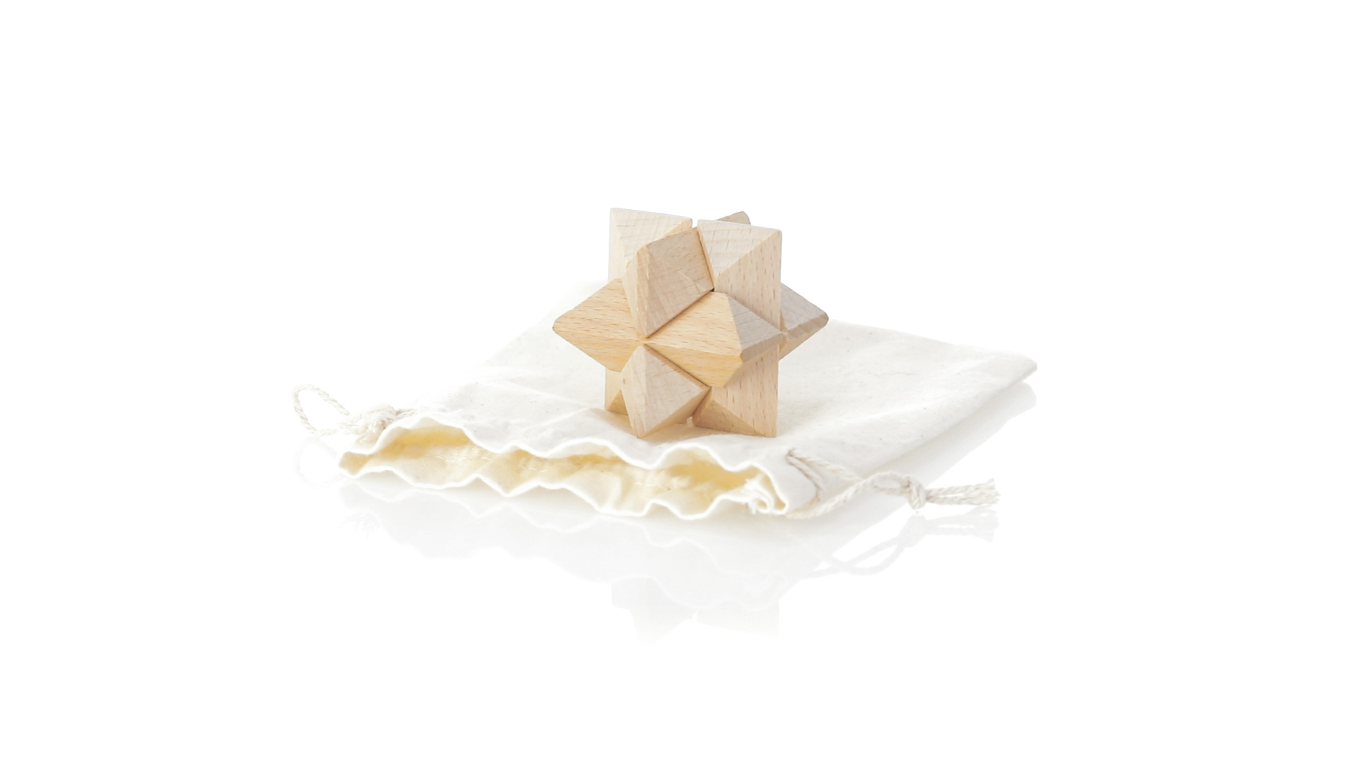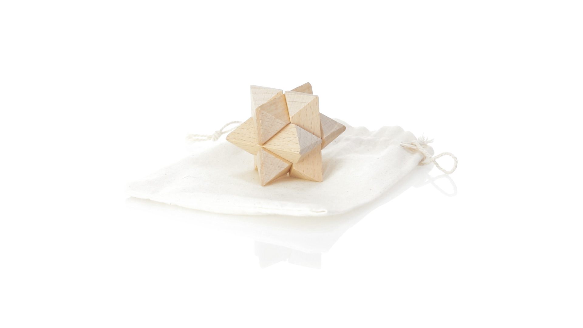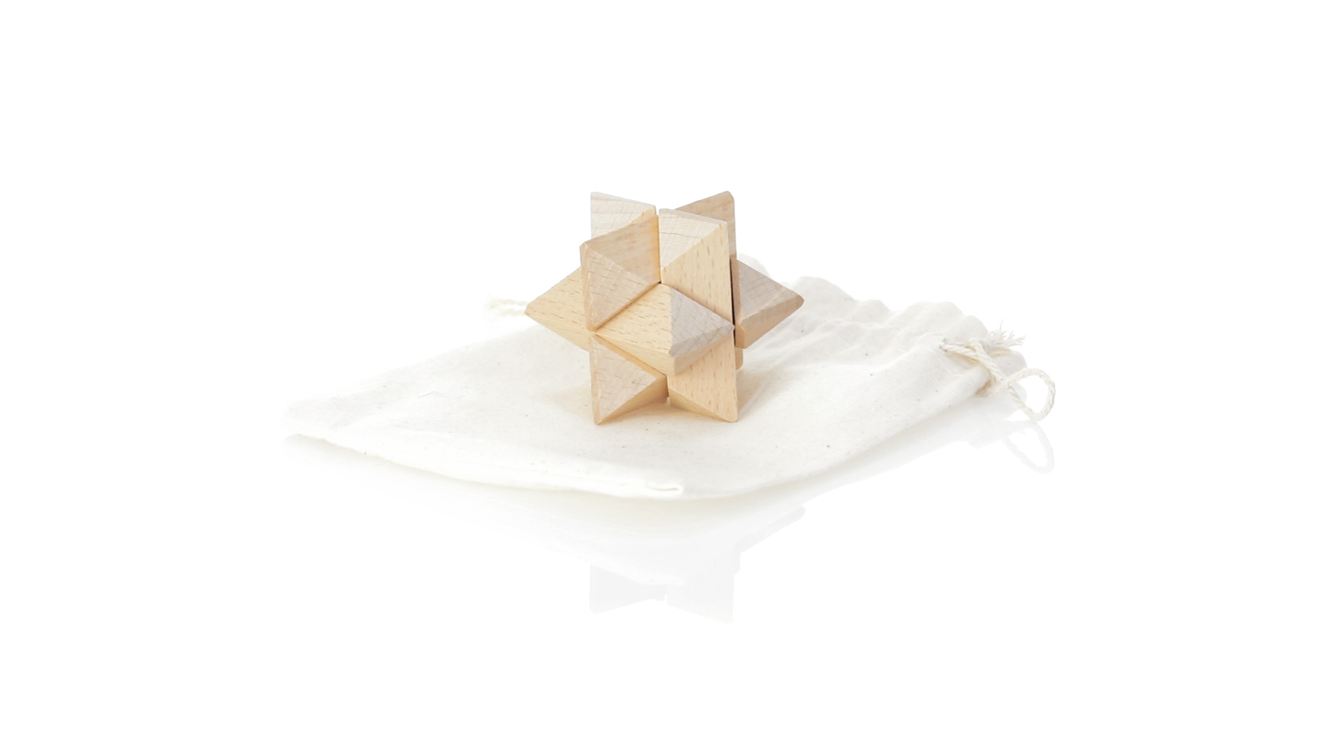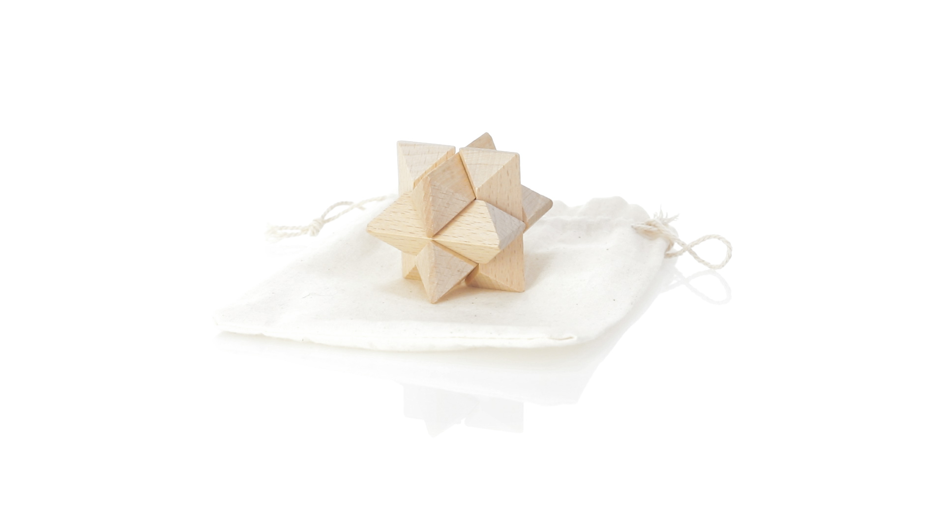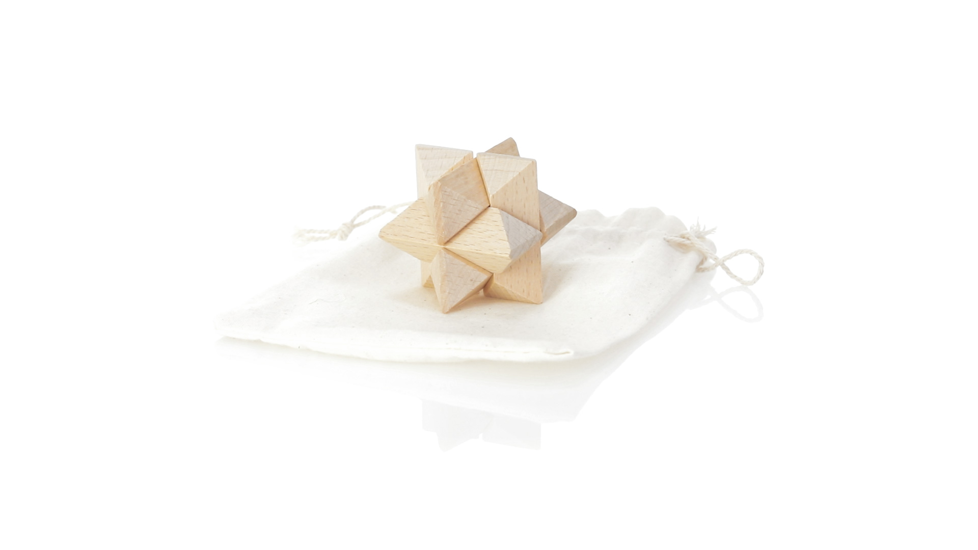 Ein 6-teiliges Geschicklichkeitsset für Schlauberger, präsentiert in einem robusten Baumwollbeutel mit Kordelzugverschluss.