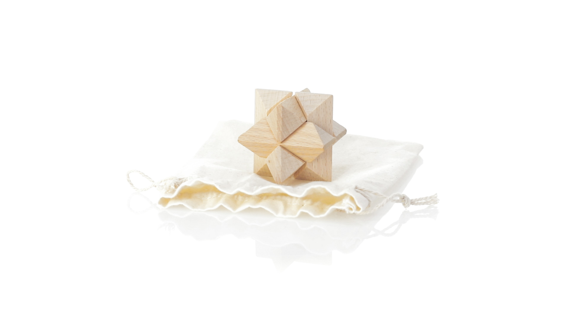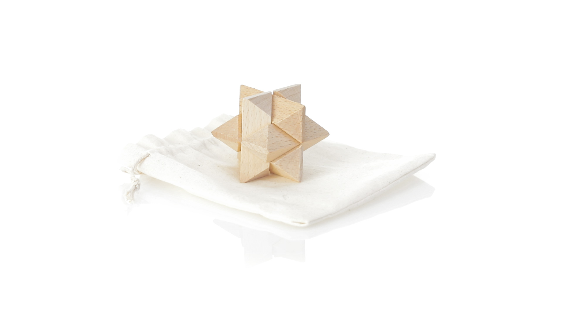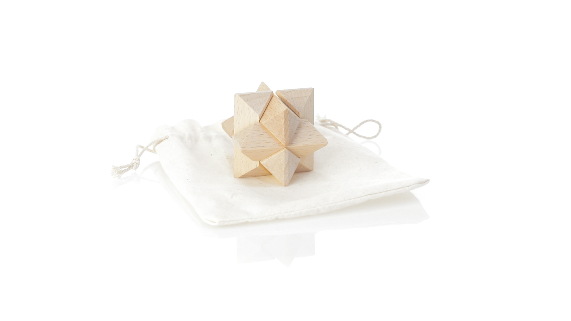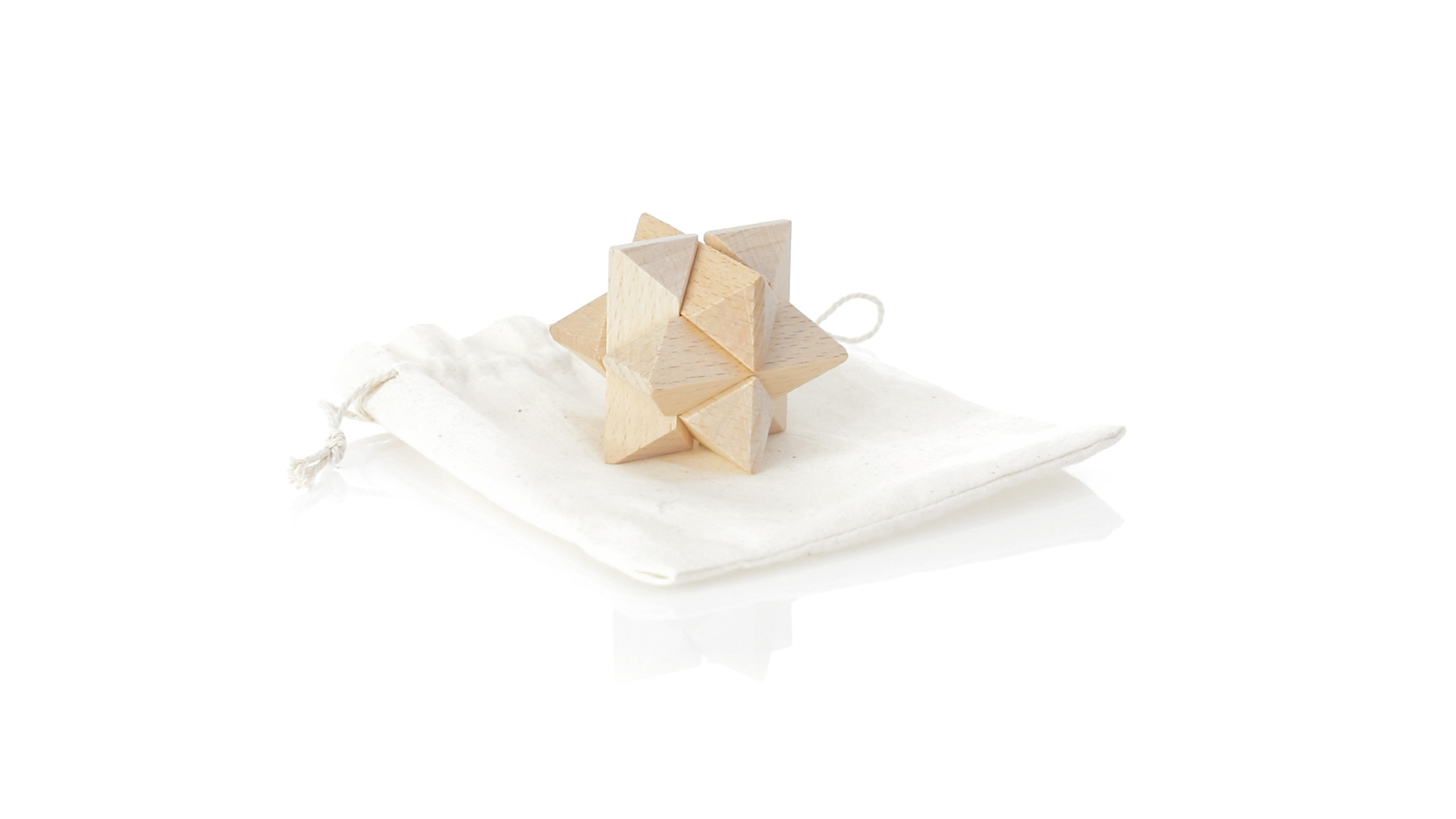 Ein 6-teiliges Geschicklichkeitsset für Schlauberger, präsentiert in einem robusten Baumwollbeutel mit Kordelzugverschluss.