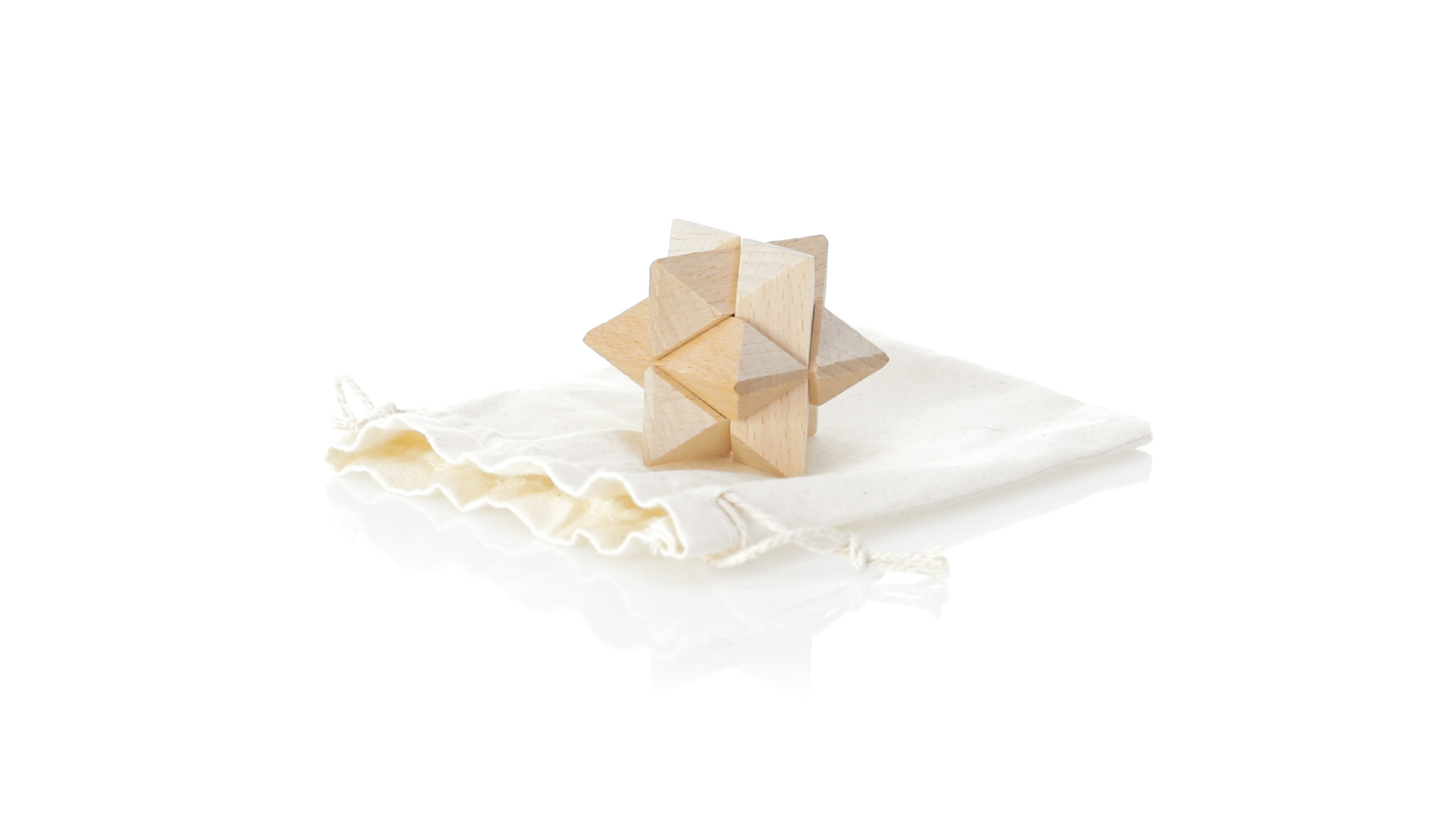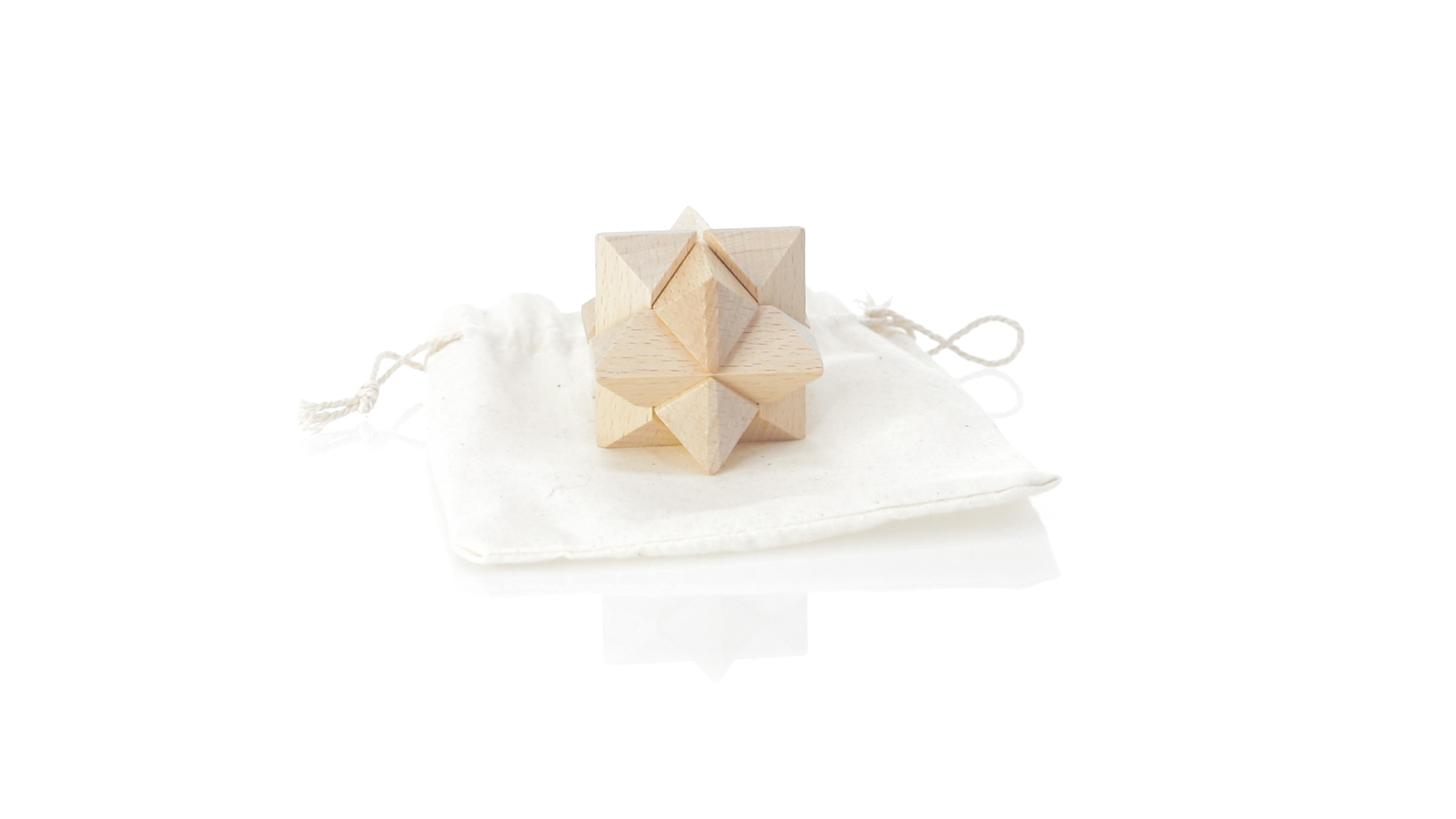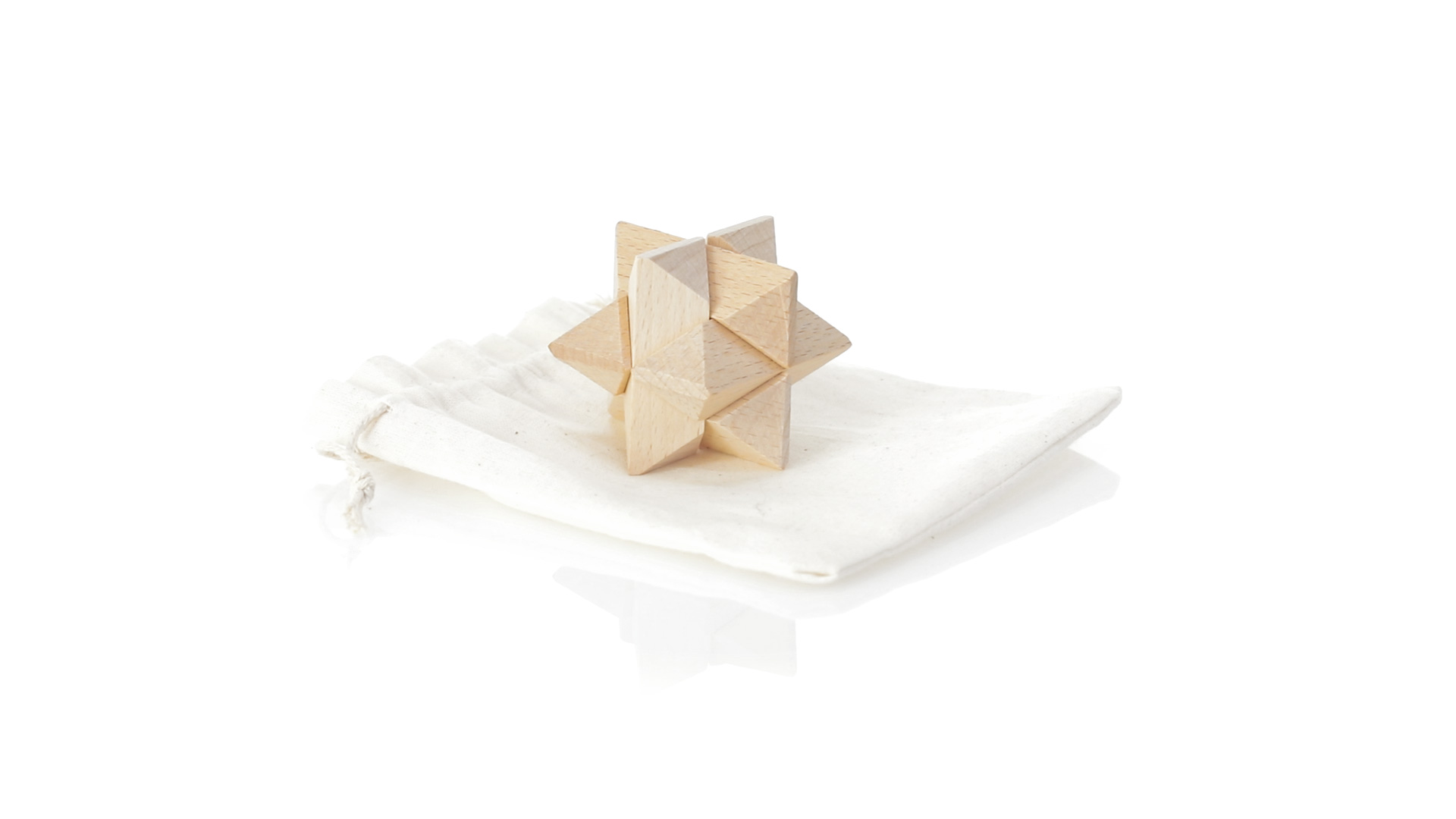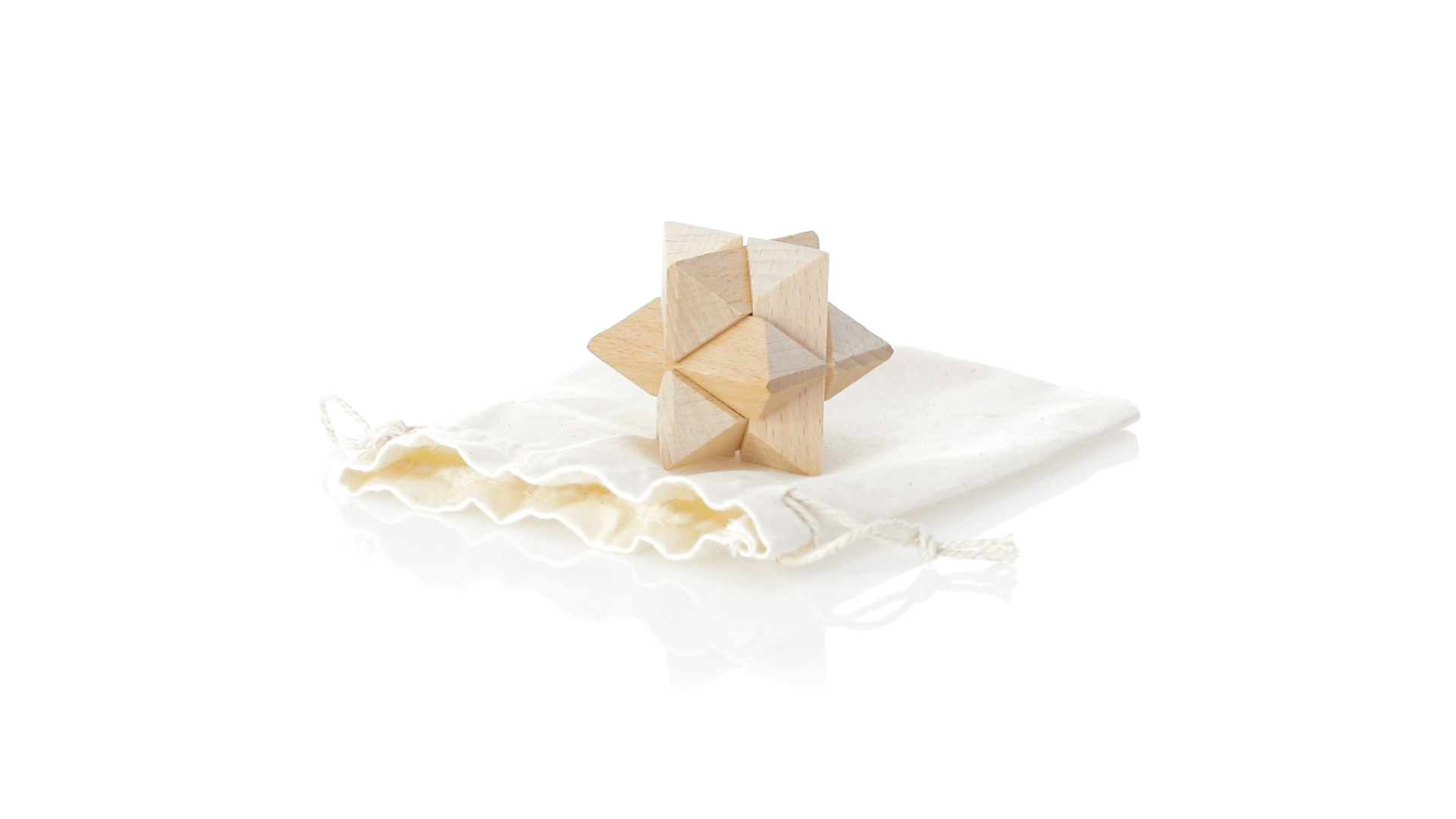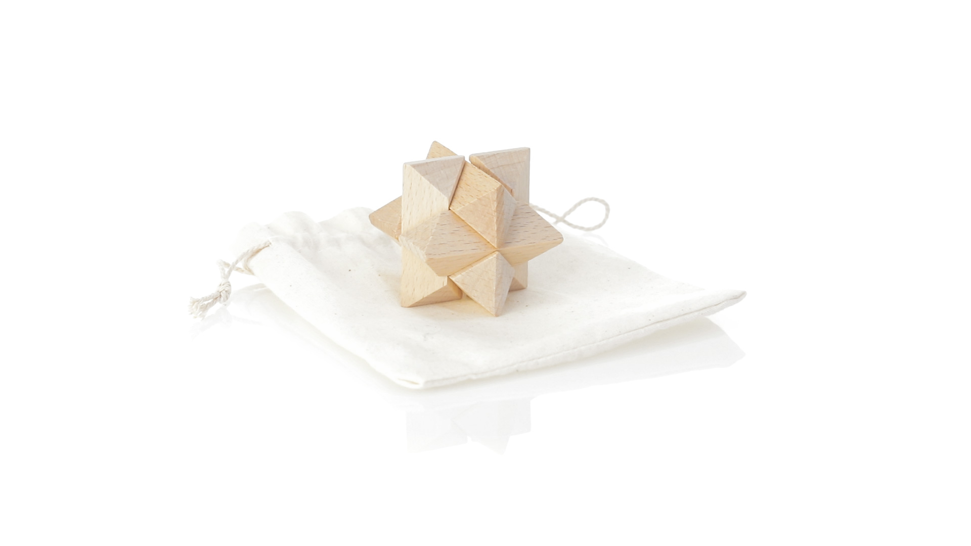 Ein 6-teiliges Geschicklichkeitsset für Schlauberger, präsentiert in einem robusten Baumwollbeutel mit Kordelzugverschluss.