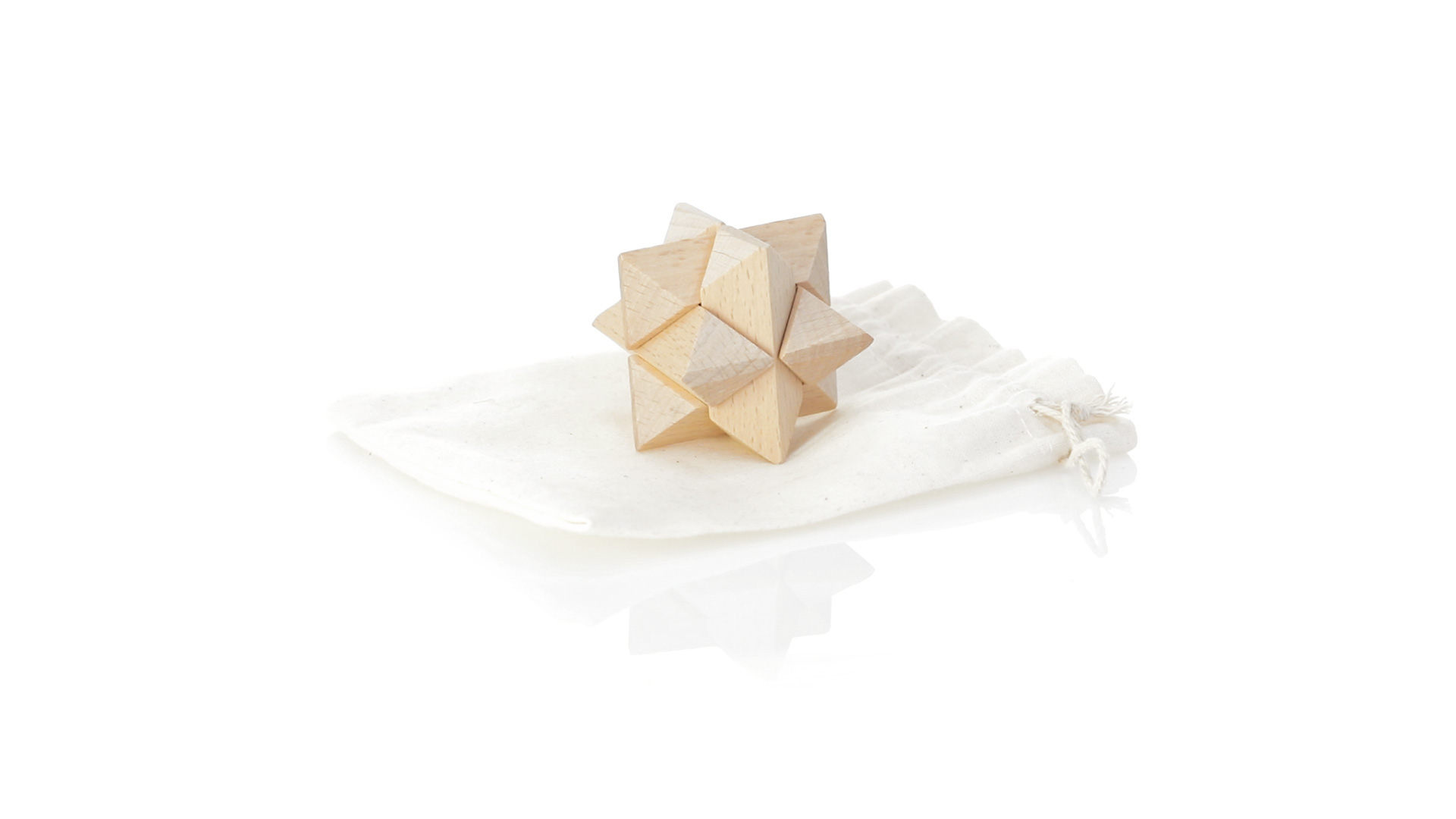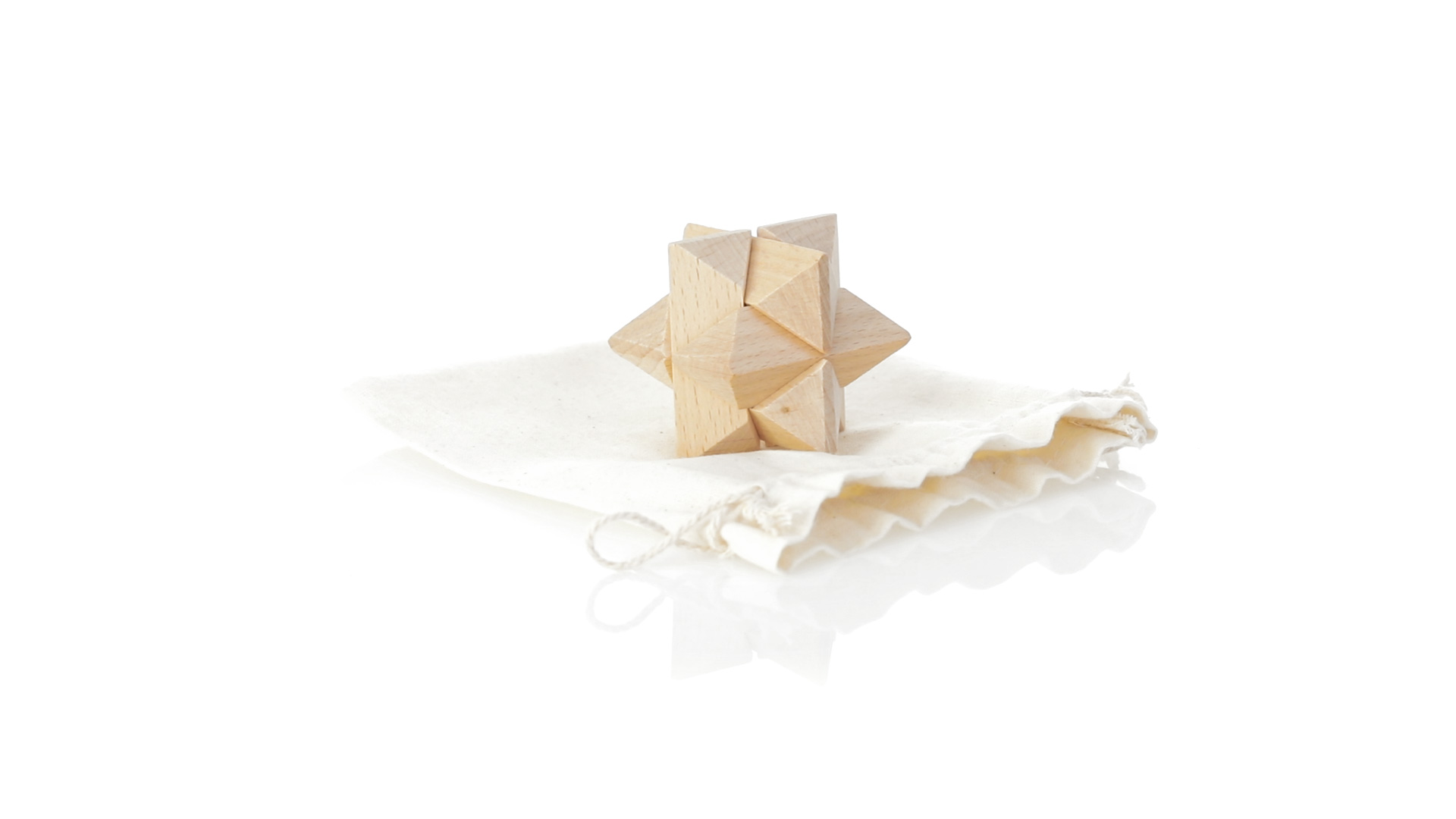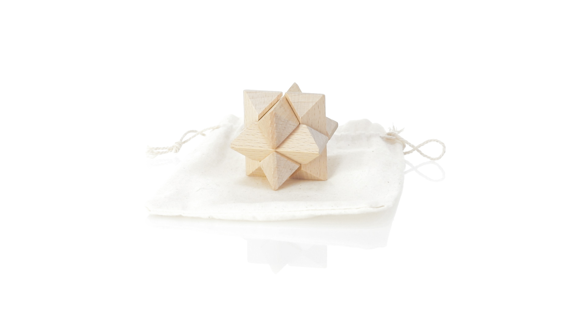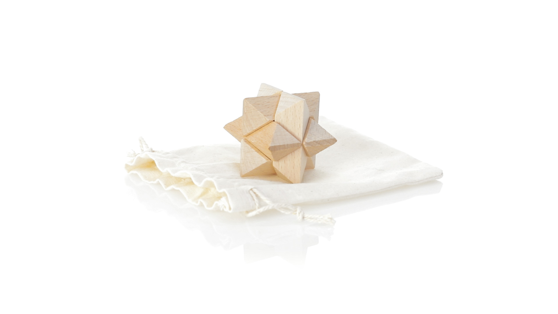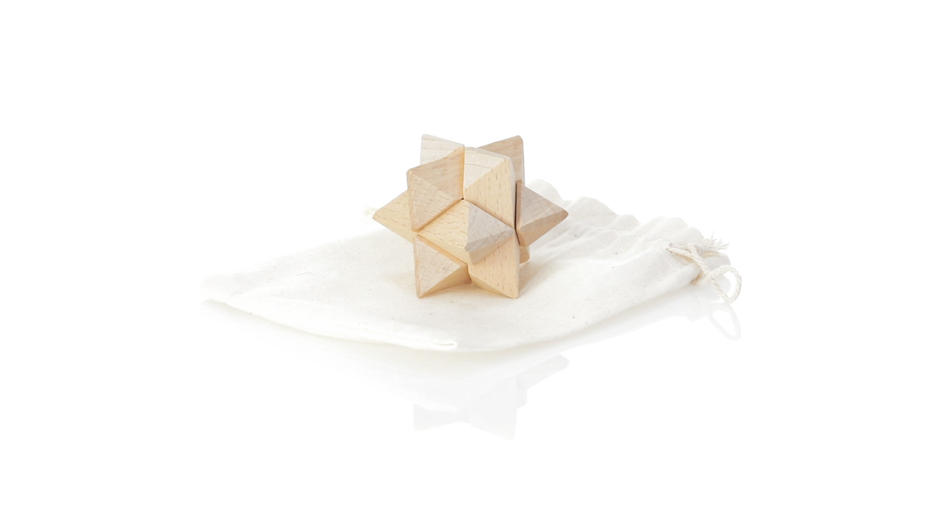 Ein 6-teiliges Geschicklichkeitsset für Schlauberger, präsentiert in einem robusten Baumwollbeutel mit Kordelzugverschluss.