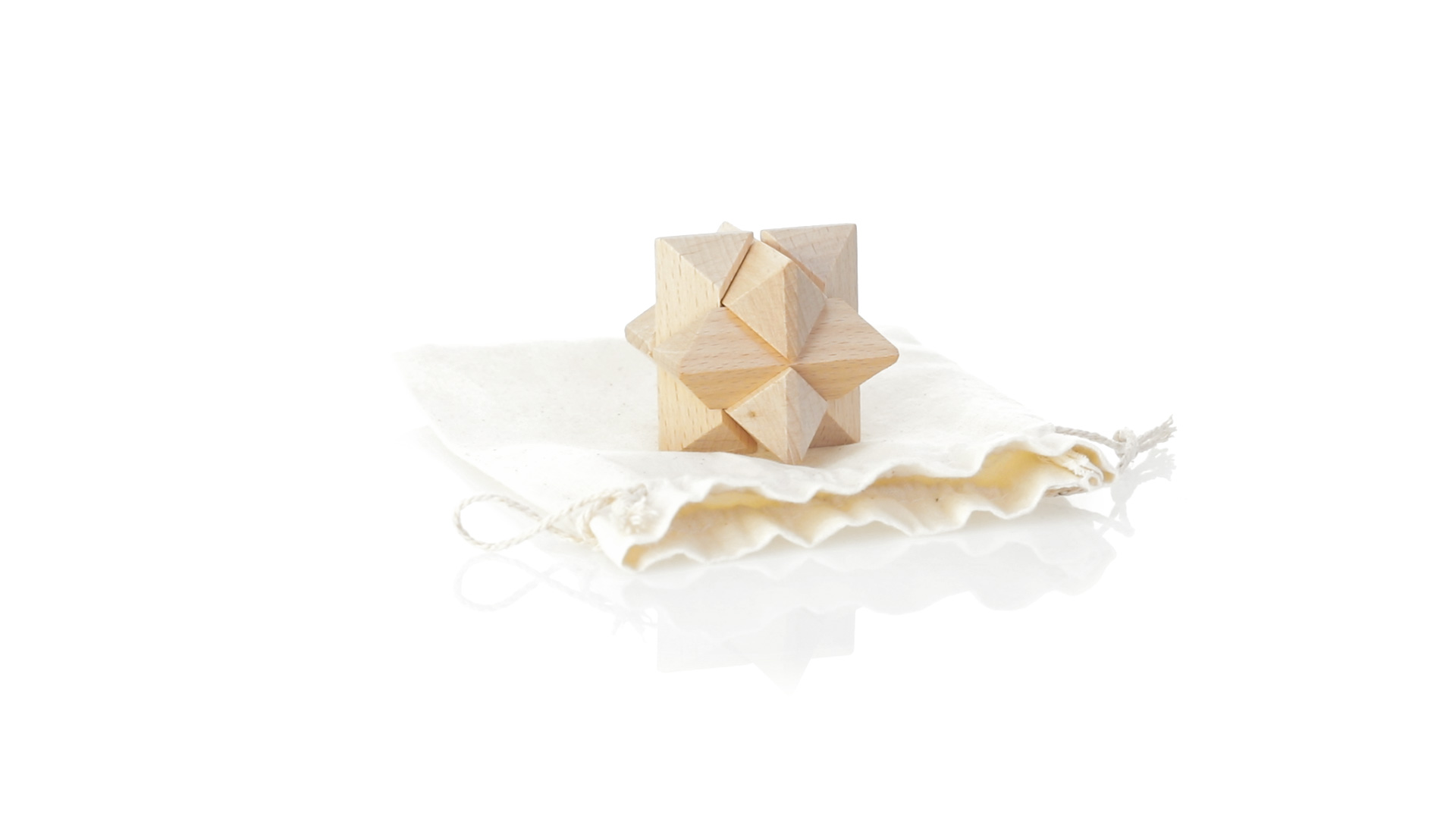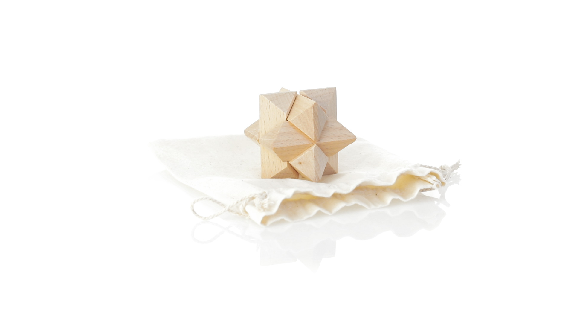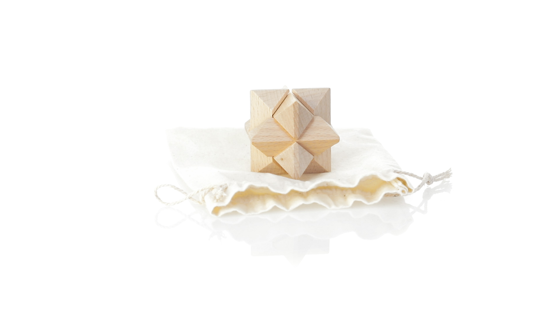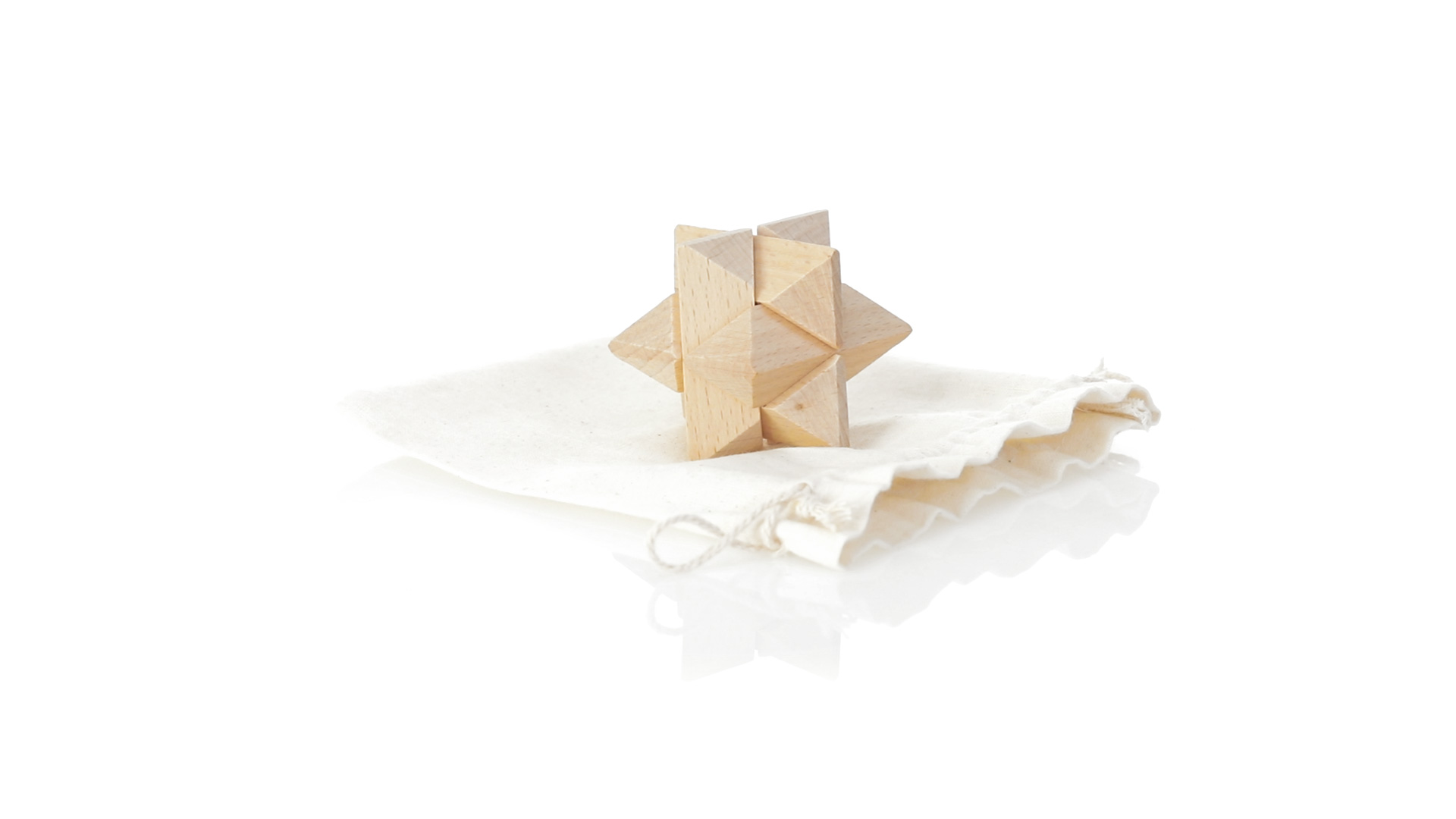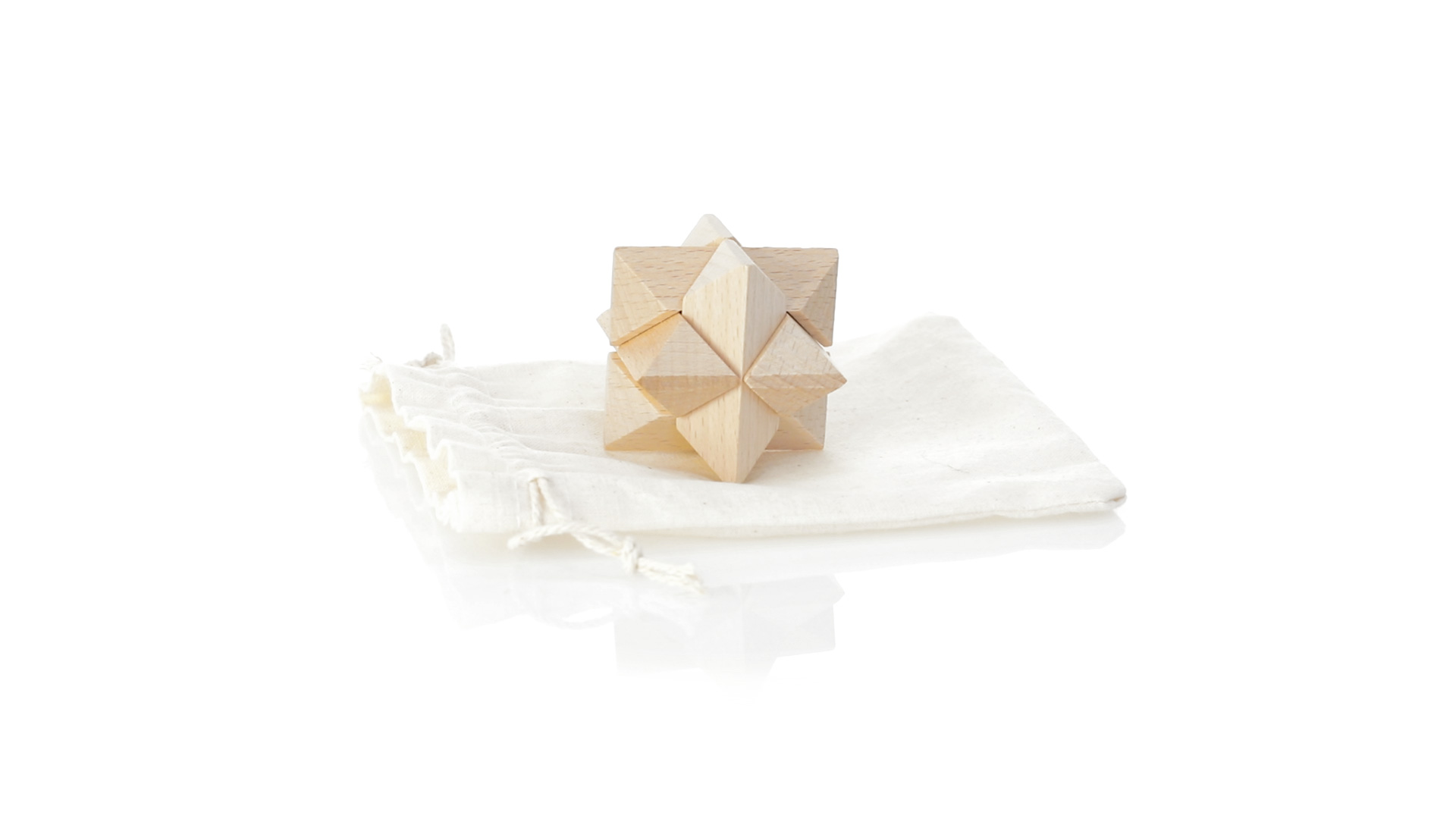Ein 6-teiliges Geschicklichkeitsset für Schlauberger, präsentiert in einem robusten Baumwollbeutel mit Kordelzugverschluss.