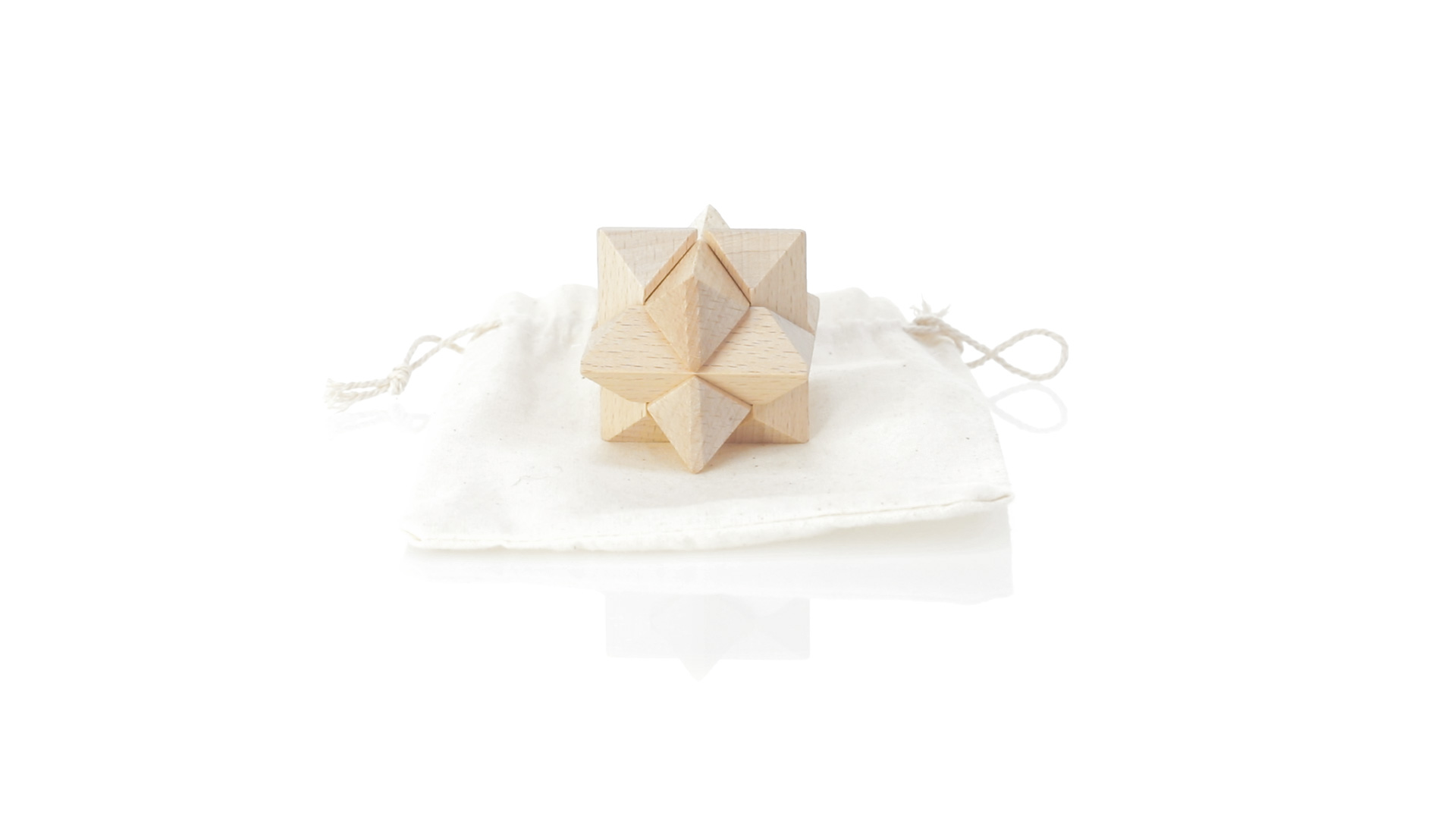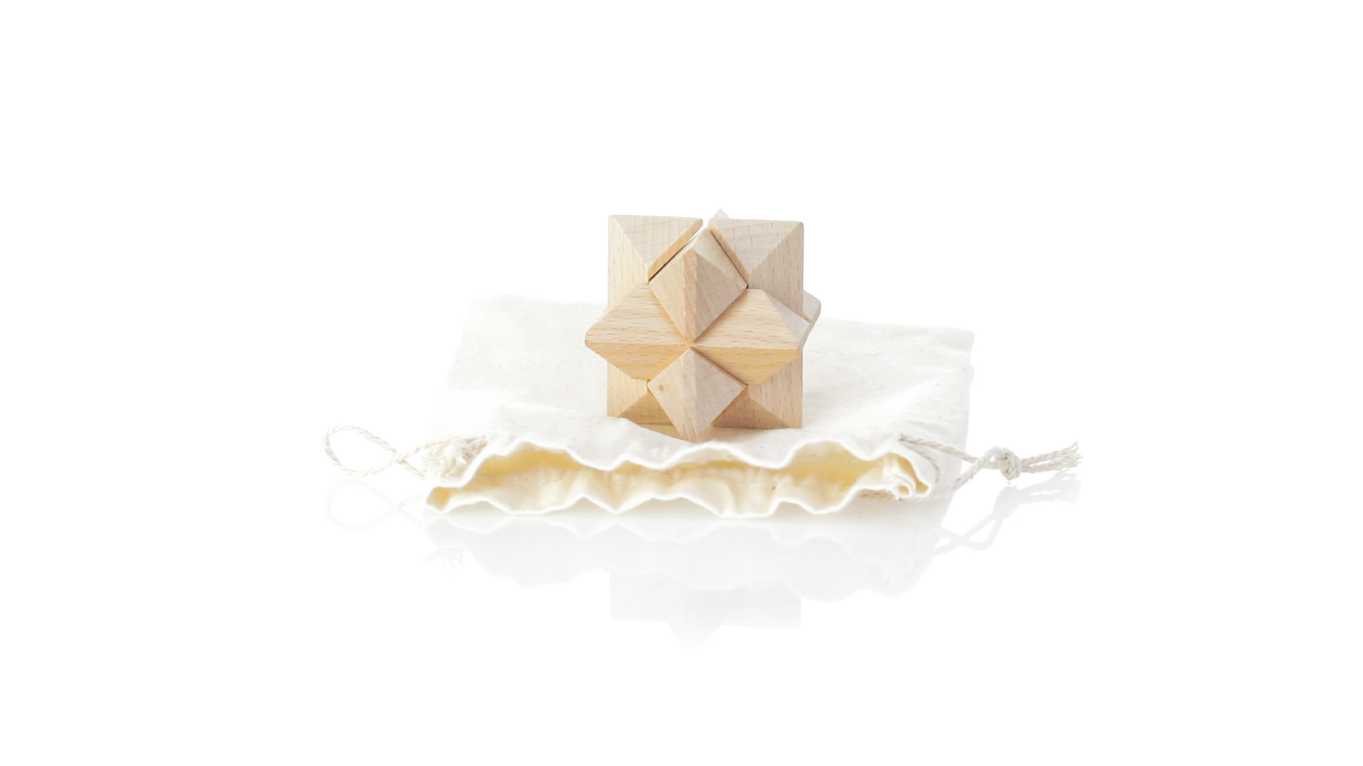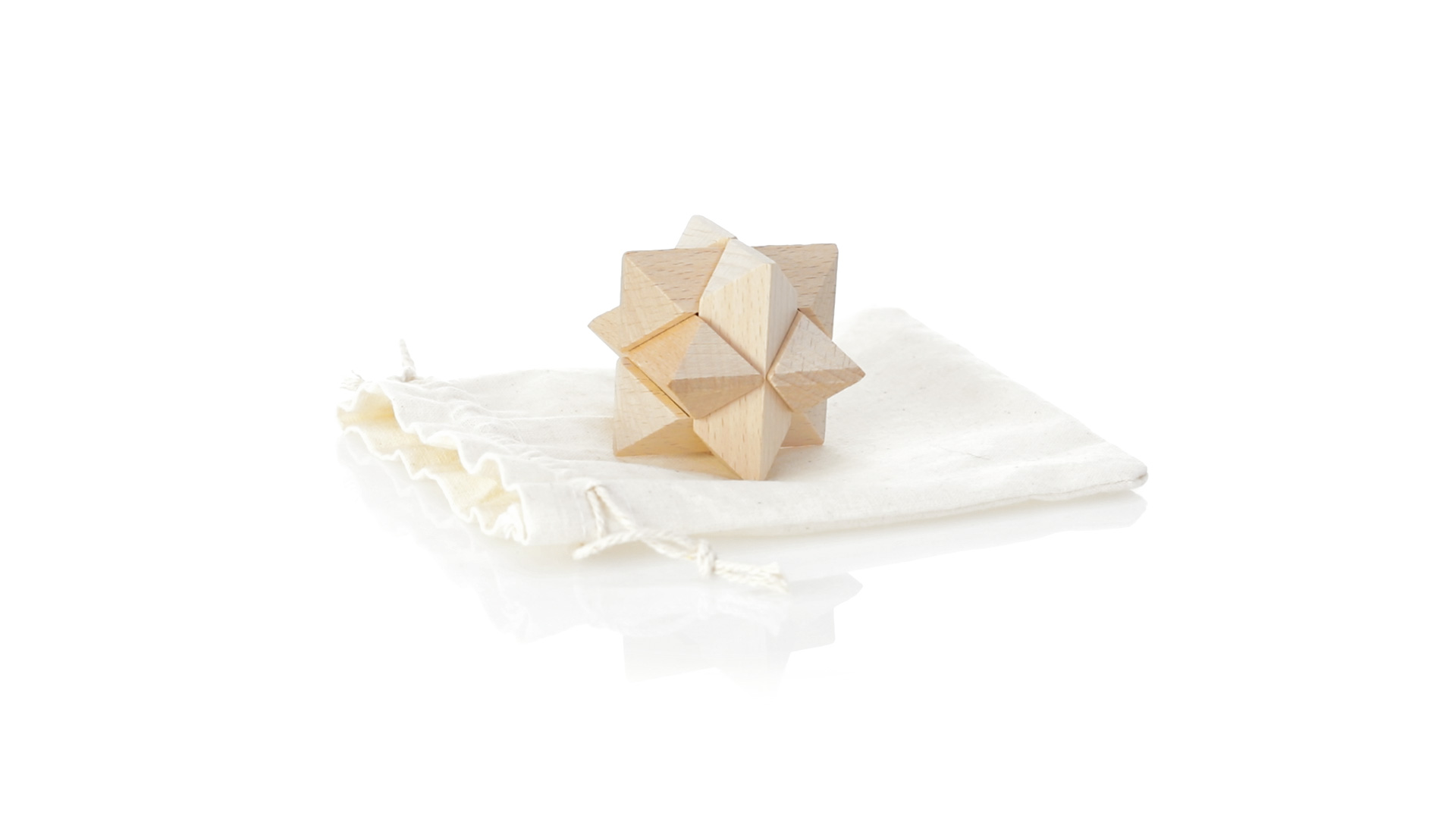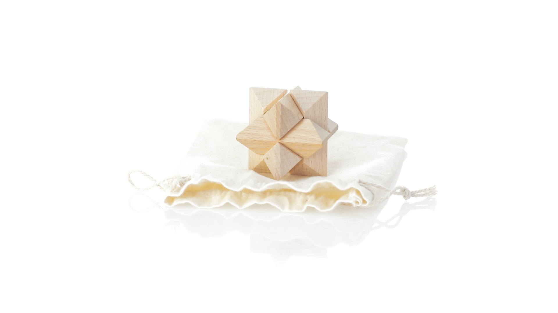 Ein 6-teiliges Geschicklichkeitsset für Schlauberger, präsentiert in einem robusten Baumwollbeutel mit Kordelzugverschluss.