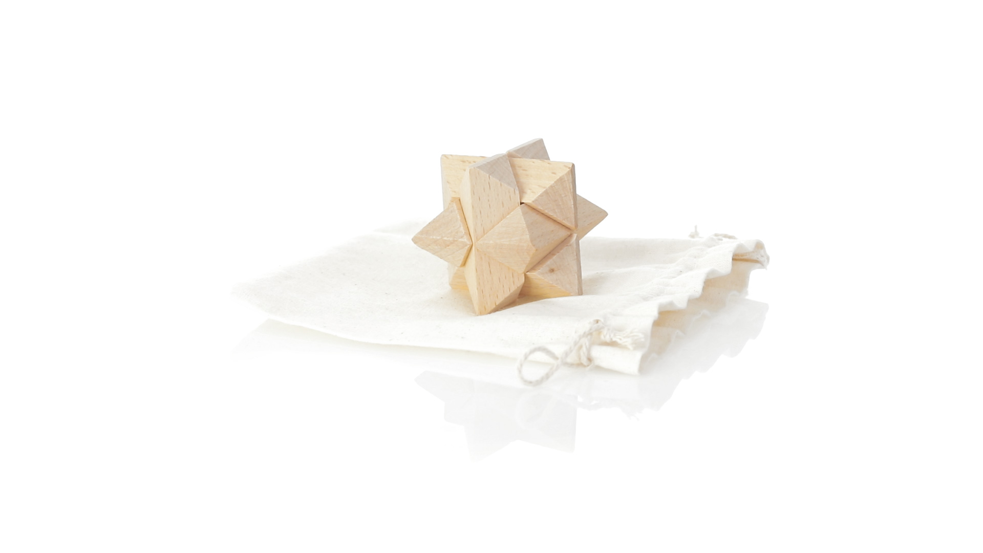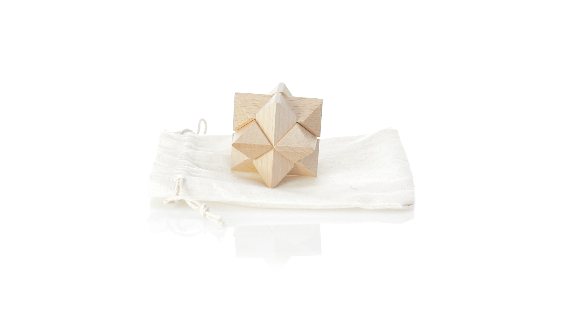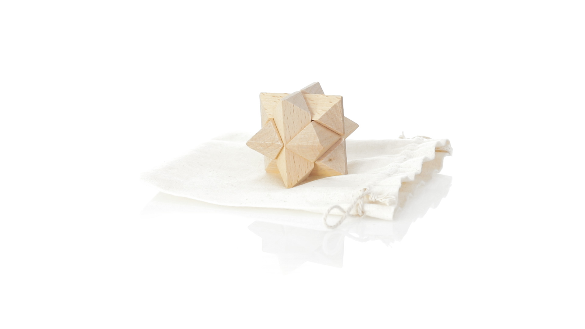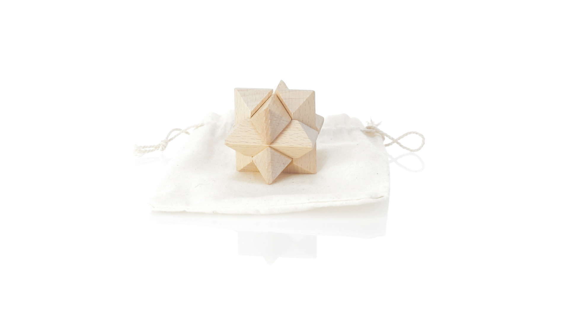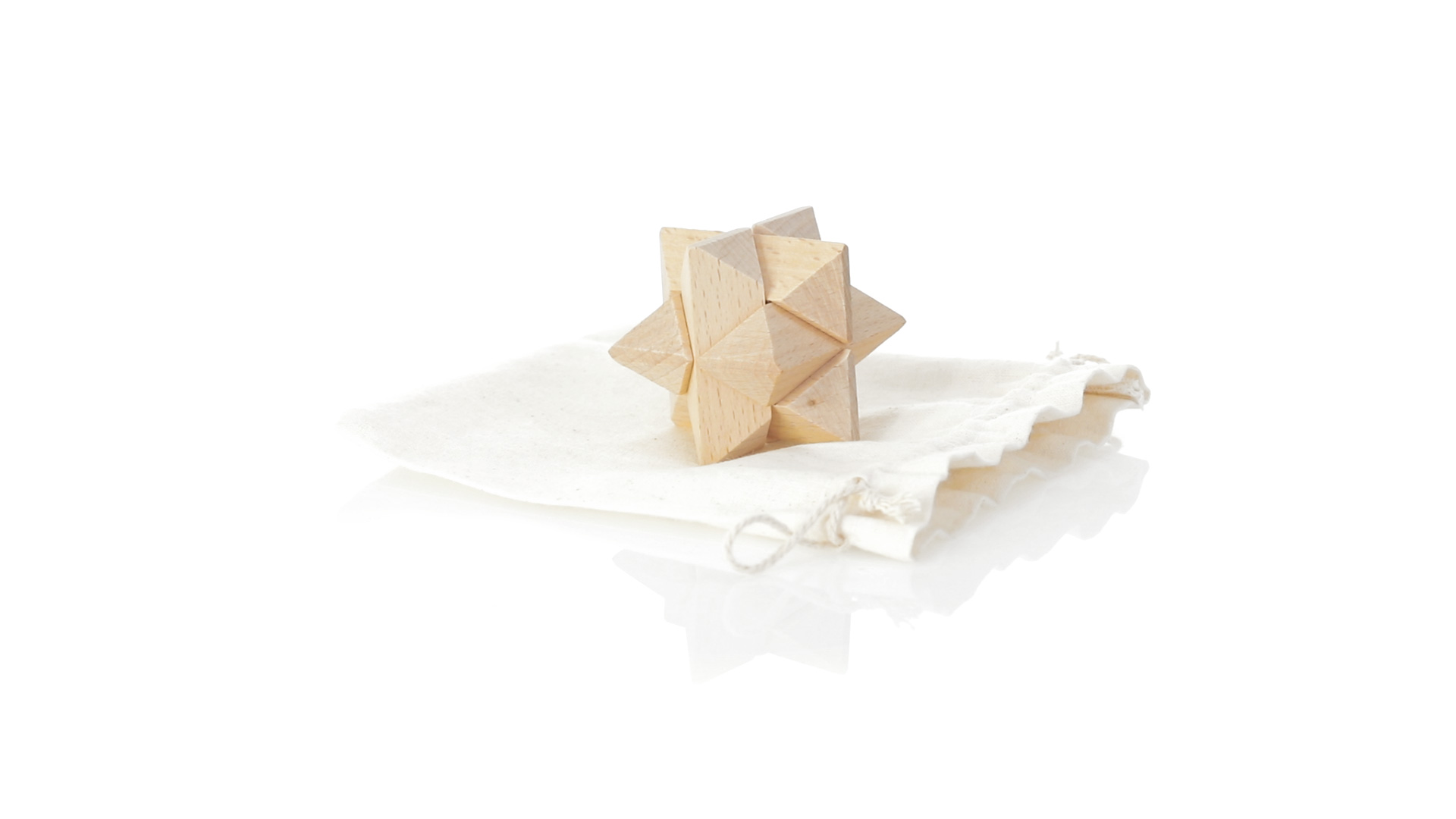 Ein 6-teiliges Geschicklichkeitsset für Schlauberger, präsentiert in einem robusten Baumwollbeutel mit Kordelzugverschluss.