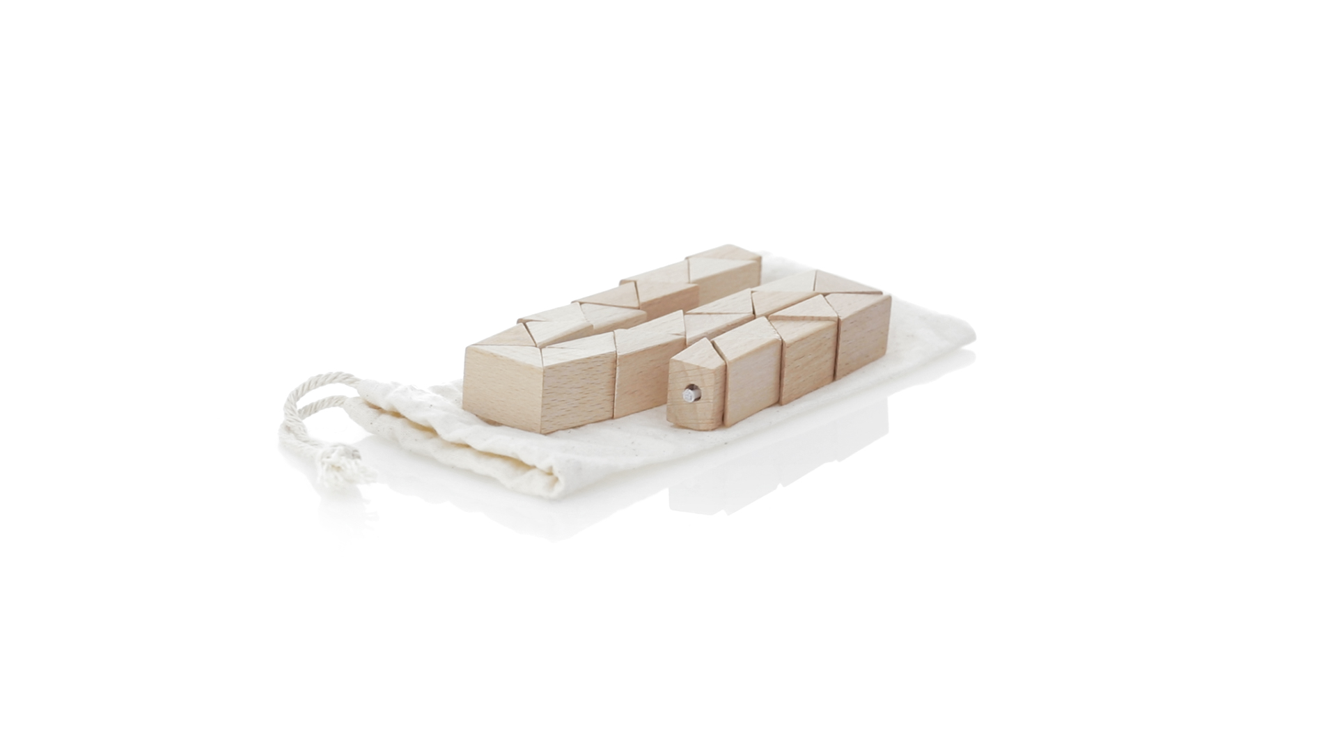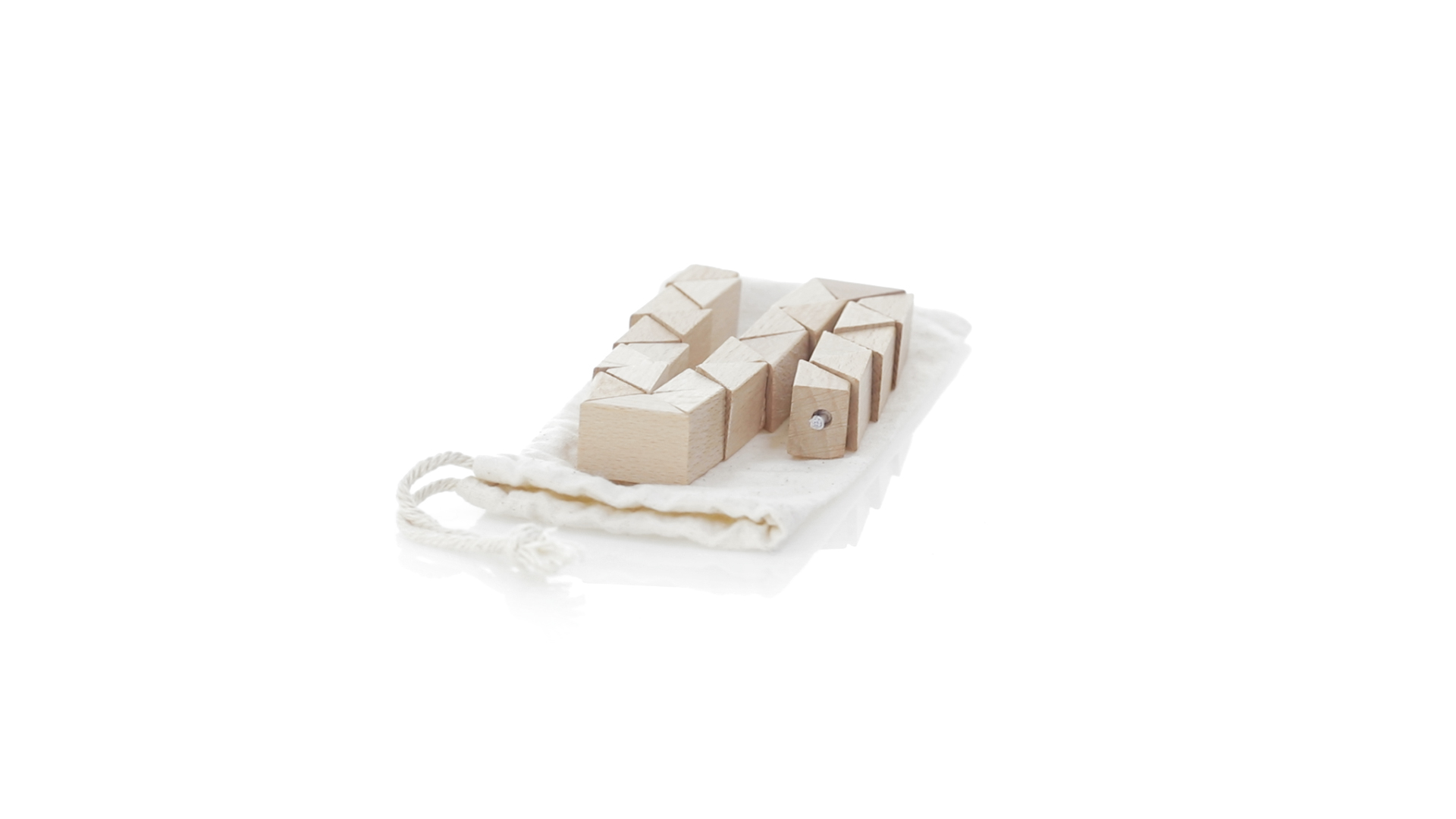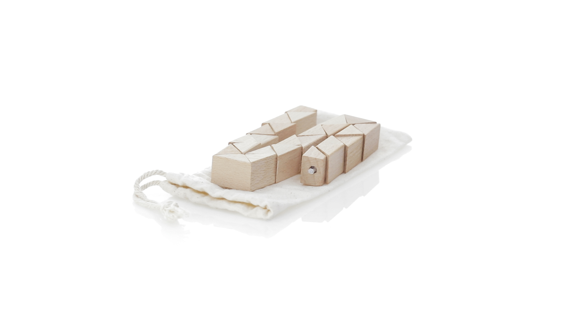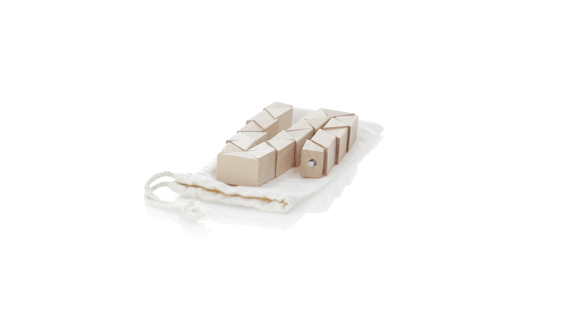 Geschicklichkeitsspiel für die Kreativsten. Hergestellt aus Holz und präsentiert in einem dauerhaften natürlichen Baumwollbeutel mit Kordelzugverschluss.
