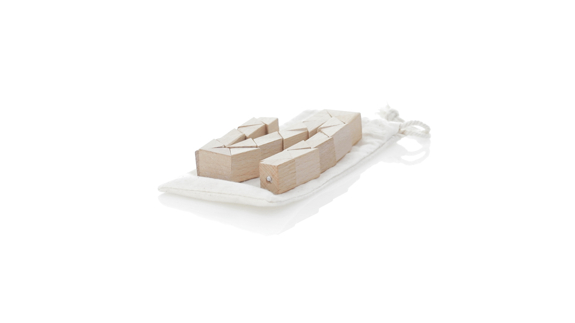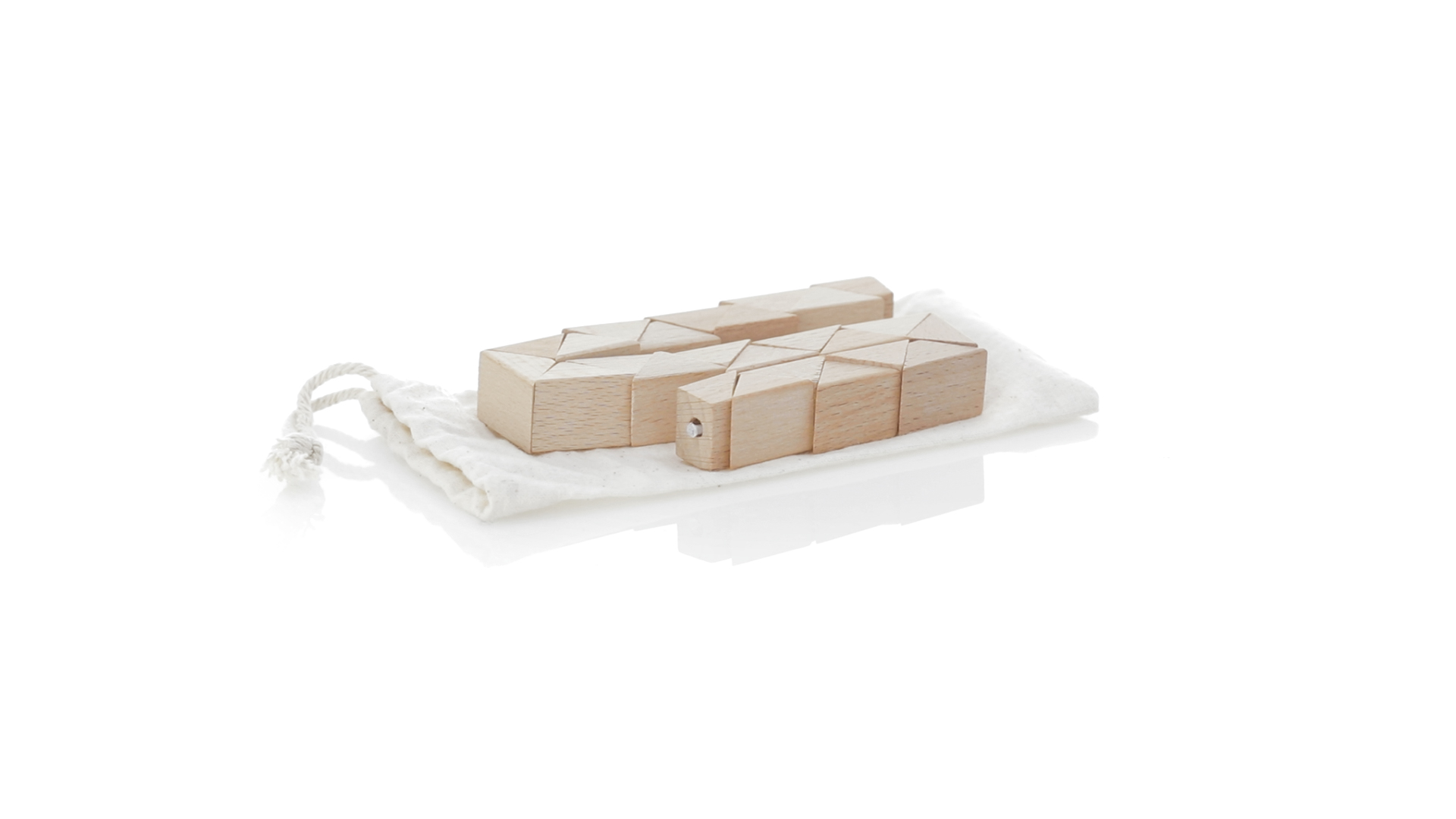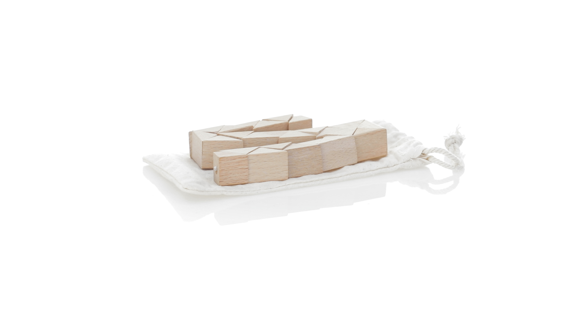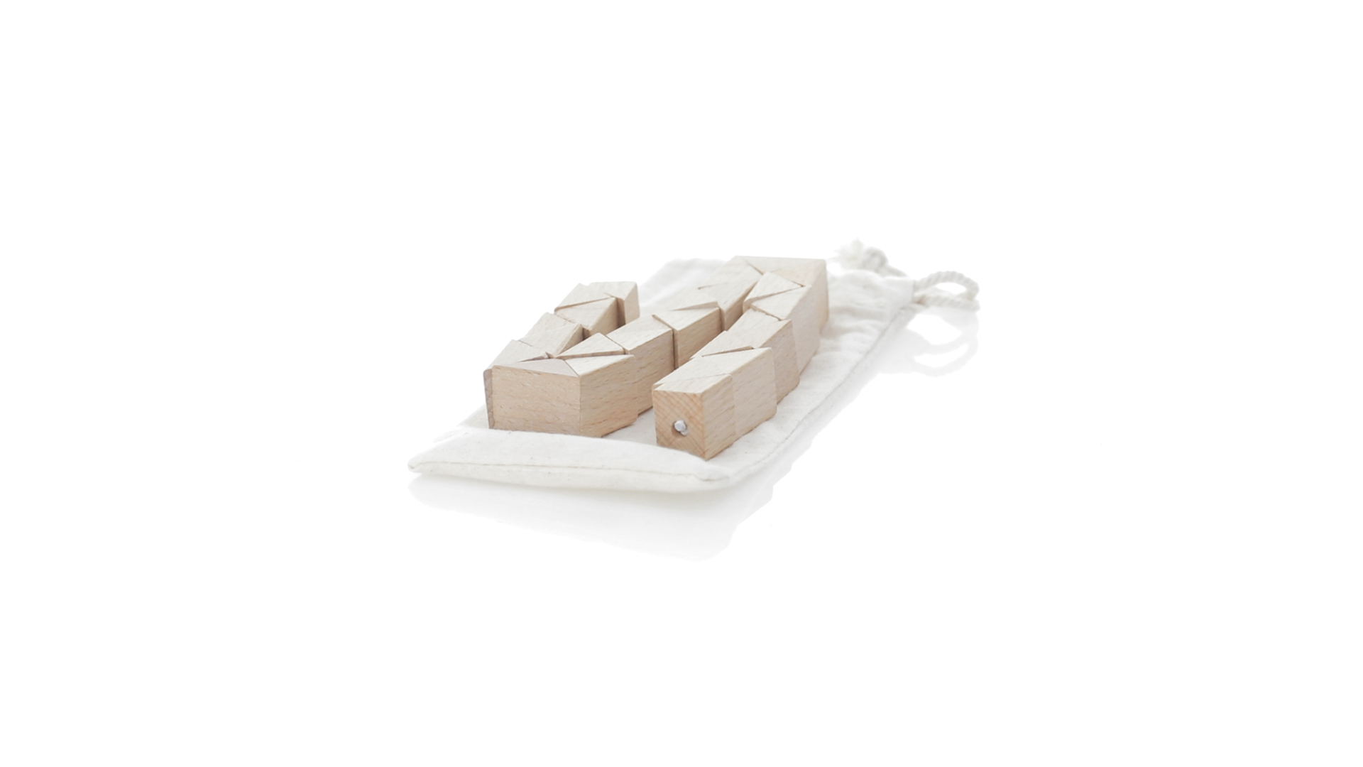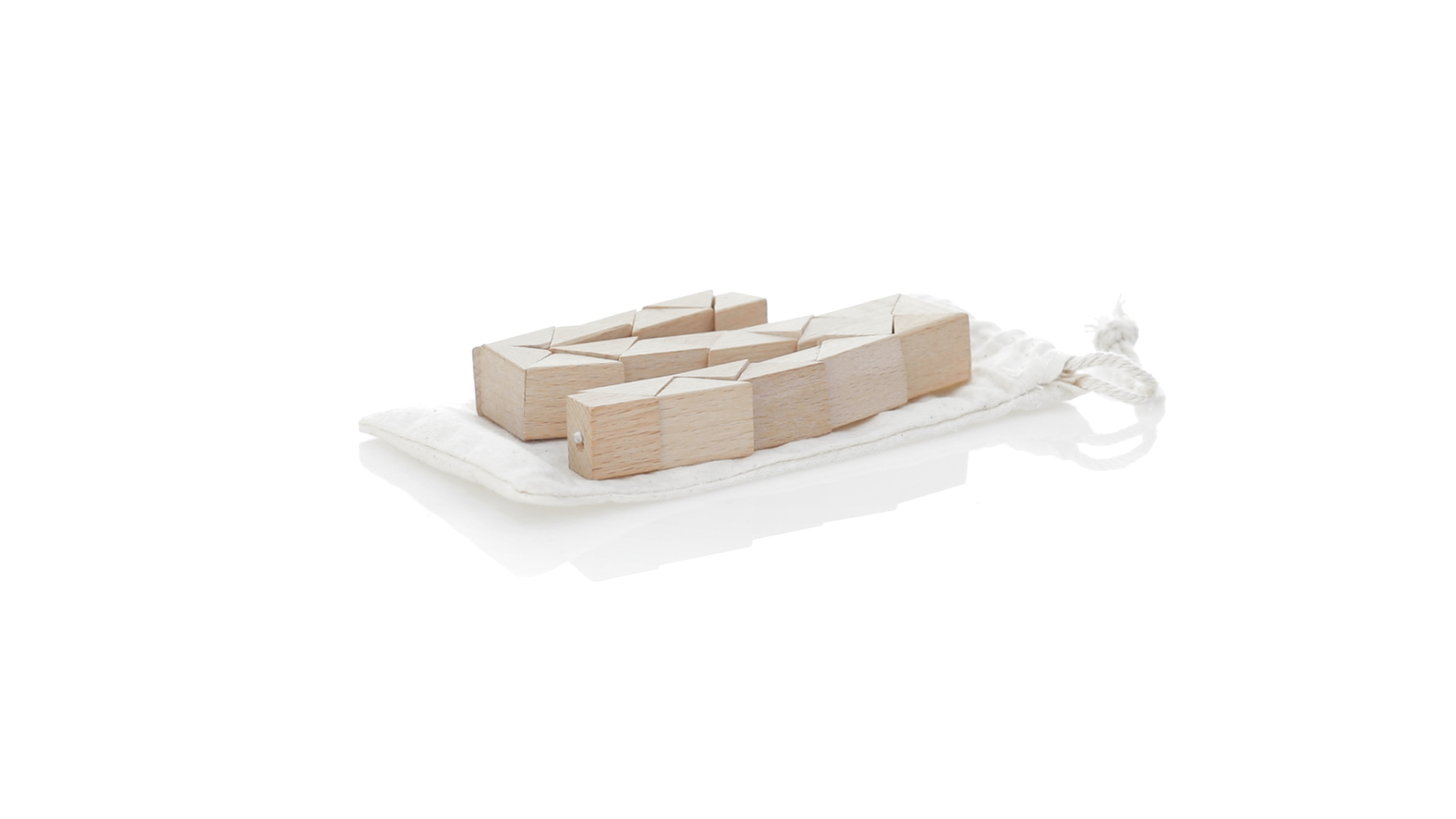 Geschicklichkeitsspiel für die Kreativsten. Hergestellt aus Holz und präsentiert in einem dauerhaften natürlichen Baumwollbeutel mit Kordelzugverschluss.