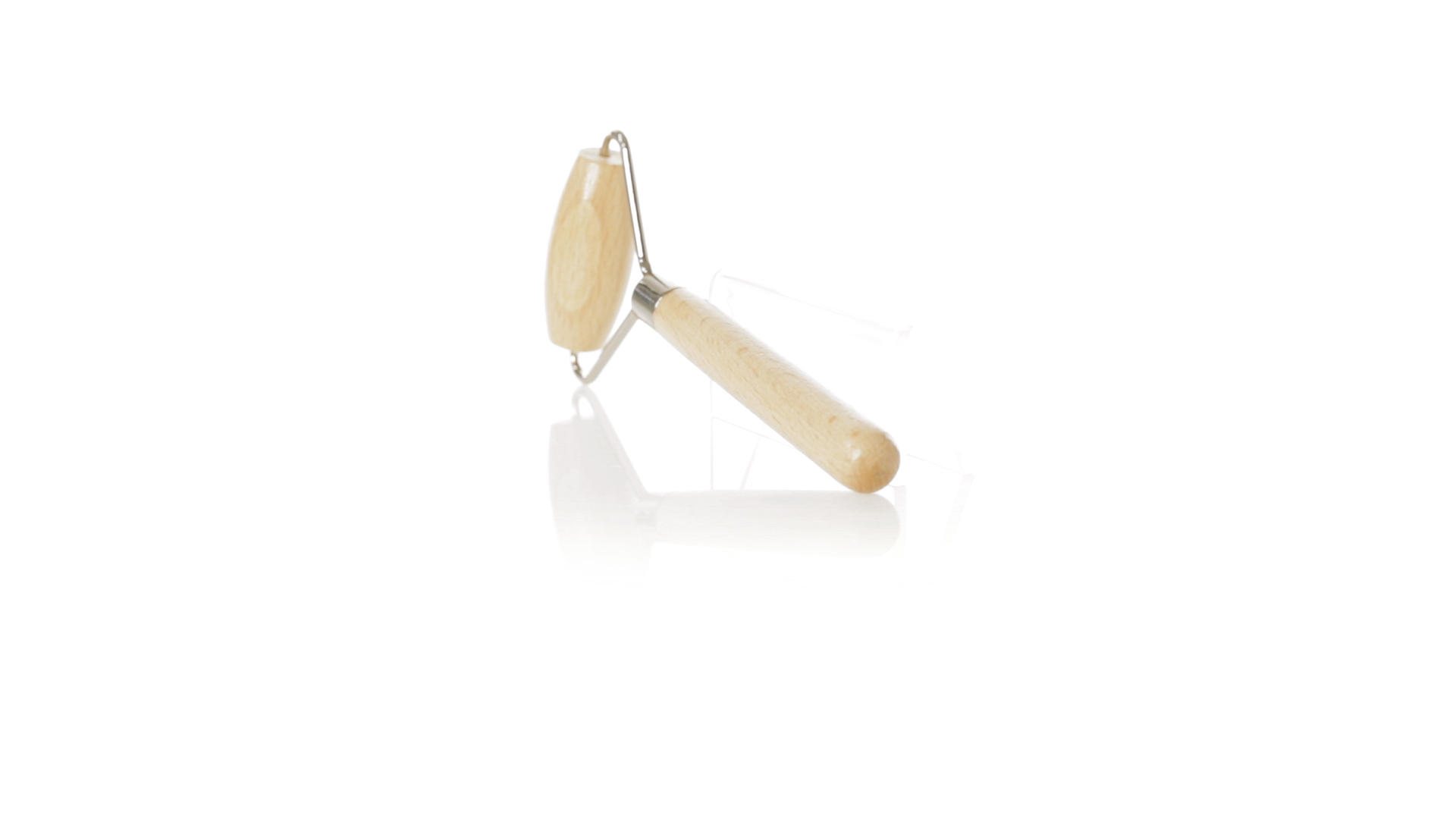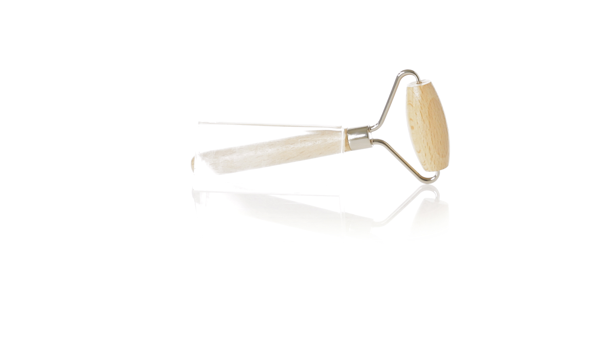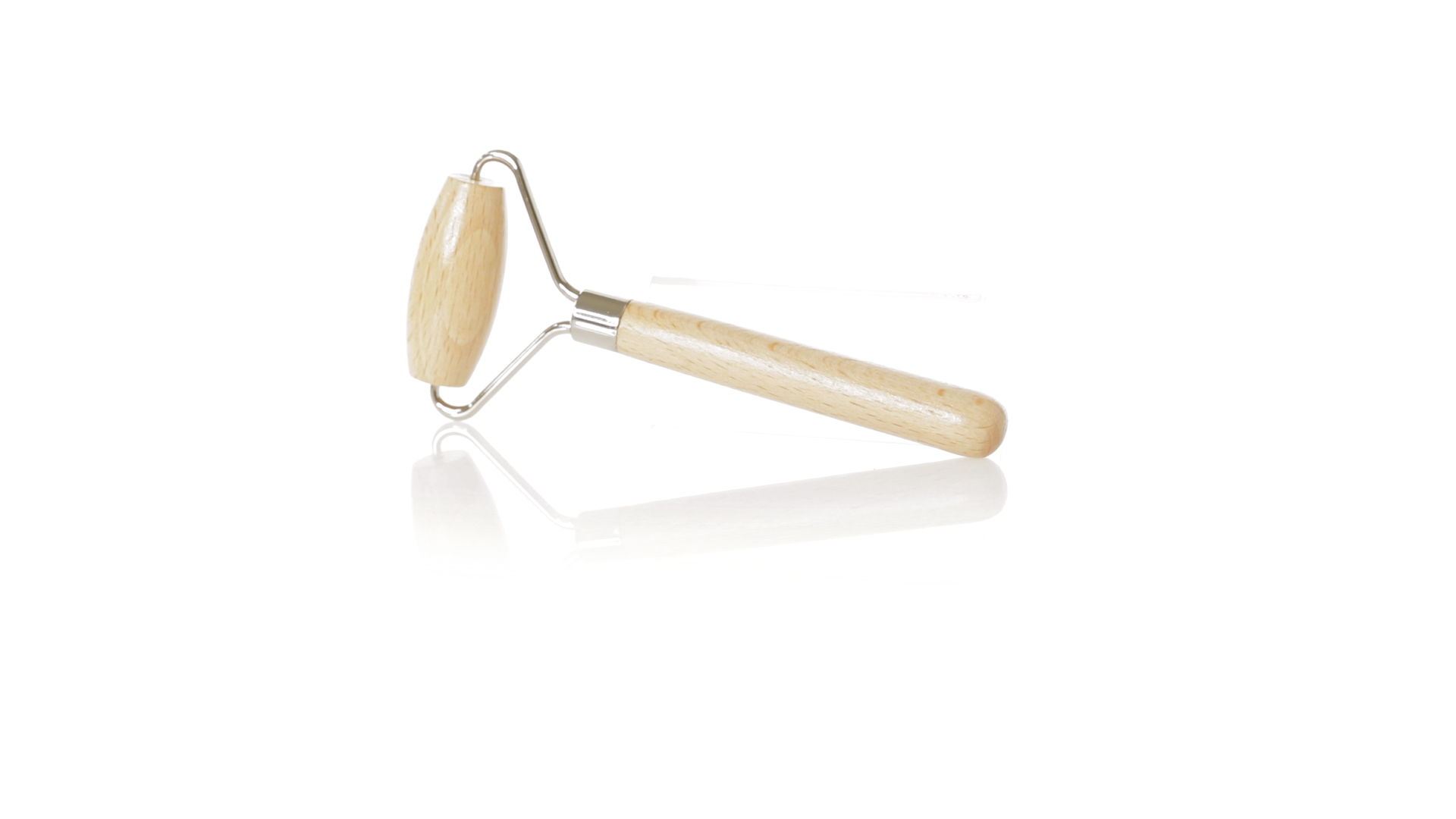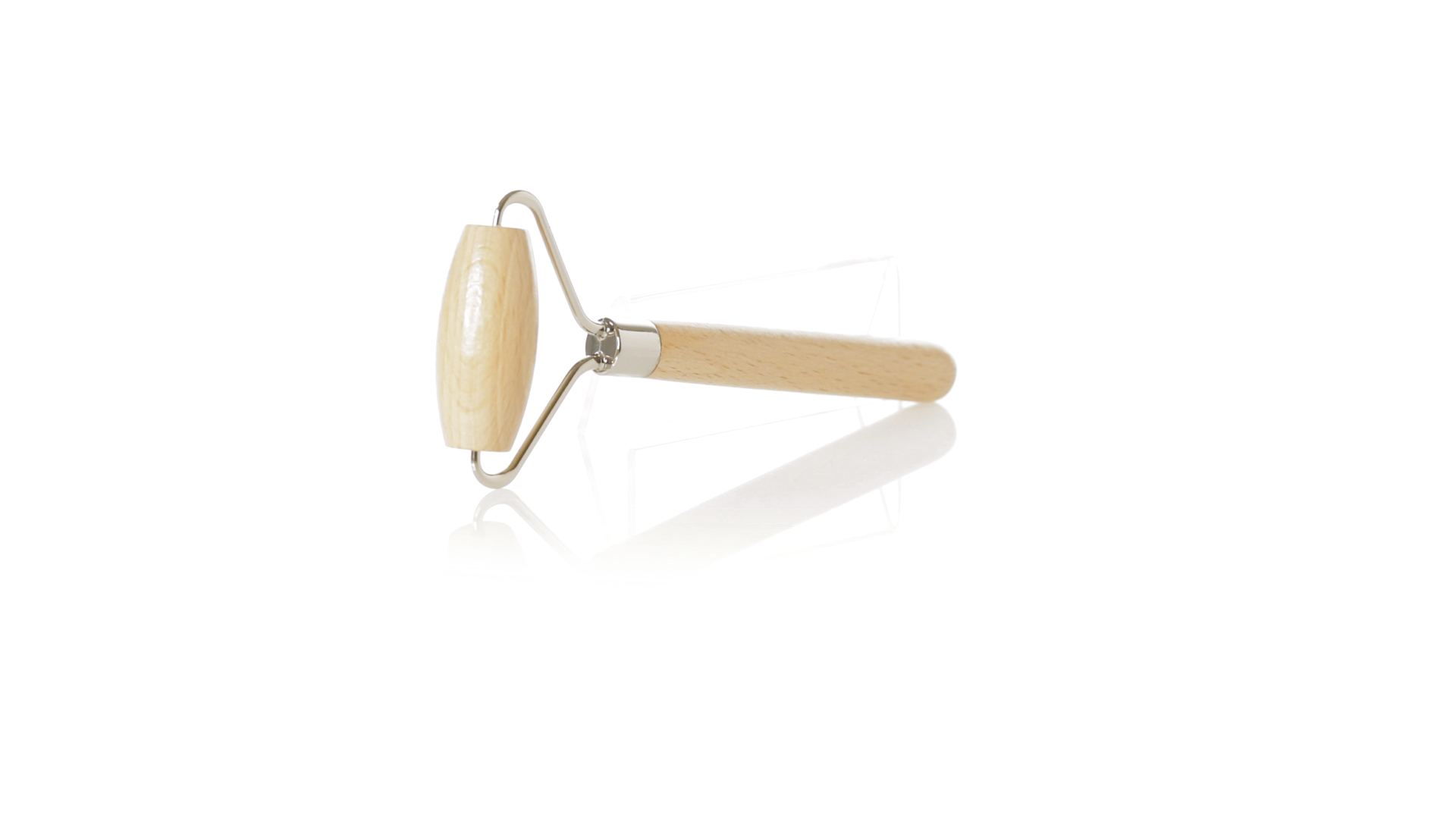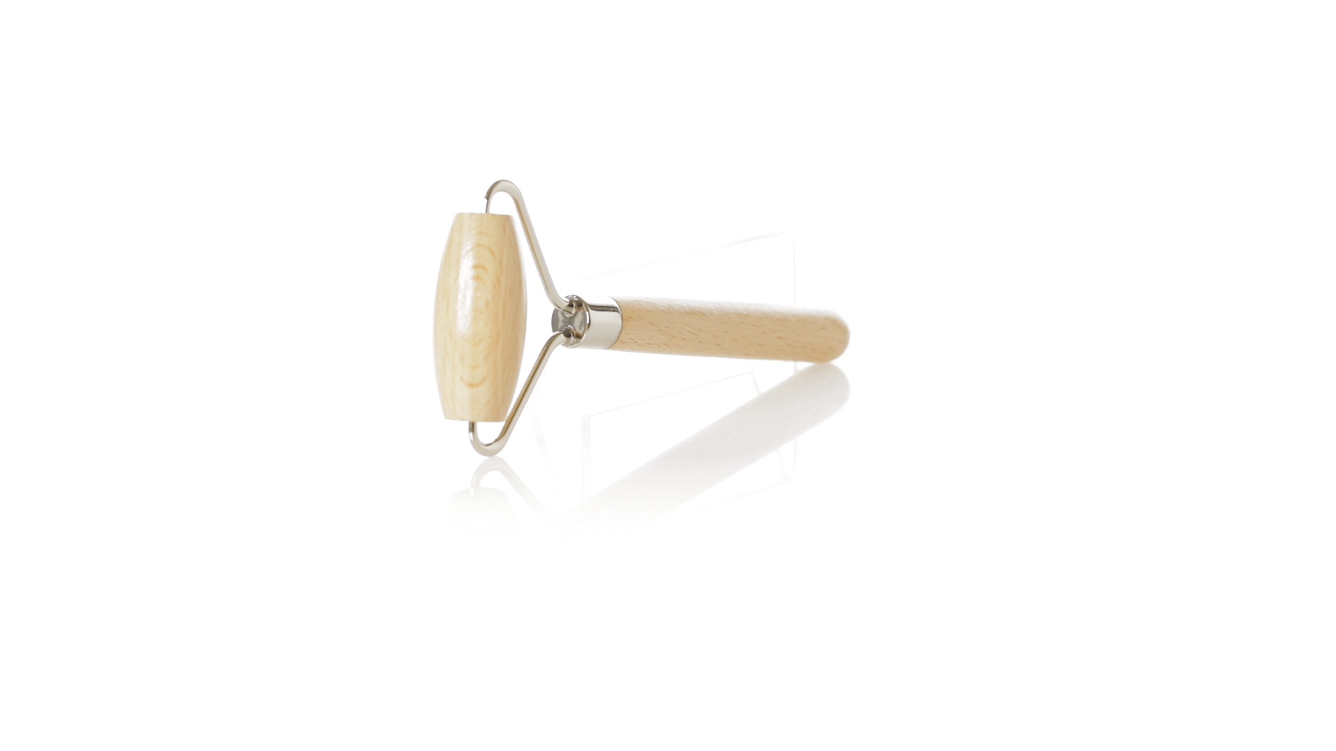 Gesichtsmassage-Massageroller aus Naturholz, der die Gesichtspflege fördert und entspannend wirkt. Präsentiert in einer individuellen Ökodesign-Box aus Kraftkarton.