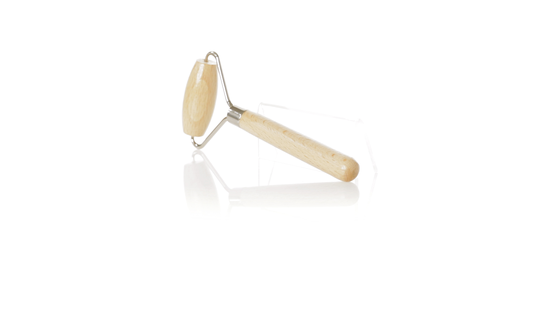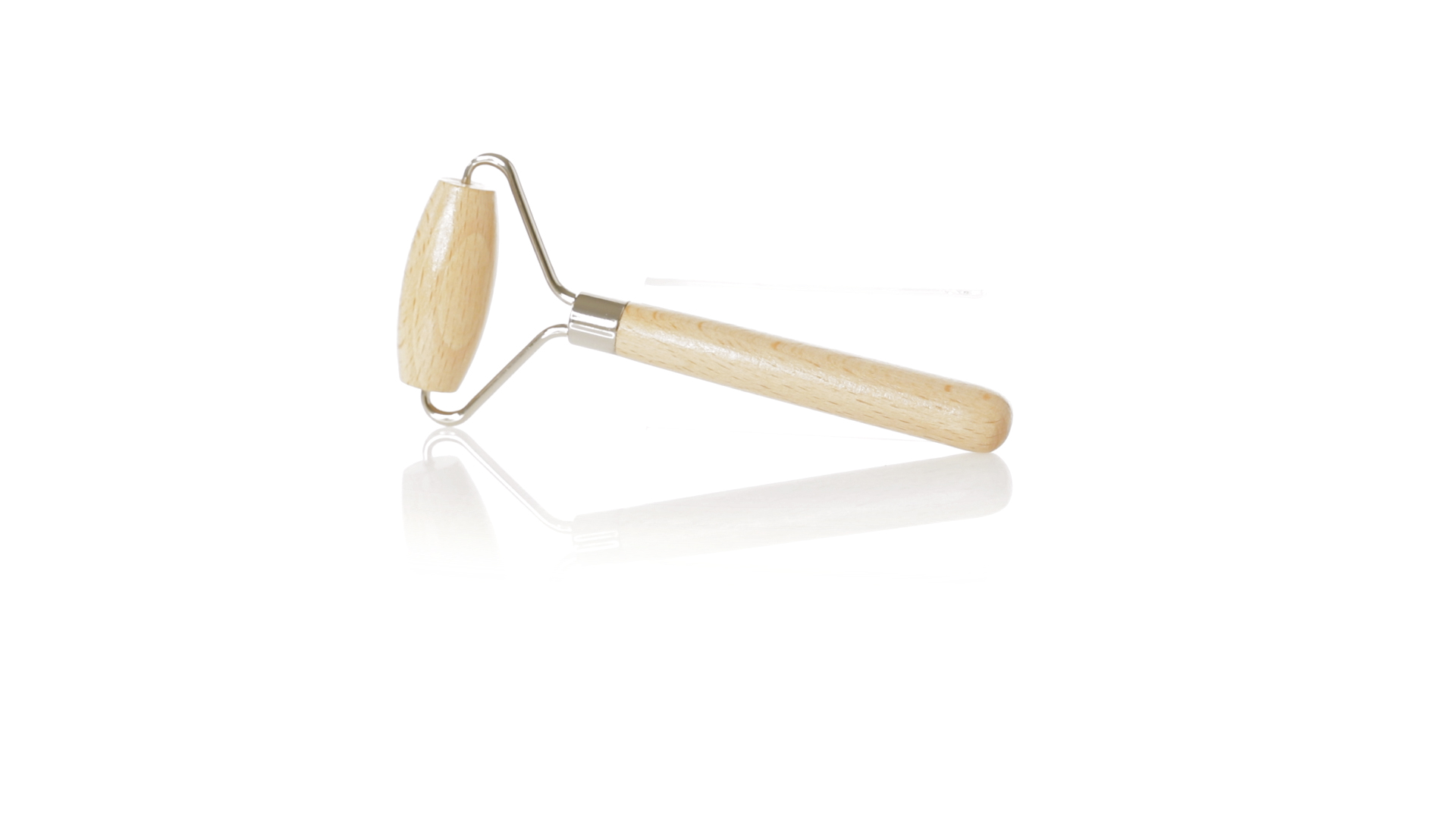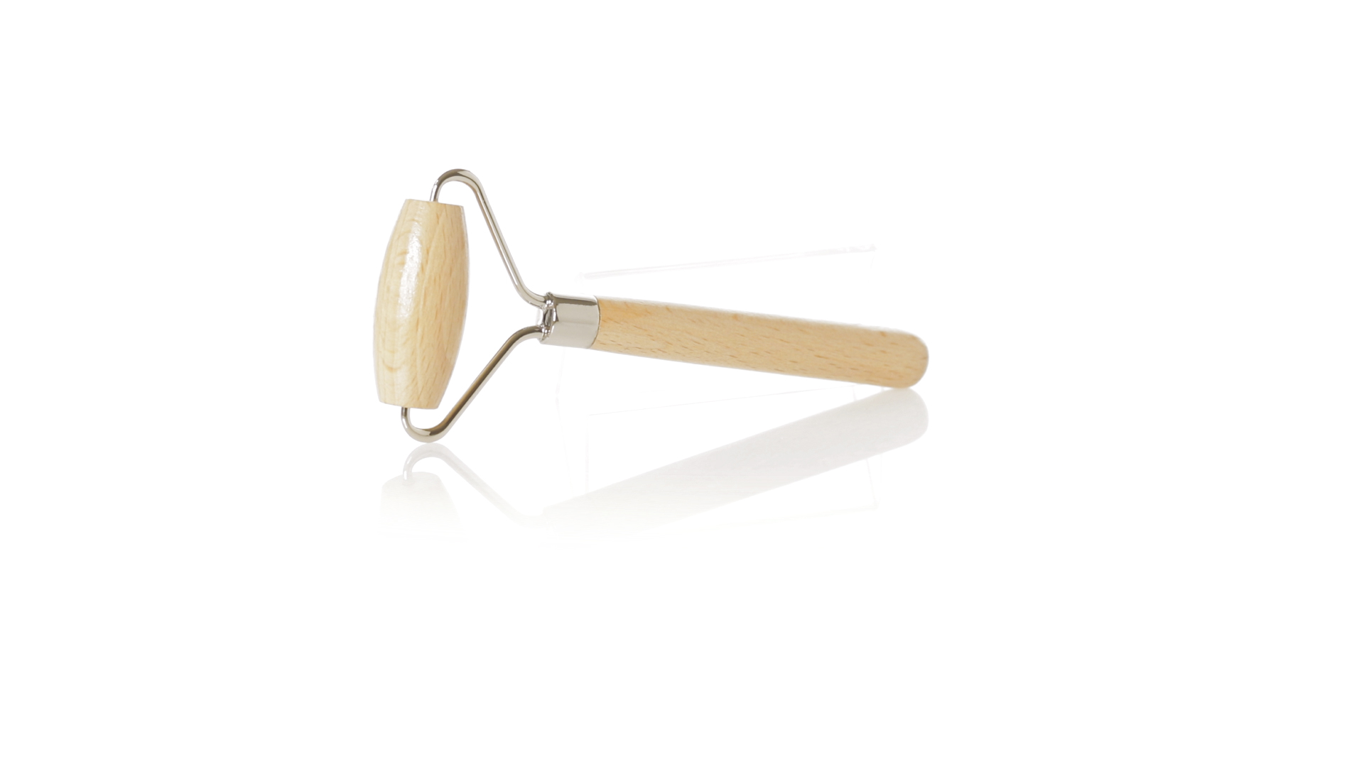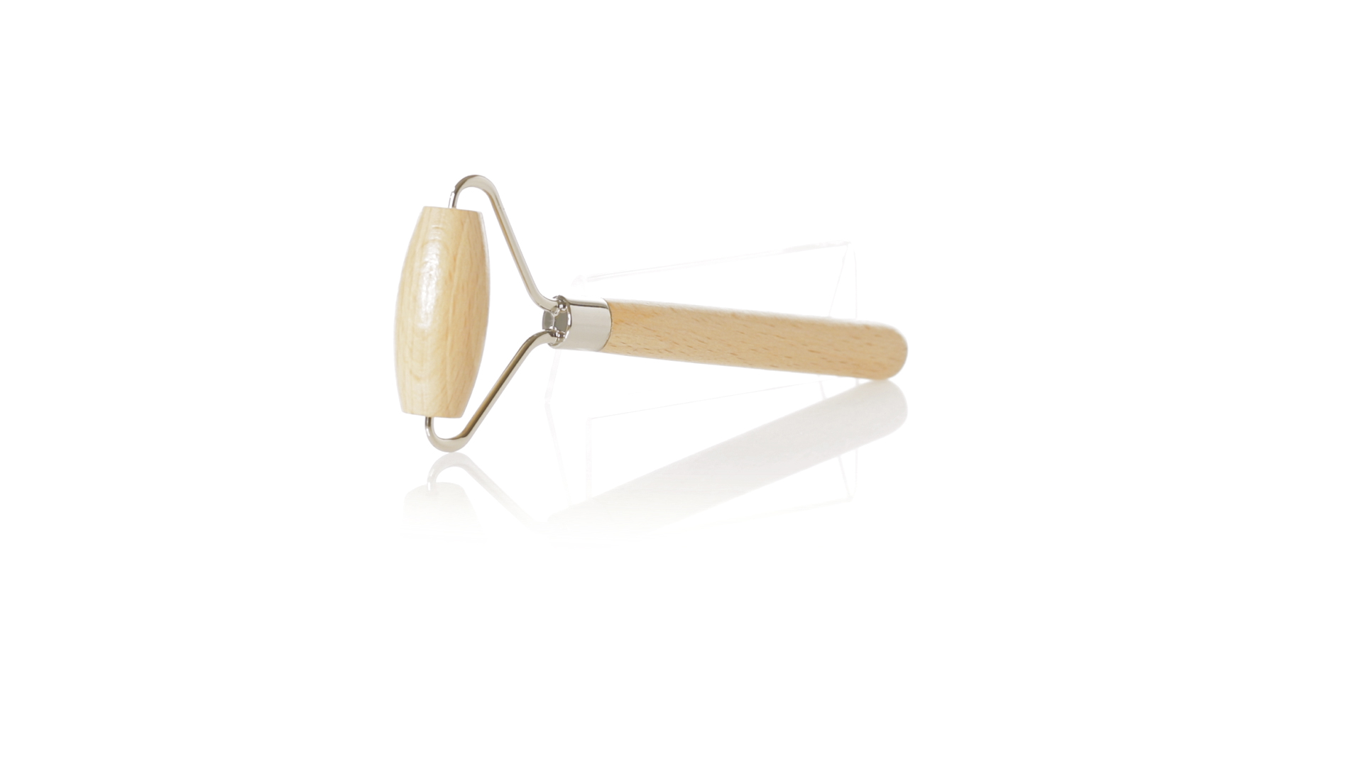 Gesichtsmassage-Massageroller aus Naturholz, der die Gesichtspflege fördert und entspannend wirkt. Präsentiert in einer individuellen Ökodesign-Box aus Kraftkarton.