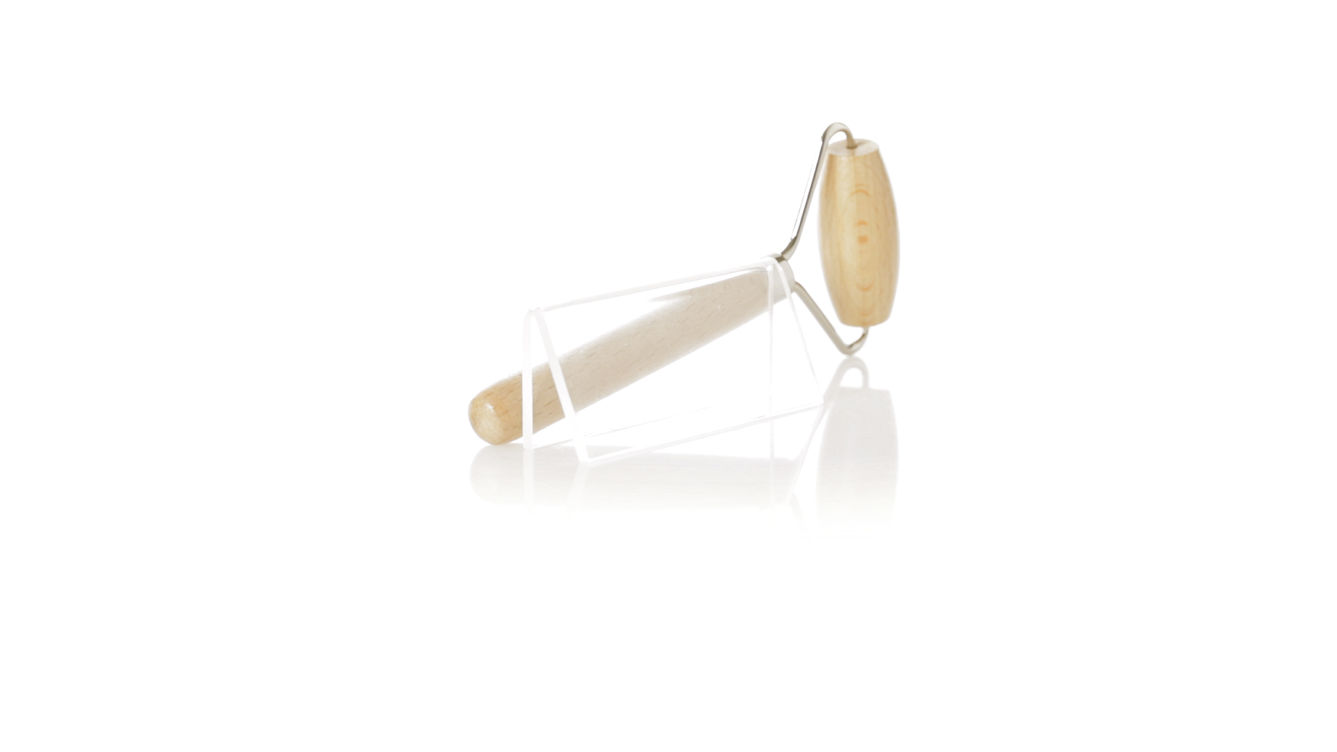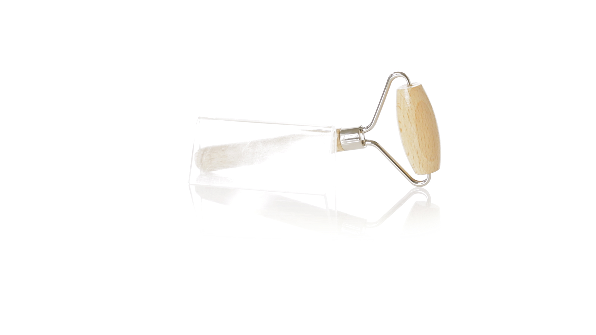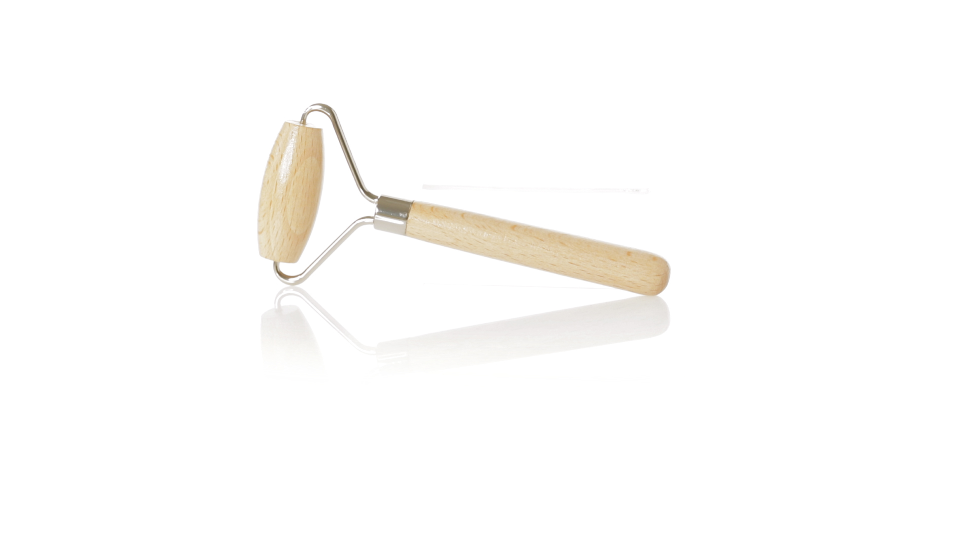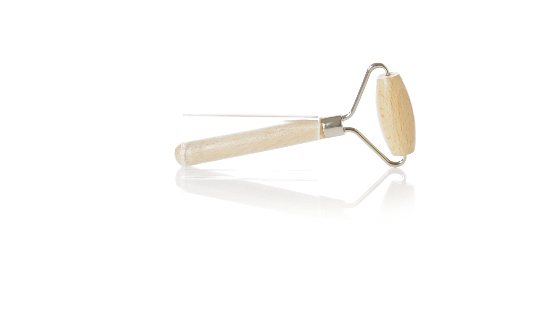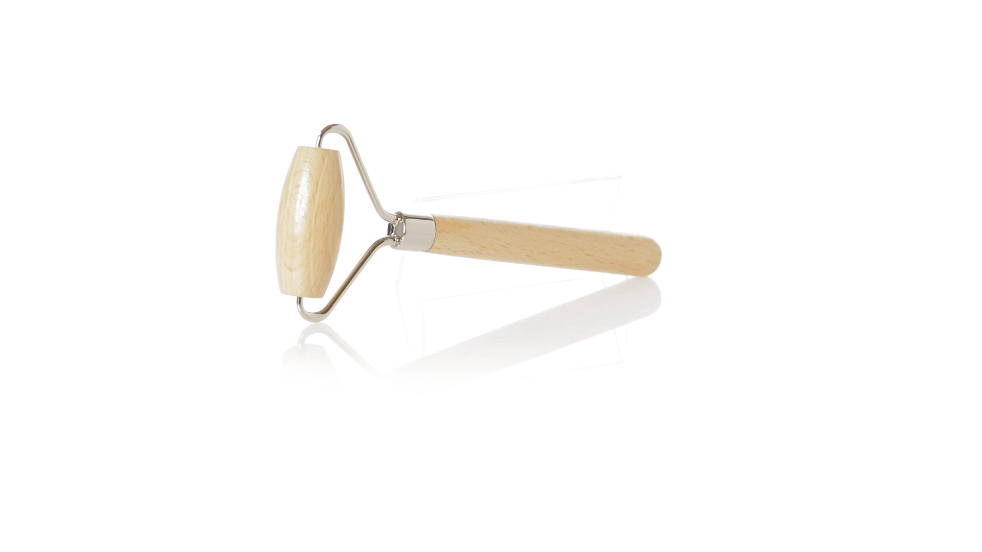Gesichtsmassage-Massageroller aus Naturholz, der die Gesichtspflege fördert und entspannend wirkt. Präsentiert in einer individuellen Ökodesign-Box aus Kraftkarton.