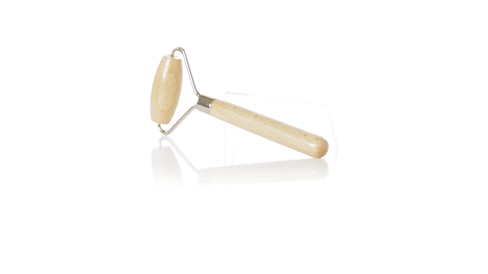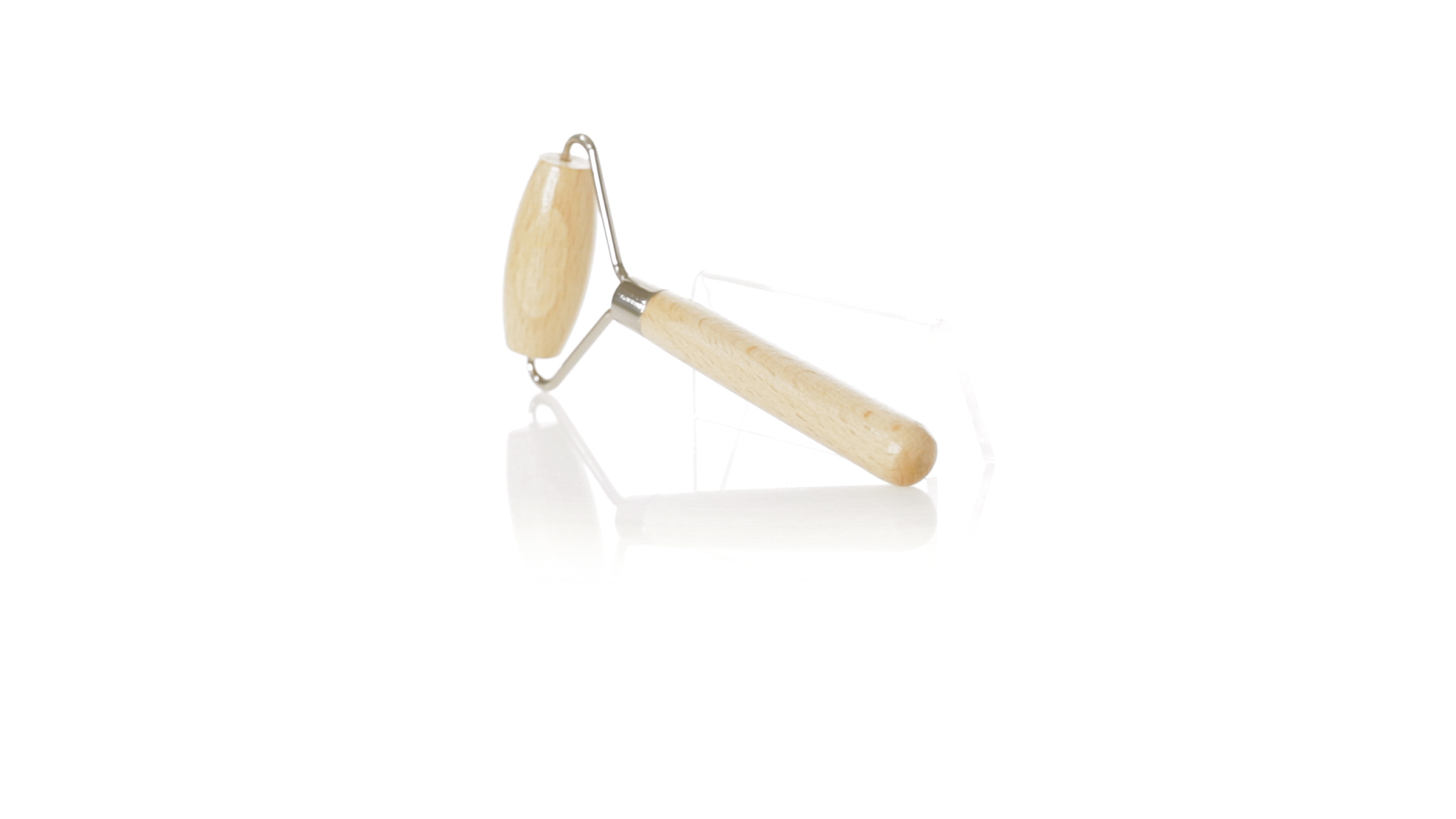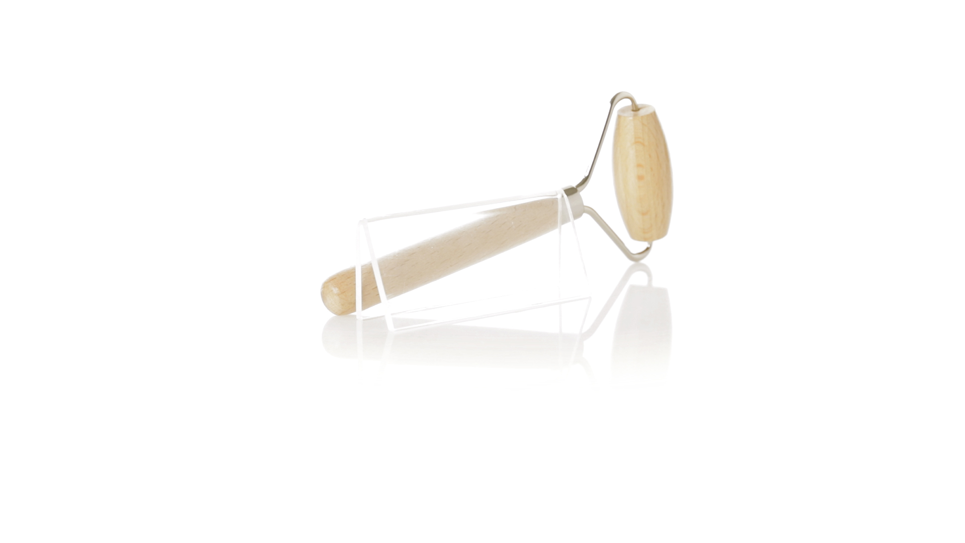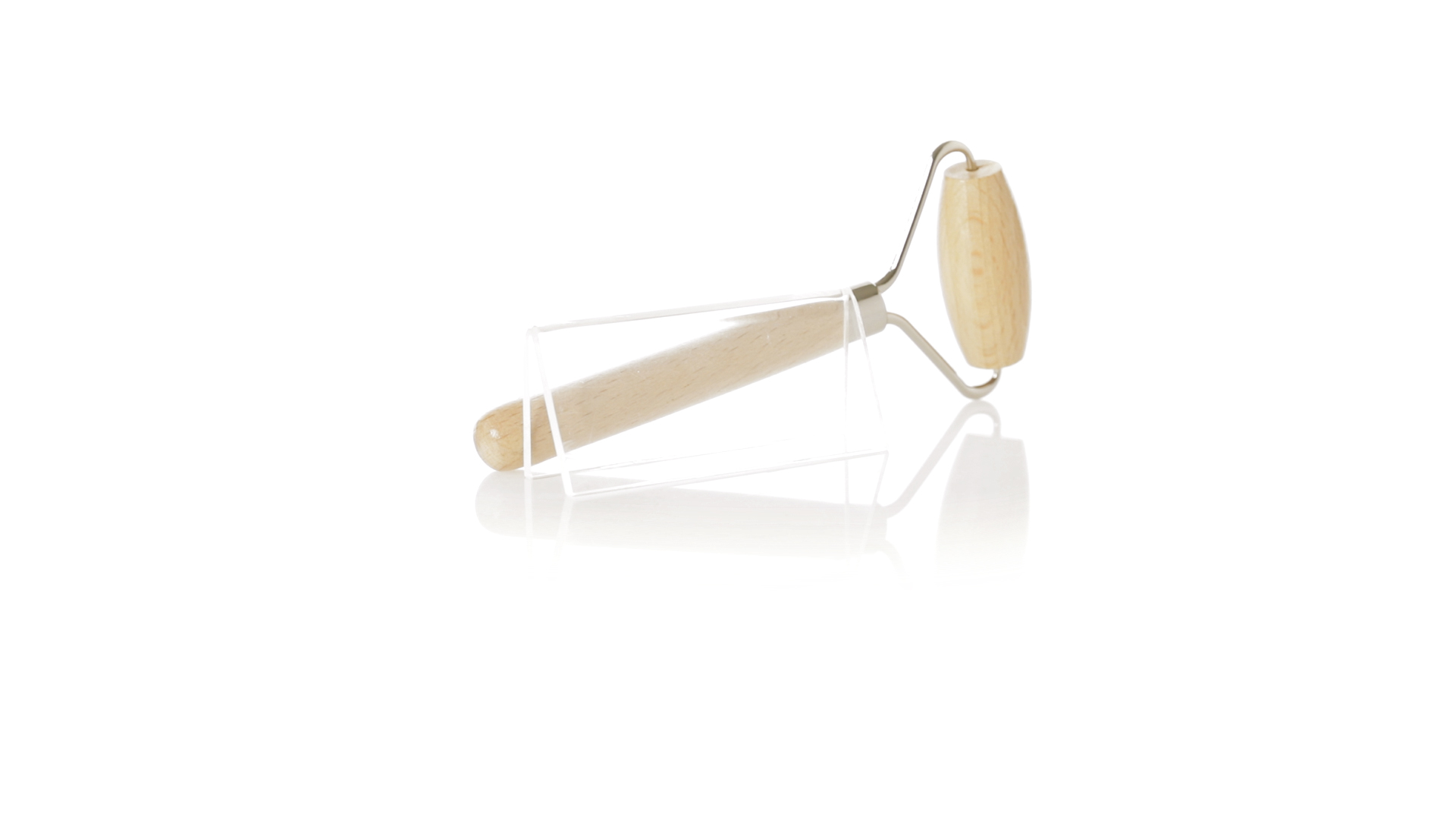 Gesichtsmassage-Massageroller aus Naturholz, der die Gesichtspflege fördert und entspannend wirkt. Präsentiert in einer individuellen Ökodesign-Box aus Kraftkarton.