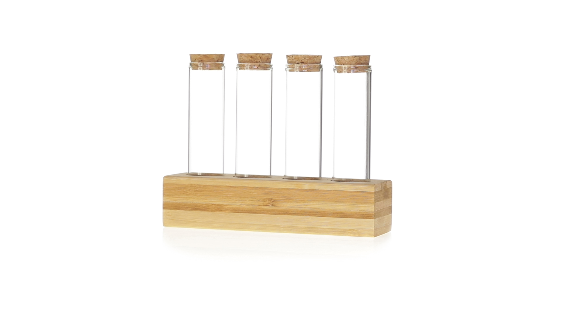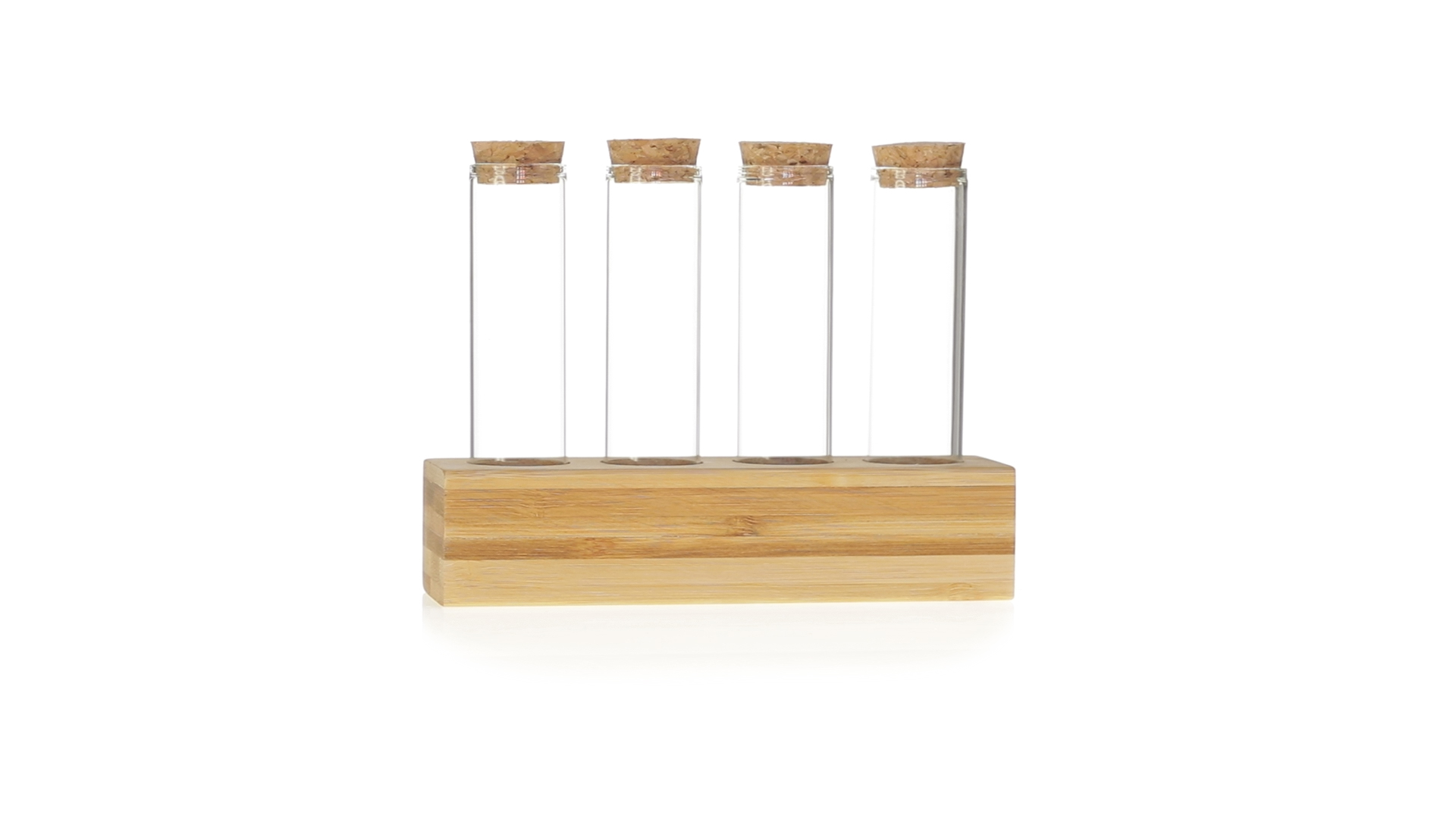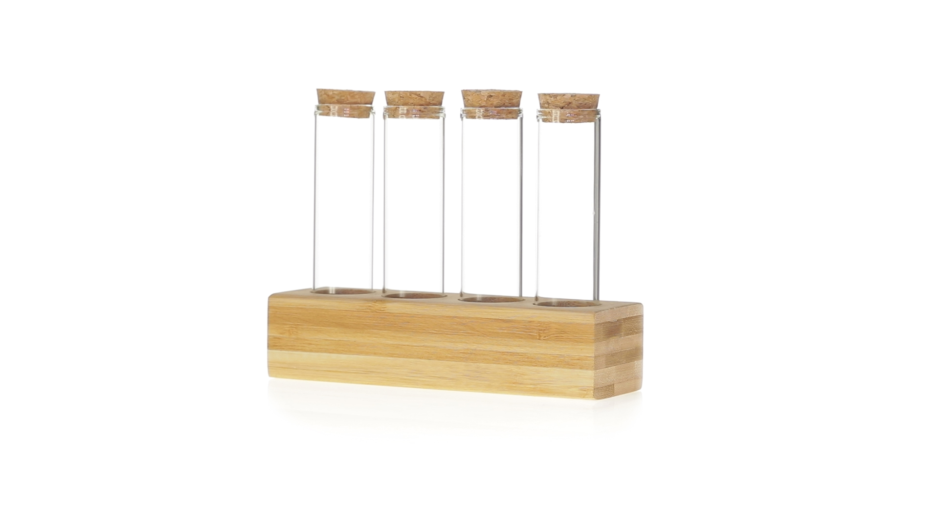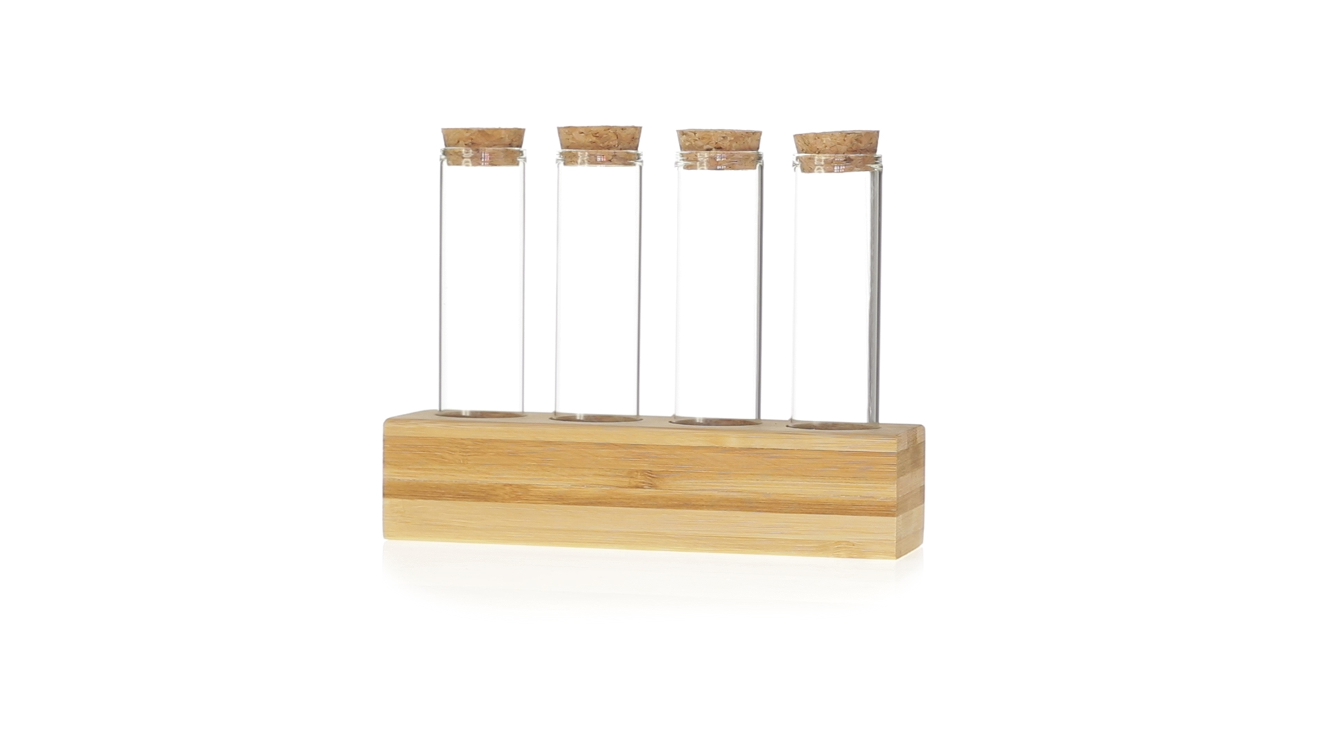 Linie "Natur" Gewürzset. Inklusive 4 Gläsern von 70 ml aus Borosilikatglas, die aussergewöhnliche Festigkeit und Haltbarkeit bietet, verlängert seine Lebensdauer, in der Lage, unzählige Male wiederverwendet zu werden. Mit Naturkorkdeckeln und Bambusboden, um die Verwendung von natürlichen Rohstoffen zu fördern. Präsentiert in einer individuellen Schachtel mit Kraftausdruck.