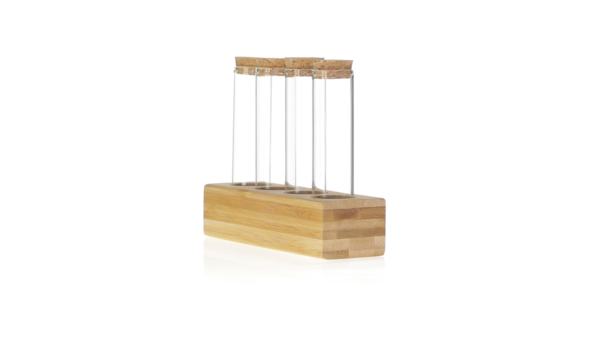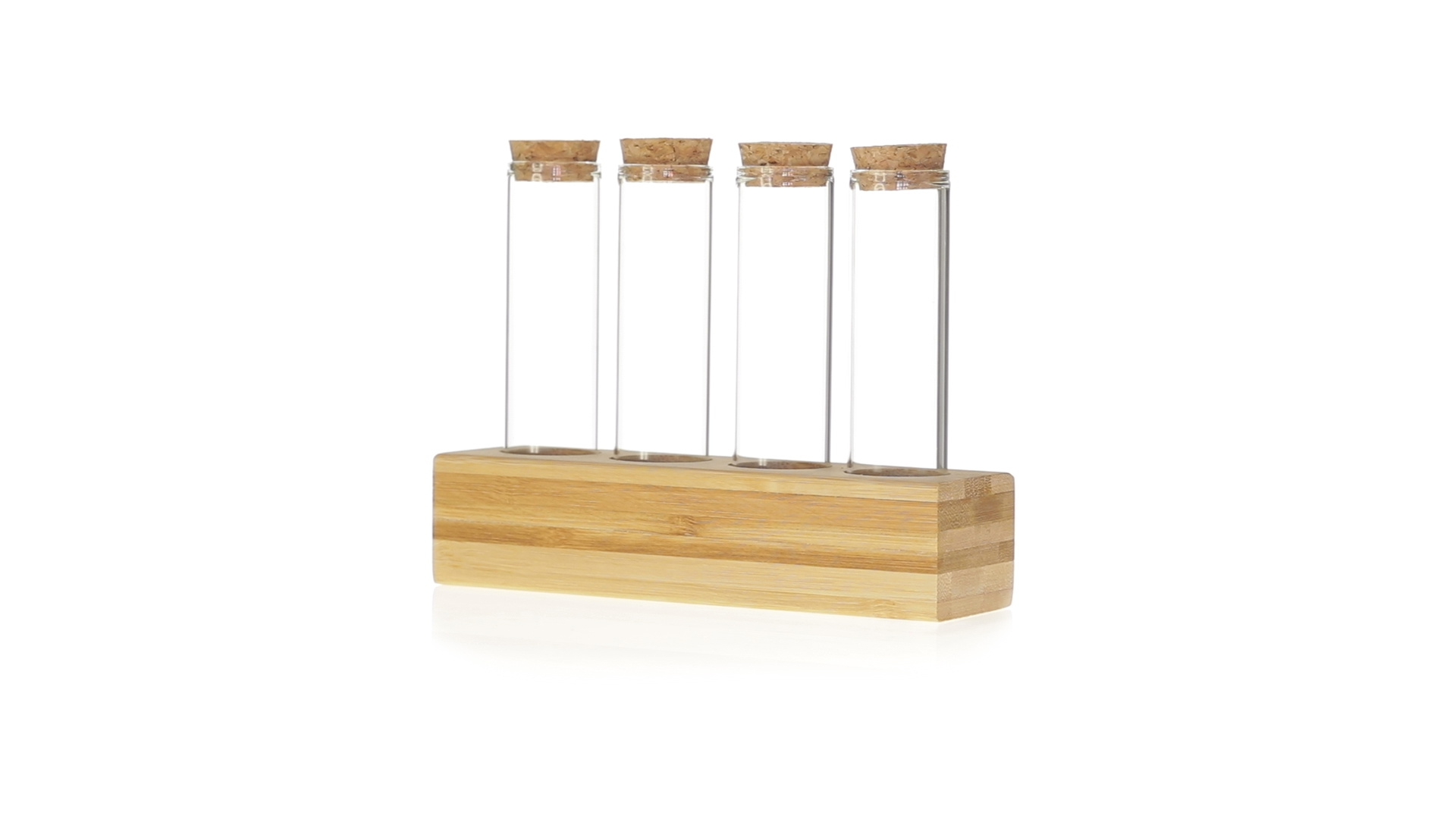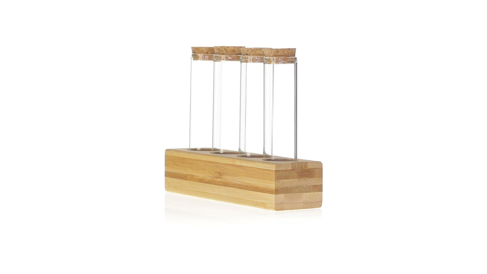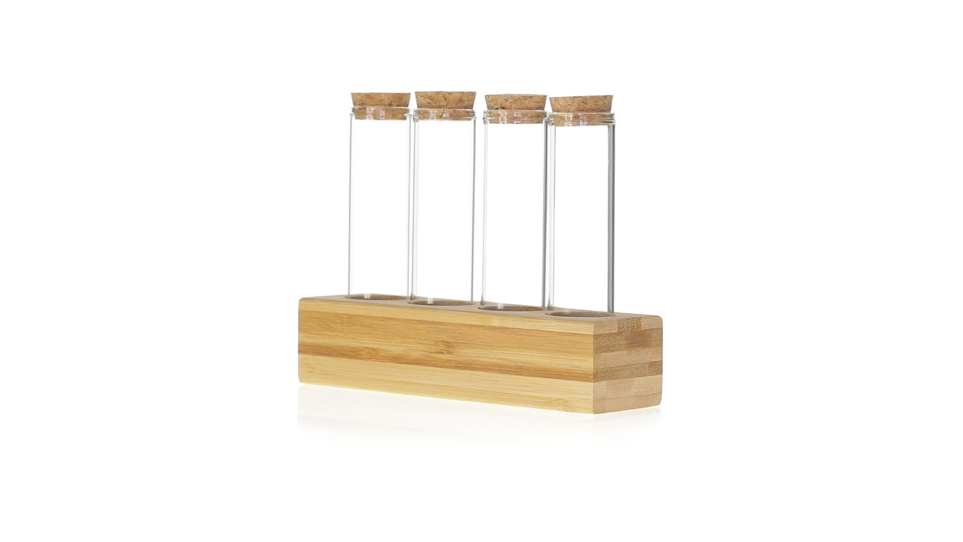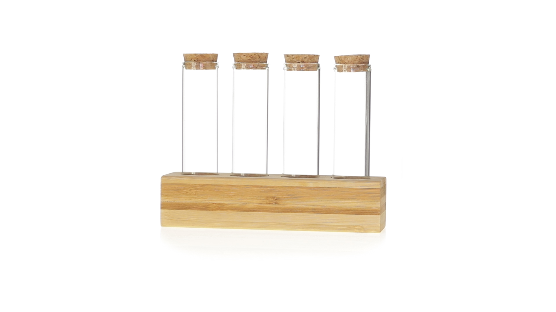 Linie "Natur" Gewürzset. Inklusive 4 Gläsern von 70 ml aus Borosilikatglas, die aussergewöhnliche Festigkeit und Haltbarkeit bietet, verlängert seine Lebensdauer, in der Lage, unzählige Male wiederverwendet zu werden. Mit Naturkorkdeckeln und Bambusboden, um die Verwendung von natürlichen Rohstoffen zu fördern. Präsentiert in einer individuellen Schachtel mit Kraftausdruck.