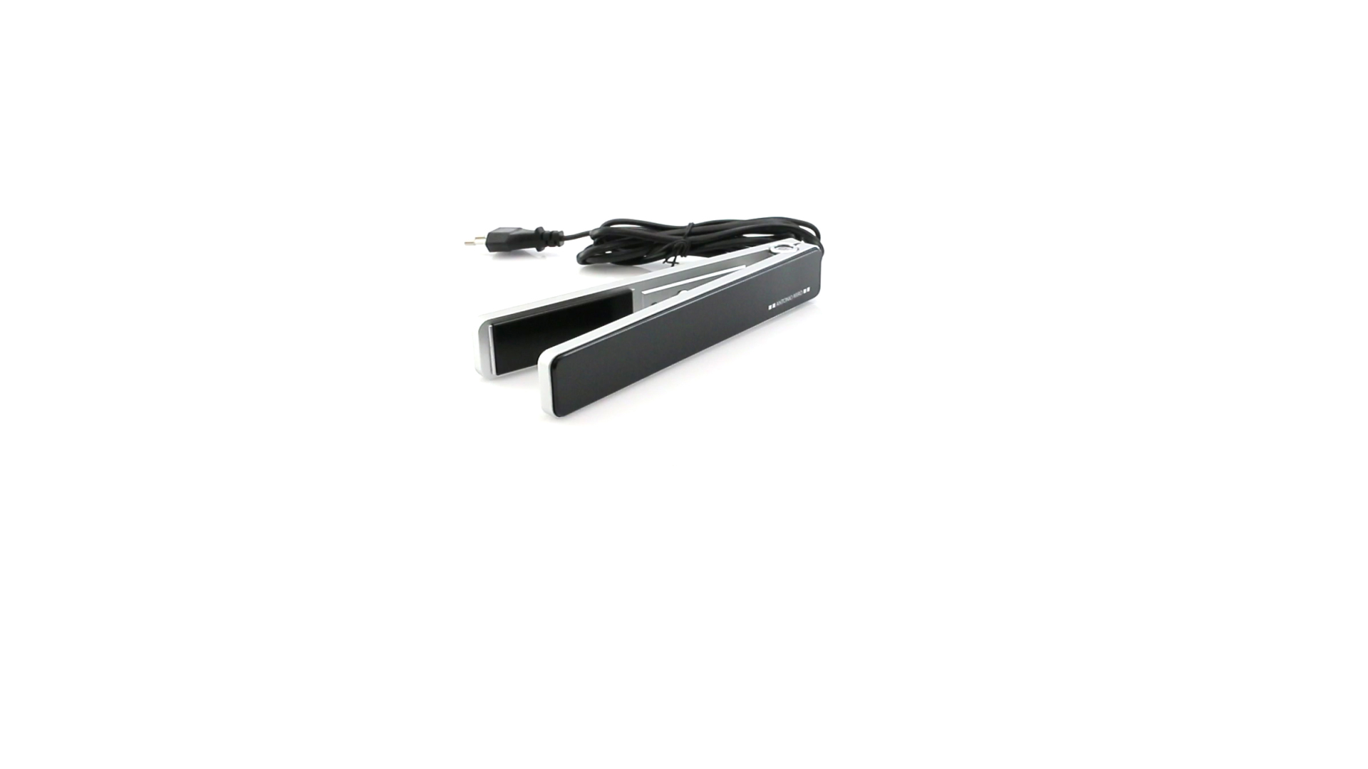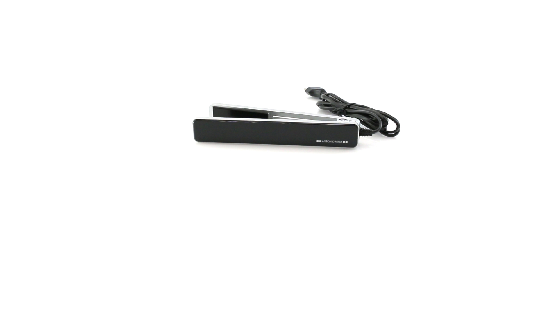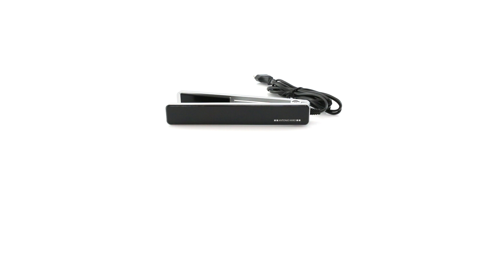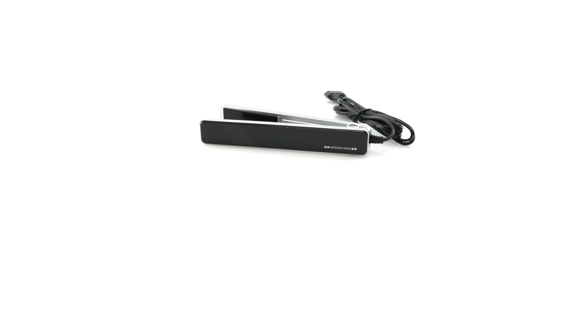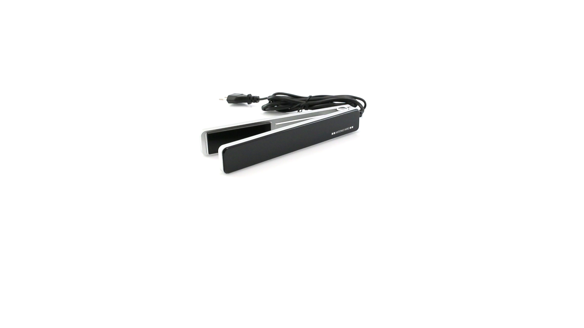 Glätteisen von Antonio Miró mit schlichten Design und Keramikbeschichtung auf den Platten. Präsentiert in einer individuellen, eleganten Box mit dem Markenlogo.