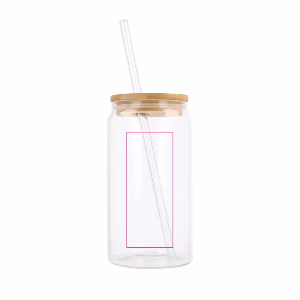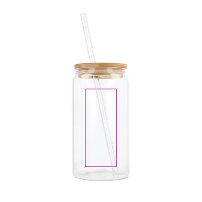 Glas mit Bambusdeckel & Strohhalm 450ml Rainanna