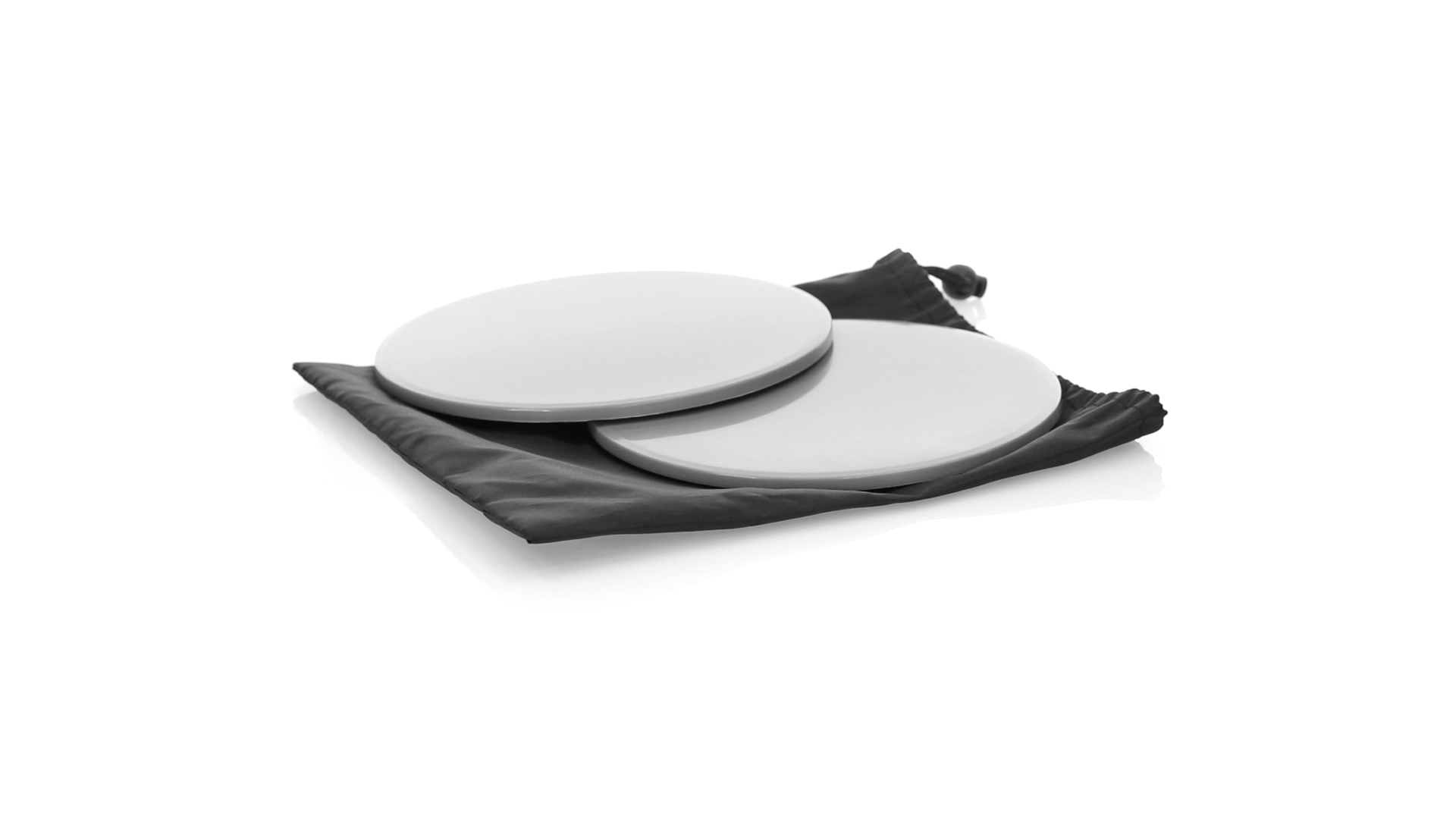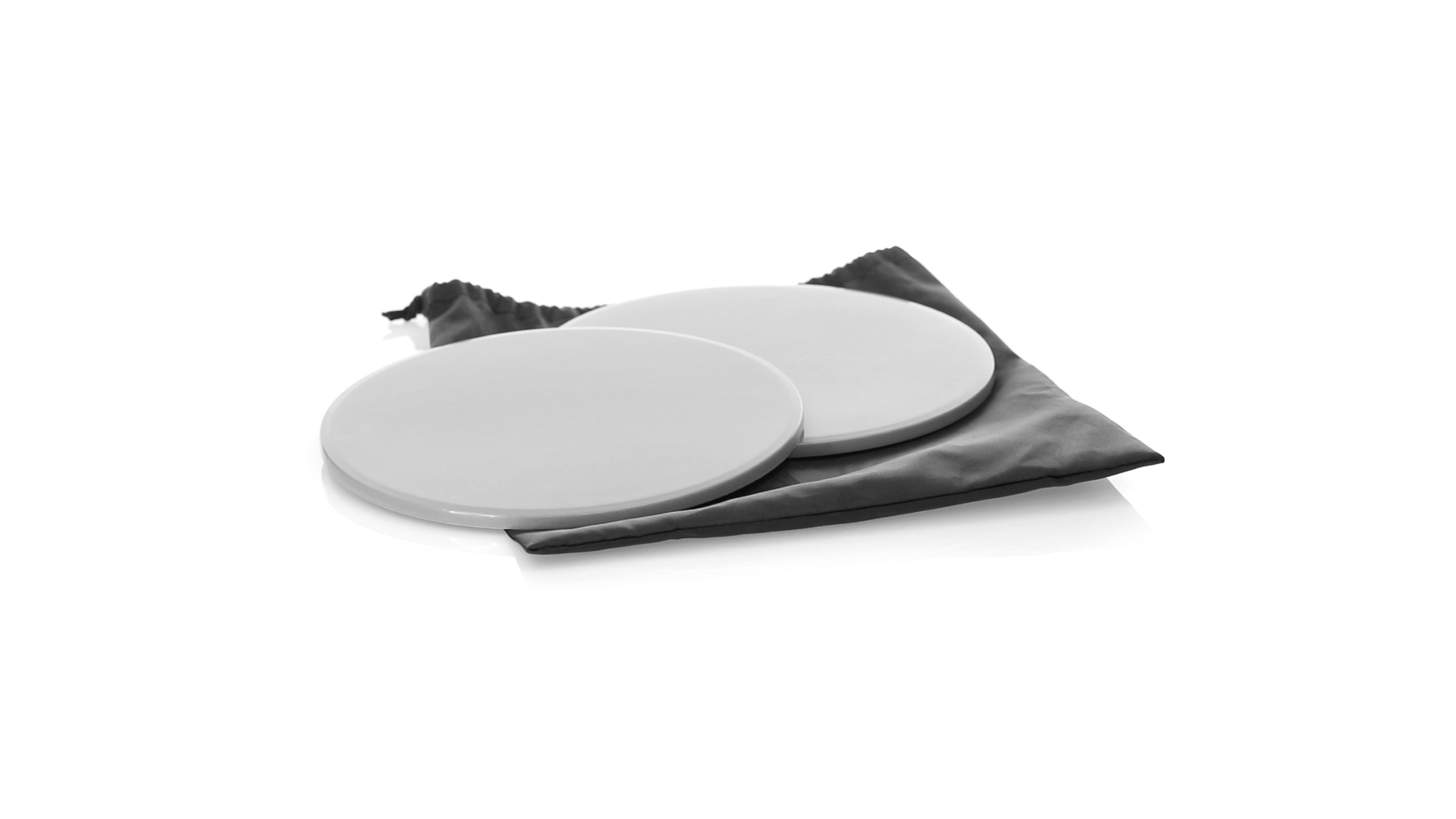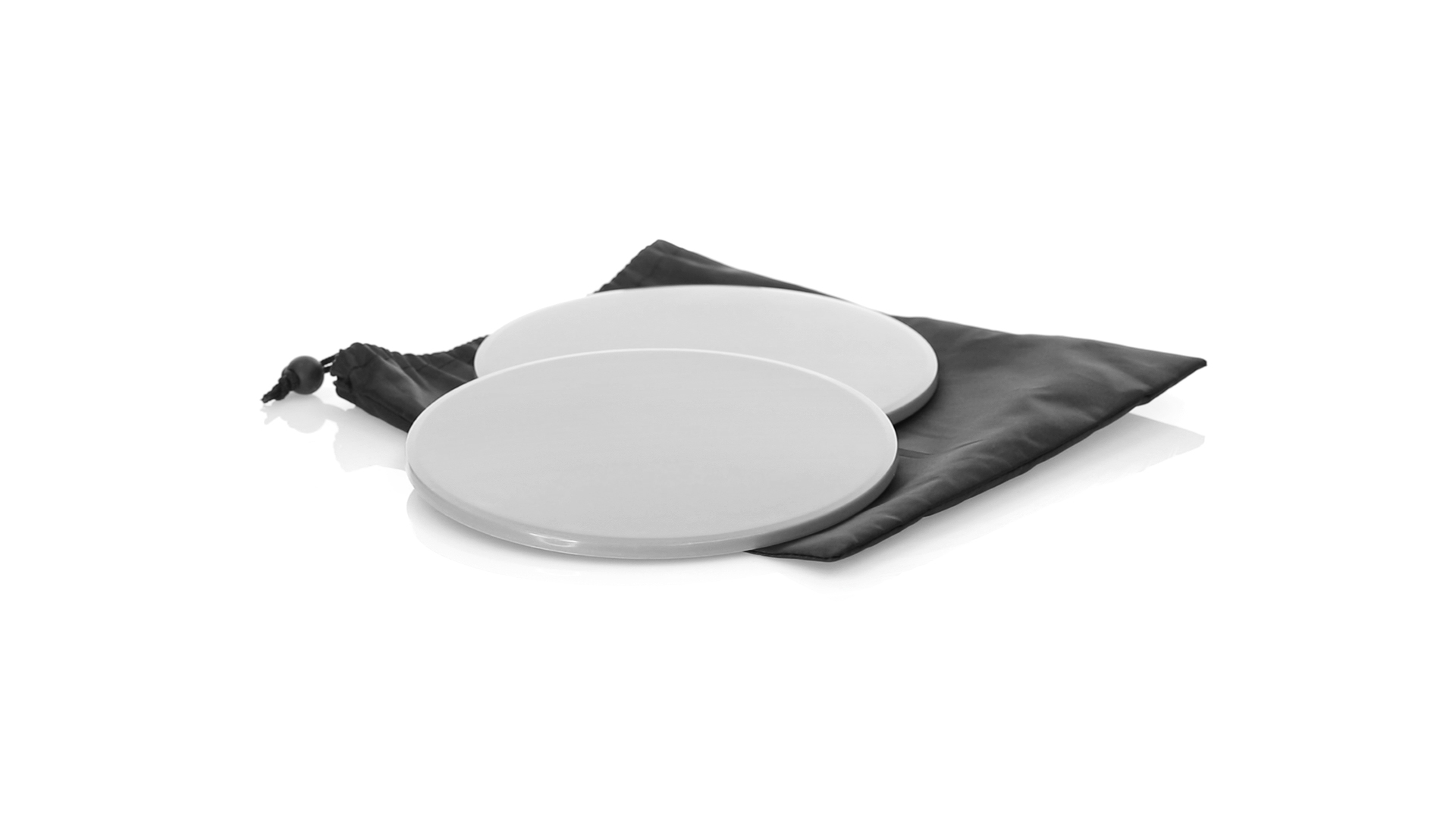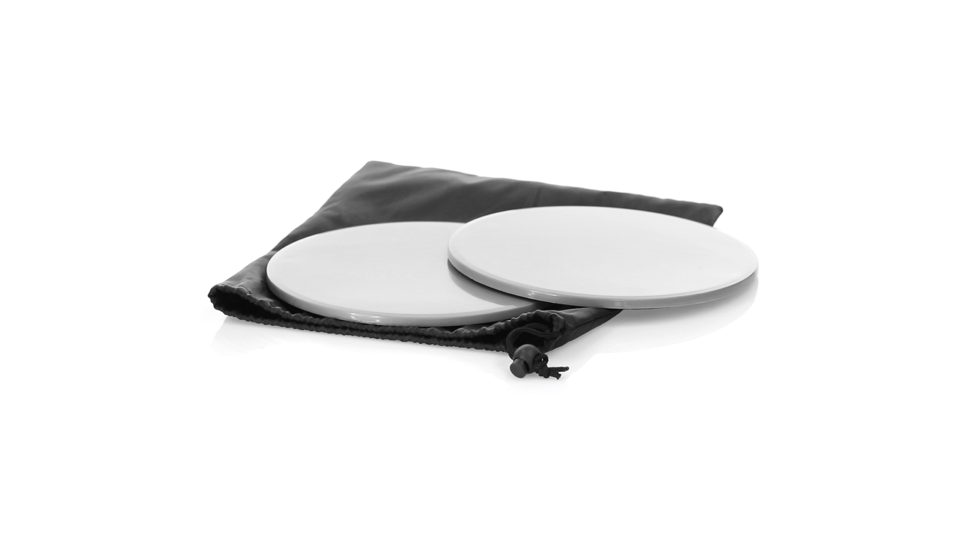 Fitness-Set mit 2 doppelseitigen Schiebescheiben. Bodenseite aus robustem ABS, mit rutschfester EVA-Oberfläche auf der Innenseite. Mit abgerundeten Sicherheitskanten und präsentiert in einer individuellen Polyestertasche mit Kordelzugverschluss.