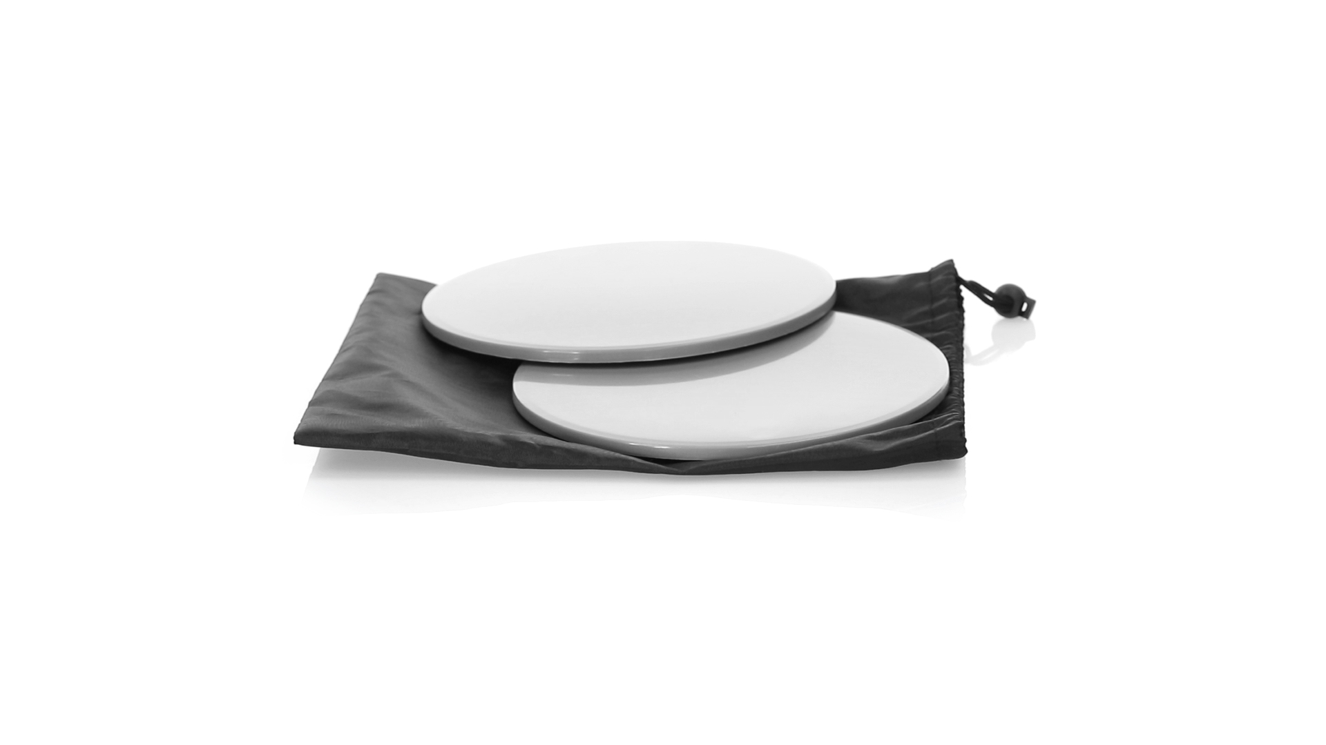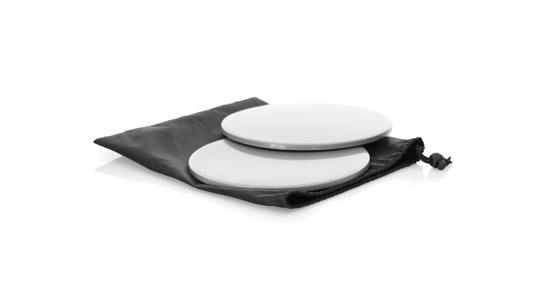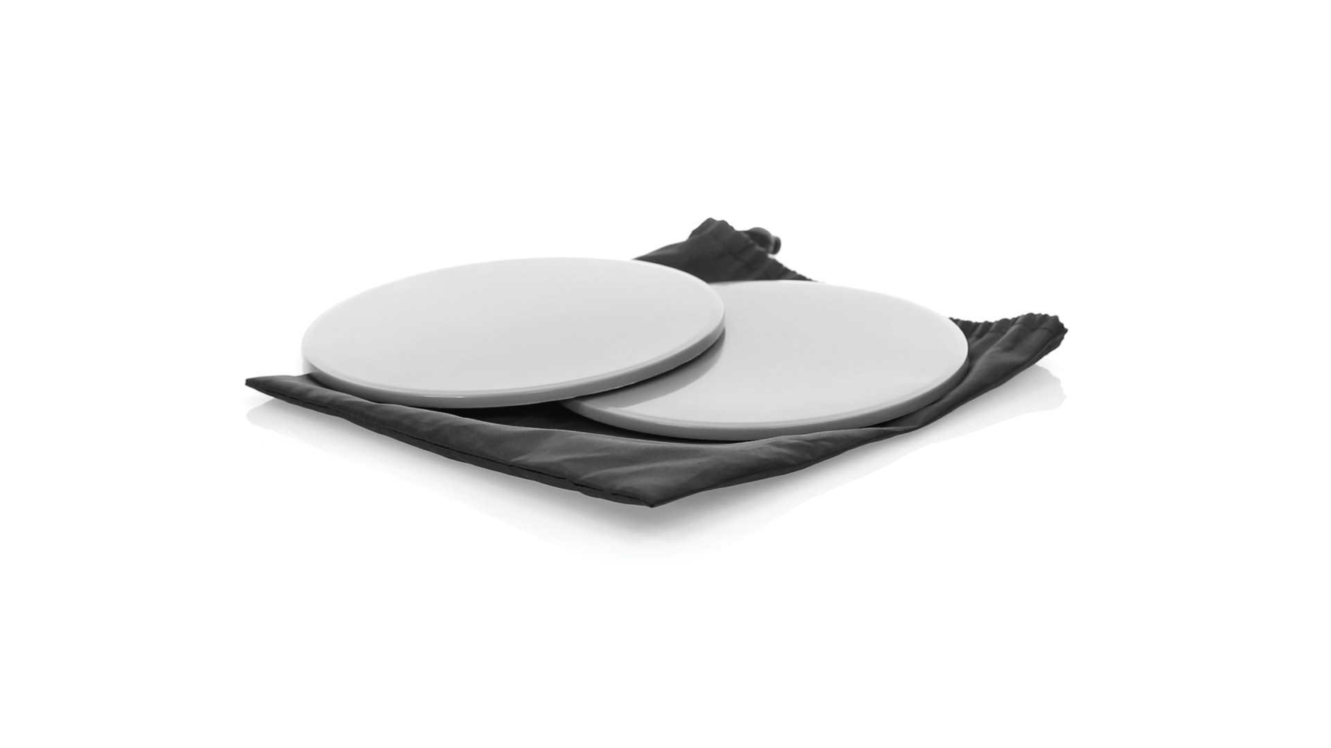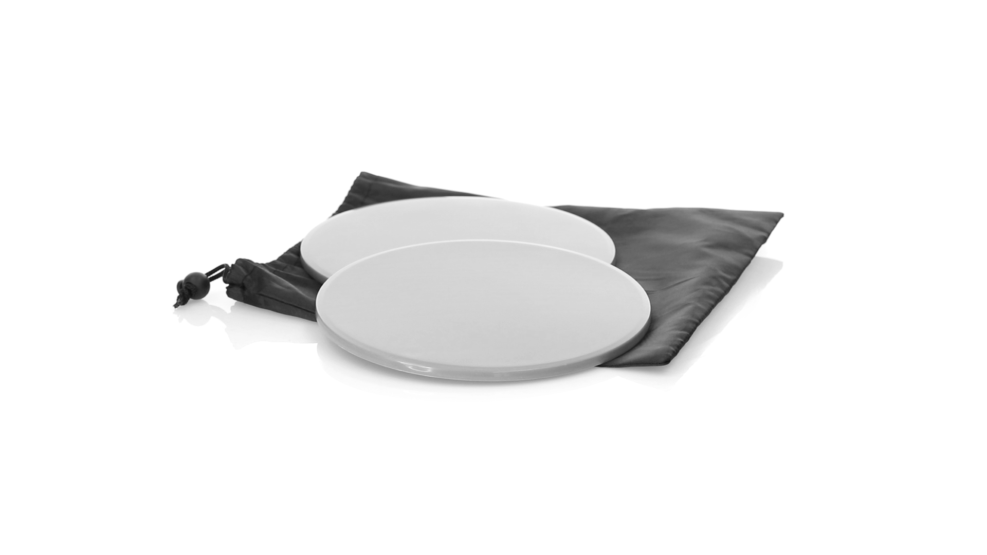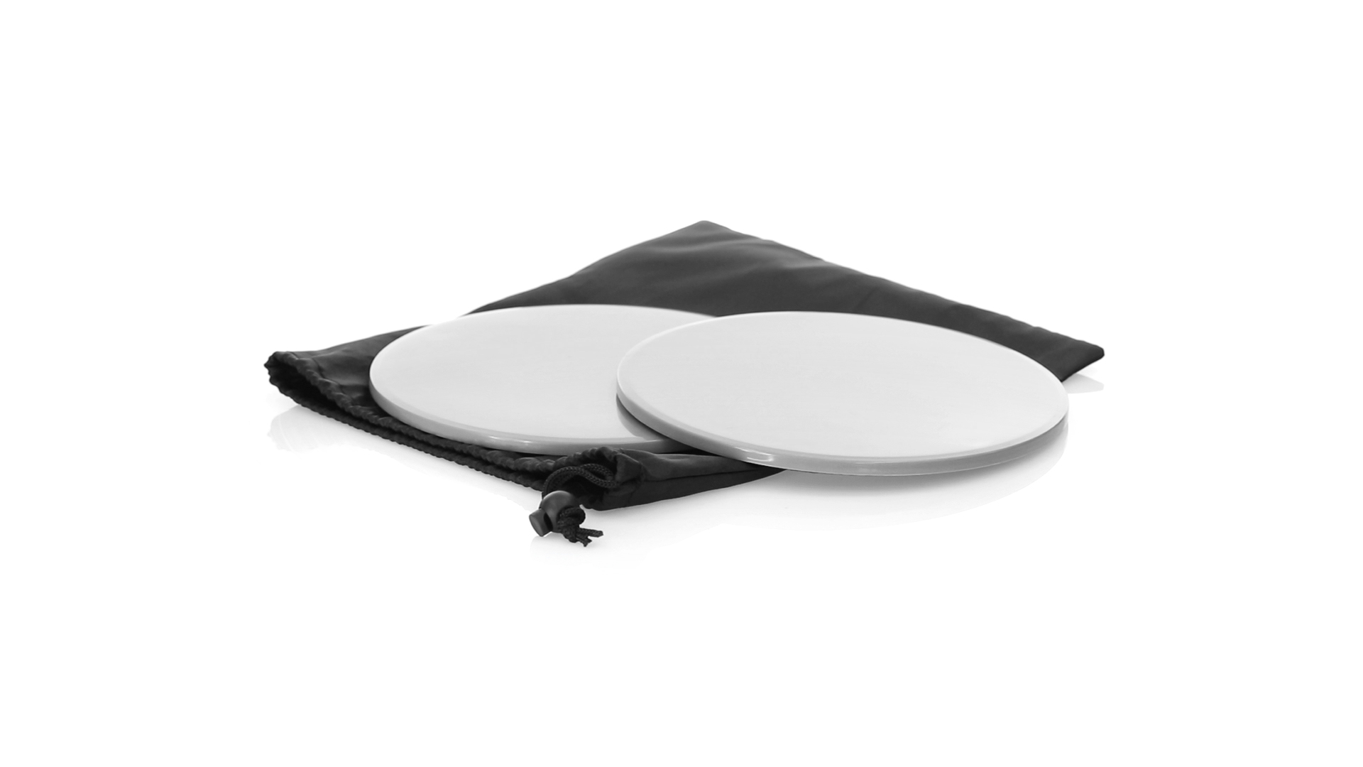 Fitness-Set mit 2 doppelseitigen Schiebescheiben. Bodenseite aus robustem ABS, mit rutschfester EVA-Oberfläche auf der Innenseite. Mit abgerundeten Sicherheitskanten und präsentiert in einer individuellen Polyestertasche mit Kordelzugverschluss.