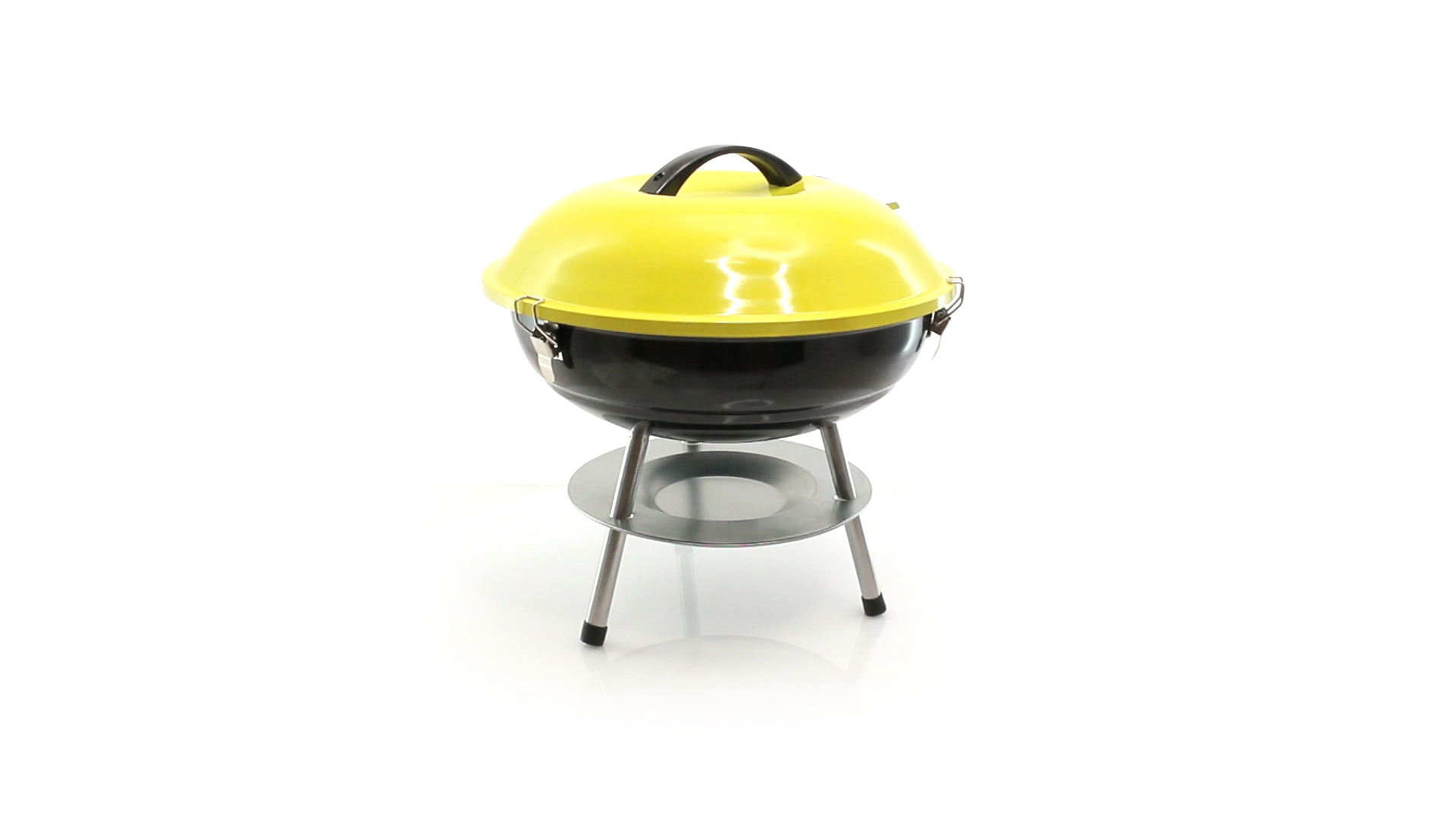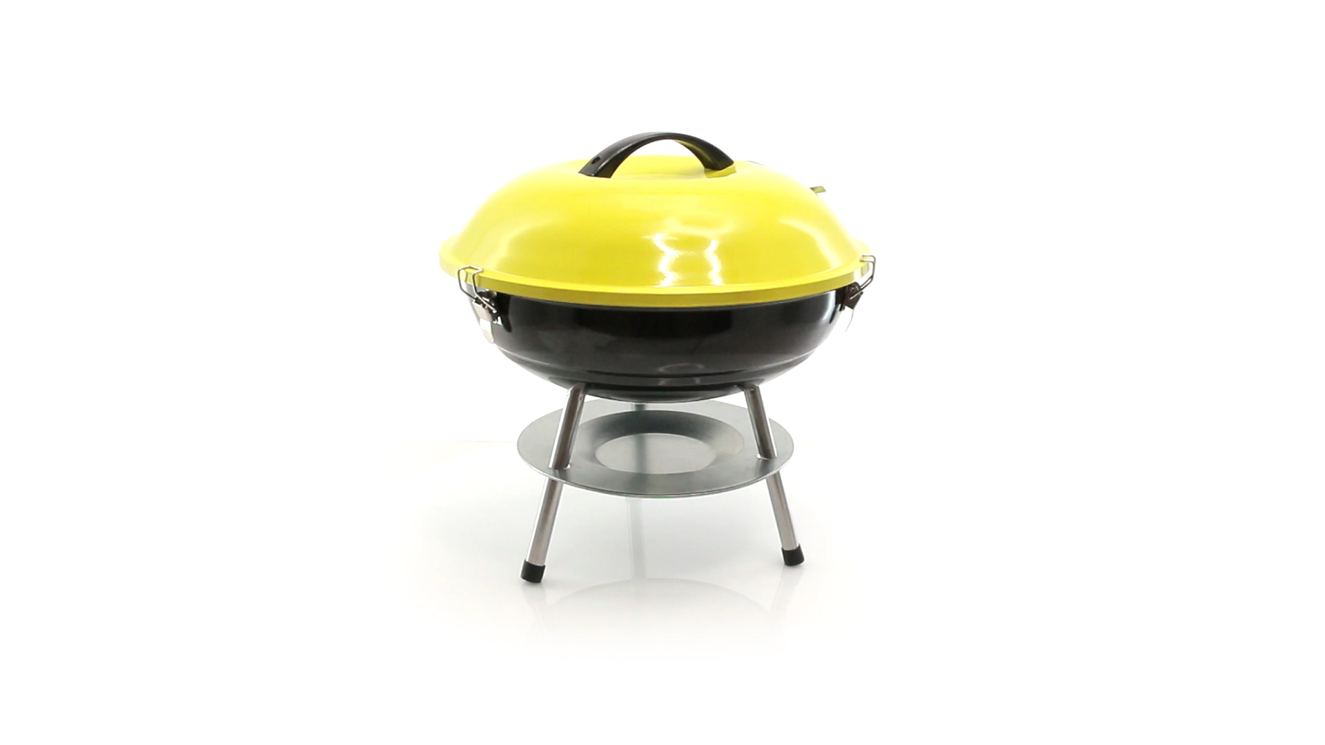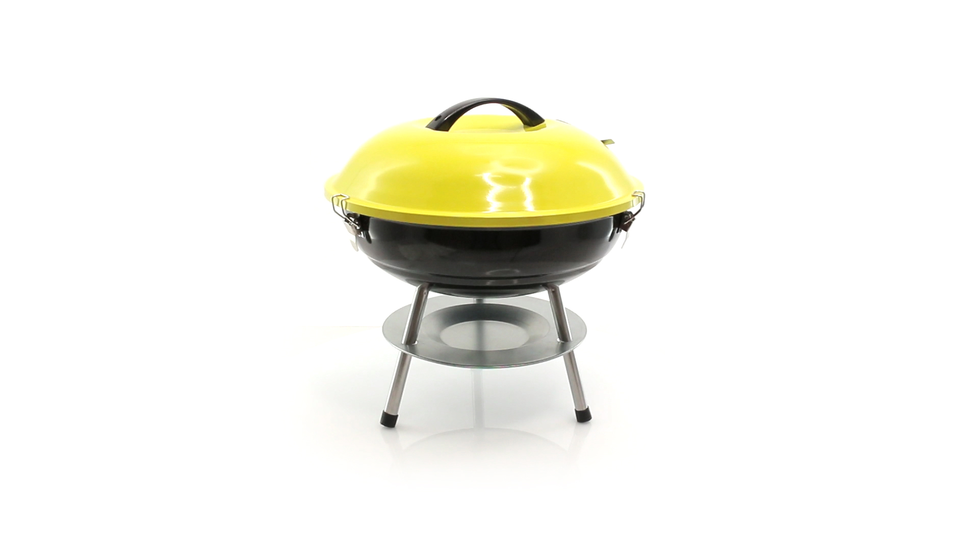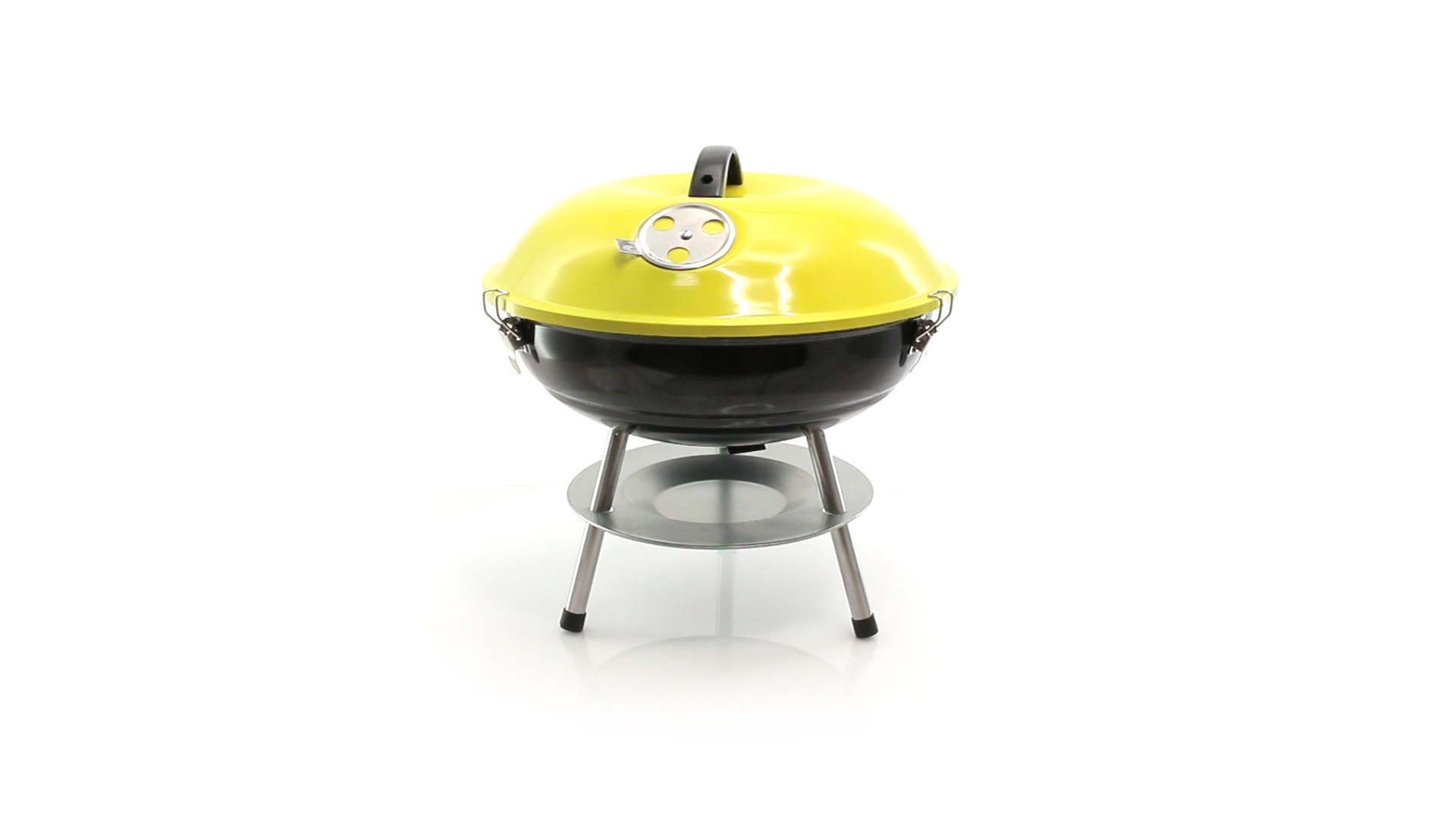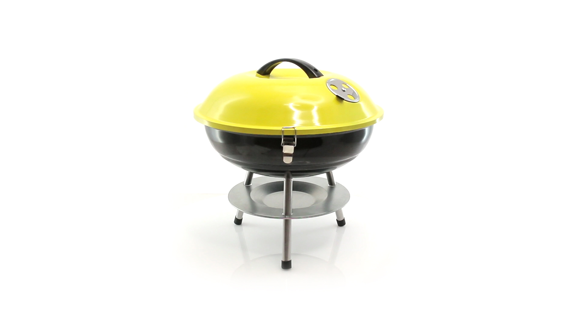 Grill aus resistentem Stahl mit schwarzer Grillschale und Deckel in lebendigen Farben mit komfortablem Griff und Lüftungsöffnungen. Zudem mit Metallrost und rutschfesten Standbeinen. Präsentiert in einer attraktiven Designbox.