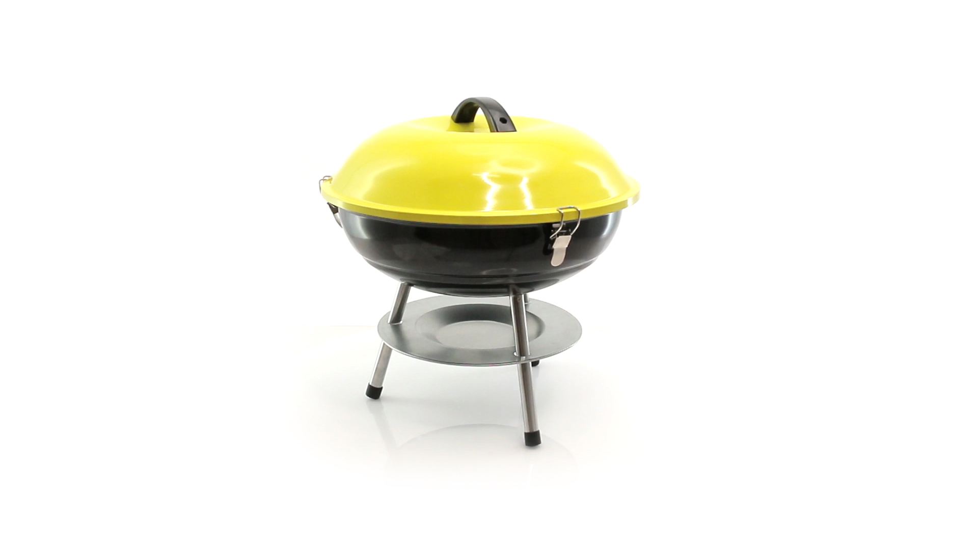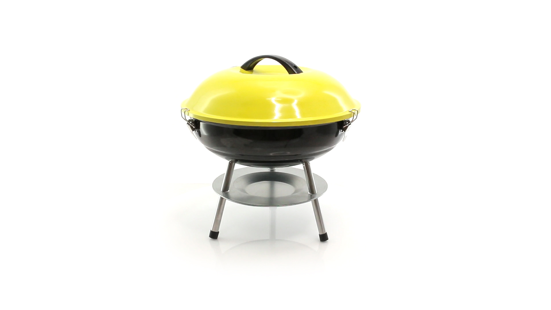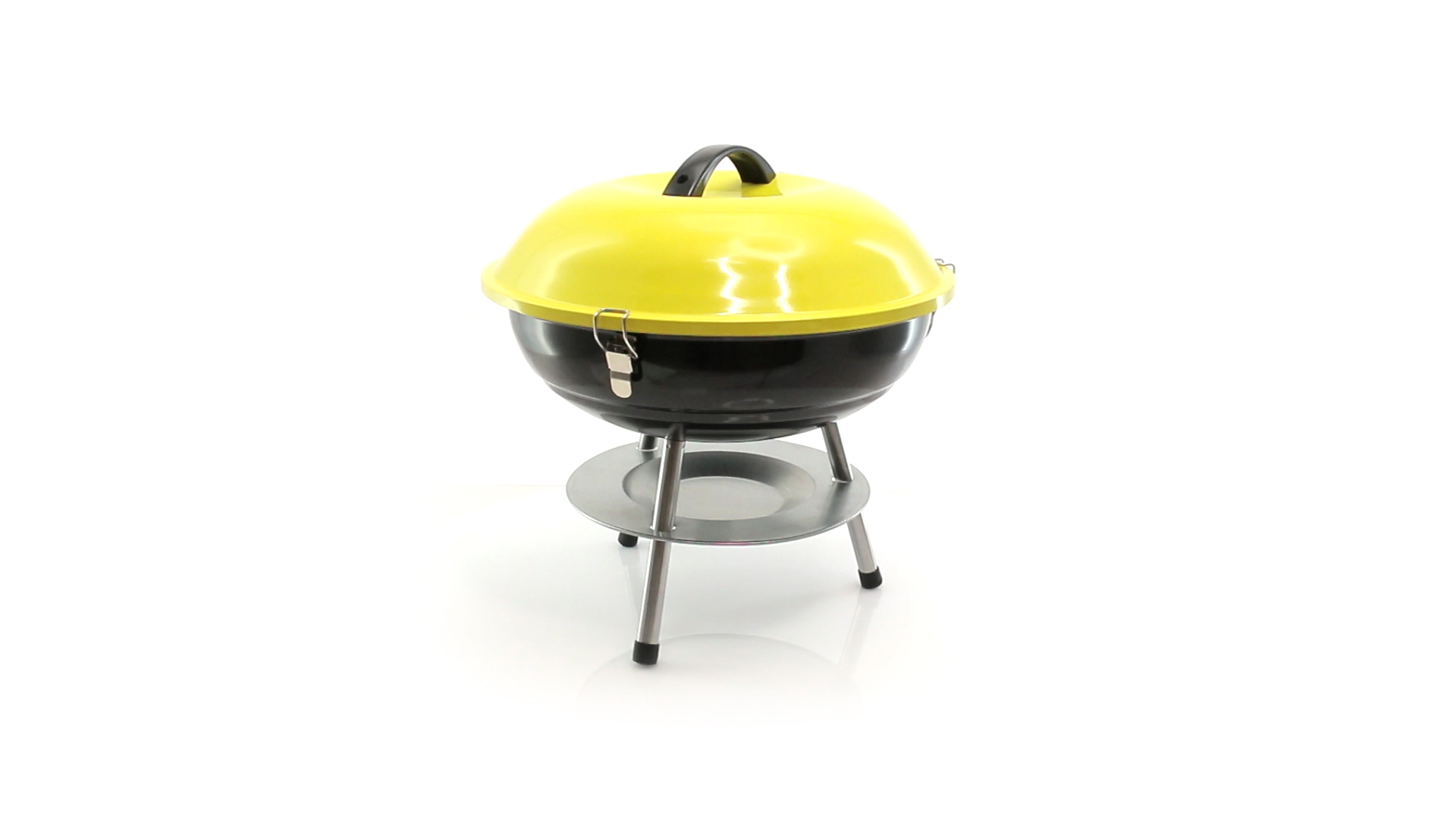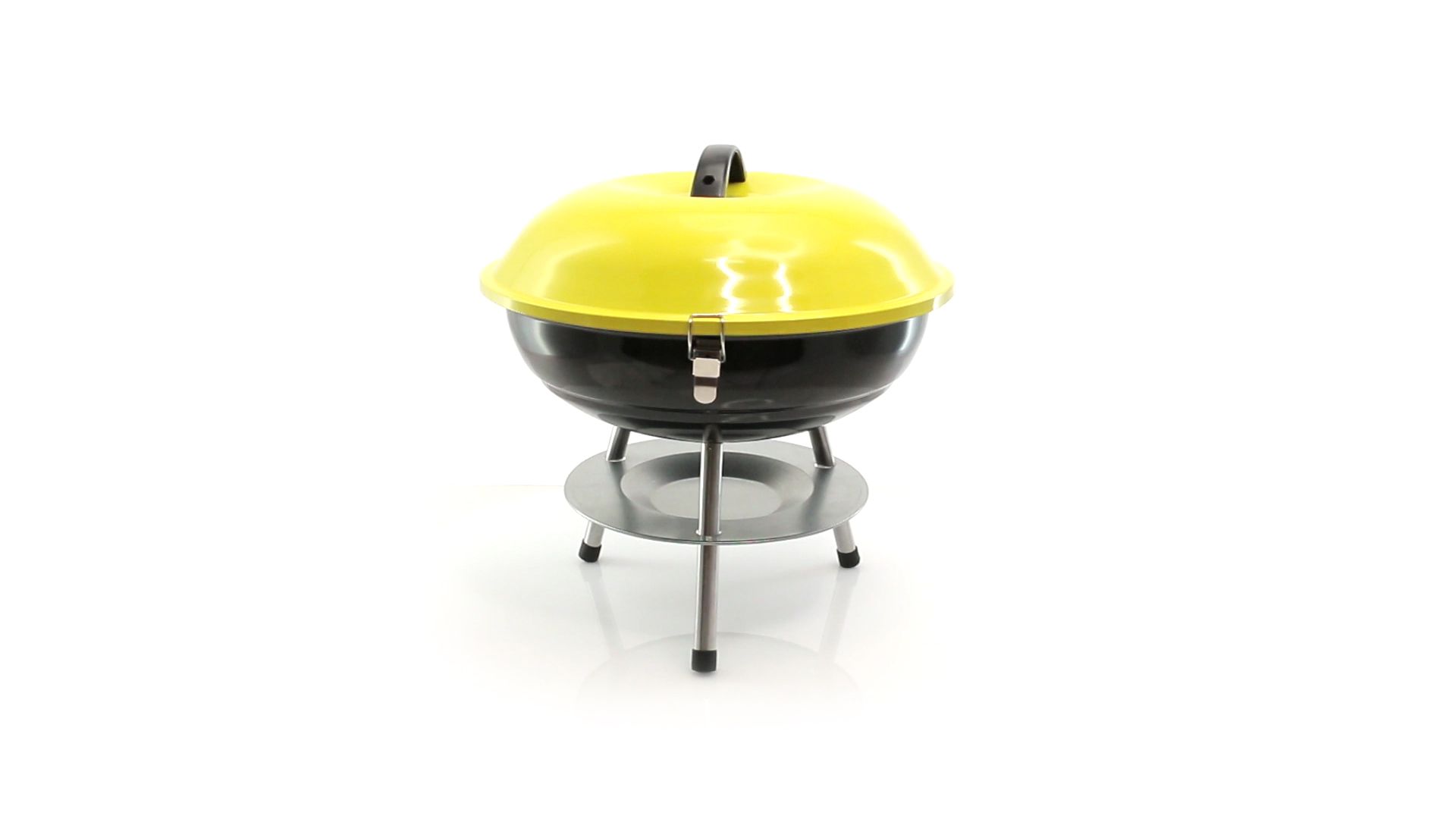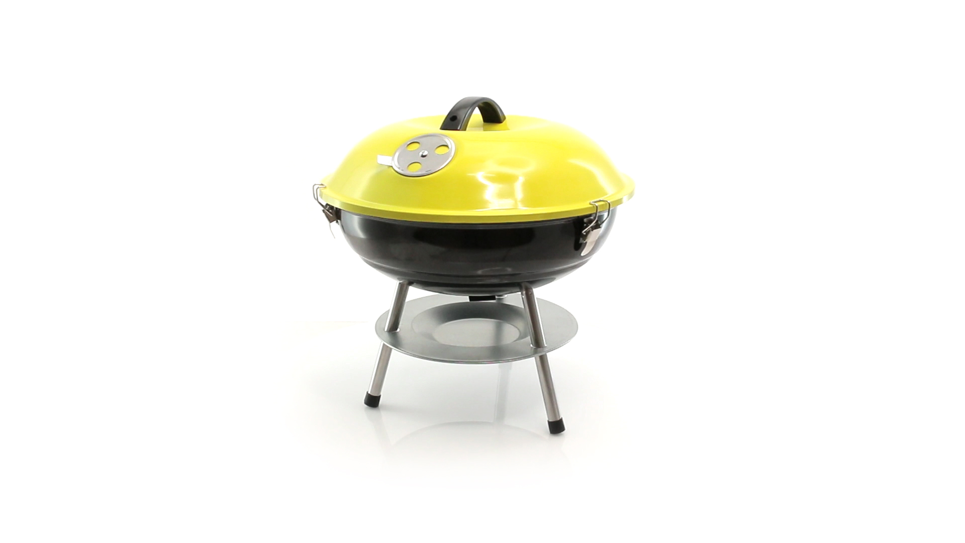 Grill aus resistentem Stahl mit schwarzer Grillschale und Deckel in lebendigen Farben mit komfortablem Griff und Lüftungsöffnungen. Zudem mit Metallrost und rutschfesten Standbeinen. Präsentiert in einer attraktiven Designbox.