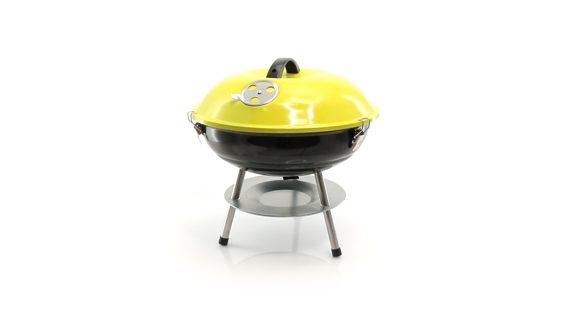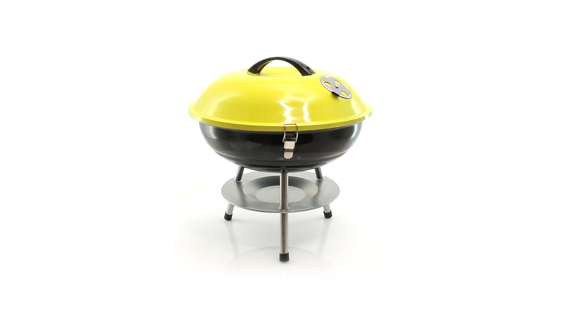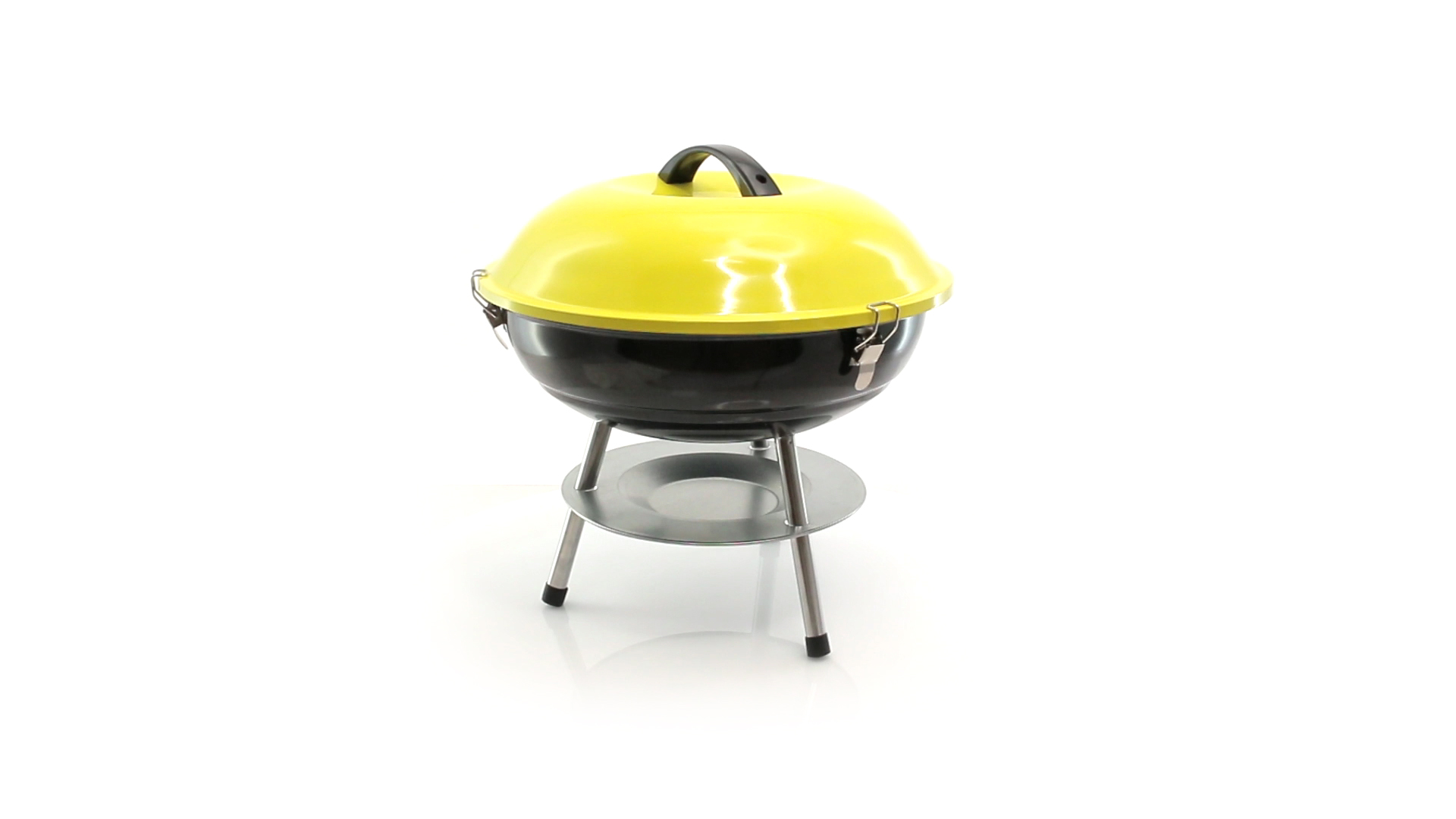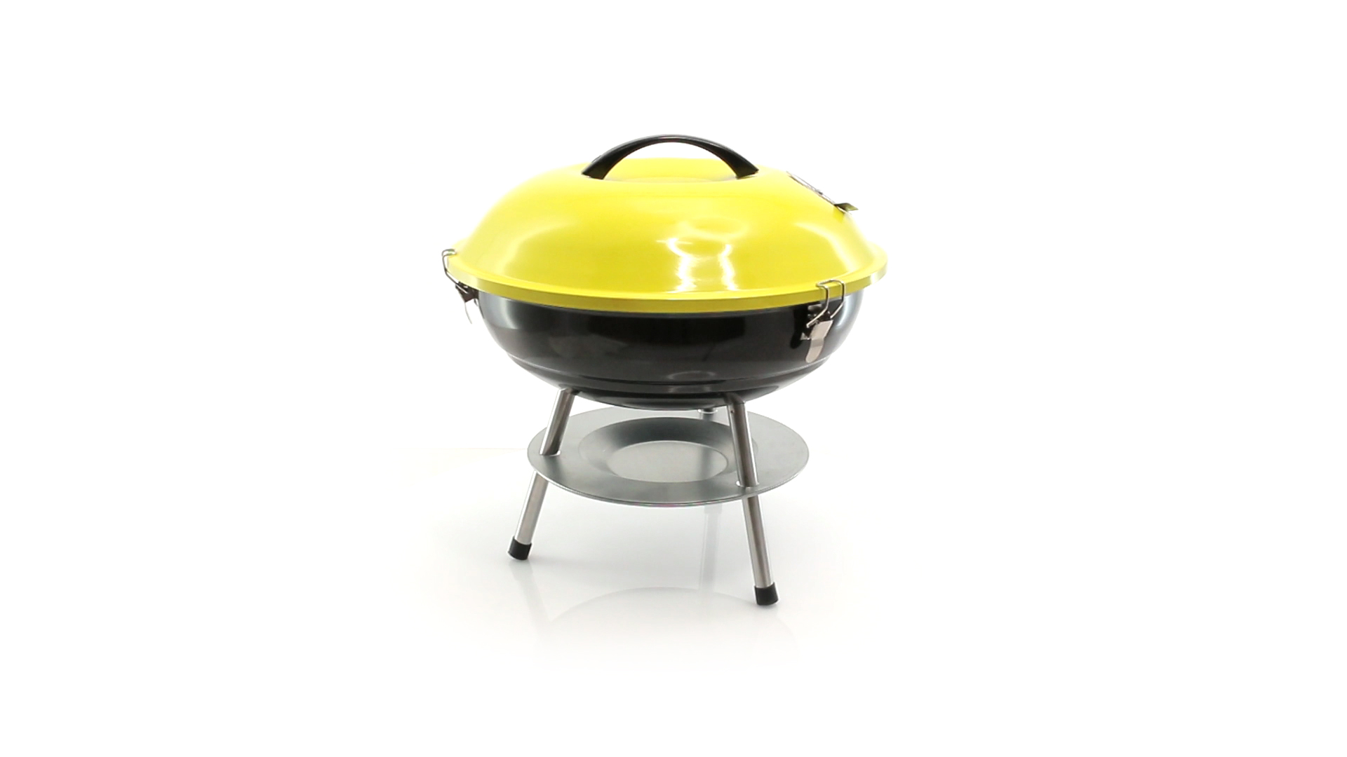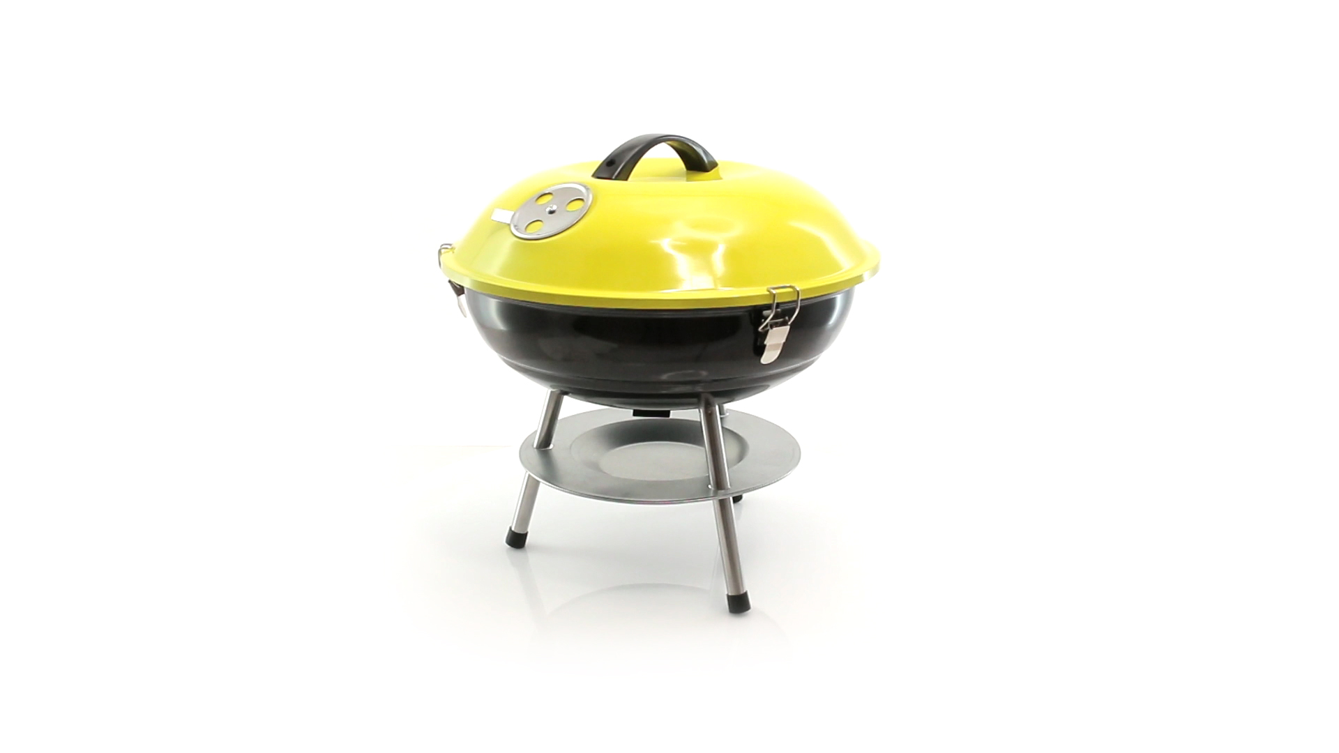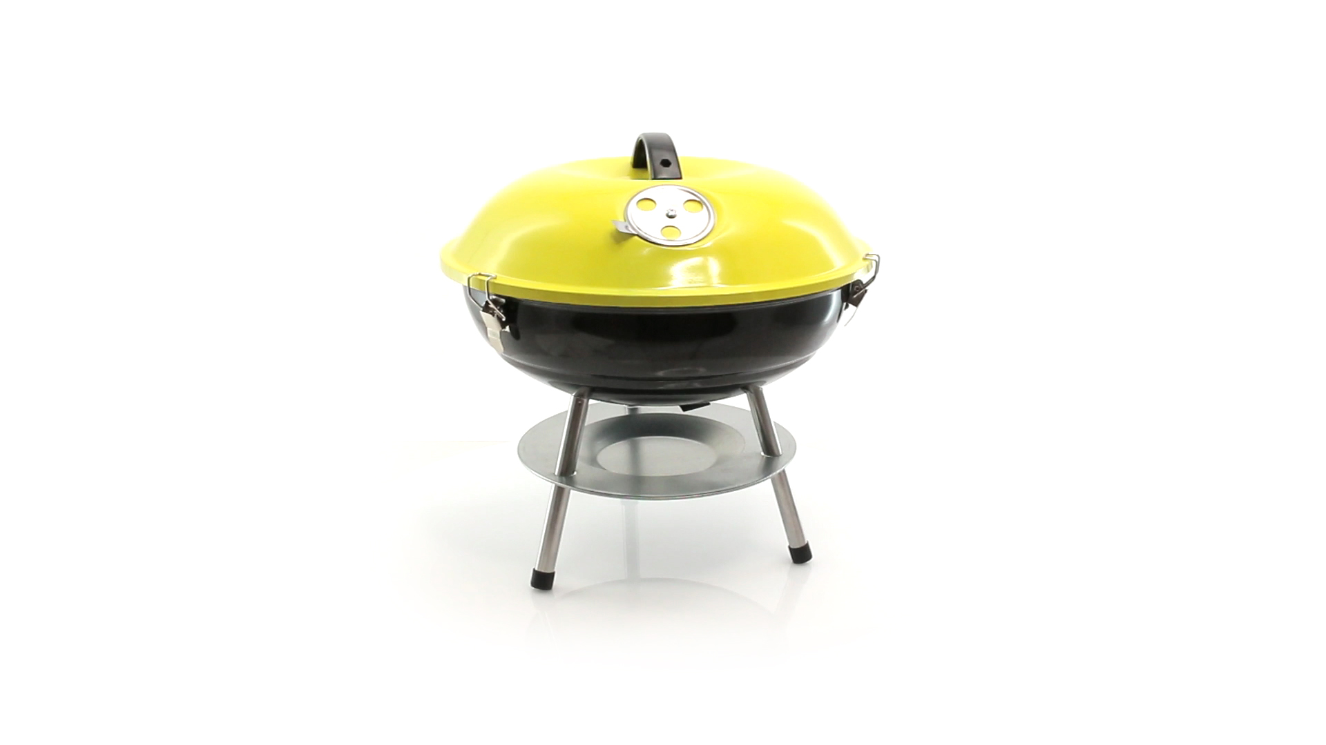 Grill aus resistentem Stahl mit schwarzer Grillschale und Deckel in lebendigen Farben mit komfortablem Griff und Lüftungsöffnungen. Zudem mit Metallrost und rutschfesten Standbeinen. Präsentiert in einer attraktiven Designbox.