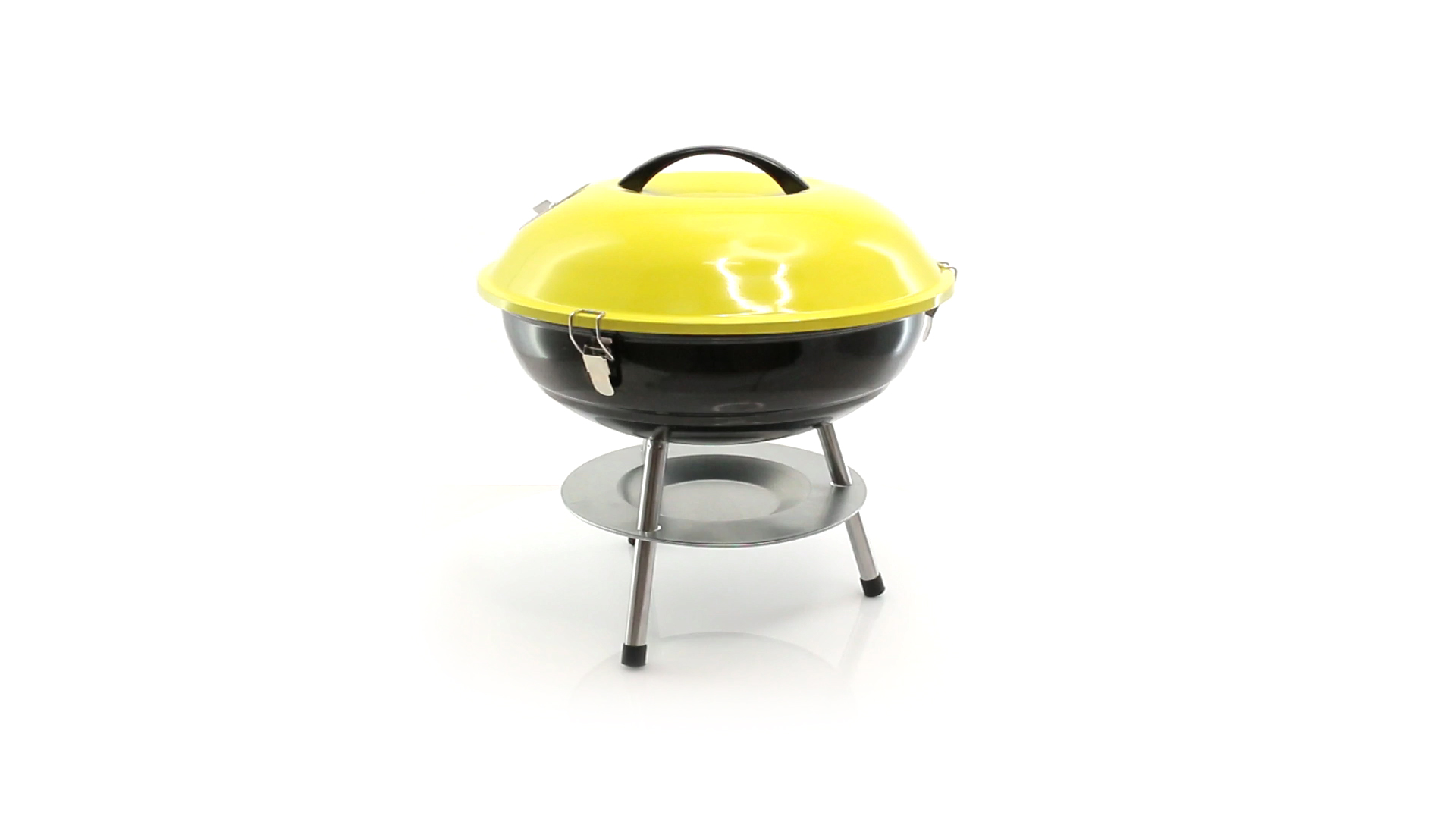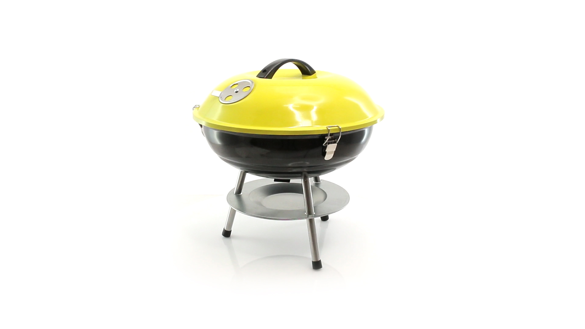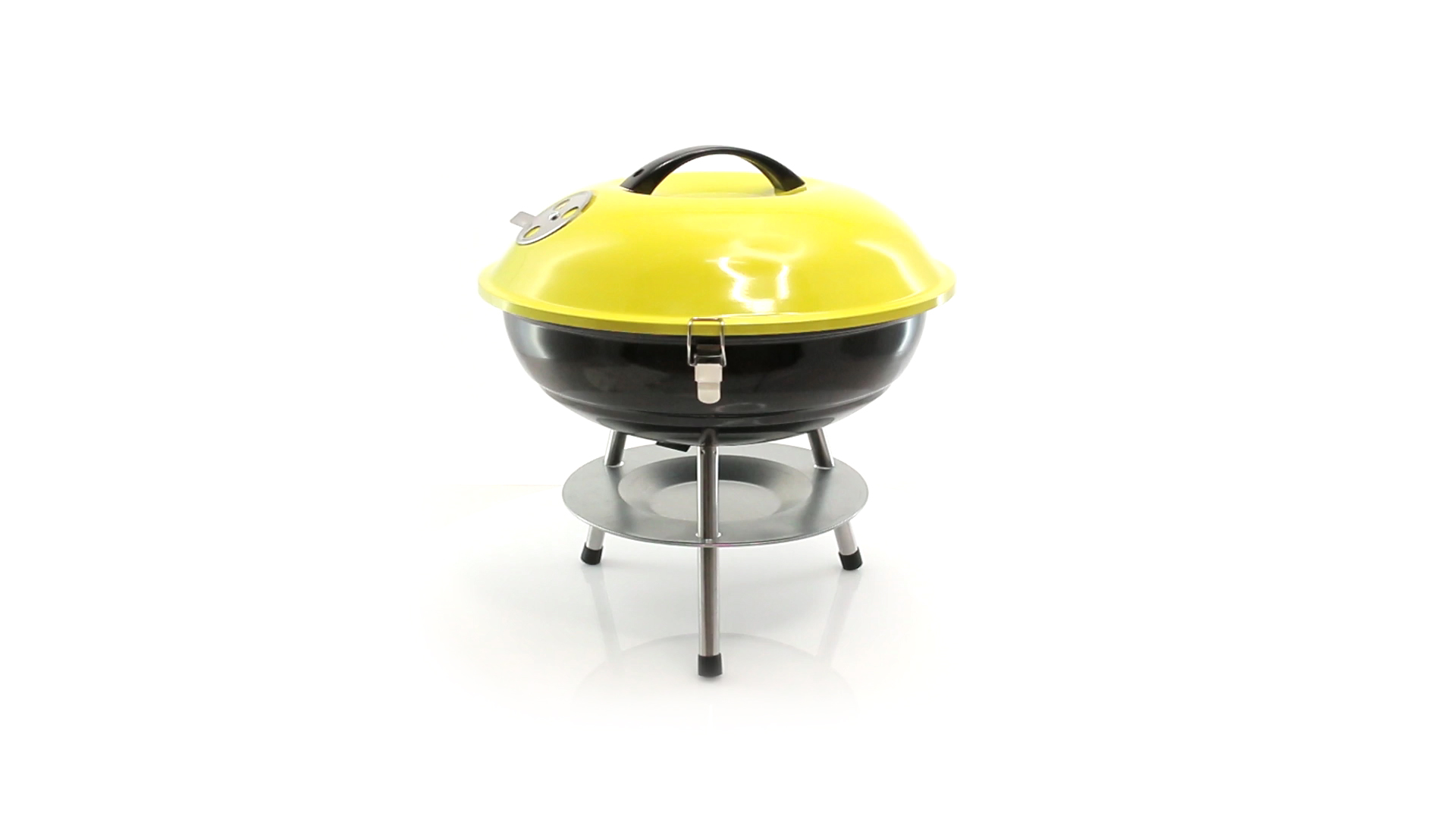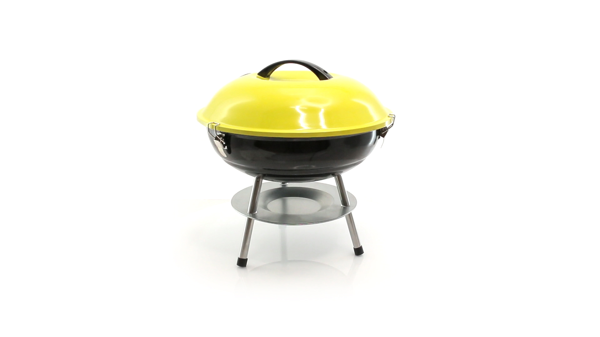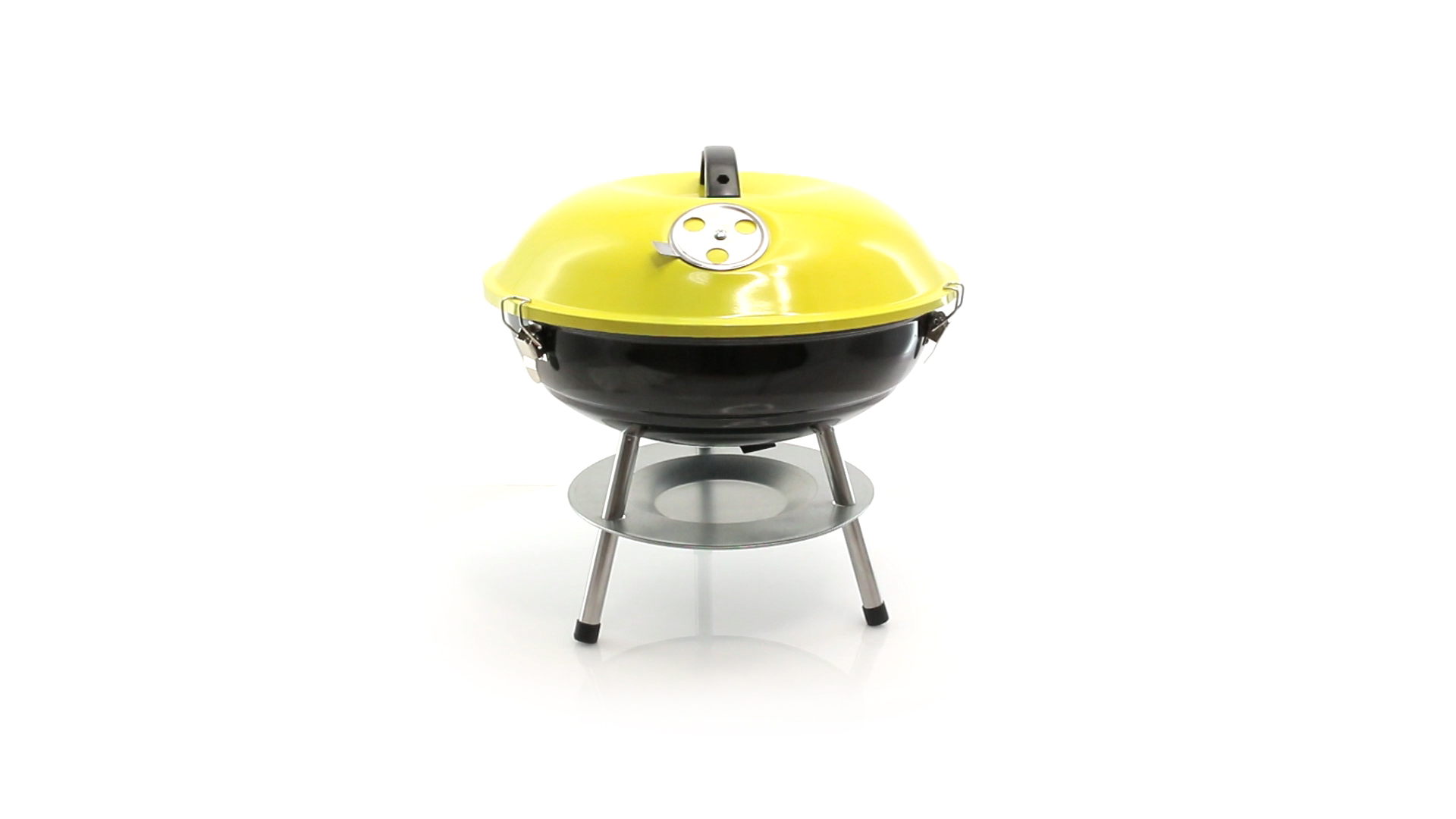Grill aus resistentem Stahl mit schwarzer Grillschale und Deckel in lebendigen Farben mit komfortablem Griff und Lüftungsöffnungen. Zudem mit Metallrost und rutschfesten Standbeinen. Präsentiert in einer attraktiven Designbox.